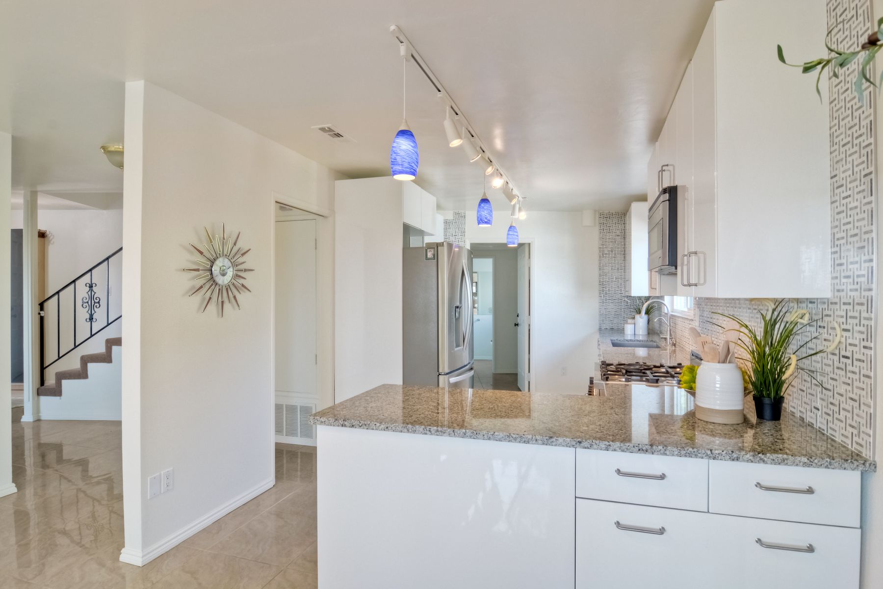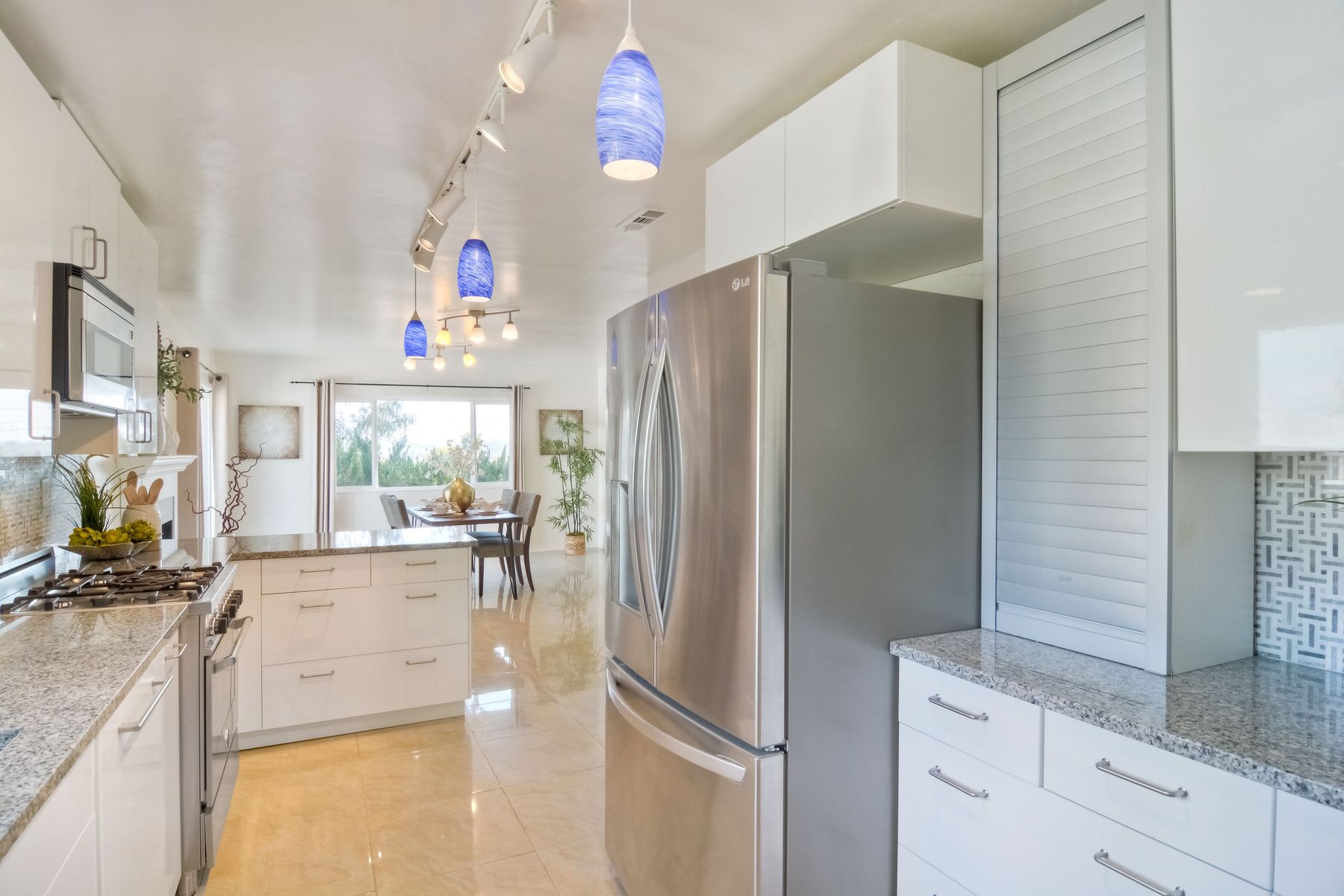 Custom home on large lot. Private, elevated location with a long driveway.Beautifully remodeled kitchen with Stainless-steel appliances, granite counters, modern white cabinets, & custom tile back-splash. Other features: newer vinyl windows/sliders, large porcelain tile, new laminate floors upstairs, & new interior paint. Large patio wood grain tile flooring. 2 car garage with work-shop. Excellent location, close to shopping, restaurants, & Hwy access. Neighborhoods: Escondido Equipment: Garage Door Opener Other Fees: 0 Sewer: Sewer Connected Topography: RSLP