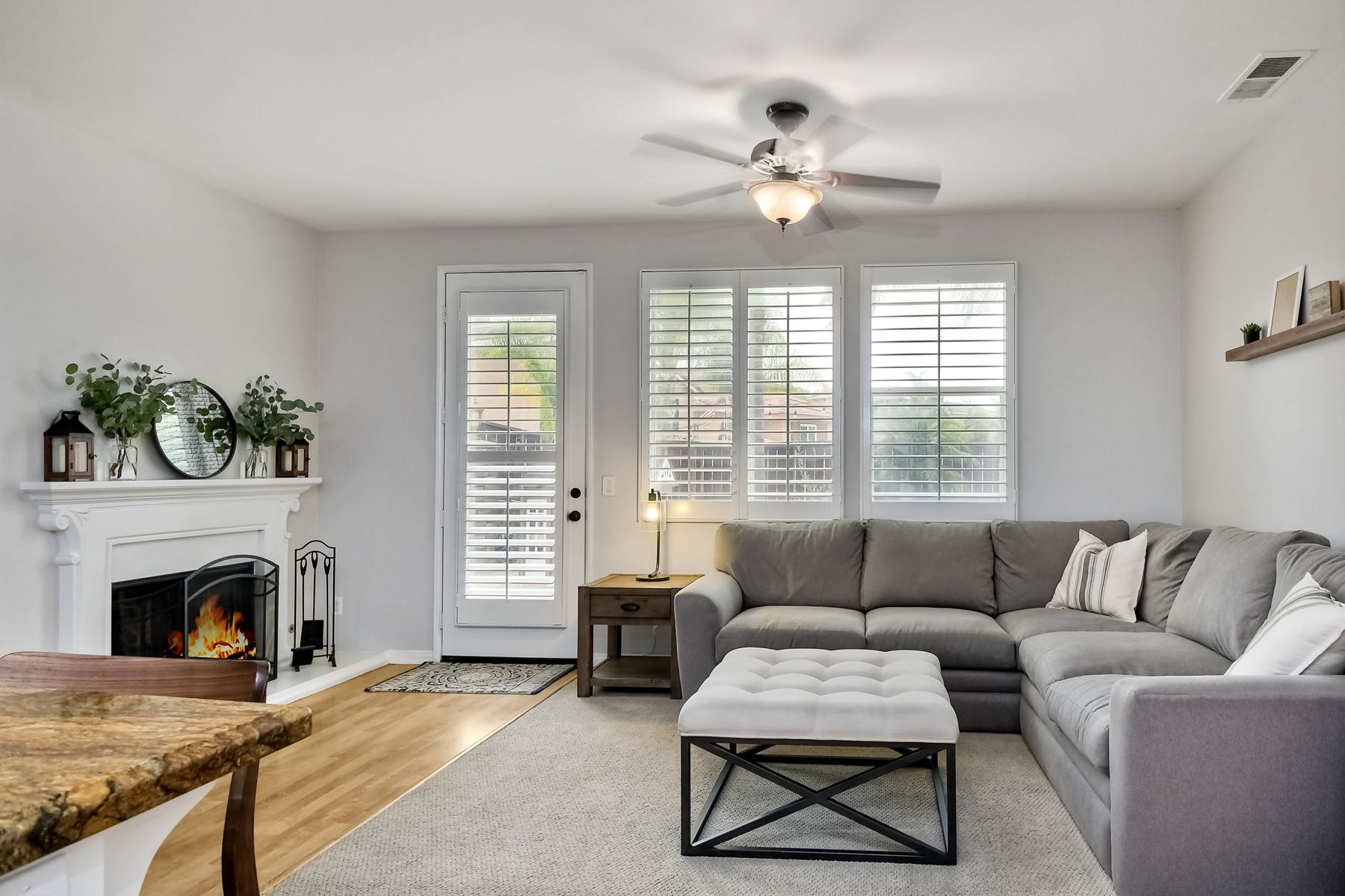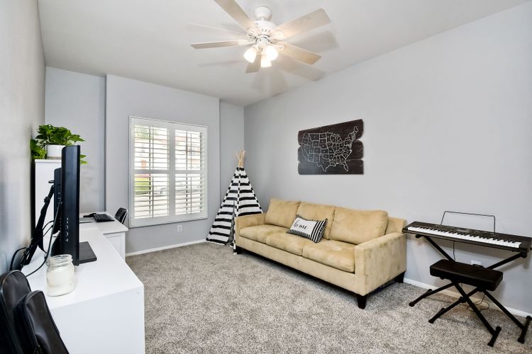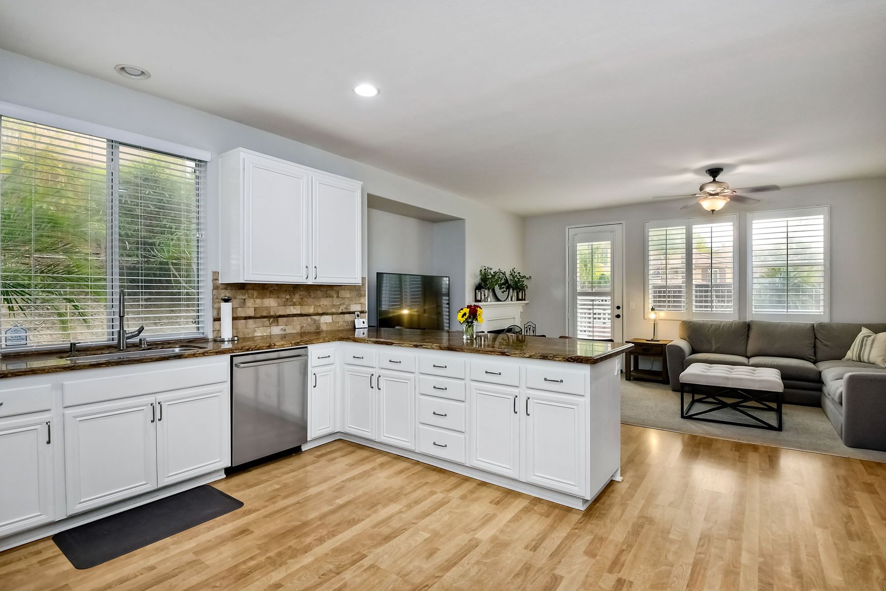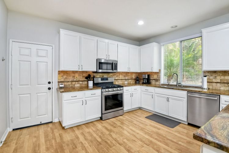 Spectacular home and high vaulted ceilings in living room w/lots of windows & separate dining room. The kitchen opens to family room and features stainless steel appl,Brazilian granite counters & a custom, tumbled marble back splash. Plantation shutters throughout. Huge walk in closet in master. A/C, rain gutters, extra storage in the garage and beautiful stained, acid etched patio and nice grassy area. Cute side yd. utility room w electricity. Super Area, parks and rec. area close by. Hurry. Won't last. [Supplement]: Santa Fe Hills is a sought after neighborhood in San Marcos. NO HOA! 4 bedrooms, 2.5 baths, 2,302 SF in popular Tesoro neighborhood. Great schools!