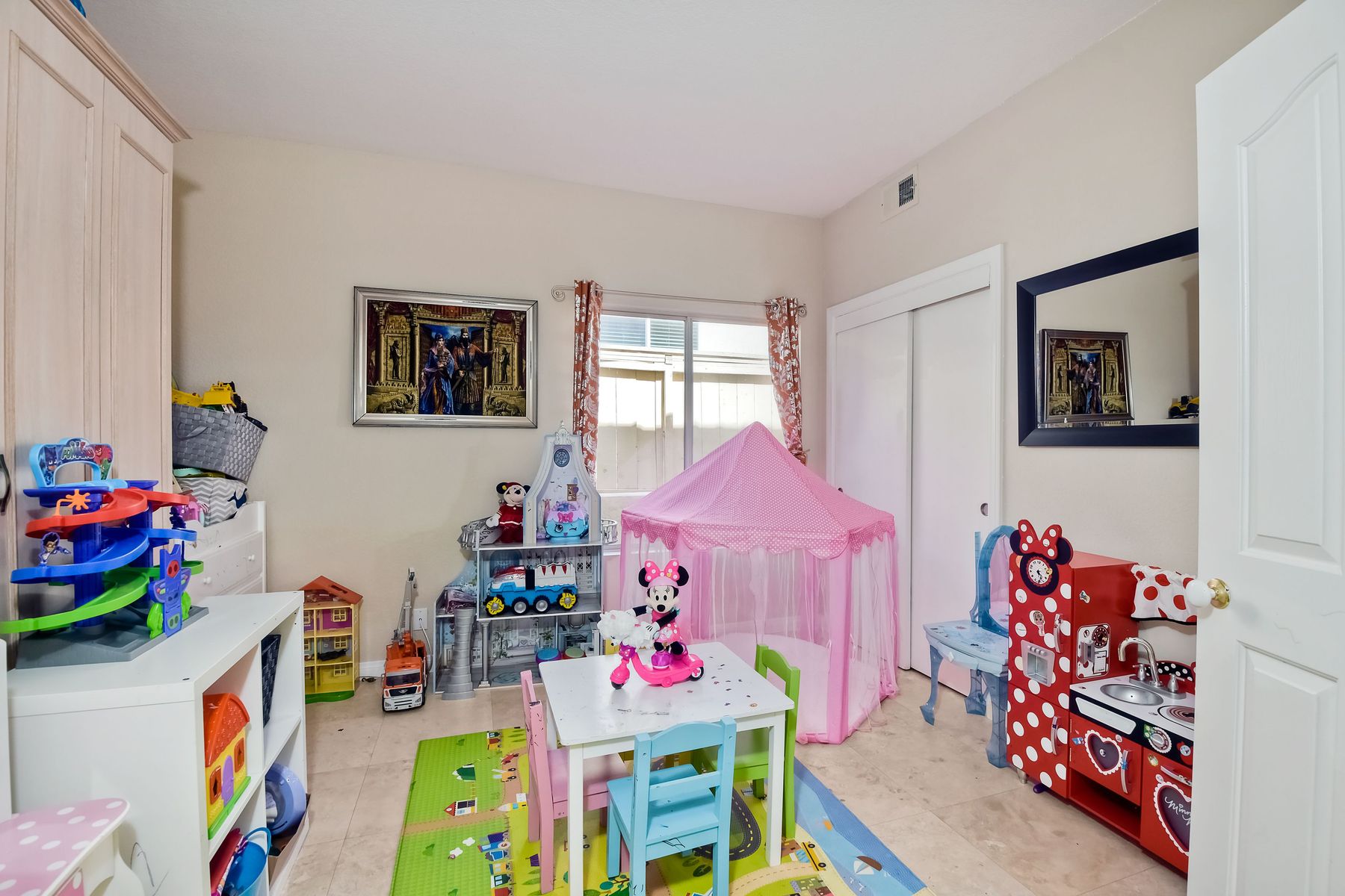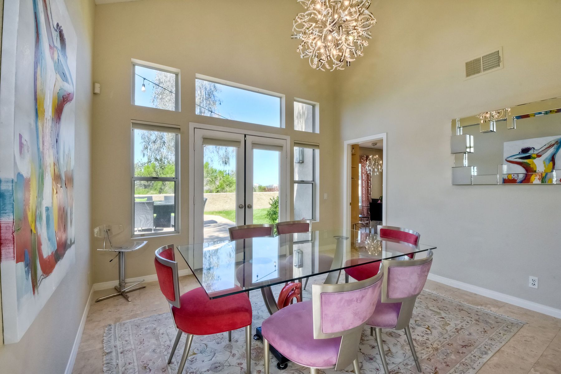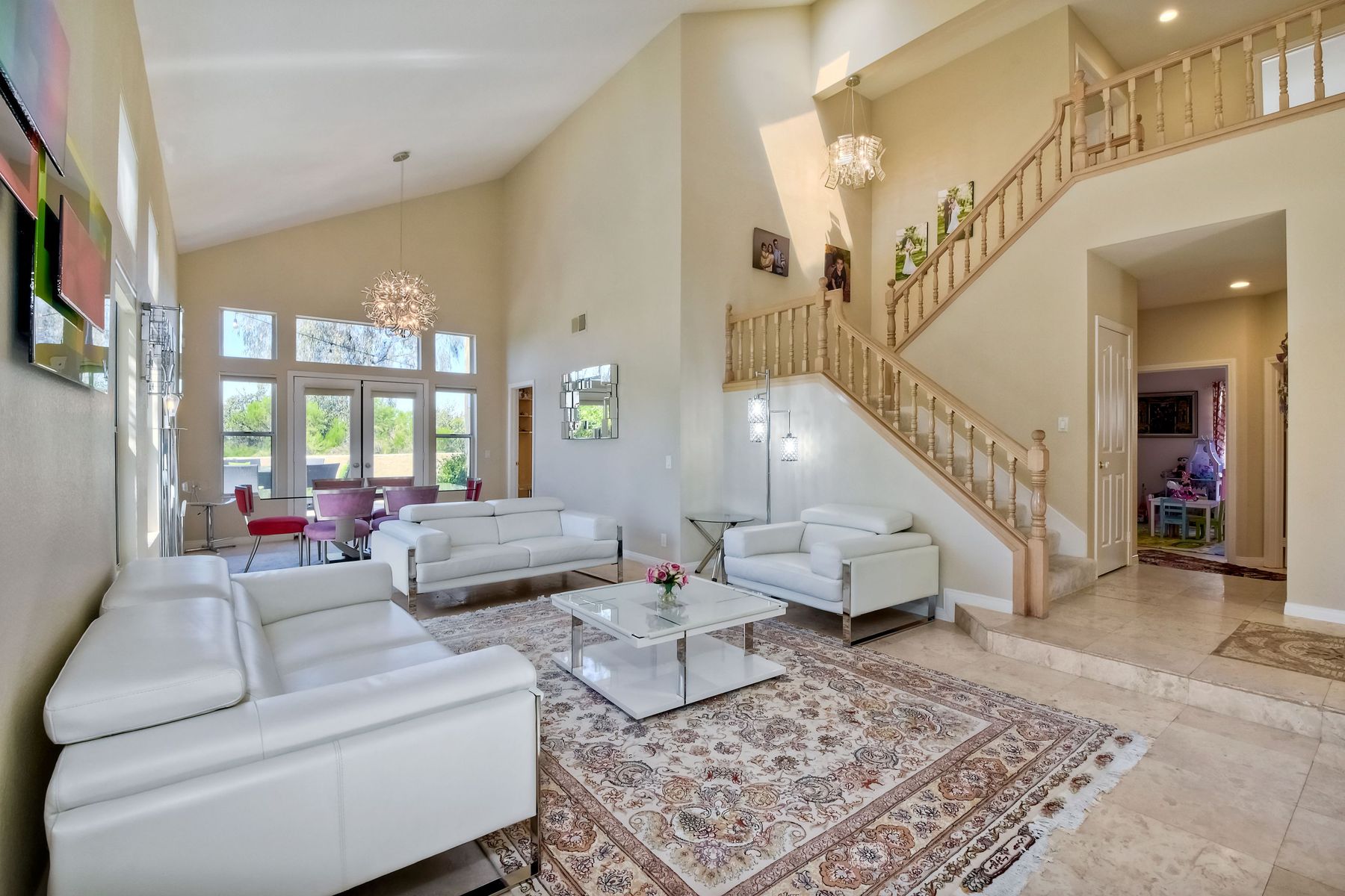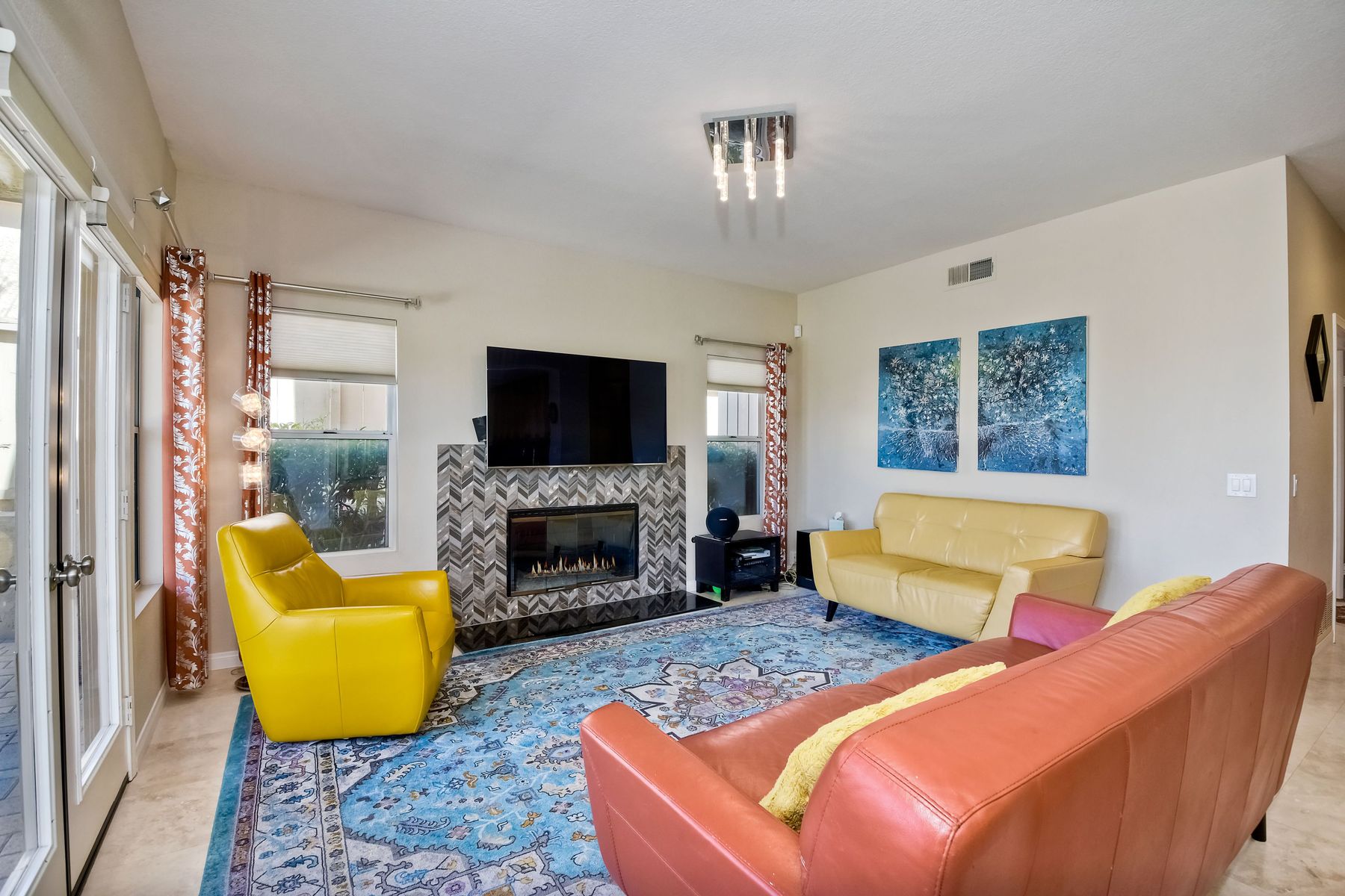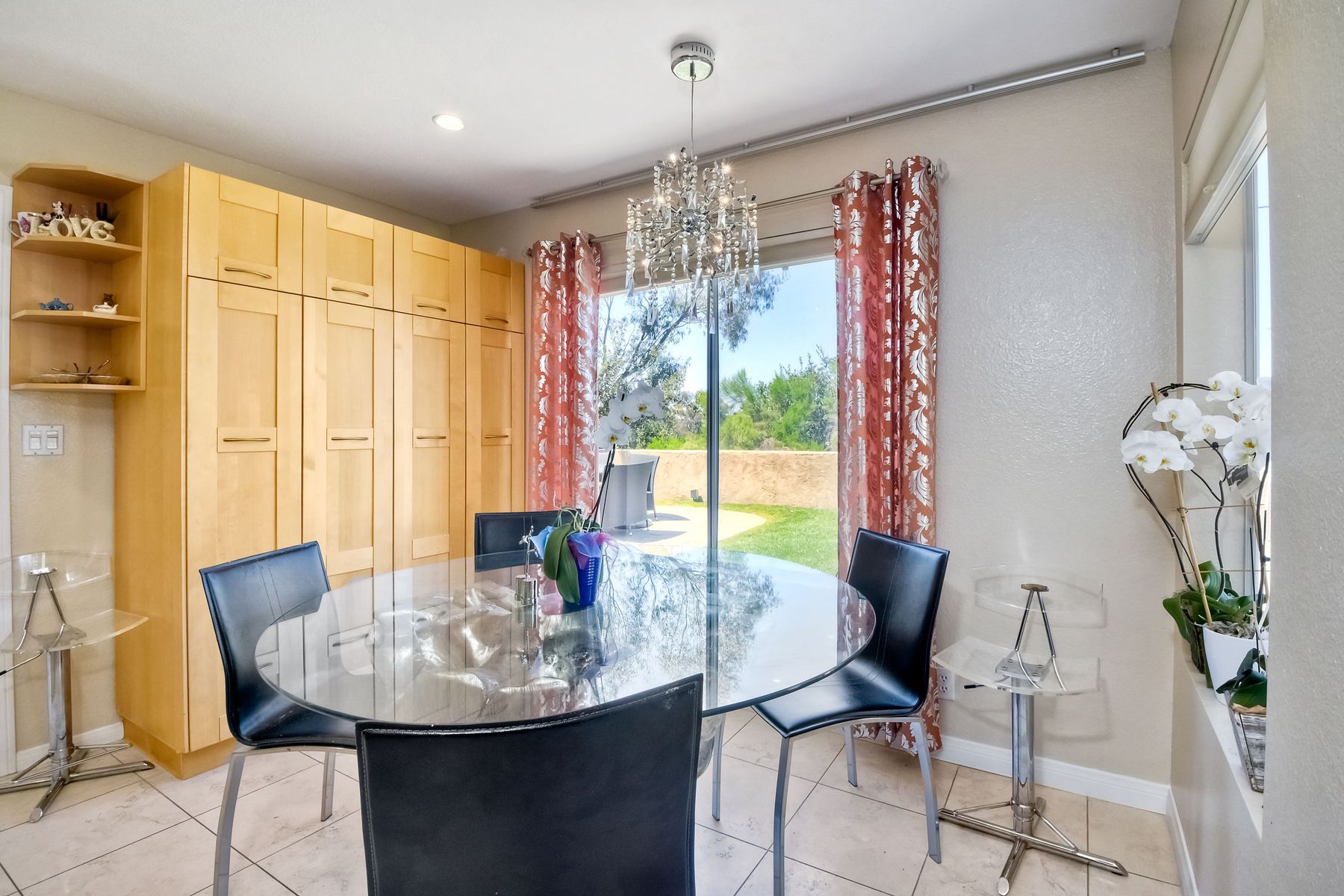 Highly sought after, rarely available elevated lake view! Soak up the amazing Miramar Lake view, breathtaking sunsets & westerly breezes on this oversized corner lot beauty! So much natural light throughout this stunning property! Step into the open & light living & dining areas appointed with soaring high ceilings & travertine tile floors throughout first floor, including custom mosaic medallion at entry. Renovated kitchen features contemporary cabinetry, large center island, solid counters, custom tiled backsplash, travertine tile floors, eat-in area with stainless steel sink & appliances. Awesome built-in storage! Open & bright family room features contemporary light fixture & French doors looking out to beautiful resort-style backyard with view of Miramar Lake. Fireplaces in living & family rooms feature custom tiled surround. Bedroom & full bath on first floor includes Murphy Bed. All bathrooms have been completely renovated with replaced cabinetry, travertine tiled showers, modern glass closures, natural stone countertops, toilets, fixtures & lighting. The ethereal, light & inviting owner’s suite features breathtaking rooftop, city & lake views with coastal breezes from open French doors to balcony. Sparkling owner’s bath beams with natural light offering an updated luxury bathroom equipped with tub, double sinks, updated cabinet with quartz countertop, travertine tiled custom shower & glass surround, with extra-large double walk-in closet & plantation shutters. 2 additional bedrooms upstairs, one with large window seat & plantation shutters. Manicured front yard with private front window garden & walk way surrounds property with mature trees that offer lots of shade & privacy. Beautiful backyard offers pavered patios & lawn area, elevated above the trees with stunning wisteria for added privacy; manicured side yard to gated front. 2-car garage upgraded with epoxy floors & overhead storage. Great location! Close to lake, schools, parks, shopping and dining. Short walk to Lakeview Park with trail to lake. Easy freeway access. If you are looking for an open, light & bright property with unique lake views, this is the property for you! So much to offer! Exceptional!