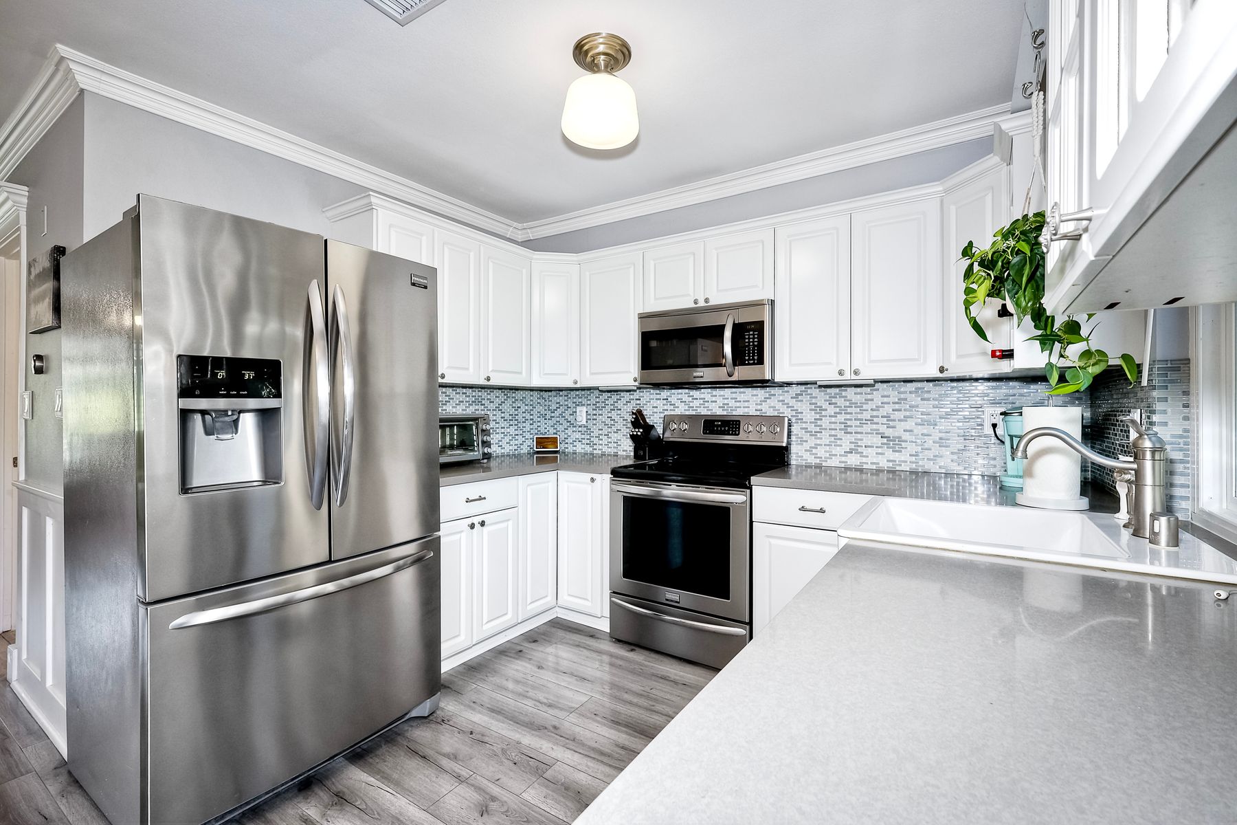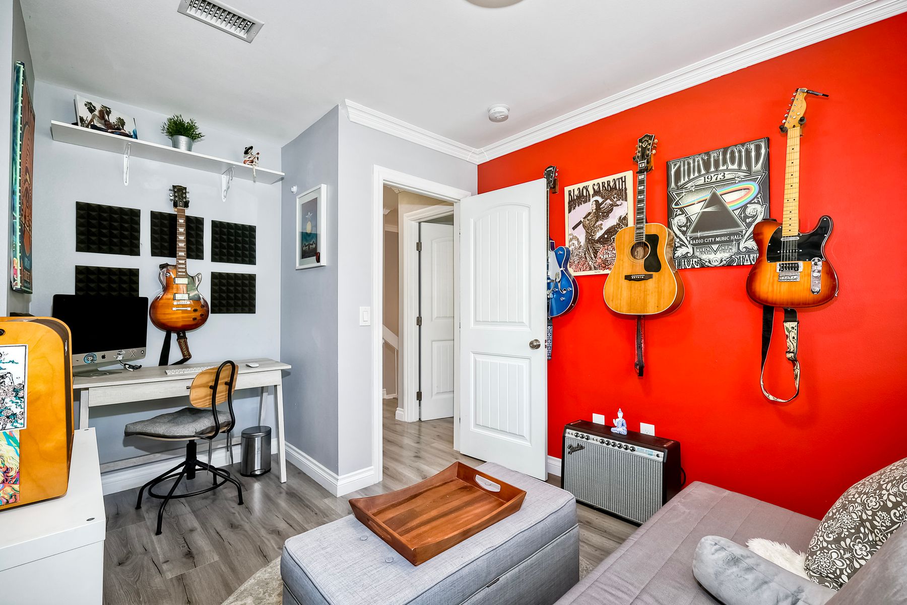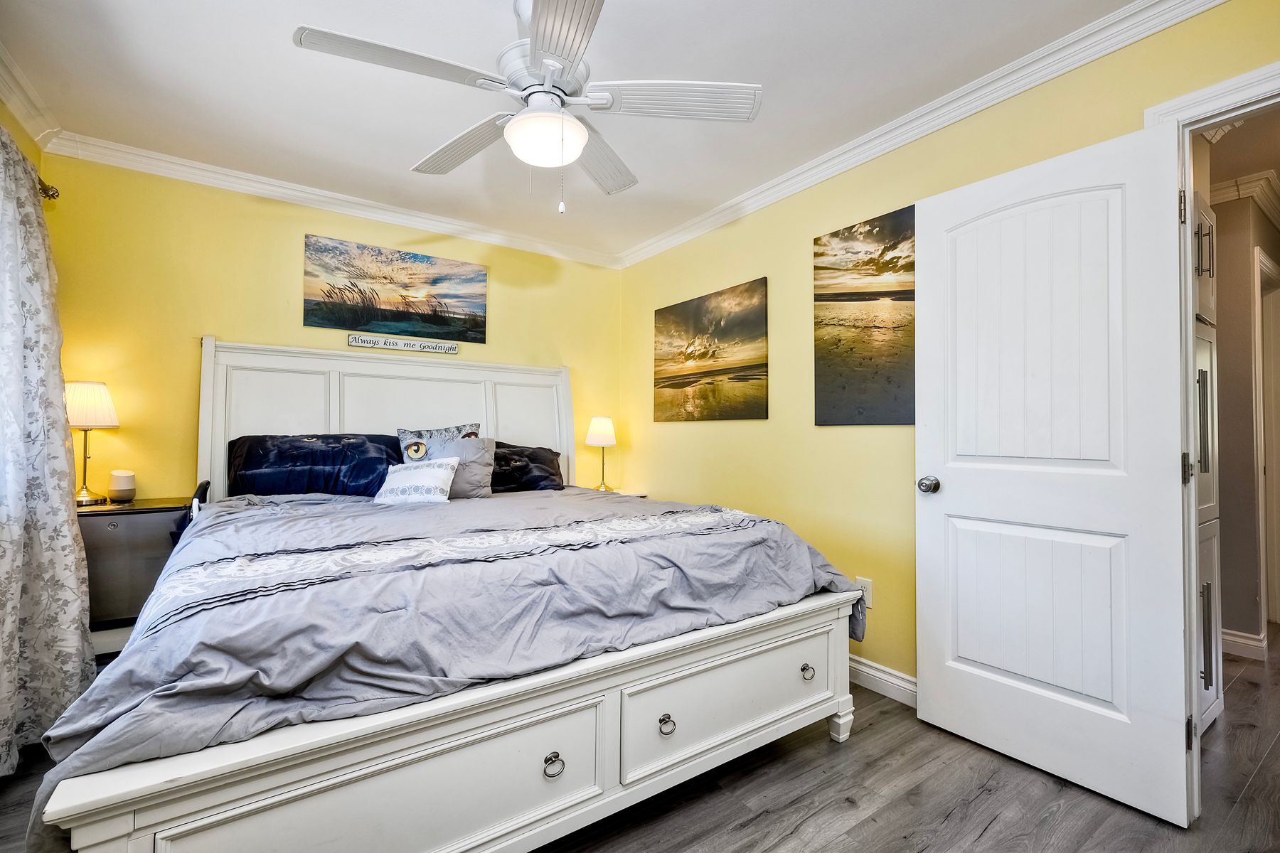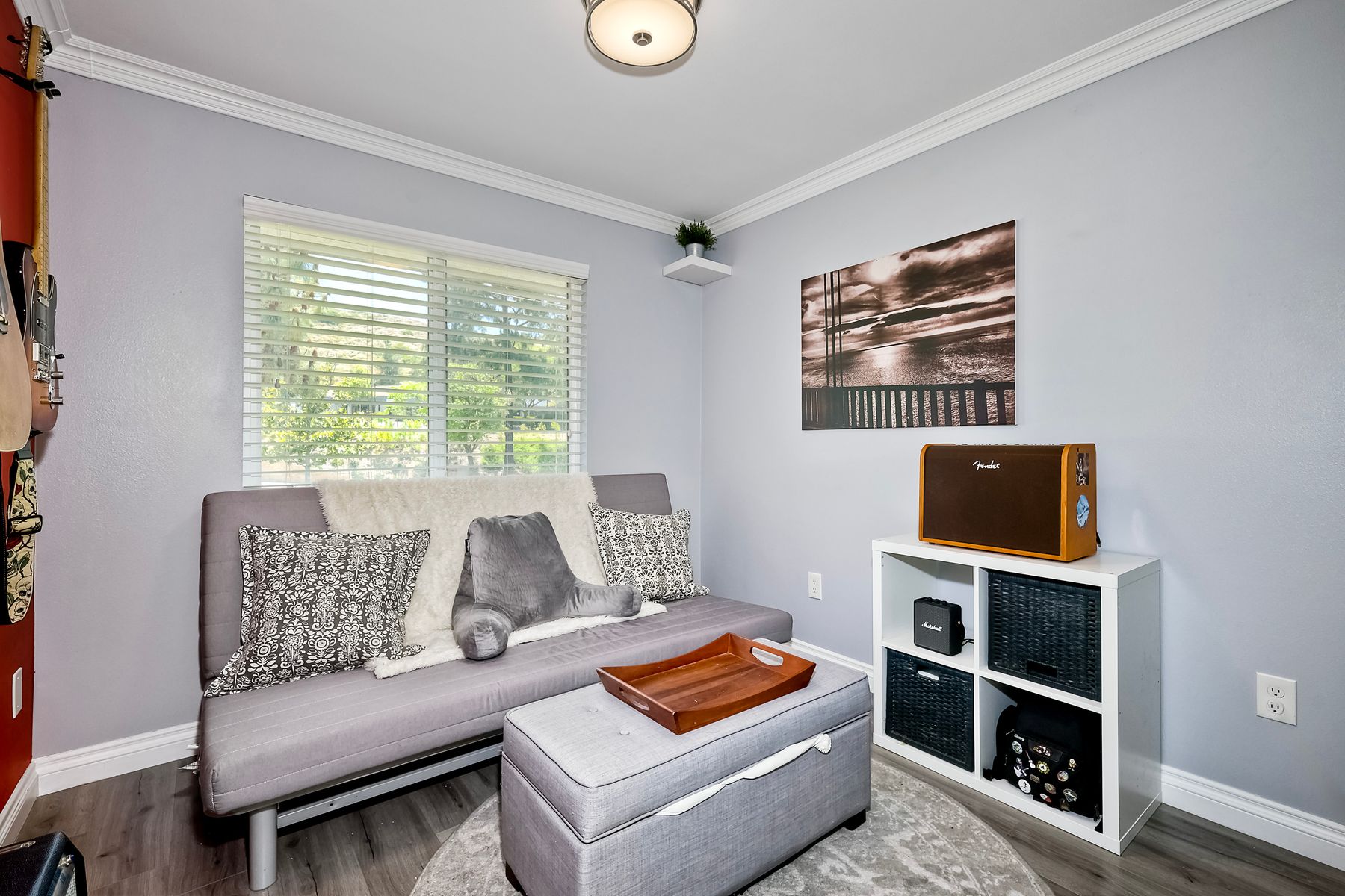 Beautifully updated - new wood floors, crown molding, paint, lights, counter tops, kitchen cabinets, stainless steel appliances, windows, paneling, ceiling fans, A/C, custom cabinets in dining room and glass backsplash, new vanities and lighting in bathrooms, Enjoy the beautiful patio and the detached one car garage. All bedrooms upstairs. Front door faces EAST. HOA amenities include pool, spa, and playground.