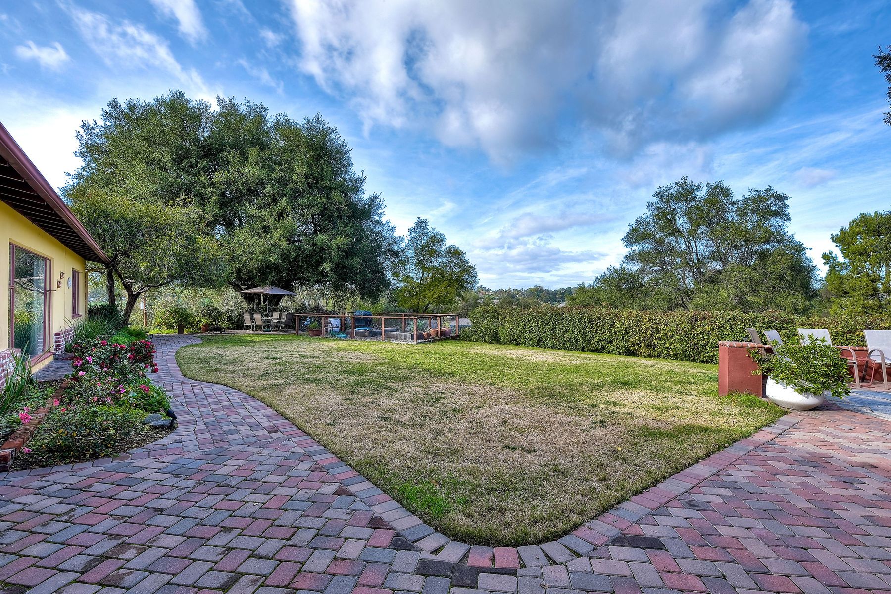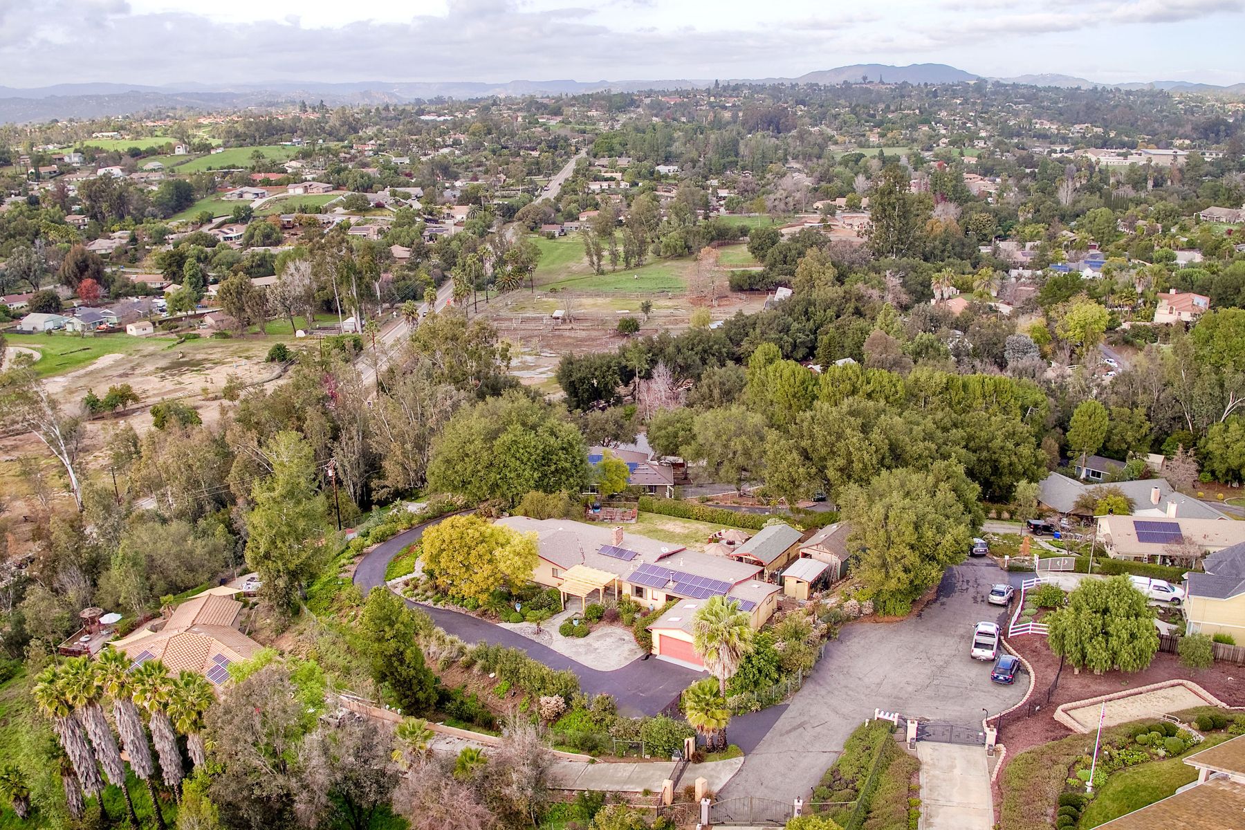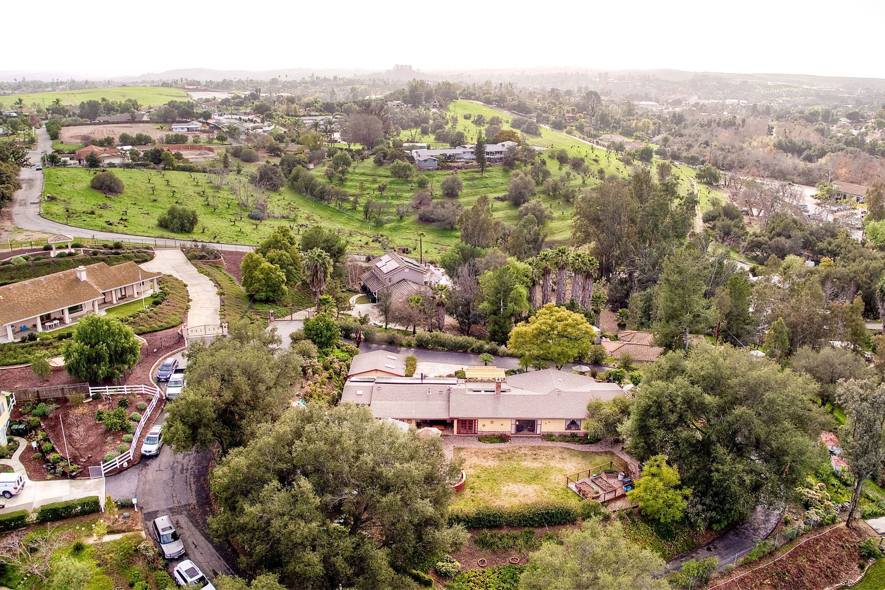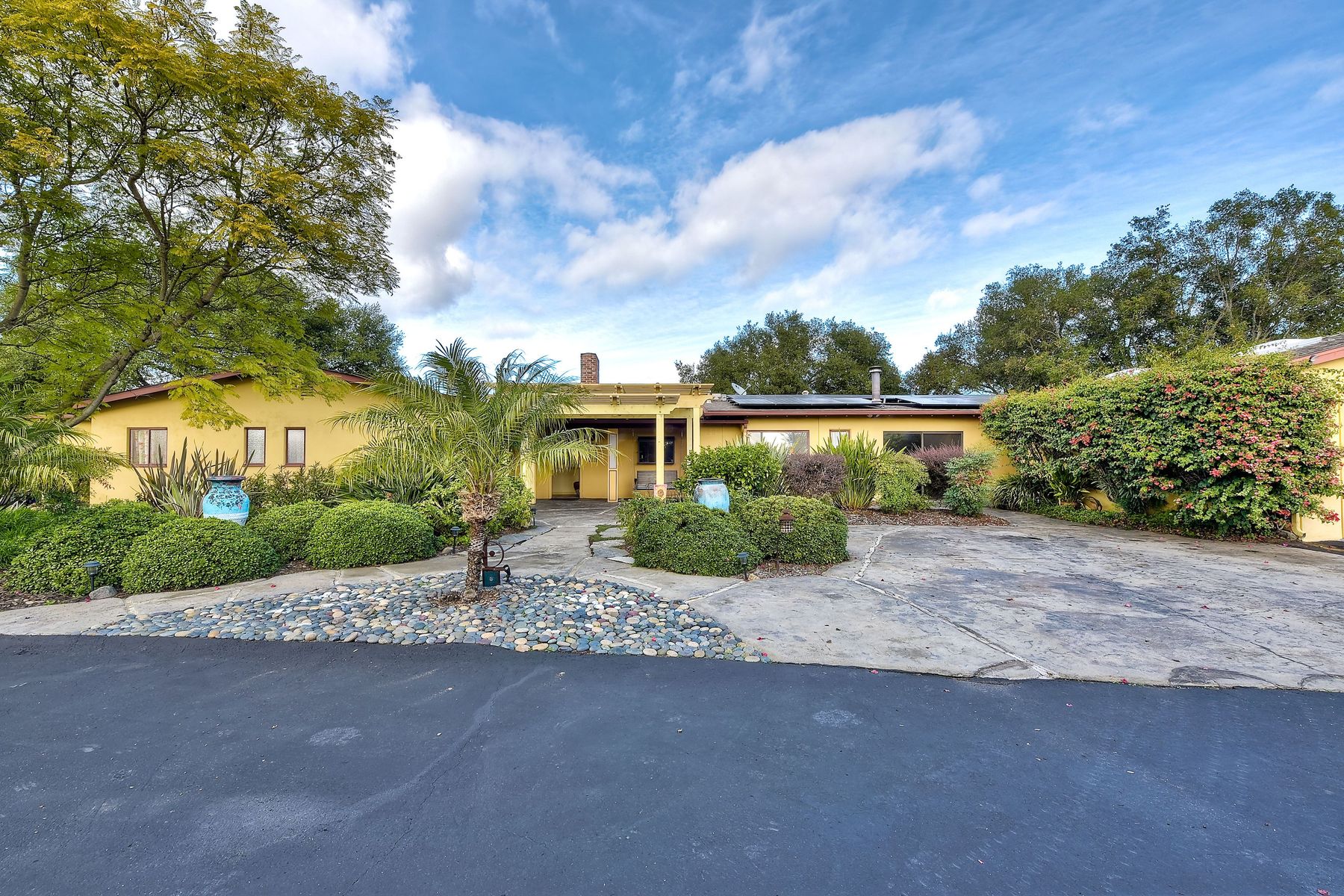 From your custom gate and up the driveway past majestic ancient oaks you arrive at your secluded Fallbrook one level Villa. You will be drawn to lush landscaping, 15 fruit trees, detached shop, raised garden and several outdoor entertaining destinations. Your new home full of charm includes custom wood cabinetry, high end appliances, cozy wood burning stoves and fireplace. Embrace the peace and security from your fenced hilltop getaway as you enjoy the amazing sky filled sunsets. Full paid solar included Neighborhoods: Fallbrook Architectural Style: Craftsman/Bungalow View: Craftsman/Bungalow Equipment: Garage Door Opener, Shed(s) Other Fees: 0 Sewer: Sewer Connected Topography: LL,RSLP