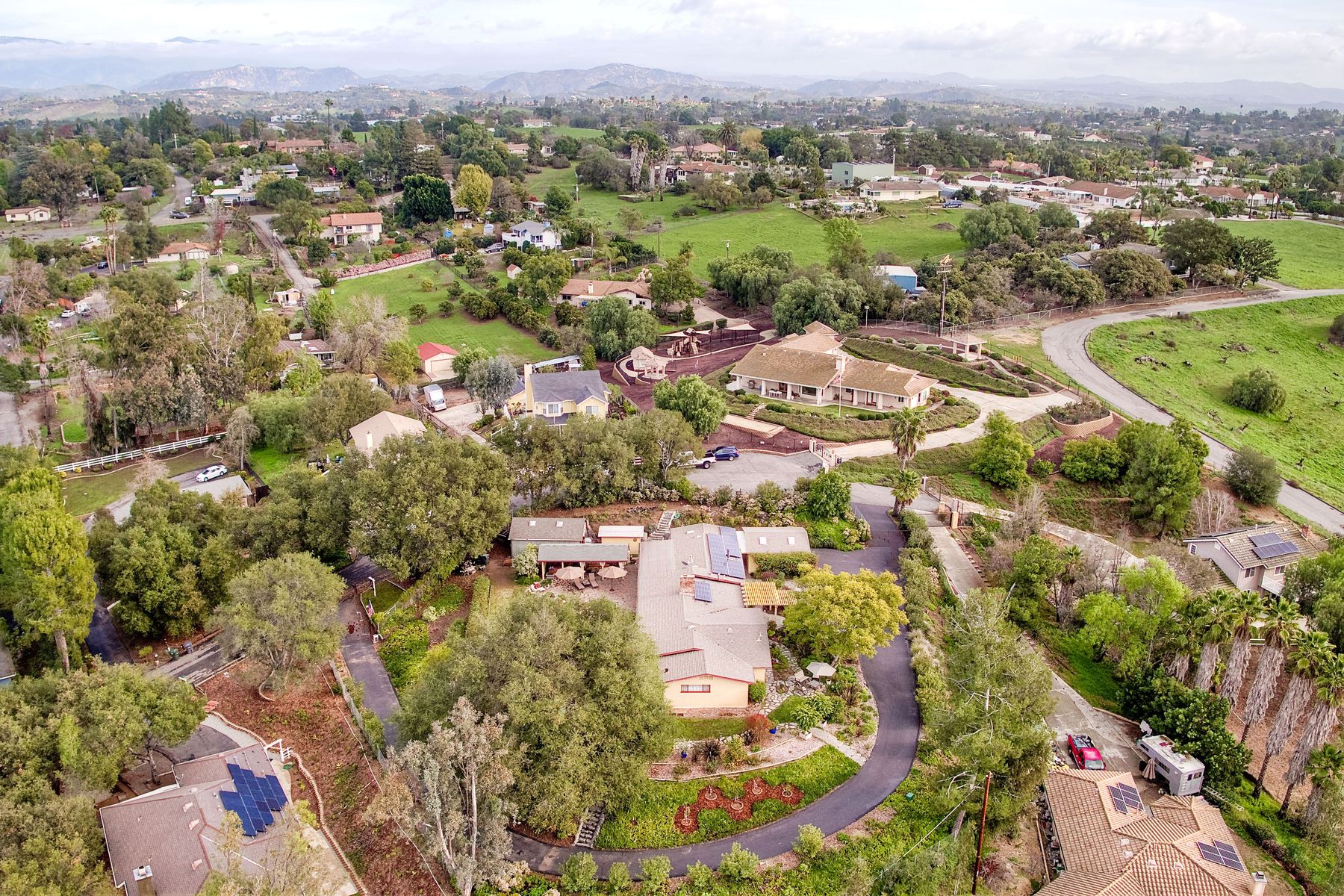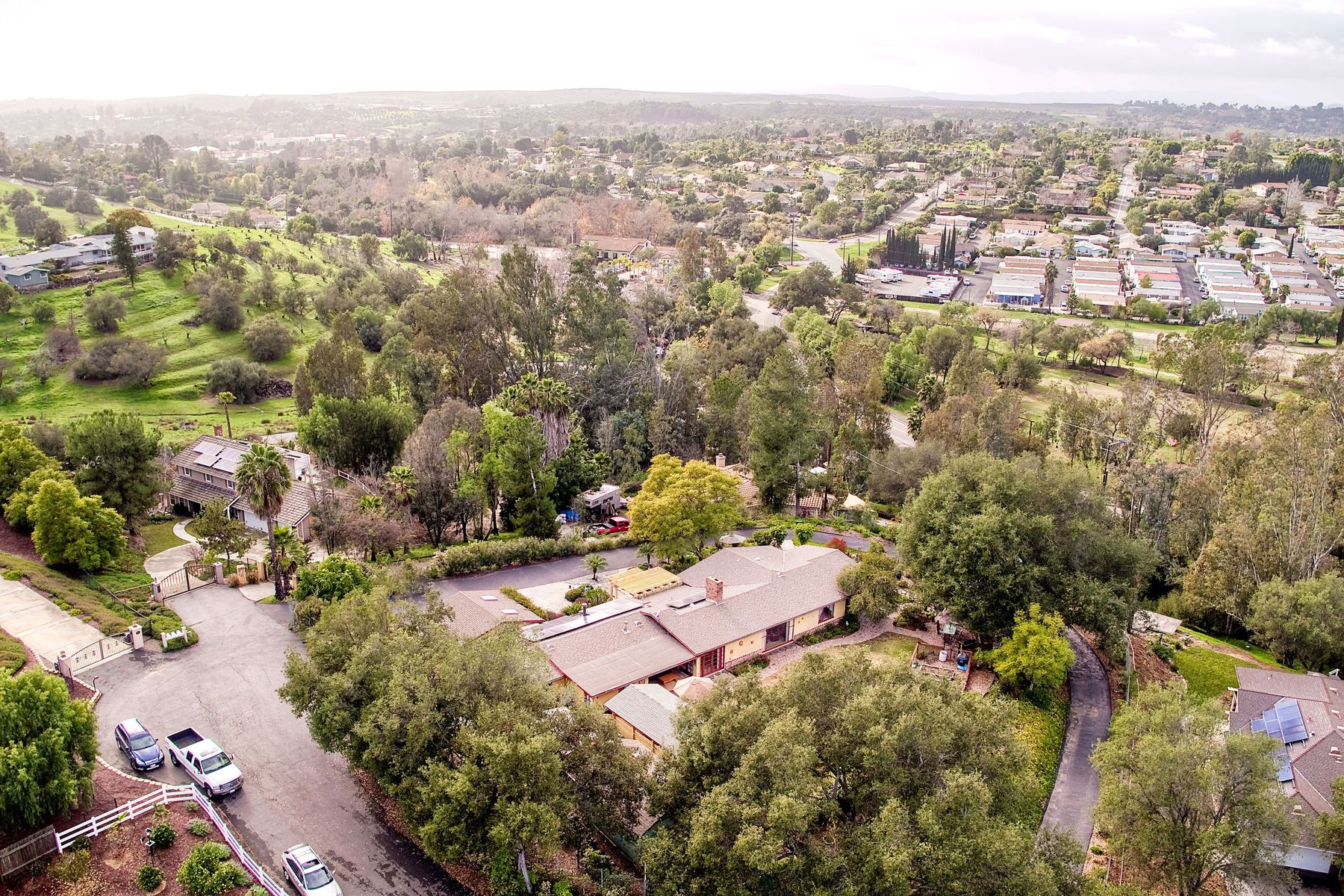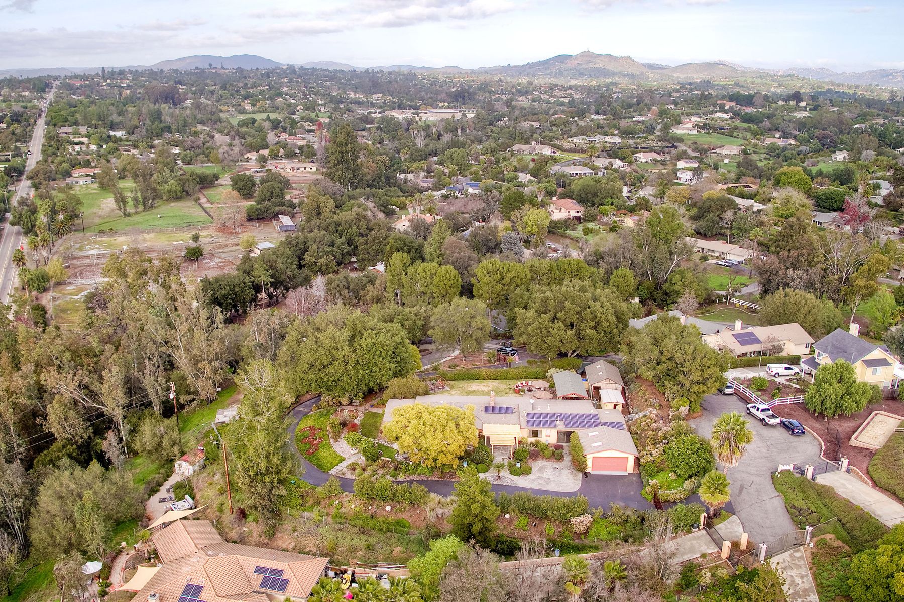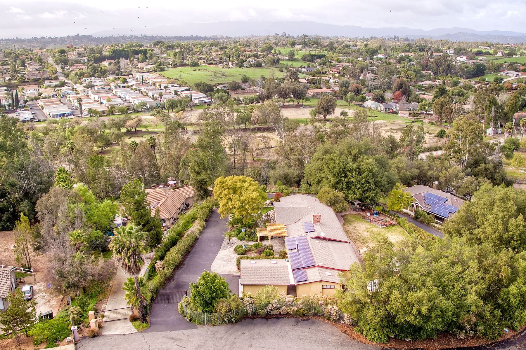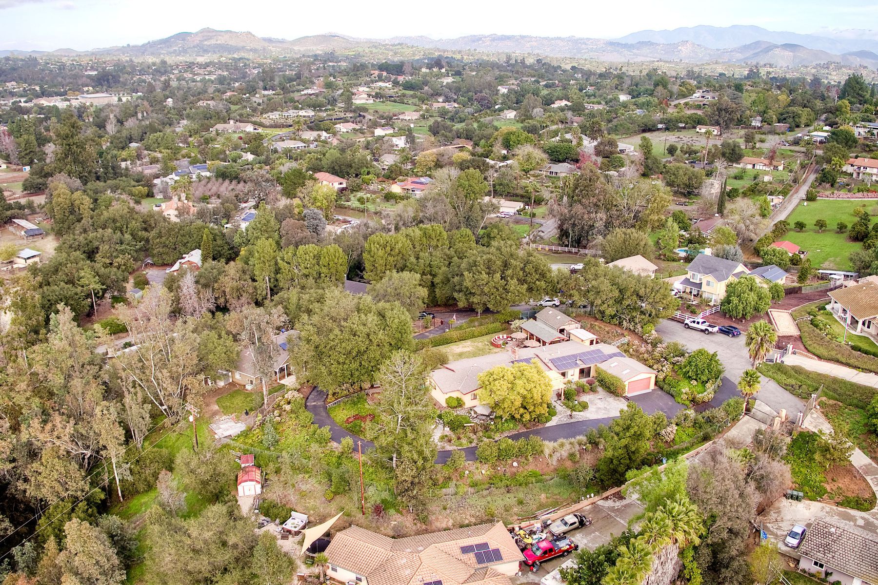 From your custom gate and up the driveway past majestic ancient oaks you arrive at your secluded Fallbrook one level Villa. You will be drawn to lush landscaping, 15 fruit trees, detached shop, raised garden and several outdoor entertaining destinations. Your new home full of charm includes custom wood cabinetry, high end appliances, cozy wood burning stoves and fireplace. Embrace the peace and security from your fenced hilltop getaway as you enjoy the amazing sky filled sunsets. Full paid solar included Neighborhoods: Fallbrook Architectural Style: Craftsman/Bungalow View: Craftsman/Bungalow Equipment: Garage Door Opener, Shed(s) Other Fees: 0 Sewer: Sewer Connected Topography: LL,RSLP