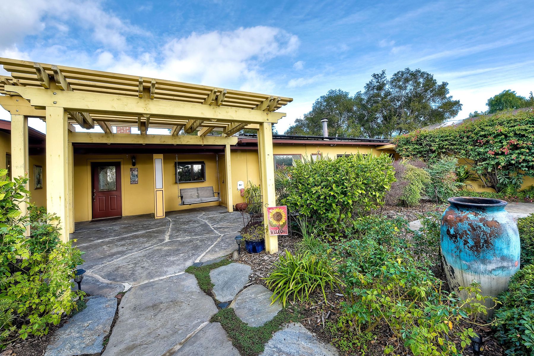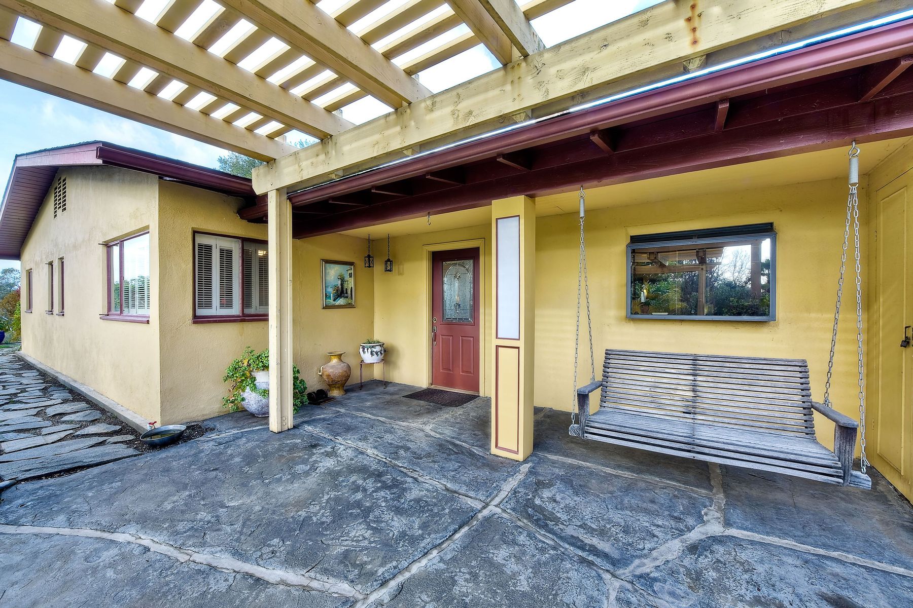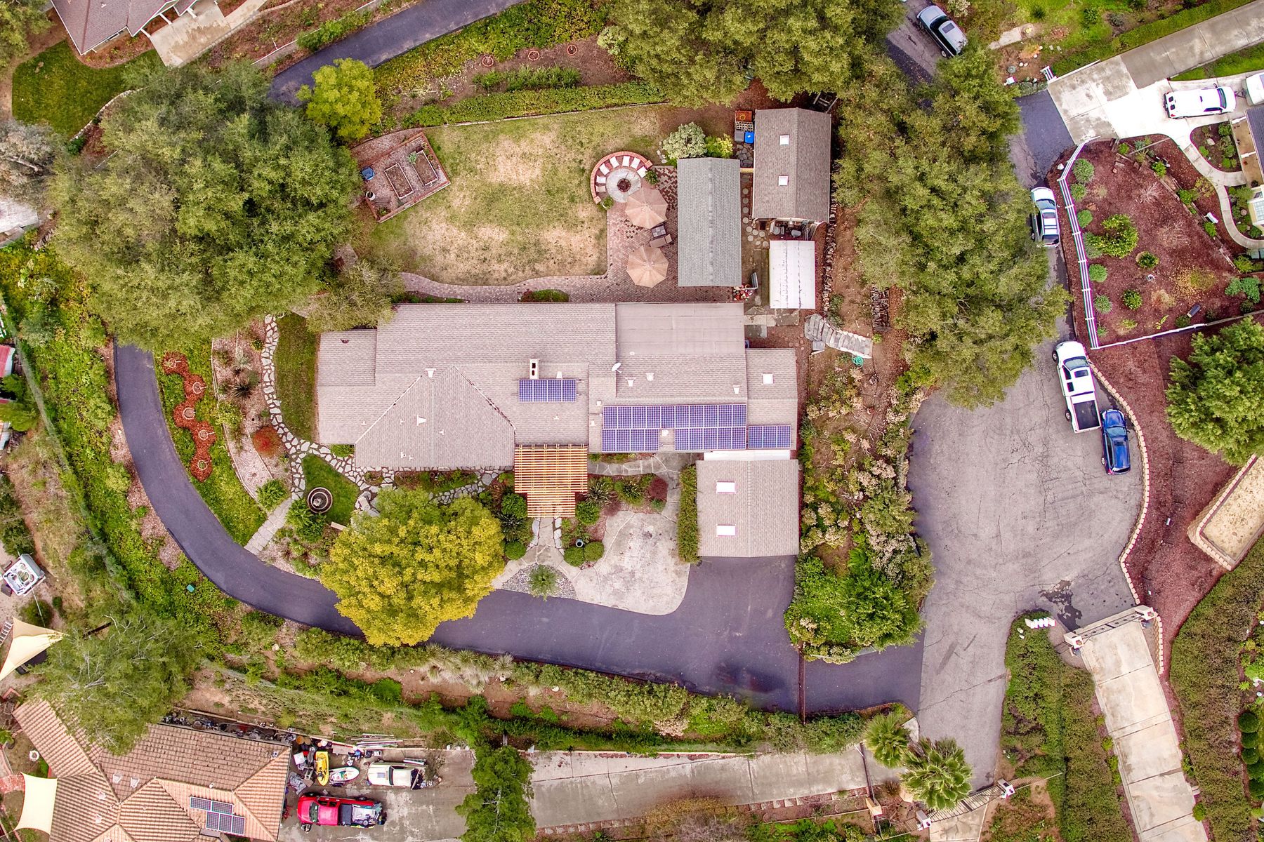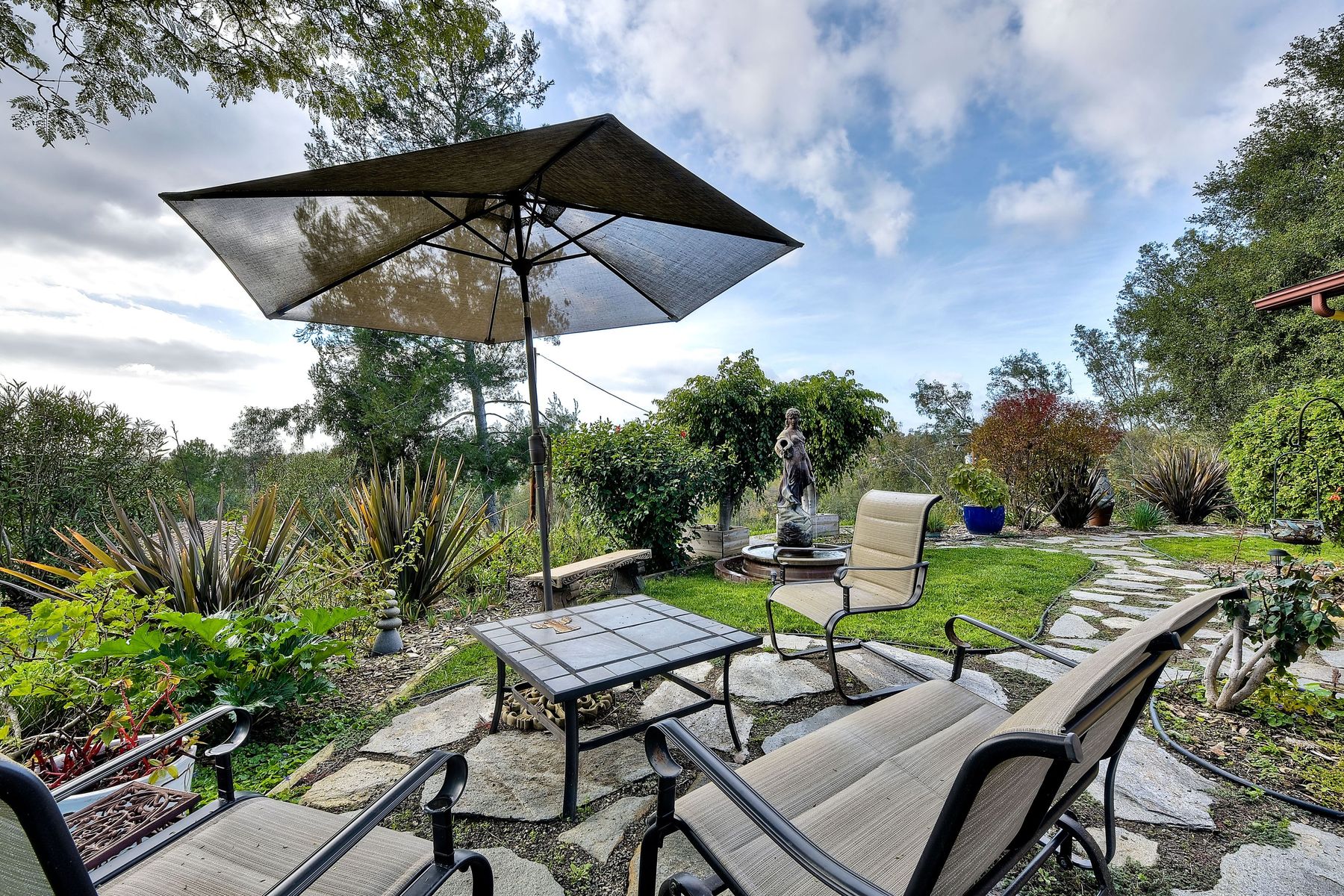 From your custom gate and up the driveway past majestic ancient oaks you arrive at your secluded Fallbrook one level Villa. You will be drawn to lush landscaping, 15 fruit trees, detached shop, raised garden and several outdoor entertaining destinations. Your new home full of charm includes custom wood cabinetry, high end appliances, cozy wood burning stoves and fireplace. Embrace the peace and security from your fenced hilltop getaway as you enjoy the amazing sky filled sunsets. Full paid solar included Neighborhoods: Fallbrook Architectural Style: Craftsman/Bungalow View: Craftsman/Bungalow Equipment: Garage Door Opener, Shed(s) Other Fees: 0 Sewer: Sewer Connected Topography: LL,RSLP