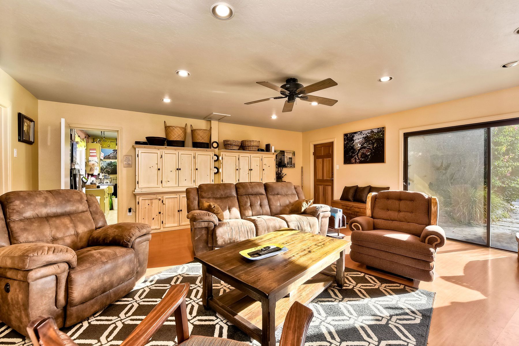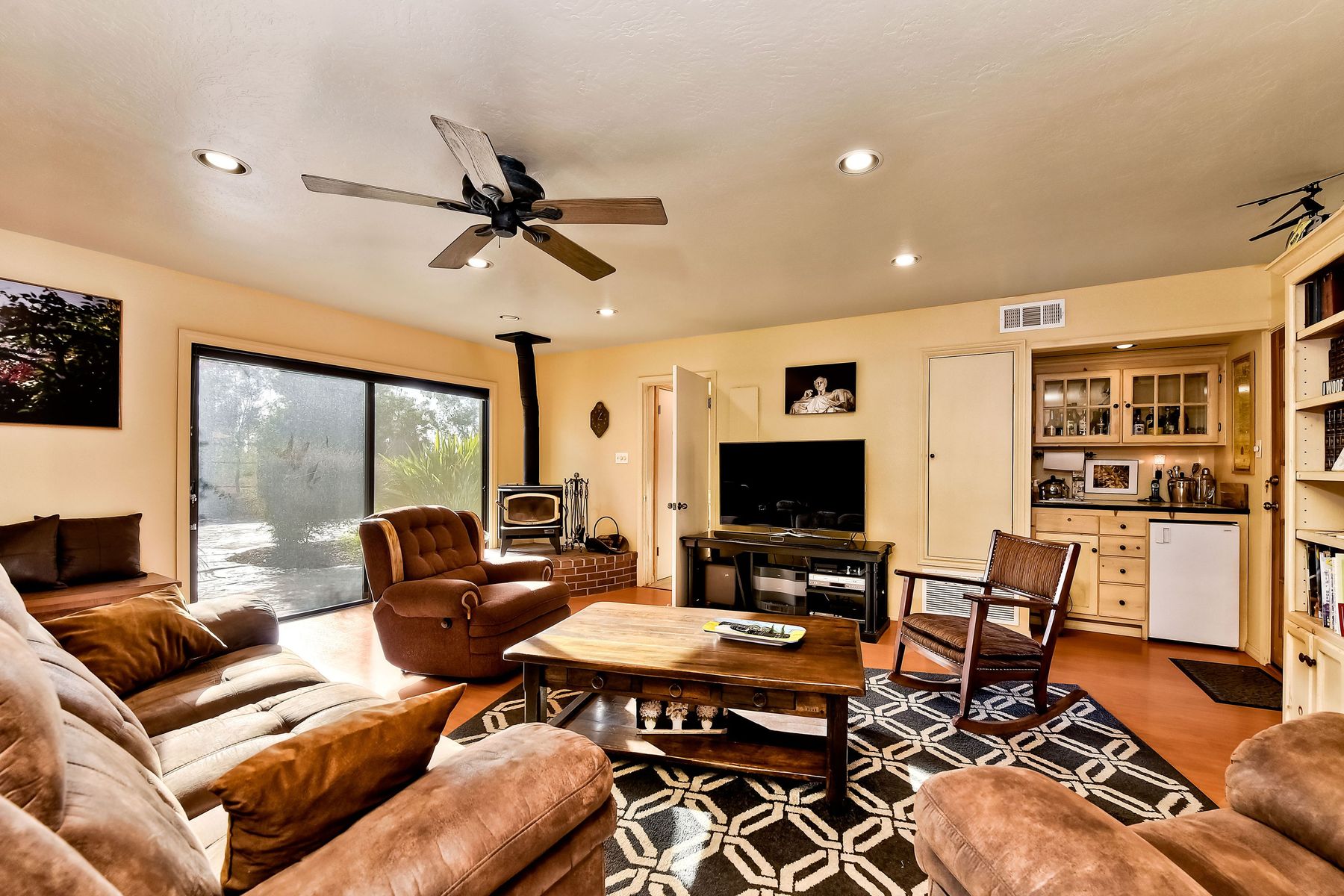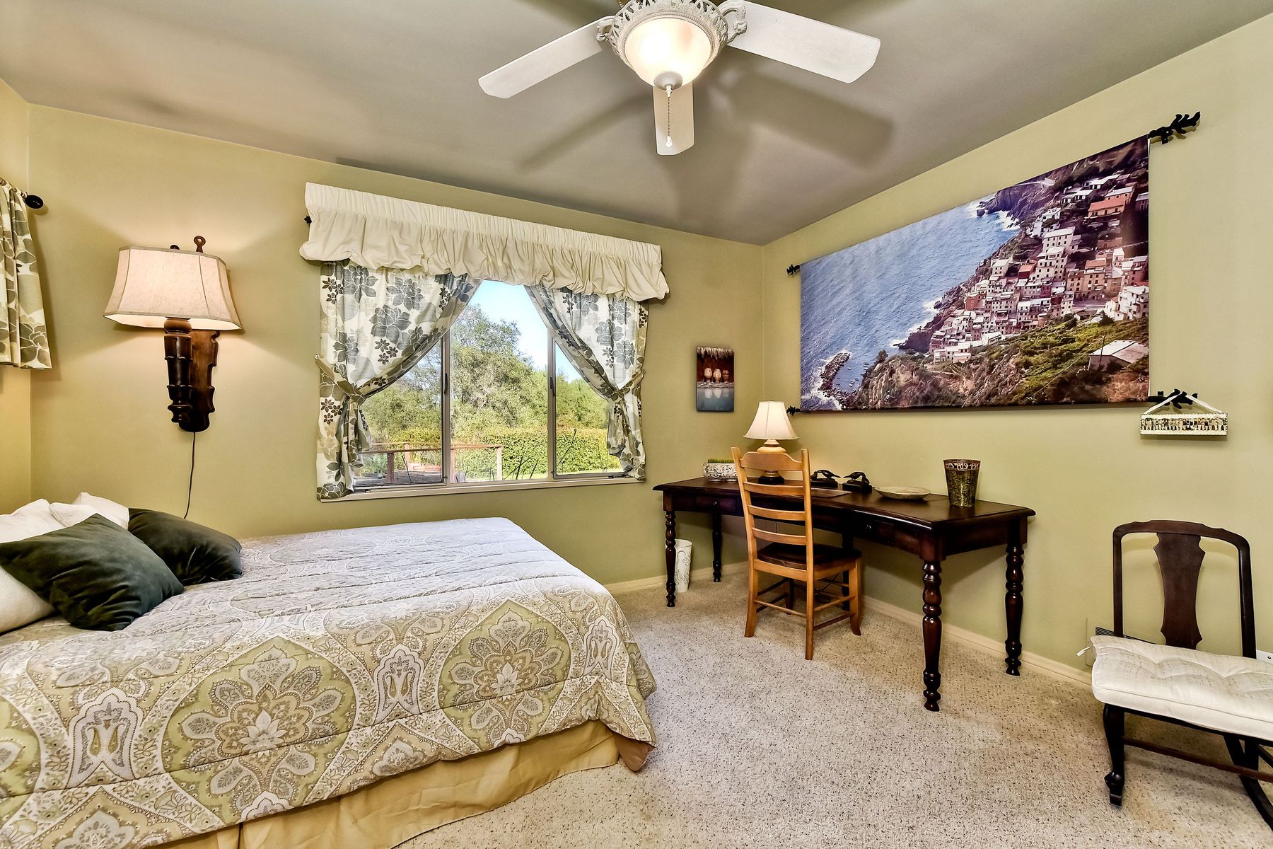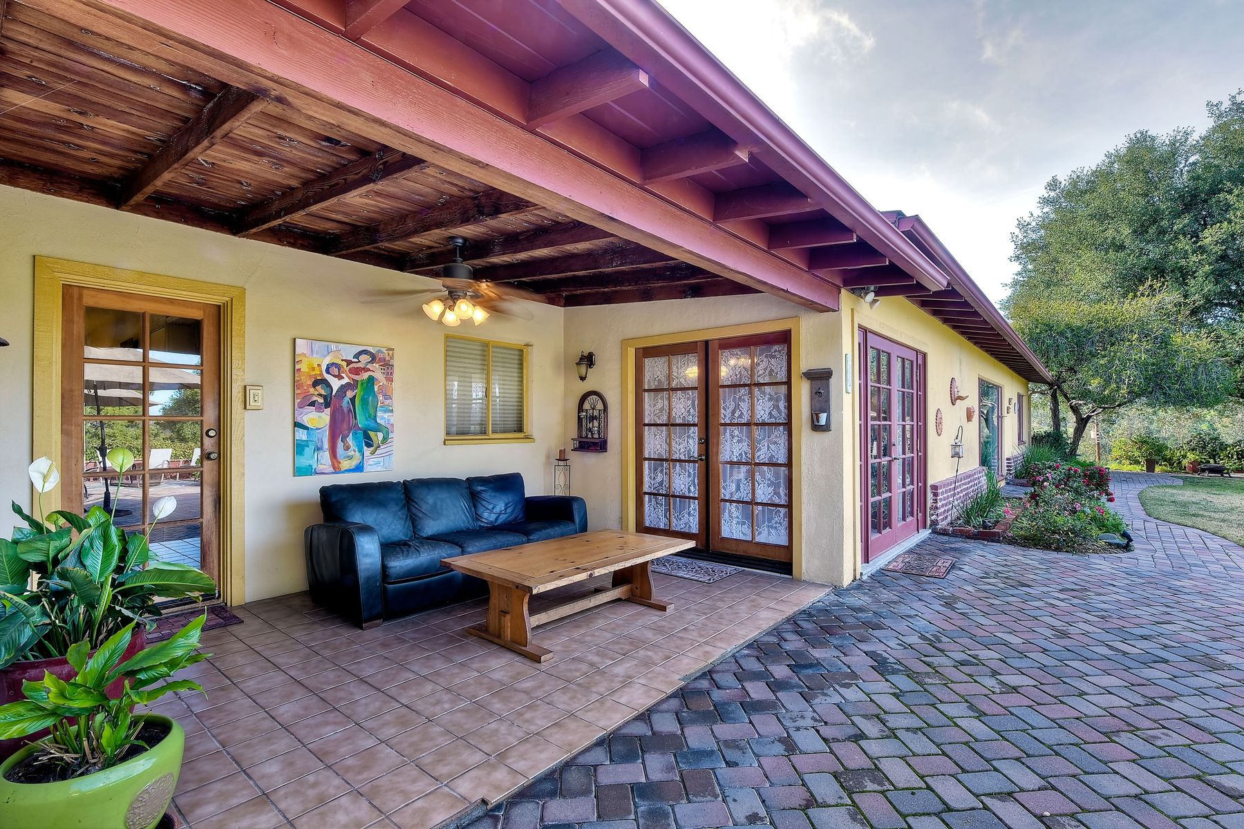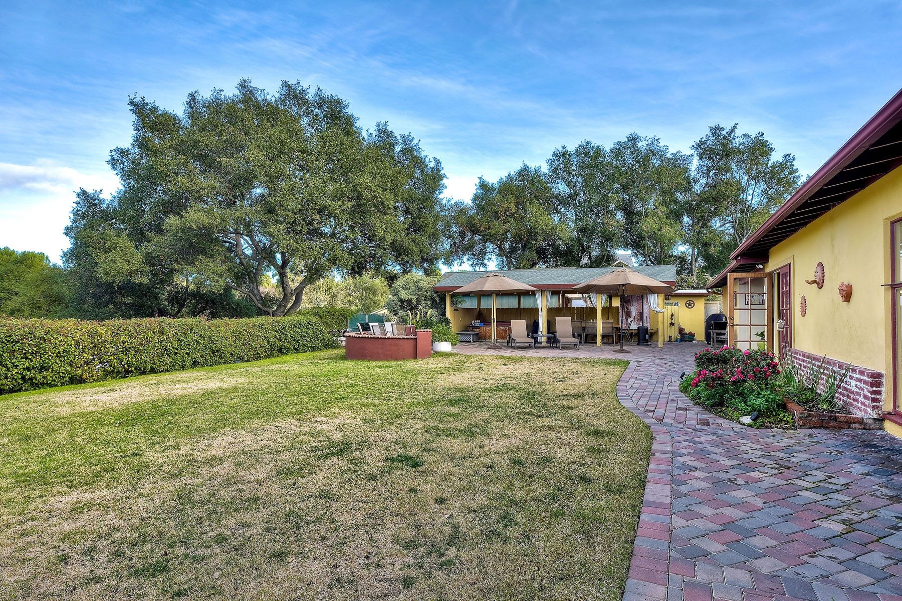 From your custom gate and up the driveway past majestic ancient oaks you arrive at your secluded Fallbrook one level Villa. You will be drawn to lush landscaping, 15 fruit trees, detached shop, raised garden and several outdoor entertaining destinations. Your new home full of charm includes custom wood cabinetry, high end appliances, cozy wood burning stoves and fireplace. Embrace the peace and security from your fenced hilltop getaway as you enjoy the amazing sky filled sunsets. Full paid solar included Neighborhoods: Fallbrook Architectural Style: Craftsman/Bungalow View: Craftsman/Bungalow Equipment: Garage Door Opener, Shed(s) Other Fees: 0 Sewer: Sewer Connected Topography: LL,RSLP