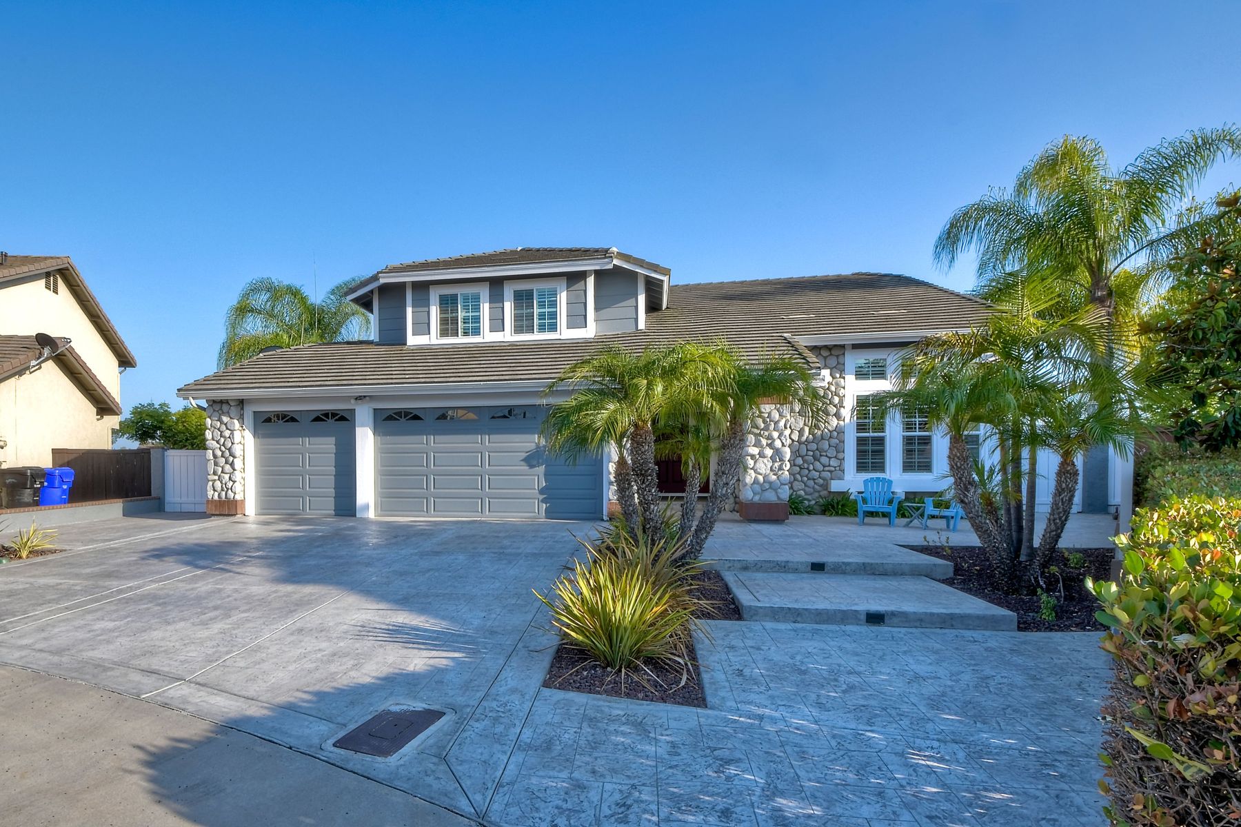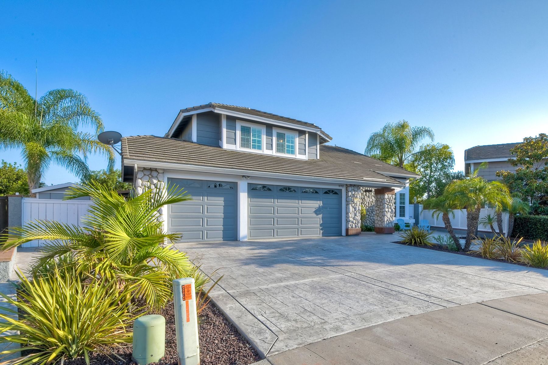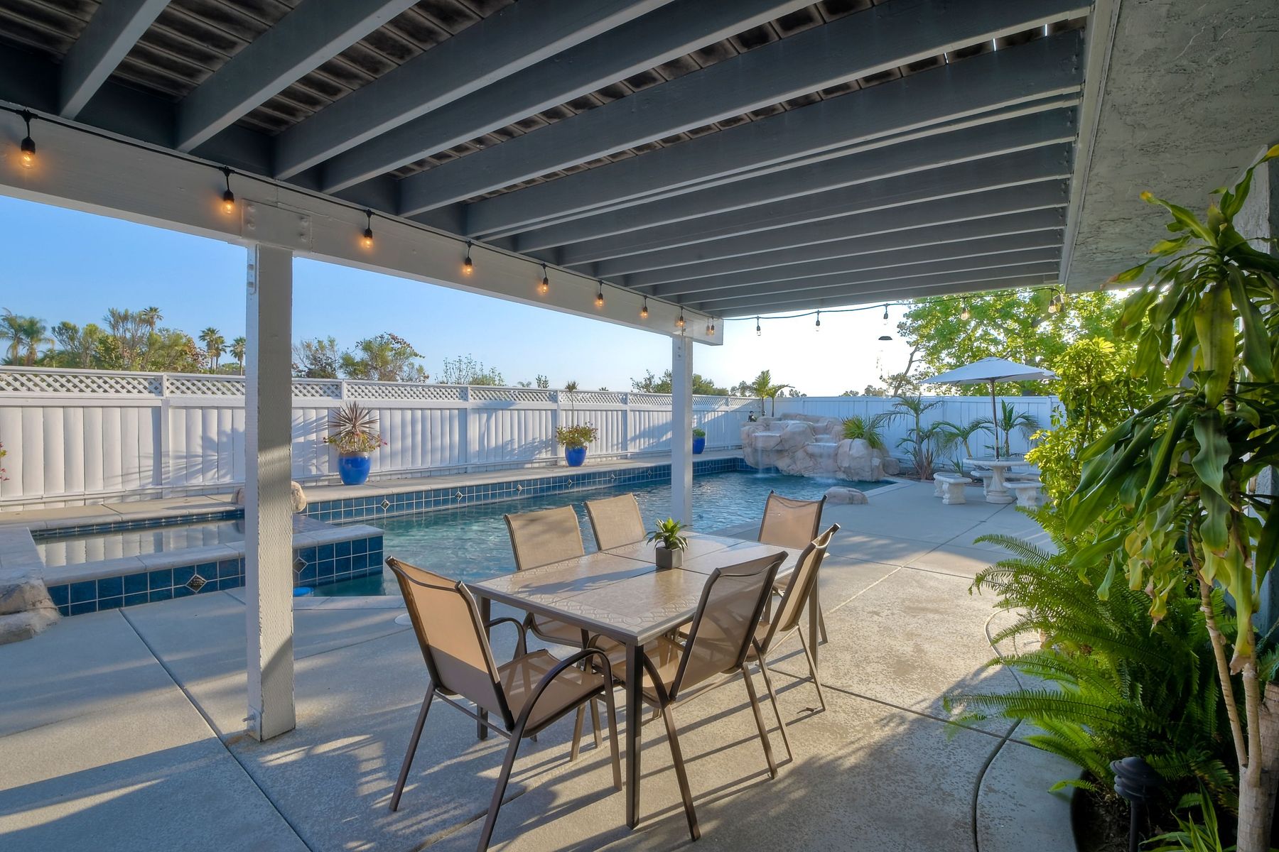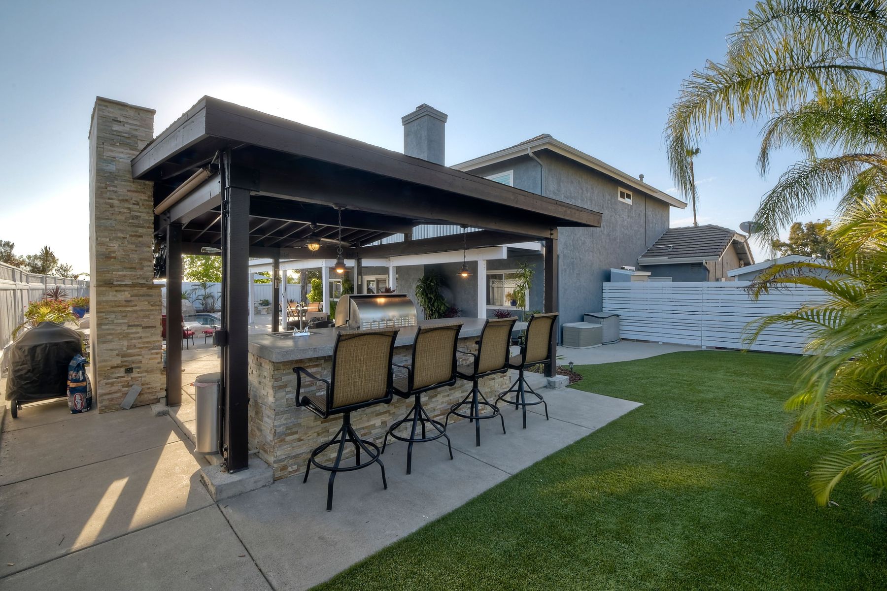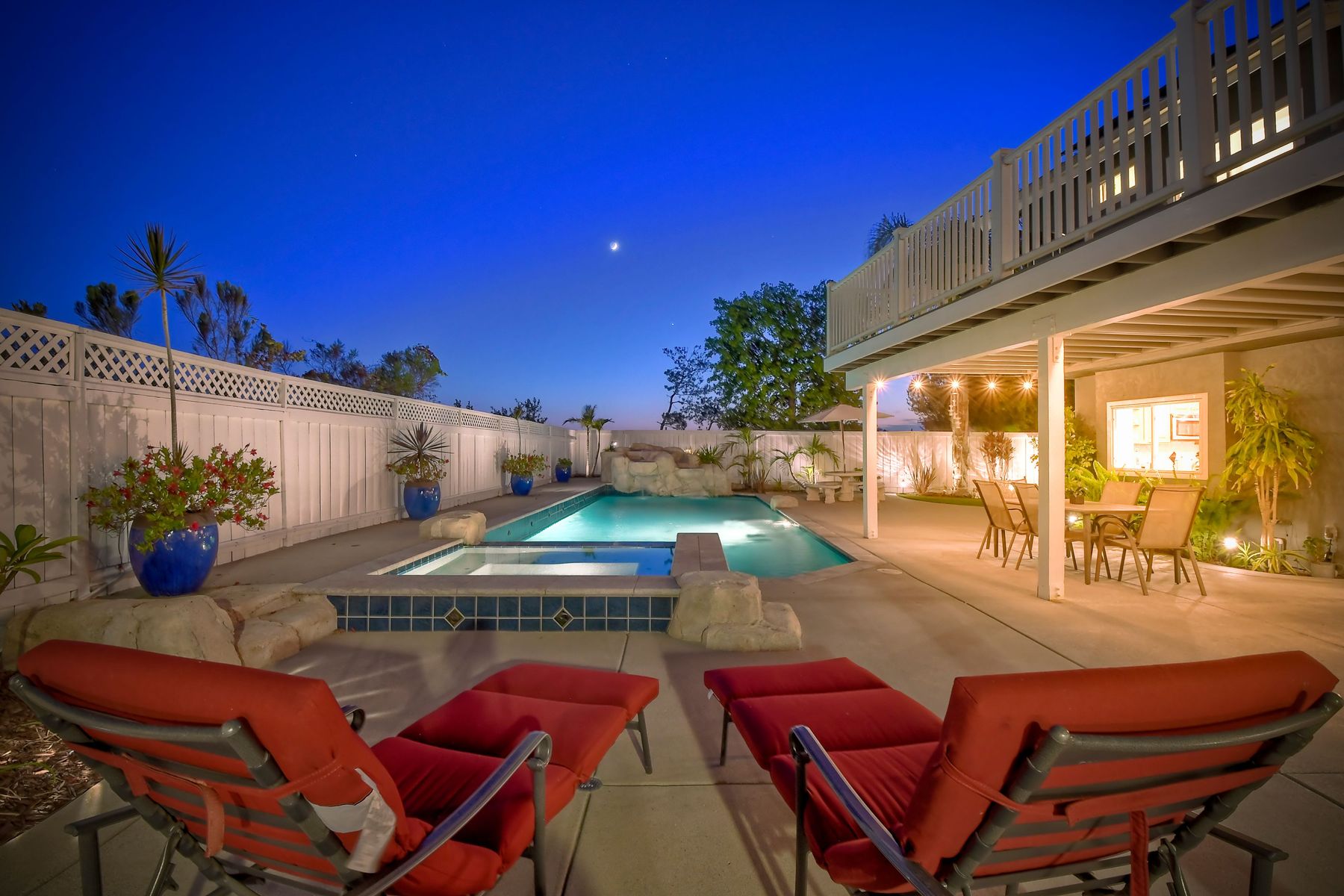 Scripps Ranch Resort Style Living! Prime location at the end of a desirable cul-de-sac within walking distance to Lake Miramar. This upgraded home features vaulted ceilings, large windows, wood grain tile floors & custom built-ins. Rich maple cabinets, granite & SS appliances in the kitchen. Fully owned SOLAR! An Entertainer's Dream with a sparkling, pebble tech pool & spa, waterfall, sprawling patio, turf and lush landscaping. Enjoy year round outdoor life in the very large post & beam gazebo with fireplace, TV, bar & built-in BBQ. Close to top rated Scripps Ranch schools. Welcome Home to this Special Scripps Ranch property! Drive down the quiet cul-de-sac street with 11 houses on one side and greenbelt on the other. Amazing curb appeal with an oversized, stamped concrete driveway, front walkway and sitting area for enjoying family and neighbors out front. Grand entry with vaulted ceilings, plantation shutters and windows galore. The family room opens to the most amazing outdoor living space. Large post and beam gazebo with fireplace and kitchen, pebble tech pool/spa, waterfall and enough patio space to host large gatherings. Turf for family/pet playtime. The master opens to an impressive view deck, en-suite includes a soaking tub and dual walk-in closets. 1/2 mile walk to Lakeview Park where neighbors meet to watch the fabulous sunsets over Lake Miramar. Award winning schools. Scripps Ranch at it's Best!