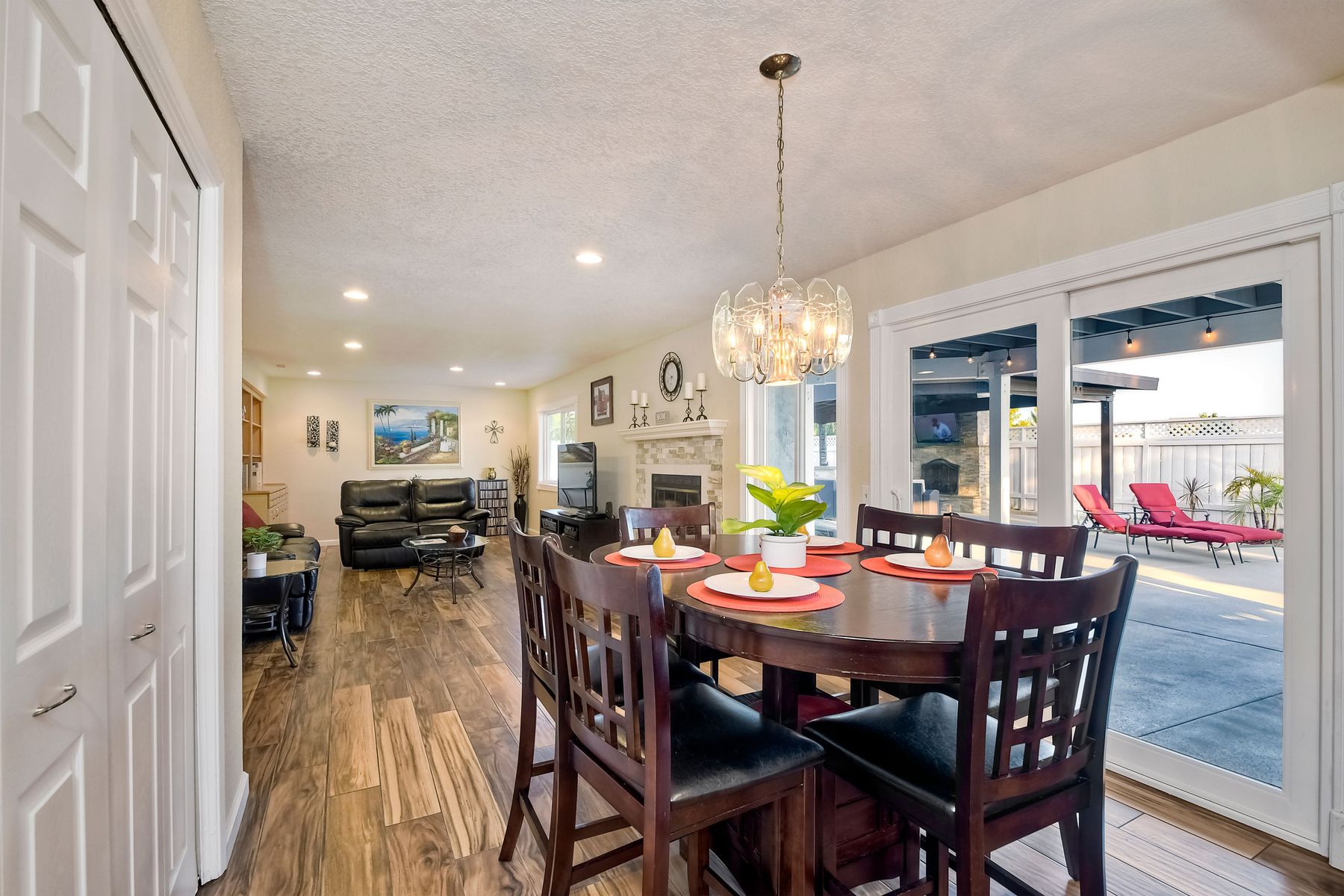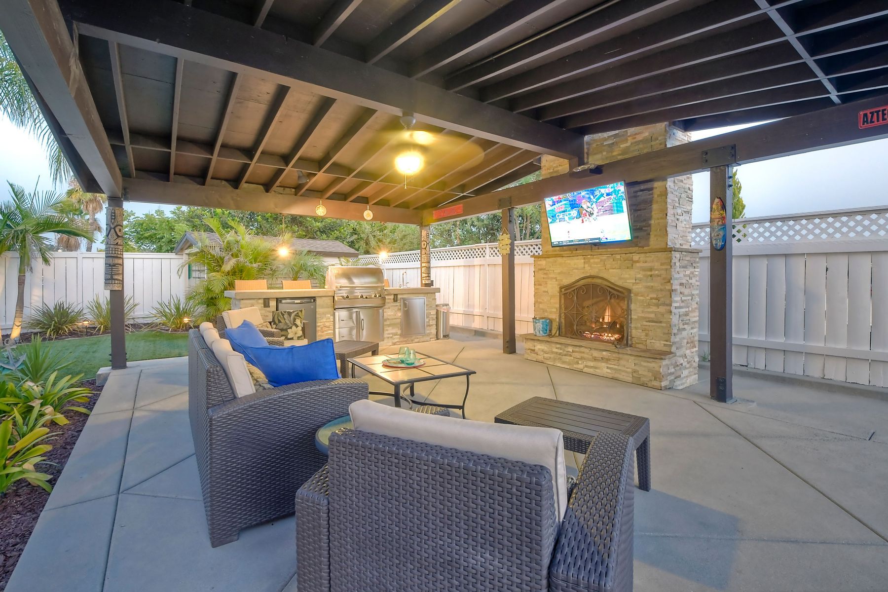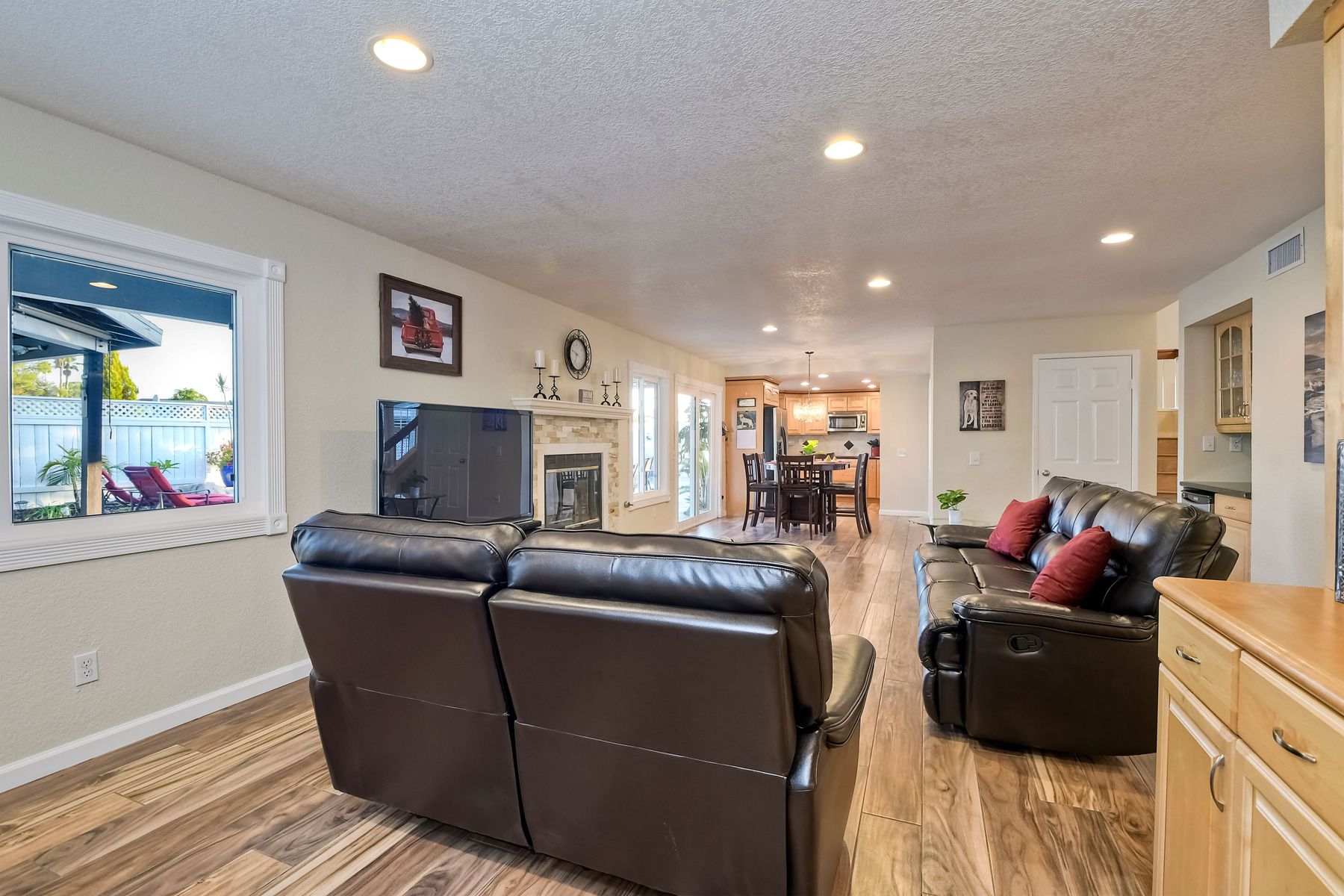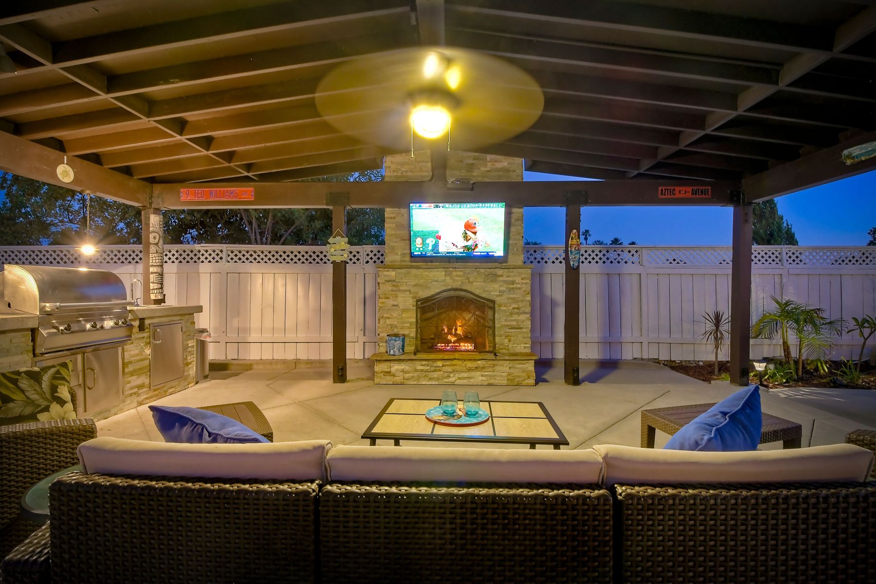 Scripps Ranch Resort Style Living! Prime location at the end of a desirable cul-de-sac within walking distance to Lake Miramar. This upgraded home features vaulted ceilings, large windows, wood grain tile floors & custom built-ins. Rich maple cabinets, granite & SS appliances in the kitchen. Fully owned SOLAR! An Entertainer's Dream with a sparkling, pebble tech pool & spa, waterfall, sprawling patio, turf and lush landscaping. Enjoy year round outdoor life in the very large post & beam gazebo with fireplace, TV, bar & built-in BBQ. Close to top rated Scripps Ranch schools. Welcome Home to this Special Scripps Ranch property! Drive down the quiet cul-de-sac street with 11 houses on one side and greenbelt on the other. Amazing curb appeal with an oversized, stamped concrete driveway, front walkway and sitting area for enjoying family and neighbors out front. Grand entry with vaulted ceilings, plantation shutters and windows galore. The family room opens to the most amazing outdoor living space. Large post and beam gazebo with fireplace and kitchen, pebble tech pool/spa, waterfall and enough patio space to host large gatherings. Turf for family/pet playtime. The master opens to an impressive view deck, en-suite includes a soaking tub and dual walk-in closets. 1/2 mile walk to Lakeview Park where neighbors meet to watch the fabulous sunsets over Lake Miramar. Award winning schools. Scripps Ranch at it's Best!