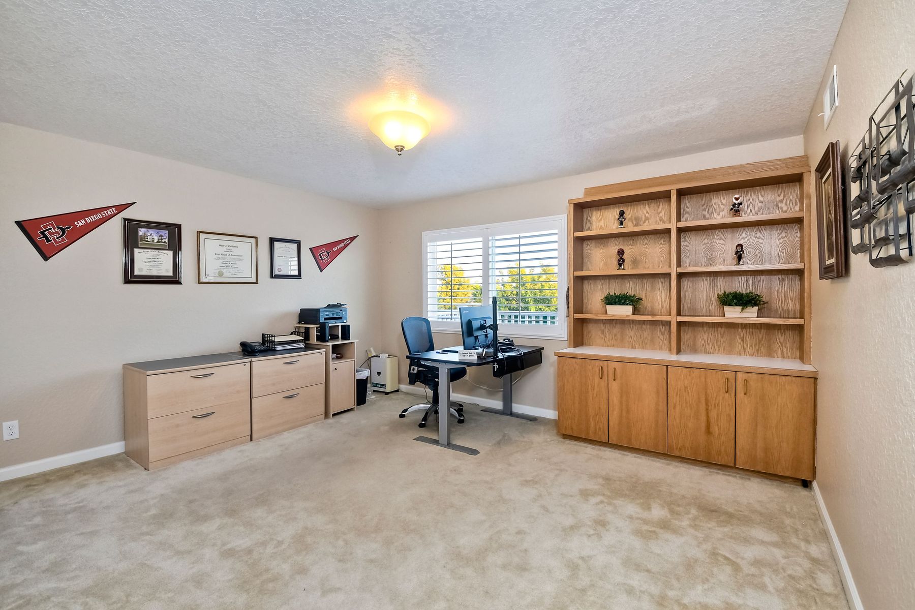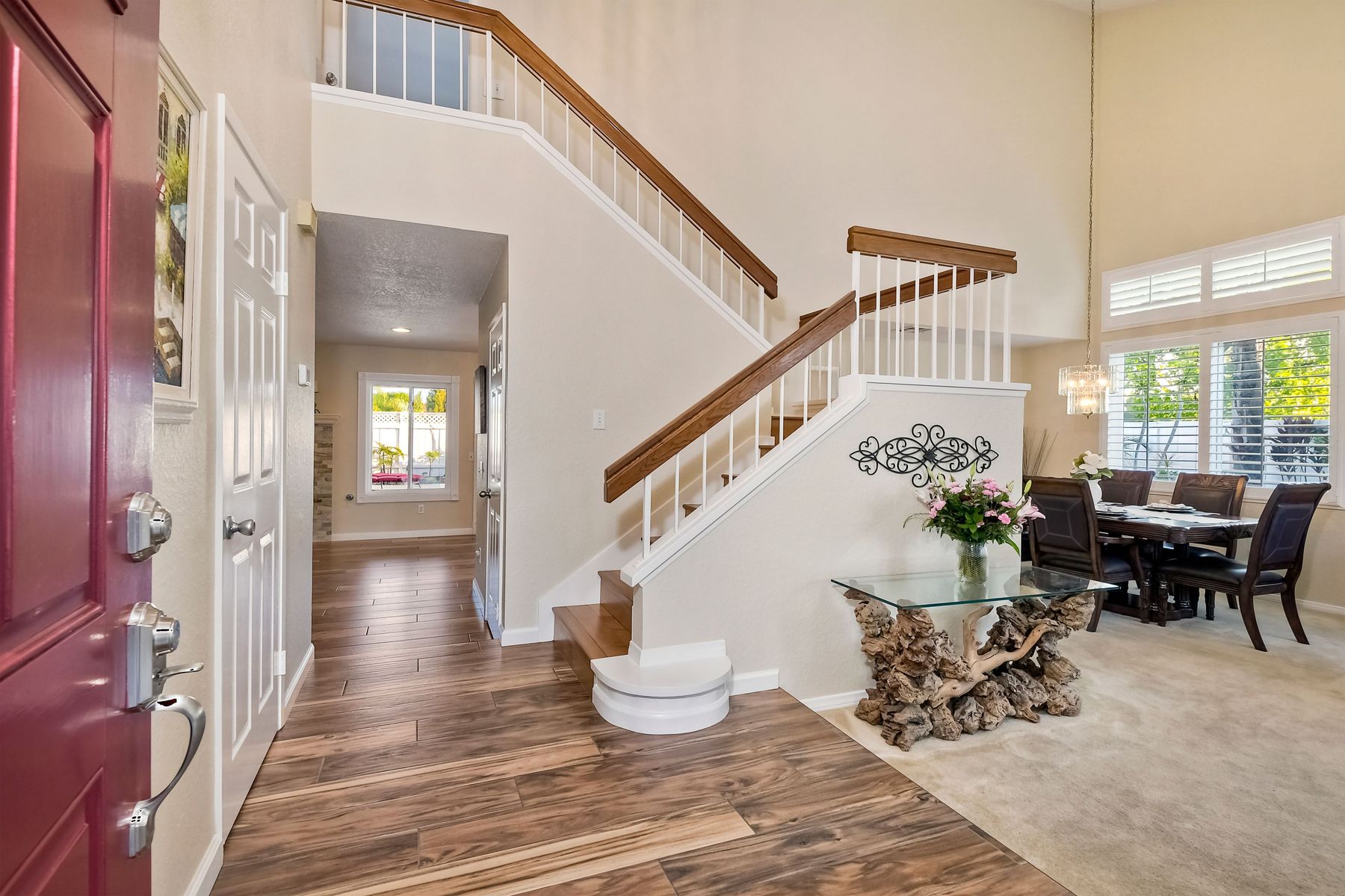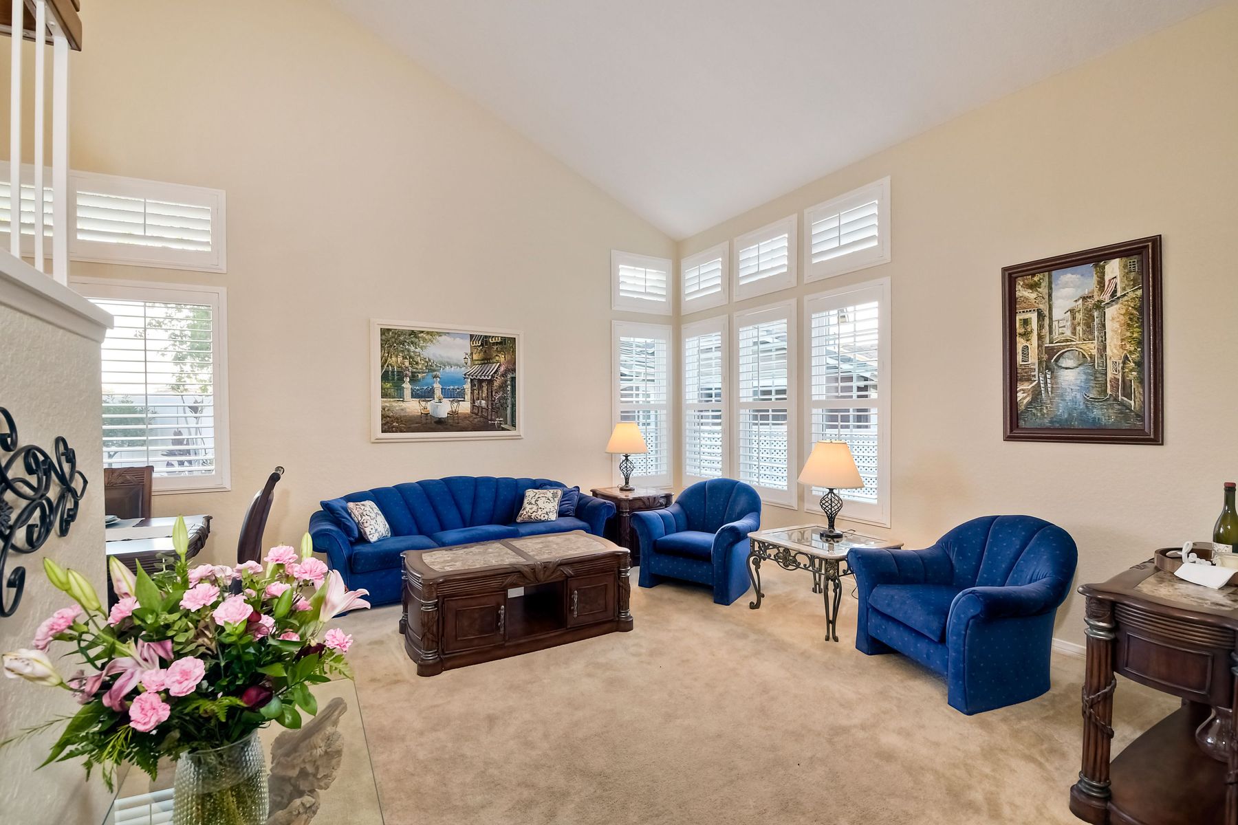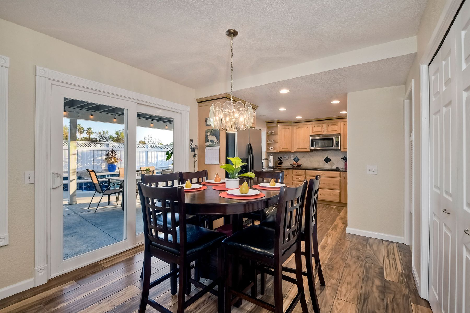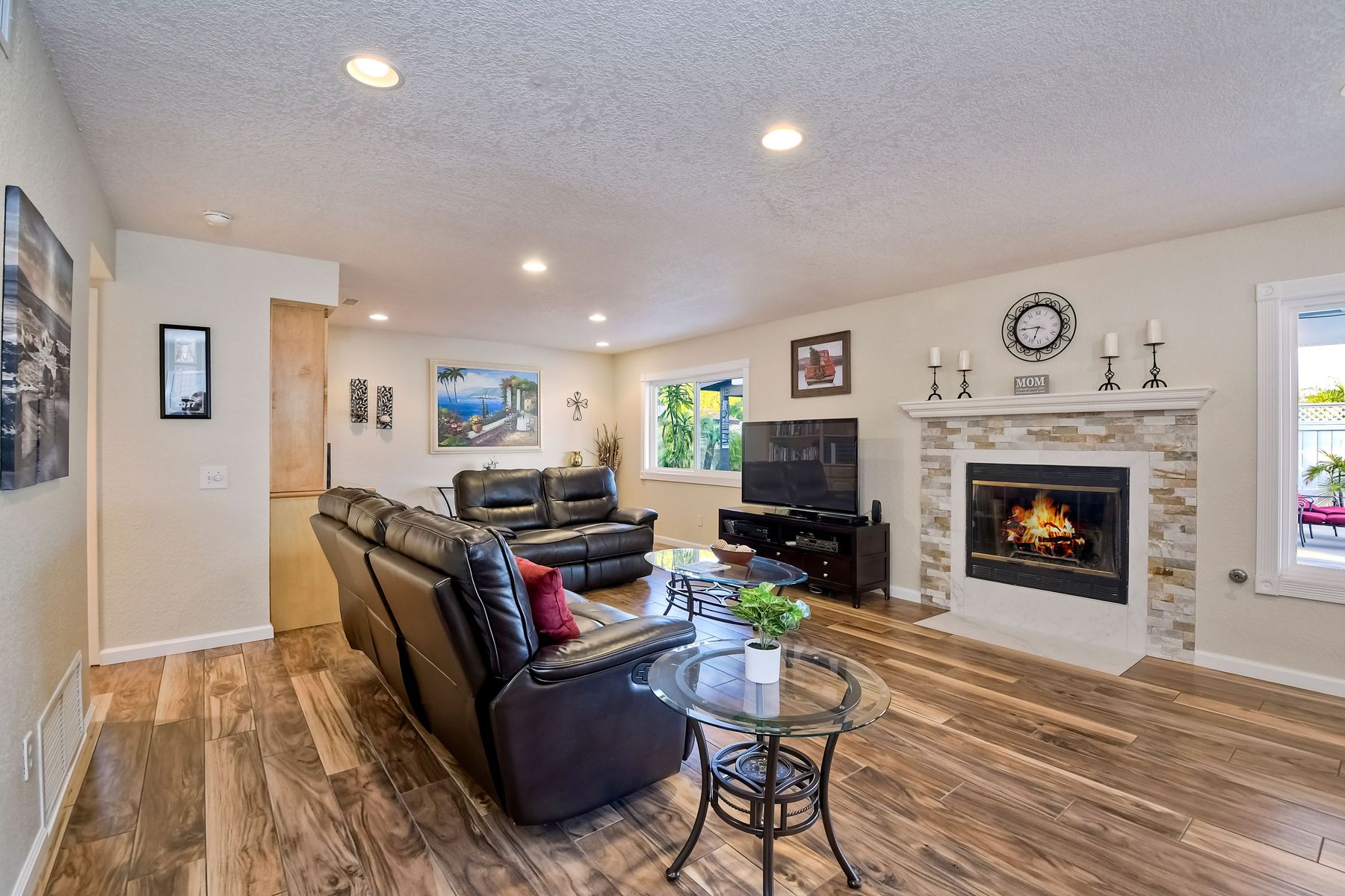 Scripps Ranch Resort Style Living! Prime location at the end of a desirable cul-de-sac within walking distance to Lake Miramar. This upgraded home features vaulted ceilings, large windows, wood grain tile floors & custom built-ins. Rich maple cabinets, granite & SS appliances in the kitchen. Fully owned SOLAR! An Entertainer's Dream with a sparkling, pebble tech pool & spa, waterfall, sprawling patio, turf and lush landscaping. Enjoy year round outdoor life in the very large post & beam gazebo with fireplace, TV, bar & built-in BBQ. Close to top rated Scripps Ranch schools. Welcome Home to this Special Scripps Ranch property! Drive down the quiet cul-de-sac street with 11 houses on one side and greenbelt on the other. Amazing curb appeal with an oversized, stamped concrete driveway, front walkway and sitting area for enjoying family and neighbors out front. Grand entry with vaulted ceilings, plantation shutters and windows galore. The family room opens to the most amazing outdoor living space. Large post and beam gazebo with fireplace and kitchen, pebble tech pool/spa, waterfall and enough patio space to host large gatherings. Turf for family/pet playtime. The master opens to an impressive view deck, en-suite includes a soaking tub and dual walk-in closets. 1/2 mile walk to Lakeview Park where neighbors meet to watch the fabulous sunsets over Lake Miramar. Award winning schools. Scripps Ranch at it's Best!