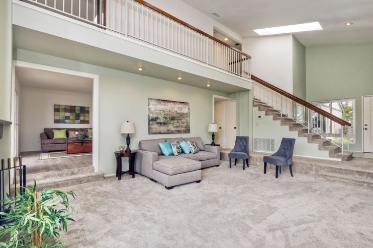 Welcome to Tierrasanta, “The Island in the Hills”. Light, bright and beautiful. Freshly painted throughout. The living room features vaulted ceilings with skylights, recessed lighting & cozy fireplace. 2 bedrooms and 2 bathrooms on main level. Spacious master suite with Juliet balcony, 2 closets and beautifully remodeled bathroom. 2nd room upstairs would make a great office or nursery. Solar system installed earlier this year. Dual pane windows. Beautifully paved yard for low water use & maintenance.