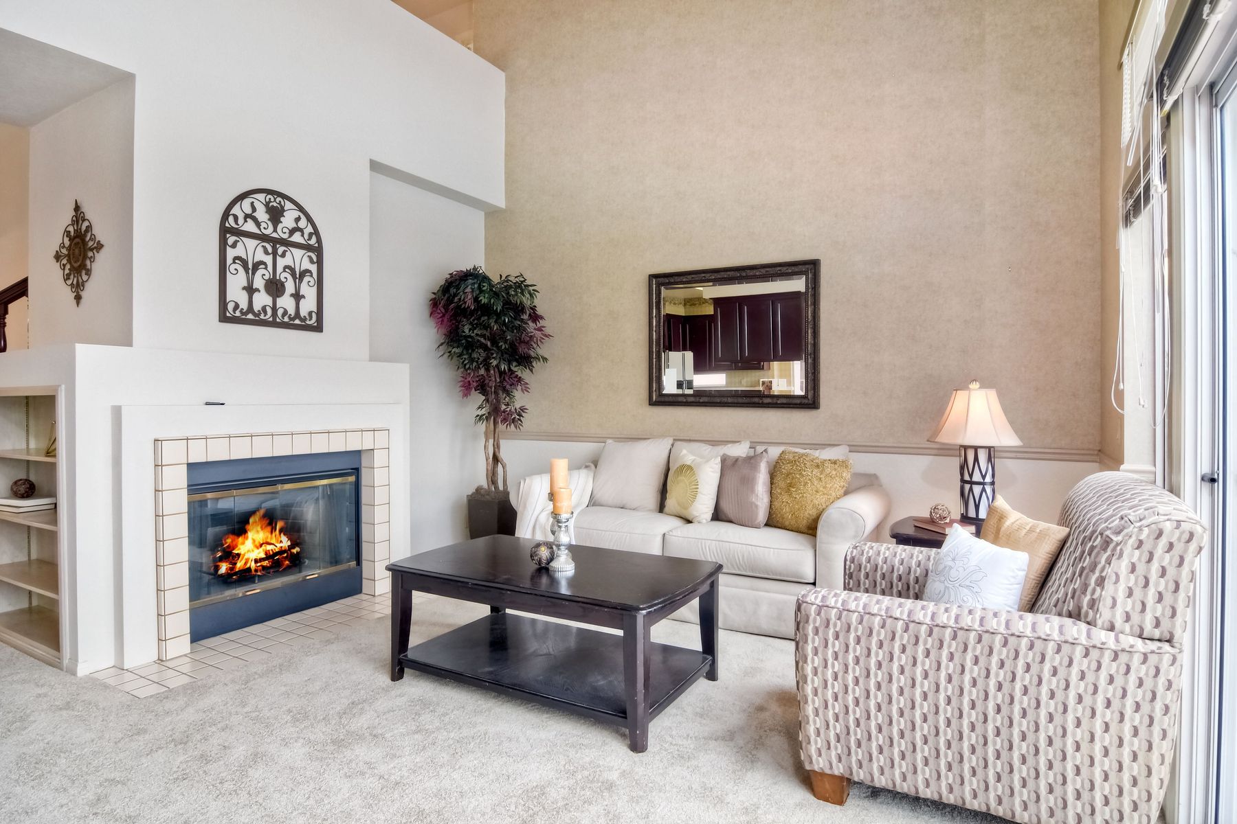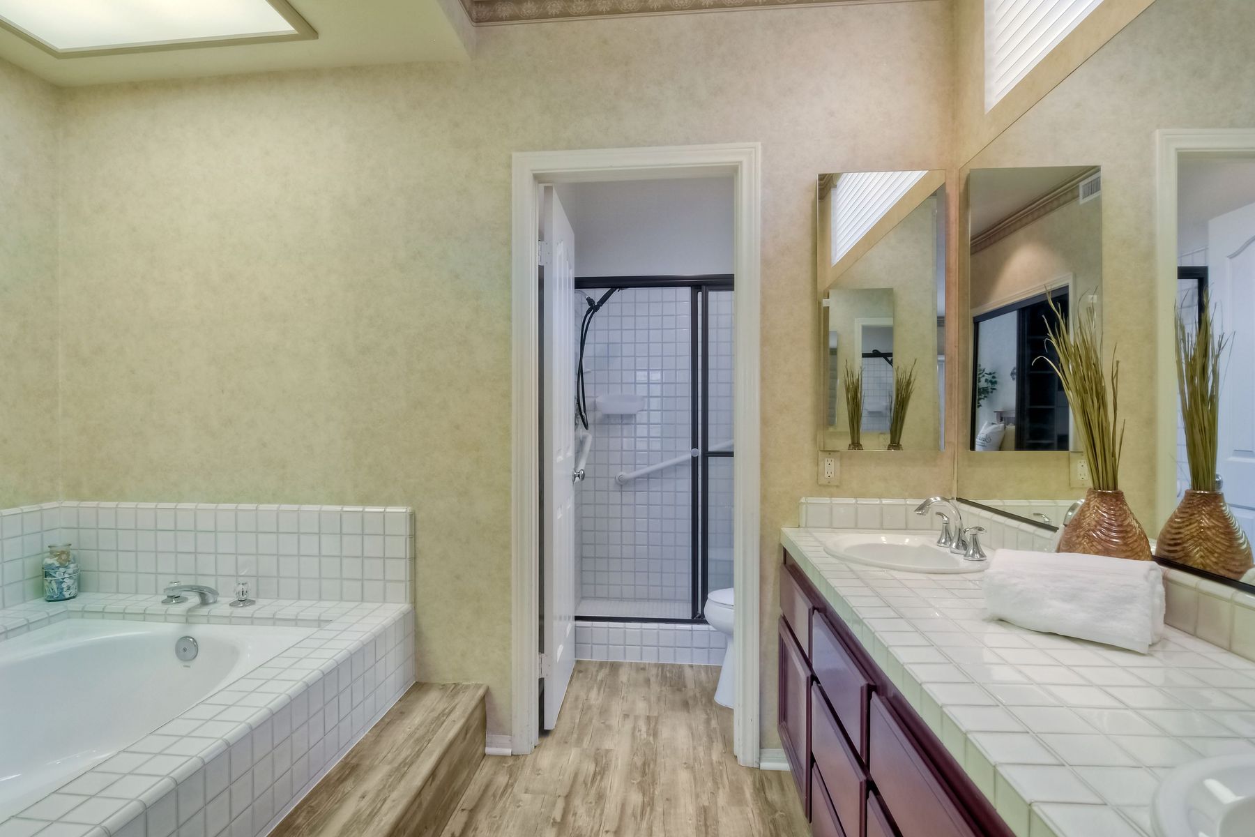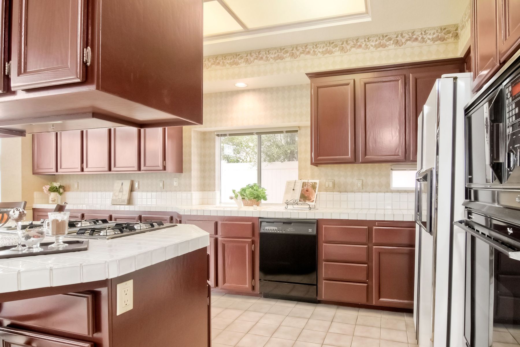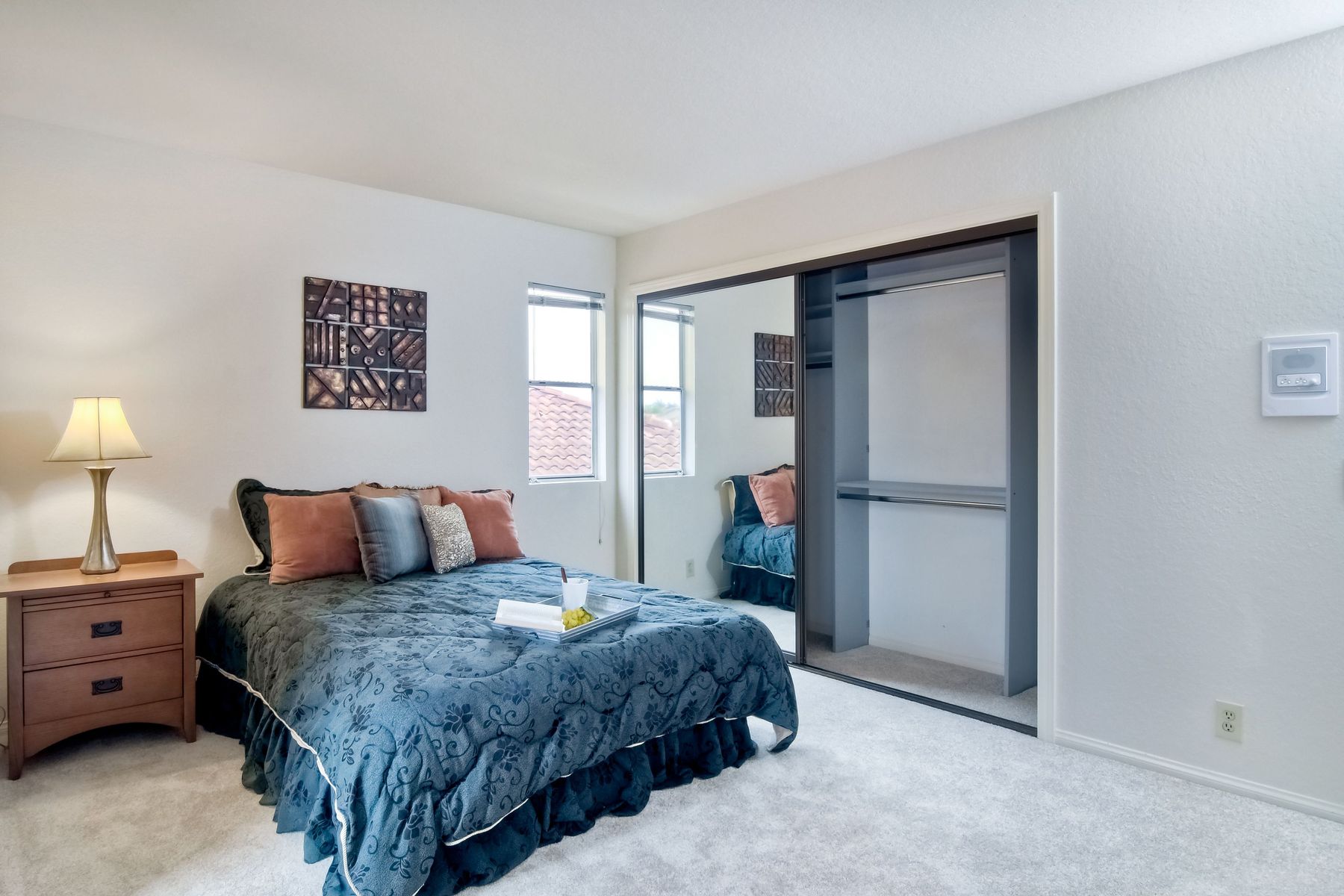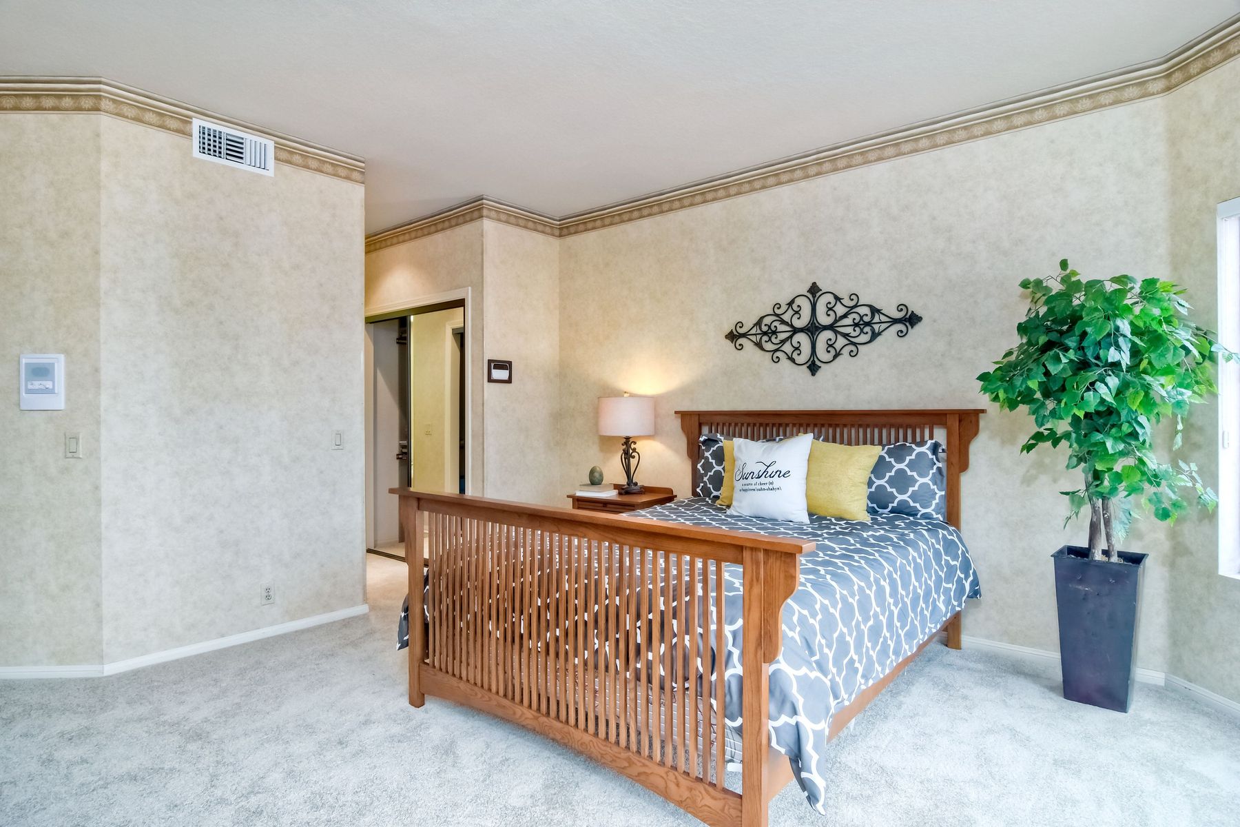 Forever views of Lake Miramar, sunsets, and city lights. First floor master bedroom allows single level living. Curved staircase leads to three additional generous size bedrooms upstairs. Front bedroom has french doors to the balcony. Kitchen features island and breakfast nook with window seat. Refreshed with new flooring, carpet, and paint. Sliding doors open from the family room and master bedroom to the patio with sparkling pool and unobstructed canyon and lake views. Great entertaining home! No HOA.