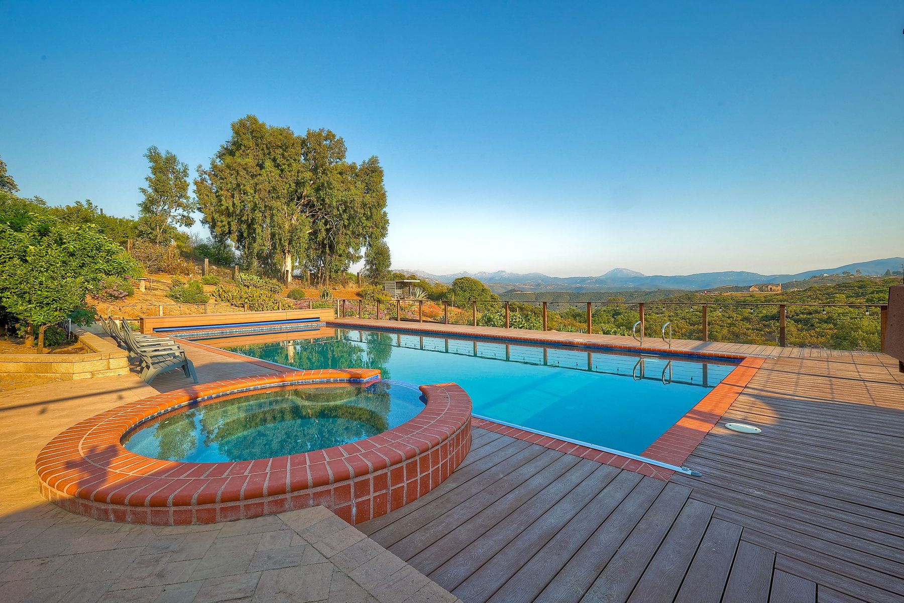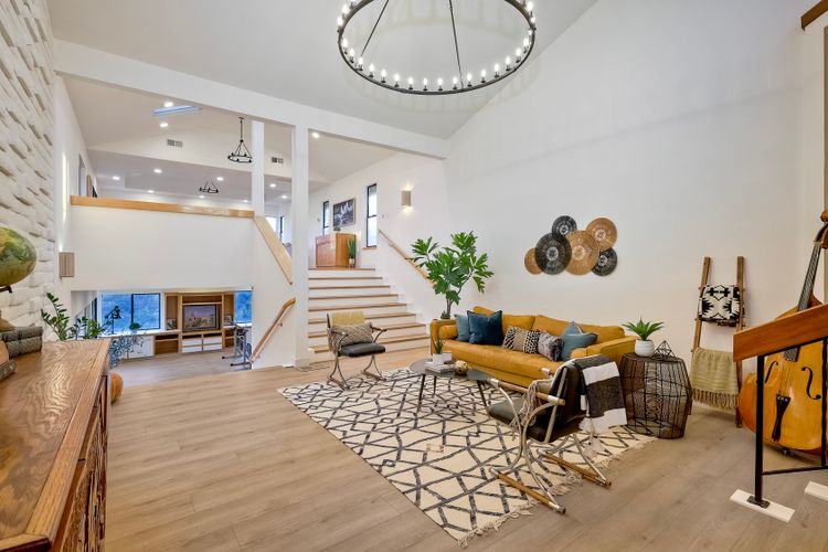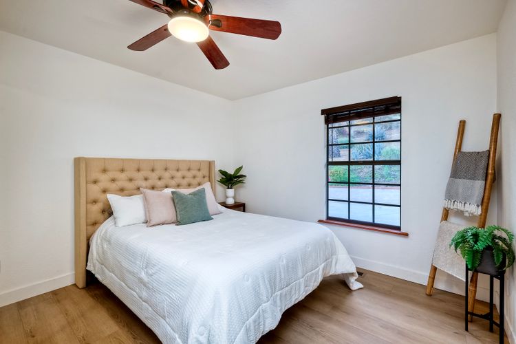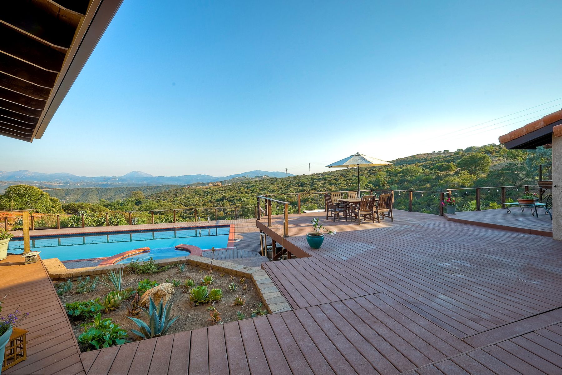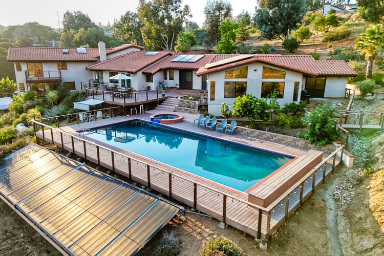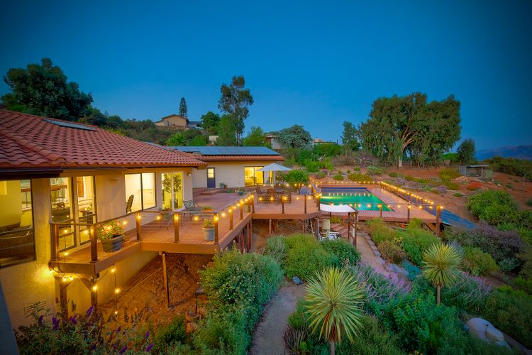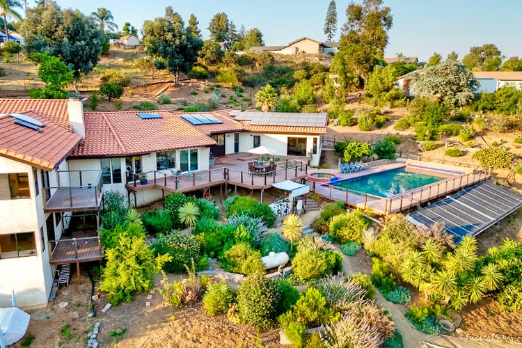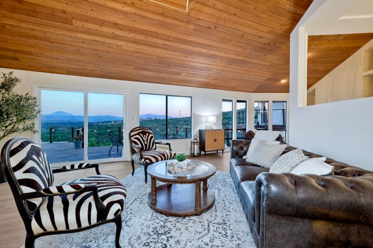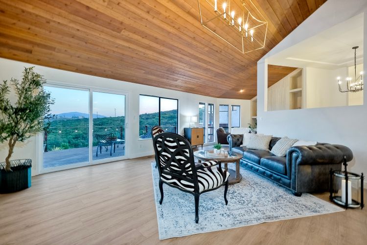 Welcome home to your own private paradise nestled in the hills of beautiful Alpine. Situated on over 2 sprawling acres with views abounding, this custom home has recently had a full makeover that will satisfy even the most critical buyer. As you walk in you'll be elated with the abundant space and all of the natural light that floods into the home. The entire home has brand new luxury vinyl plank flooring throughout, creating a warm and seamless space. As you walk down into the first living room, you'll notice the high ceilings with a brick feature wall that houses the fire place and gorgeous wood beamed vaulted ceilings, along with custom lighting. There are two large bonus rooms off of the living room to be used as you like. The upstairs one is currently used as a TV/media room and the downstairs space is an exercise room/dance studio complete with a mirrored wall and a ballet bar! Both come with gorgeous views of the outside landscape of mountains and valleys, as well as decks to enjoy the outdoors. The kitchen upgrades include new Quartzite countertops, custom backsplash and top of the line Gaggenau double ovens and Bosch cooktop. Off the kitchen, you'll find a large family room with a coffee/beverage bar to one side and a cozy fireplace seating/reading nook on the other. Perfect for those fall or winter nights! The generous master retreat is a space you may never want to leave! From the elevated sitting area with a tasteful paneled feature wall, to the stand alone soaker tub, to the enormous shower featuring four various shower heads--you can have a spa day without ever leaving your bedroom! Two other ample sized bedrooms are down the hall with their own Jack and Jill bathroom to share. That side of the house has it's own laundry room and there's also a Butlers pantry with it's own laundry located on the other side of the home. There is an attached ADU with TWO spacious bedrooms, both boasting wood beamed vaulted ceilings and custom lighting. Off the hallway is a brand new lovely full bathroom and finally there is a living area with it's own entrance. Great for multi-generational living or potential rental income?!? Once outside there is so much to see and enjoy! From the Trex decking that surrounds the back of the house to the salt water heated pool and spa to the fenced garden area that leads to the roughly quarter of a mile of trails surrounded by drought resistant landscaping--this is an entertainers DREAM! Stunning panoramic views all around this super private oasis! OWNED solar, including pool solar plus RV parking just sweetens this already gem of a house! Hurry and make this dream home yours today! **Potential for a rate buy down with the right price**
