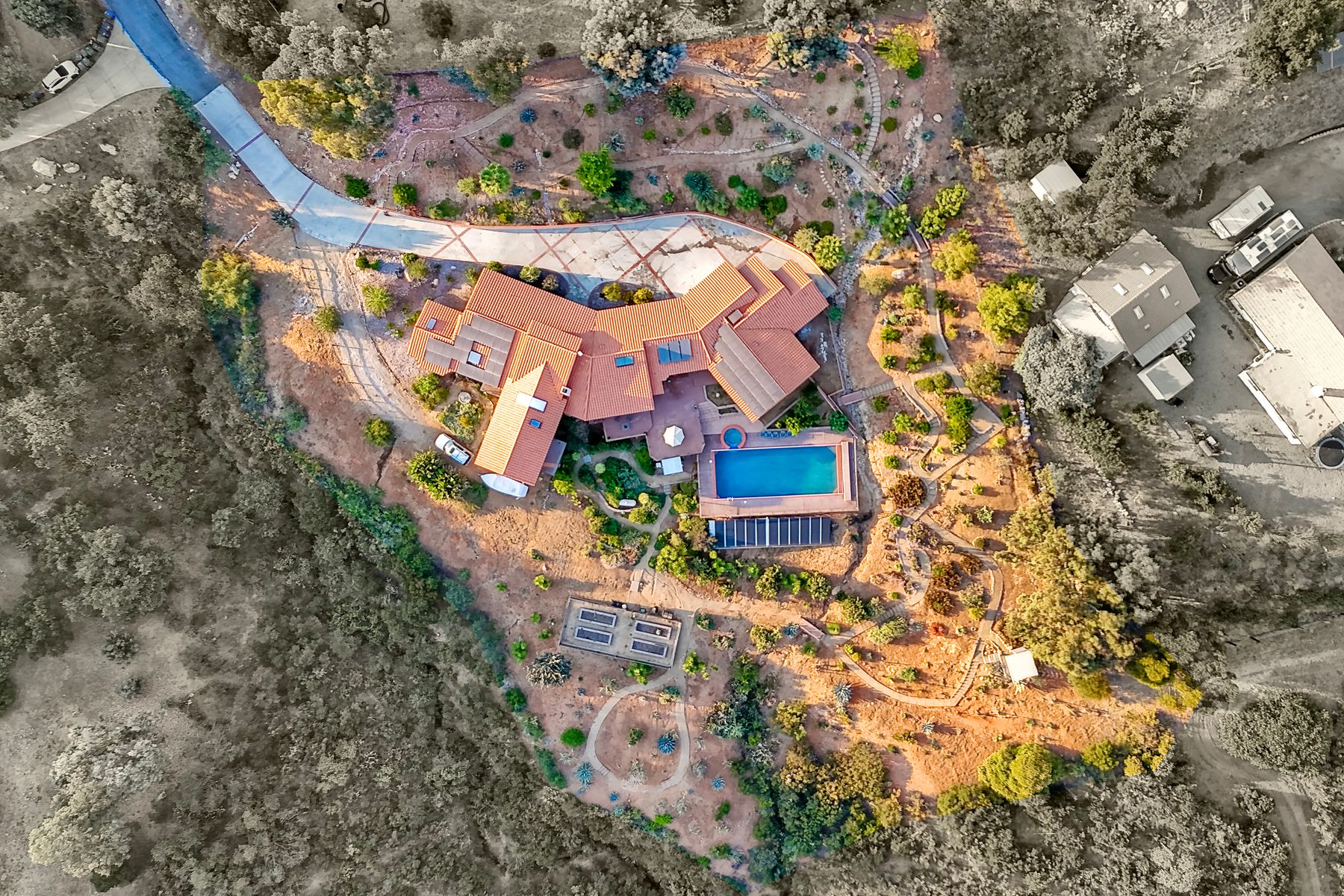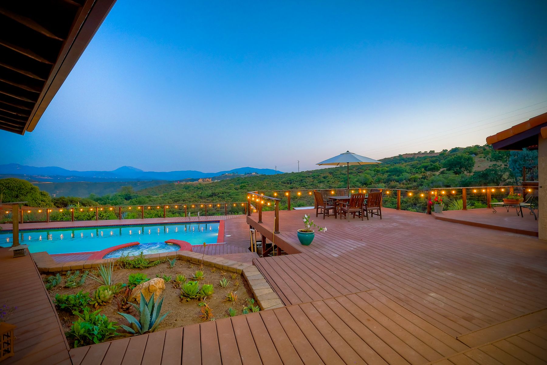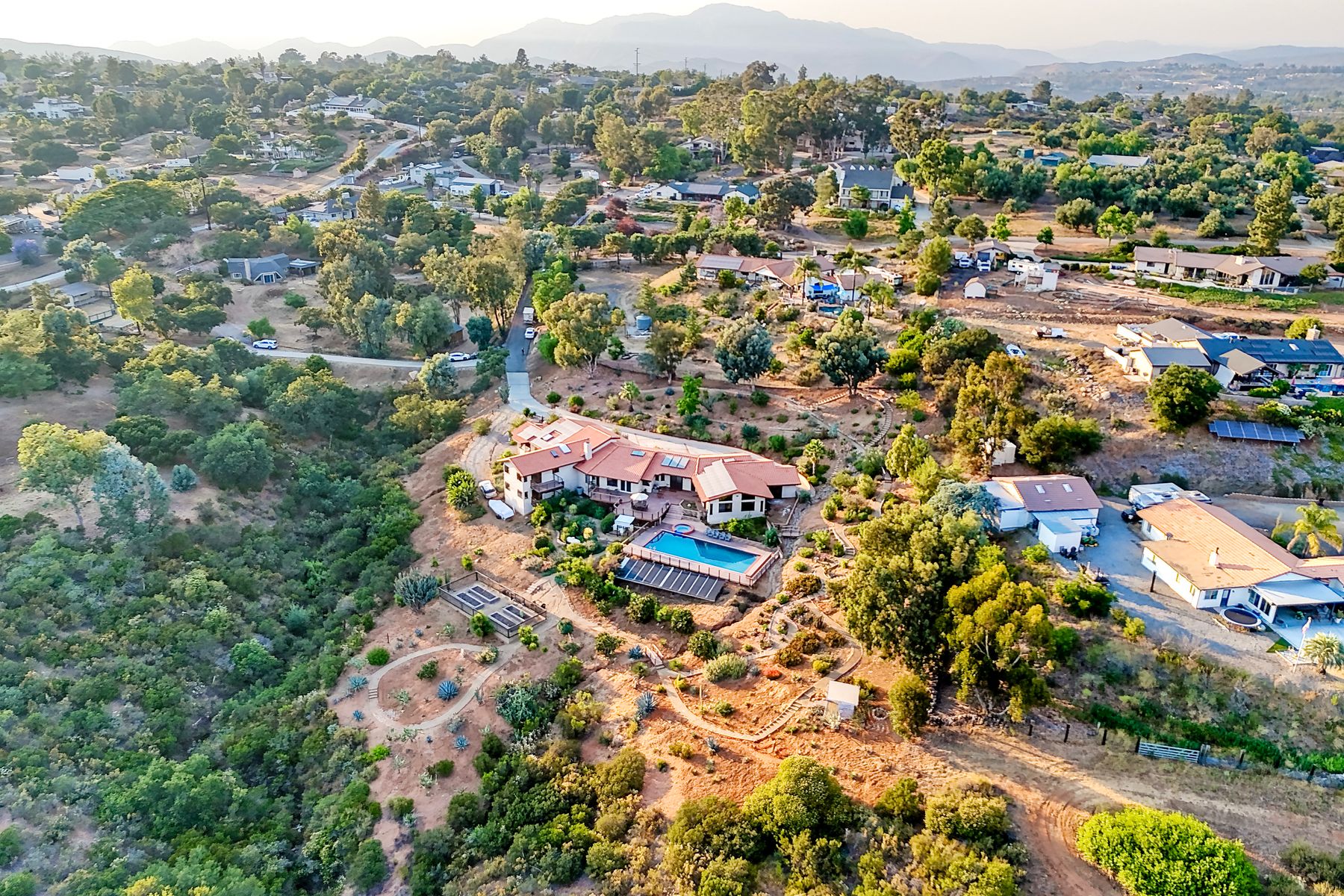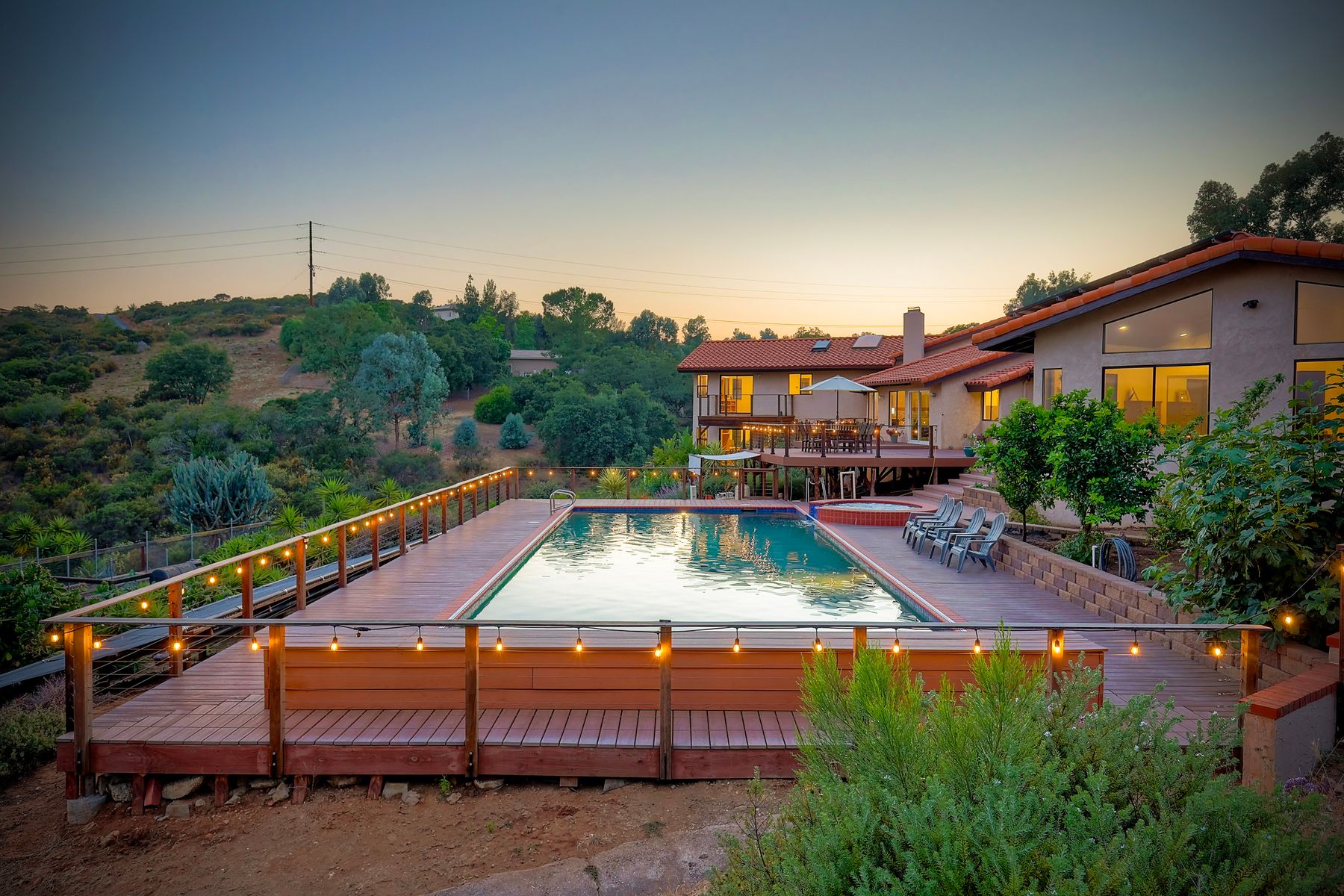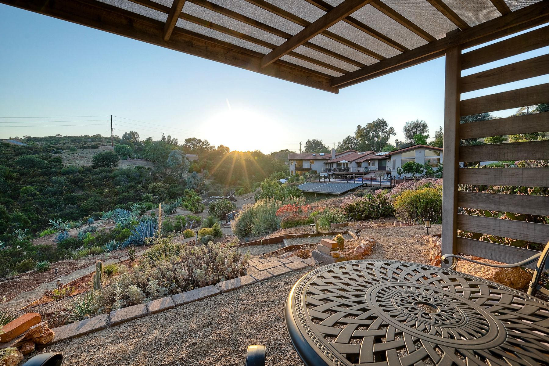 Welcome home to your own private paradise nestled in the hills of beautiful Alpine. Situated on over 2 sprawling acres with views abounding, this custom home has recently had a full makeover that will satisfy even the most critical buyer. As you walk in you'll be elated with the abundant space and all of the natural light that floods into the home. The entire home has brand new luxury vinyl plank flooring throughout, creating a warm and seamless space. As you walk down into the first living room, you'll notice the high ceilings with a brick feature wall that houses the fire place and gorgeous wood beamed vaulted ceilings, along with custom lighting. There are two large bonus rooms off of the living room to be used as you like. The upstairs one is currently used as a TV/media room and the downstairs space is an exercise room/dance studio complete with a mirrored wall and a ballet bar! Both come with gorgeous views of the outside landscape of mountains and valleys, as well as decks to enjoy the outdoors. The kitchen upgrades include new Quartzite countertops, custom backsplash and top of the line Gaggenau double ovens and Bosch cooktop. Off the kitchen, you'll find a large family room with a coffee/beverage bar to one side and a cozy fireplace seating/reading nook on the other. Perfect for those fall or winter nights! The generous master retreat is a space you may never want to leave! From the elevated sitting area with a tasteful paneled feature wall, to the stand alone soaker tub, to the enormous shower featuring four various shower heads--you can have a spa day without ever leaving your bedroom! Two other ample sized bedrooms are down the hall with their own Jack and Jill bathroom to share. That side of the house has it's own laundry room and there's also a Butlers pantry with it's own laundry located on the other side of the home. There is an attached ADU with TWO spacious bedrooms, both boasting wood beamed vaulted ceilings and custom lighting. Off the hallway is a brand new lovely full bathroom and finally there is a living area with it's own entrance. Great for multi-generational living or potential rental income?!? Once outside there is so much to see and enjoy! From the Trex decking that surrounds the back of the house to the salt water heated pool and spa to the fenced garden area that leads to the roughly quarter of a mile of trails surrounded by drought resistant landscaping--this is an entertainers DREAM! Stunning panoramic views all around this super private oasis! OWNED solar, including pool solar plus RV parking just sweetens this already gem of a house! Hurry and make this dream home yours today! **Potential for a rate buy down with the right price**