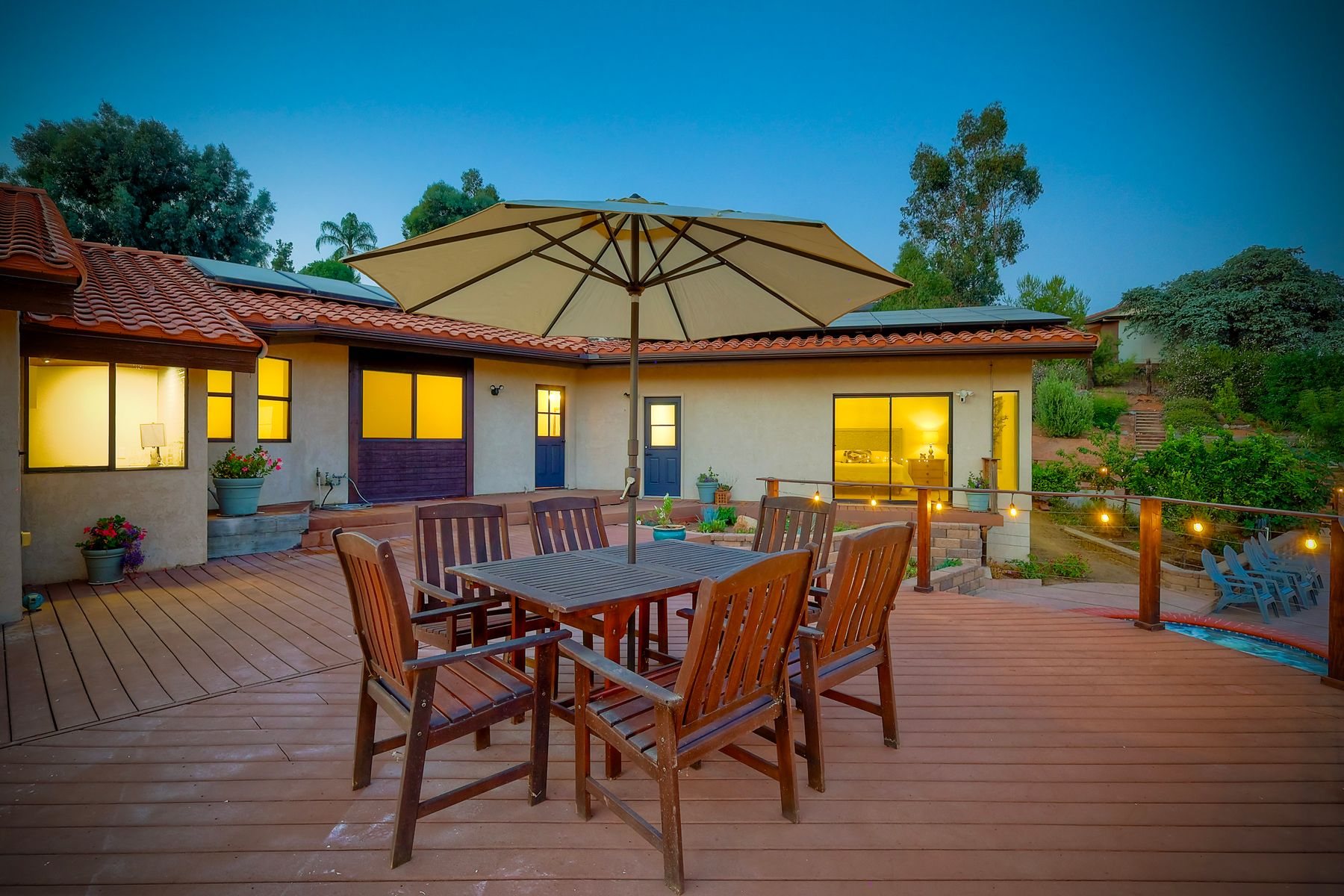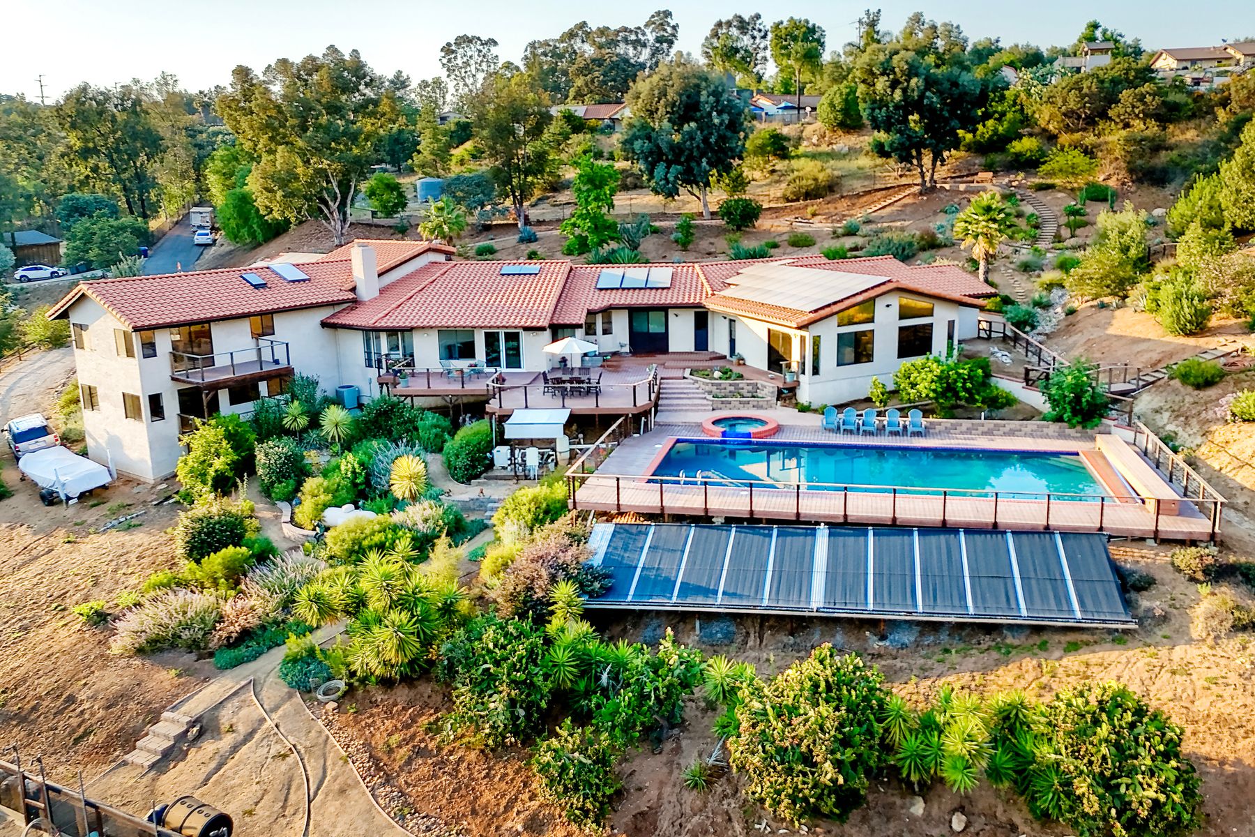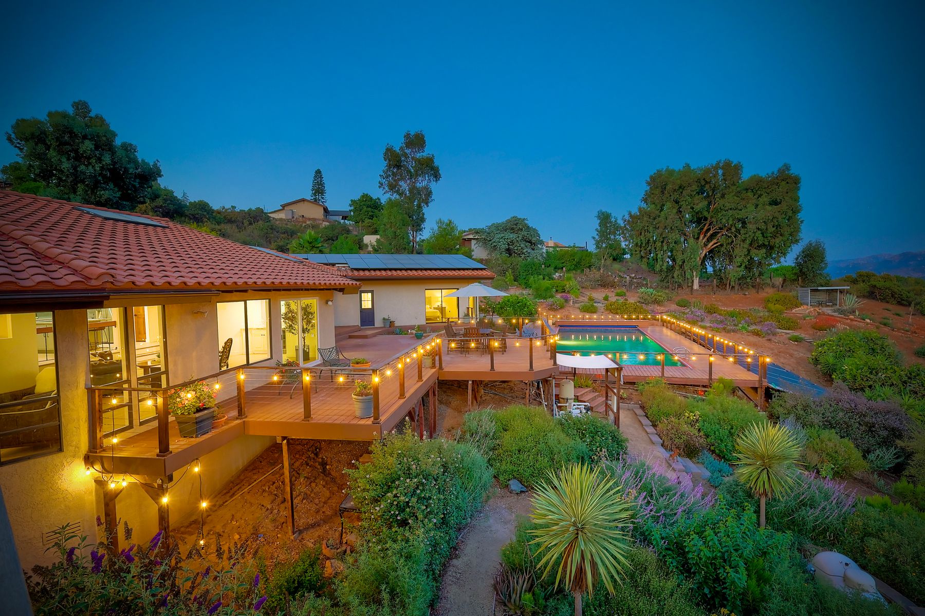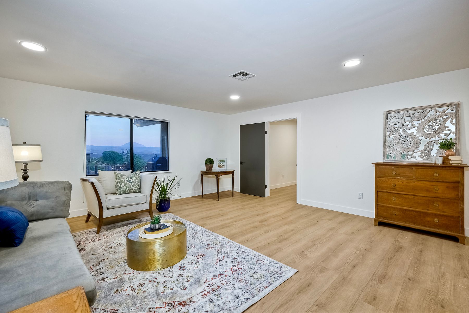 Welcome home to your own private paradise nestled in the hills of beautiful Alpine. Situated on over 2 sprawling acres with views abounding, this custom home has recently had a full makeover that will satisfy even the most critical buyer. As you walk in you'll be elated with the abundant space and all of the natural light that floods into the home. The entire home has brand new luxury vinyl plank flooring throughout, creating a warm and seamless space. As you walk down into the first living room, you'll notice the high ceilings with a brick feature wall that houses the fire place and gorgeous wood beamed vaulted ceilings, along with custom lighting. There are two large bonus rooms off of the living room to be used as you like. The upstairs one is currently used as a TV/media room and the downstairs space is an exercise room/dance studio complete with a mirrored wall and a ballet bar! Both come with gorgeous views of the outside landscape of mountains and valleys, as well as decks to enjoy the outdoors. The kitchen upgrades include new Quartzite countertops, custom backsplash and top of the line Gaggenau double ovens and Bosch cooktop. Off the kitchen, you'll find a large family room with a coffee/beverage bar to one side and a cozy fireplace seating/reading nook on the other. Perfect for those fall or winter nights! The generous master retreat is a space you may never want to leave! From the elevated sitting area with a tasteful paneled feature wall, to the stand alone soaker tub, to the enormous shower featuring four various shower heads--you can have a spa day without ever leaving your bedroom! Two other ample sized bedrooms are down the hall with their own Jack and Jill bathroom to share. That side of the house has it's own laundry room and there's also a Butlers pantry with it's own laundry located on the other side of the home. There is an attached ADU with TWO spacious bedrooms, both boasting wood beamed vaulted ceilings and custom lighting. Off the hallway is a brand new lovely full bathroom and finally there is a living area with it's own entrance. Great for multi-generational living or potential rental income?!? Once outside there is so much to see and enjoy! From the Trex decking that surrounds the back of the house to the salt water heated pool and spa to the fenced garden area that leads to the roughly quarter of a mile of trails surrounded by drought resistant landscaping--this is an entertainers DREAM! Stunning panoramic views all around this super private oasis! OWNED solar, including pool solar plus RV parking just sweetens this already gem of a house! Hurry and make this dream home yours today! **Potential for a rate buy down with the right price**