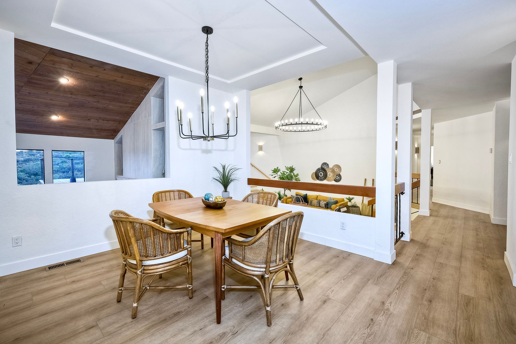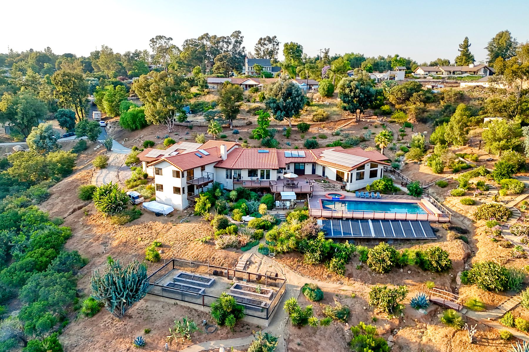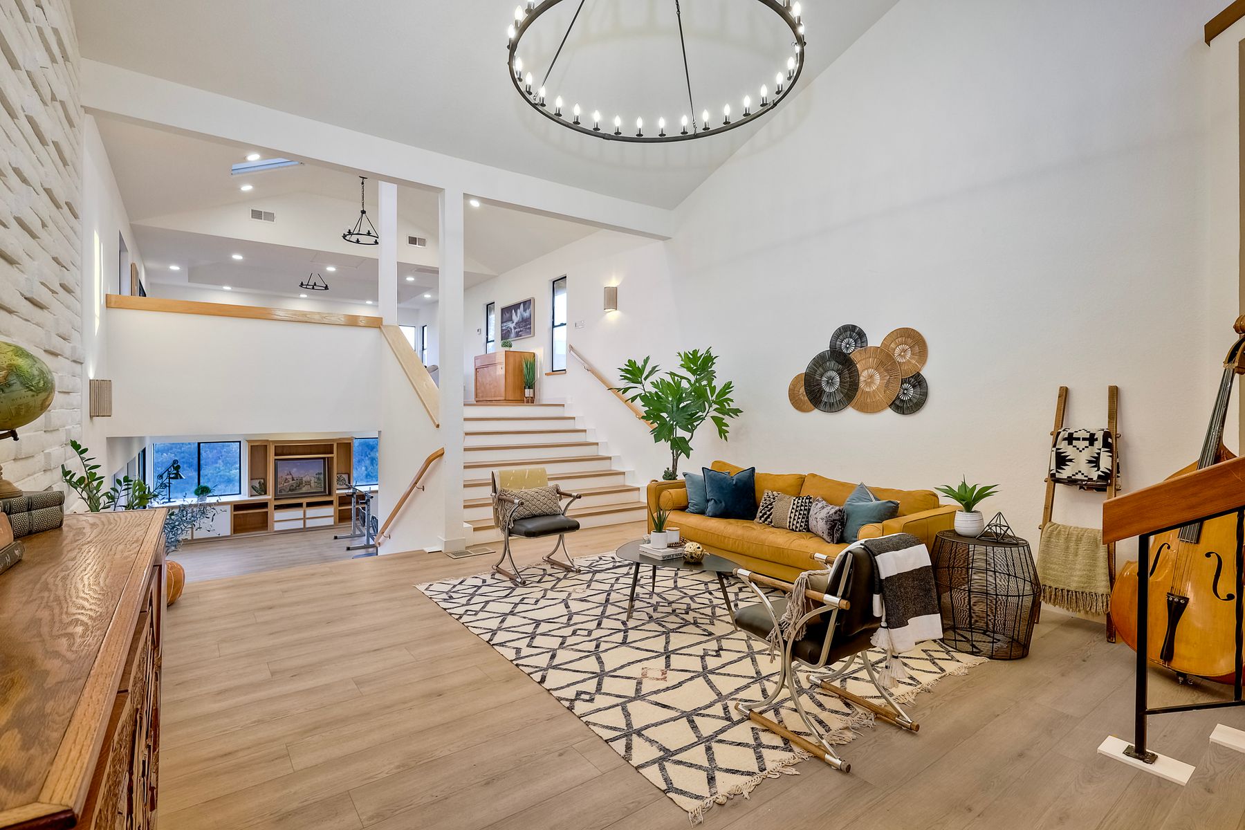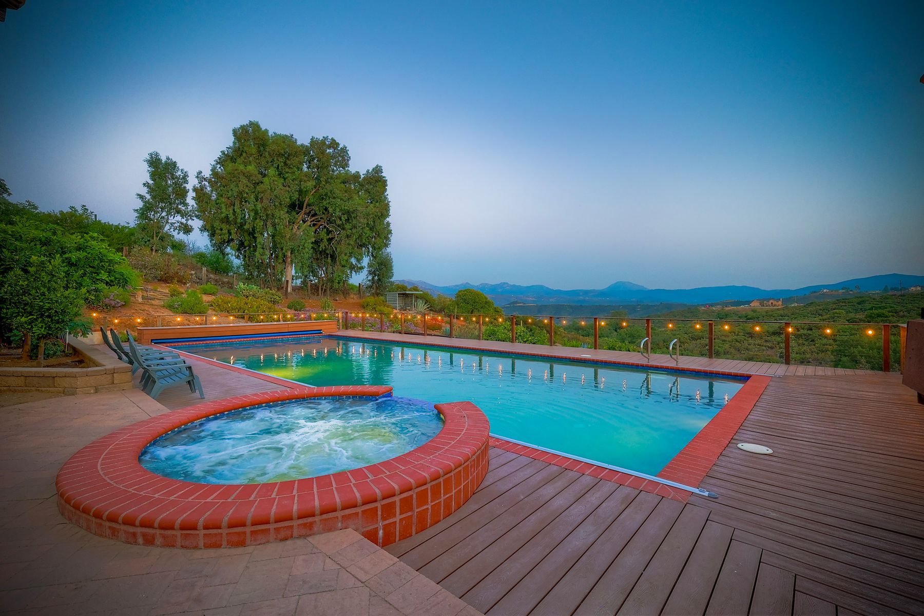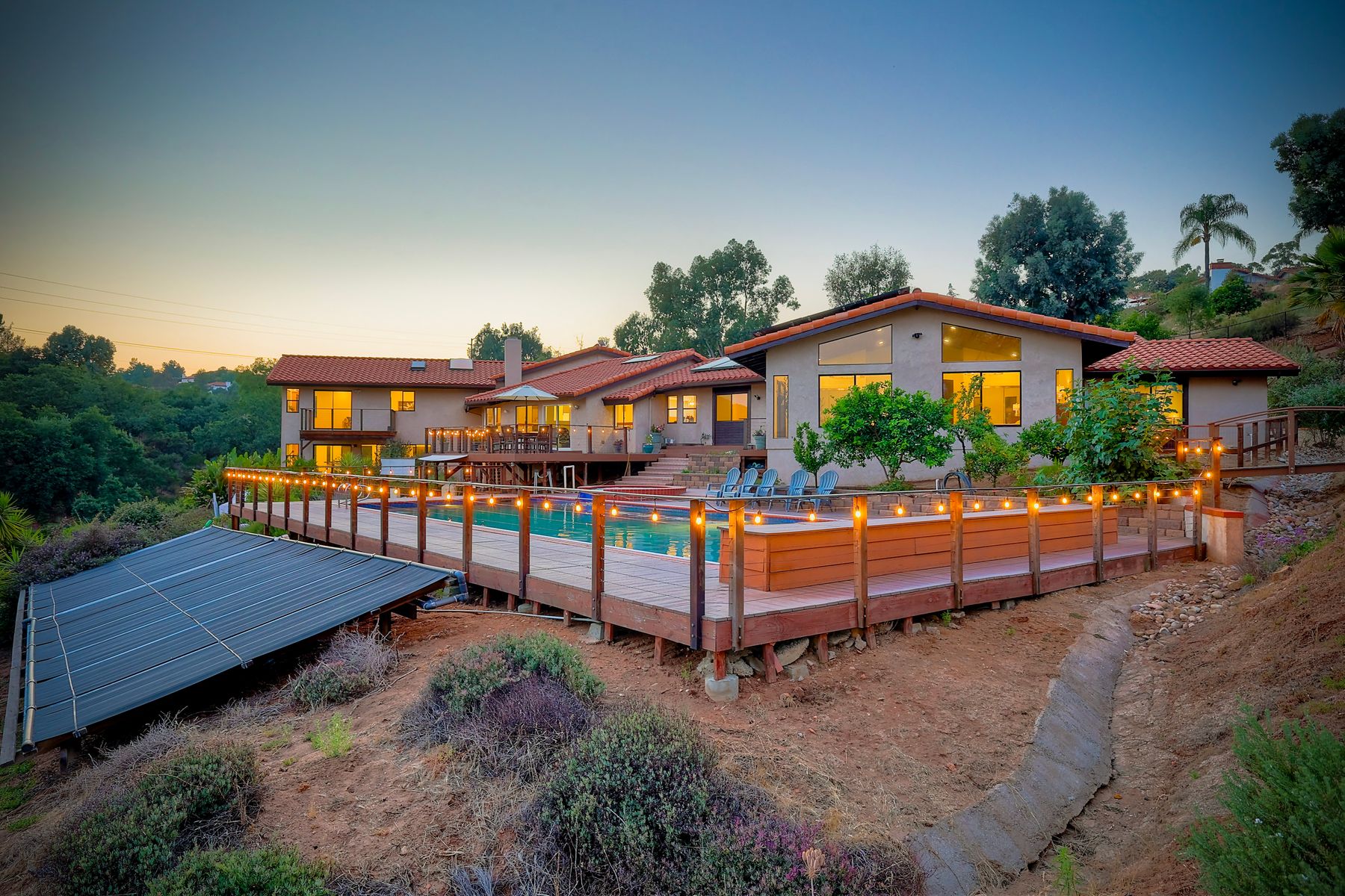 Welcome home to your own private paradise nestled in the hills of beautiful Alpine. Situated on over 2 sprawling acres with views abounding, this custom home has recently had a full makeover that will satisfy even the most critical buyer. As you walk in you'll be elated with the abundant space and all of the natural light that floods into the home. The entire home has brand new luxury vinyl plank flooring throughout, creating a warm and seamless space. As you walk down into the first living room, you'll notice the high ceilings with a brick feature wall that houses the fire place and gorgeous wood beamed vaulted ceilings, along with custom lighting. There are two large bonus rooms off of the living room to be used as you like. The upstairs one is currently used as a TV/media room and the downstairs space is an exercise room/dance studio complete with a mirrored wall and a ballet bar! Both come with gorgeous views of the outside landscape of mountains and valleys, as well as decks to enjoy the outdoors. The kitchen upgrades include new Quartzite countertops, custom backsplash and top of the line Gaggenau double ovens and Bosch cooktop. Off the kitchen, you'll find a large family room with a coffee/beverage bar to one side and a cozy fireplace seating/reading nook on the other. Perfect for those fall or winter nights! The generous master retreat is a space you may never want to leave! From the elevated sitting area with a tasteful paneled feature wall, to the stand alone soaker tub, to the enormous shower featuring four various shower heads--you can have a spa day without ever leaving your bedroom! Two other ample sized bedrooms are down the hall with their own Jack and Jill bathroom to share. That side of the house has it's own laundry room and there's also a Butlers pantry with it's own laundry located on the other side of the home. There is an attached ADU with TWO spacious bedrooms, both boasting wood beamed vaulted ceilings and custom lighting. Off the hallway is a brand new lovely full bathroom and finally there is a living area with it's own entrance. Great for multi-generational living or potential rental income?!? Once outside there is so much to see and enjoy! From the Trex decking that surrounds the back of the house to the salt water heated pool and spa to the fenced garden area that leads to the roughly quarter of a mile of trails surrounded by drought resistant landscaping--this is an entertainers DREAM! Stunning panoramic views all around this super private oasis! OWNED solar, including pool solar plus RV parking just sweetens this already gem of a house! Hurry and make this dream home yours today! **Potential for a rate buy down with the right price**