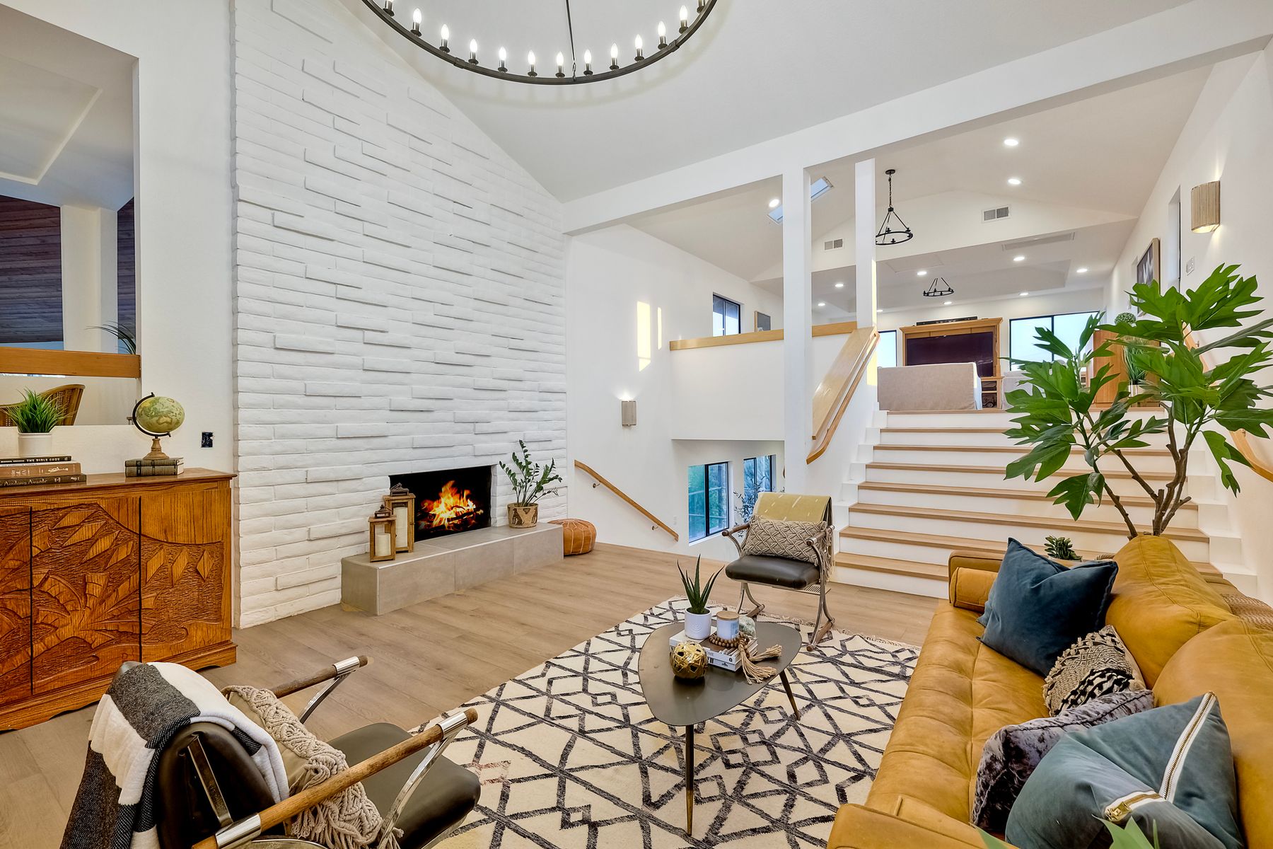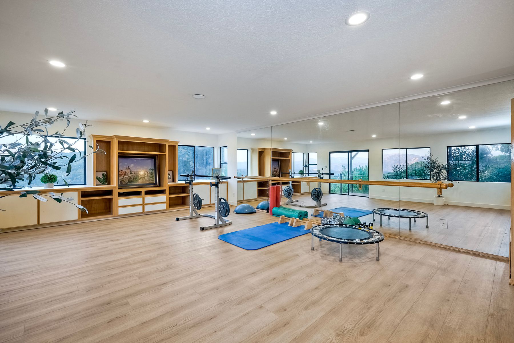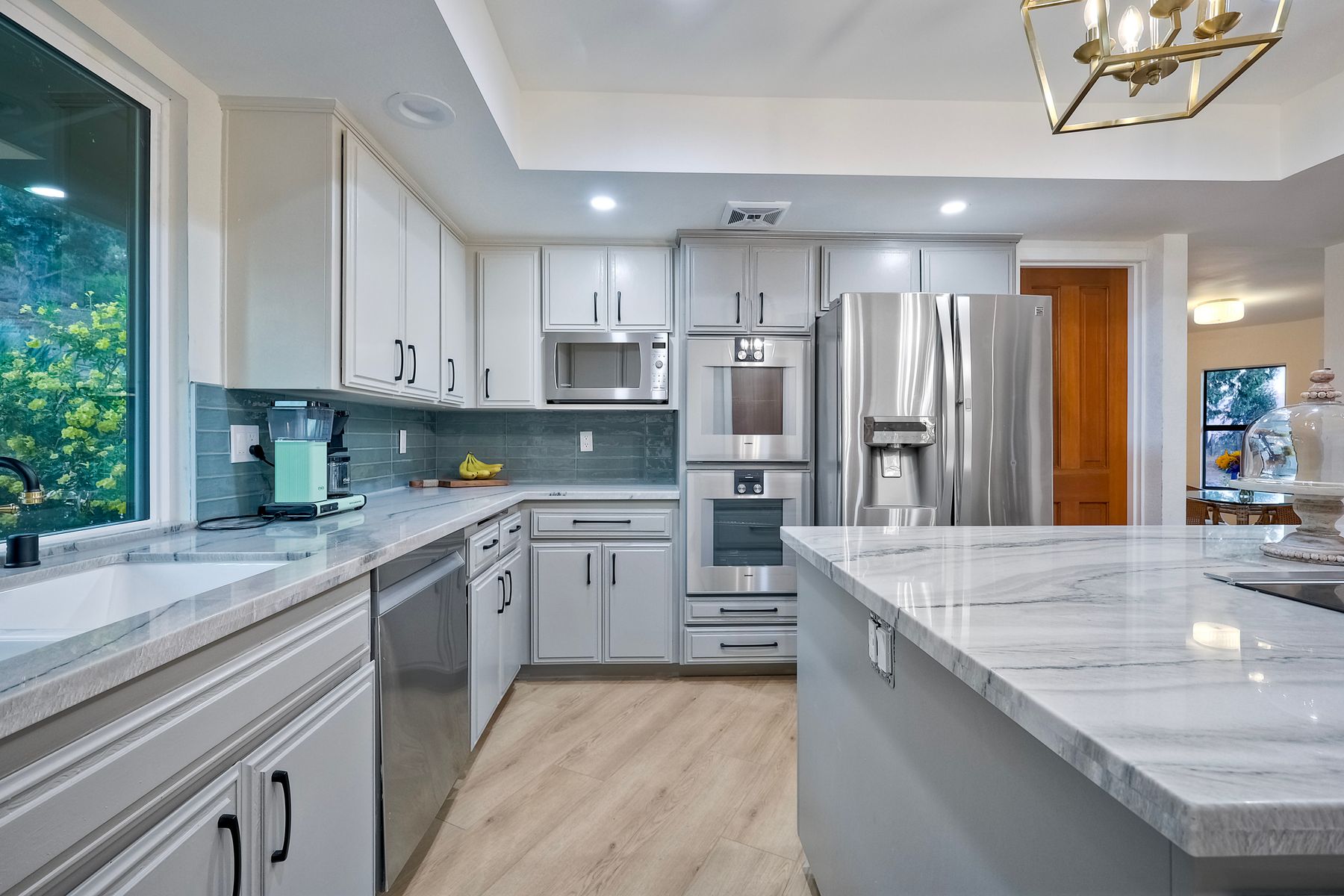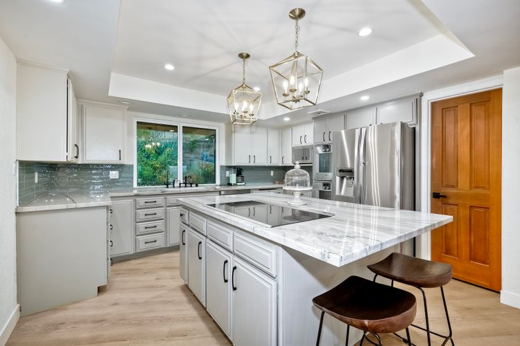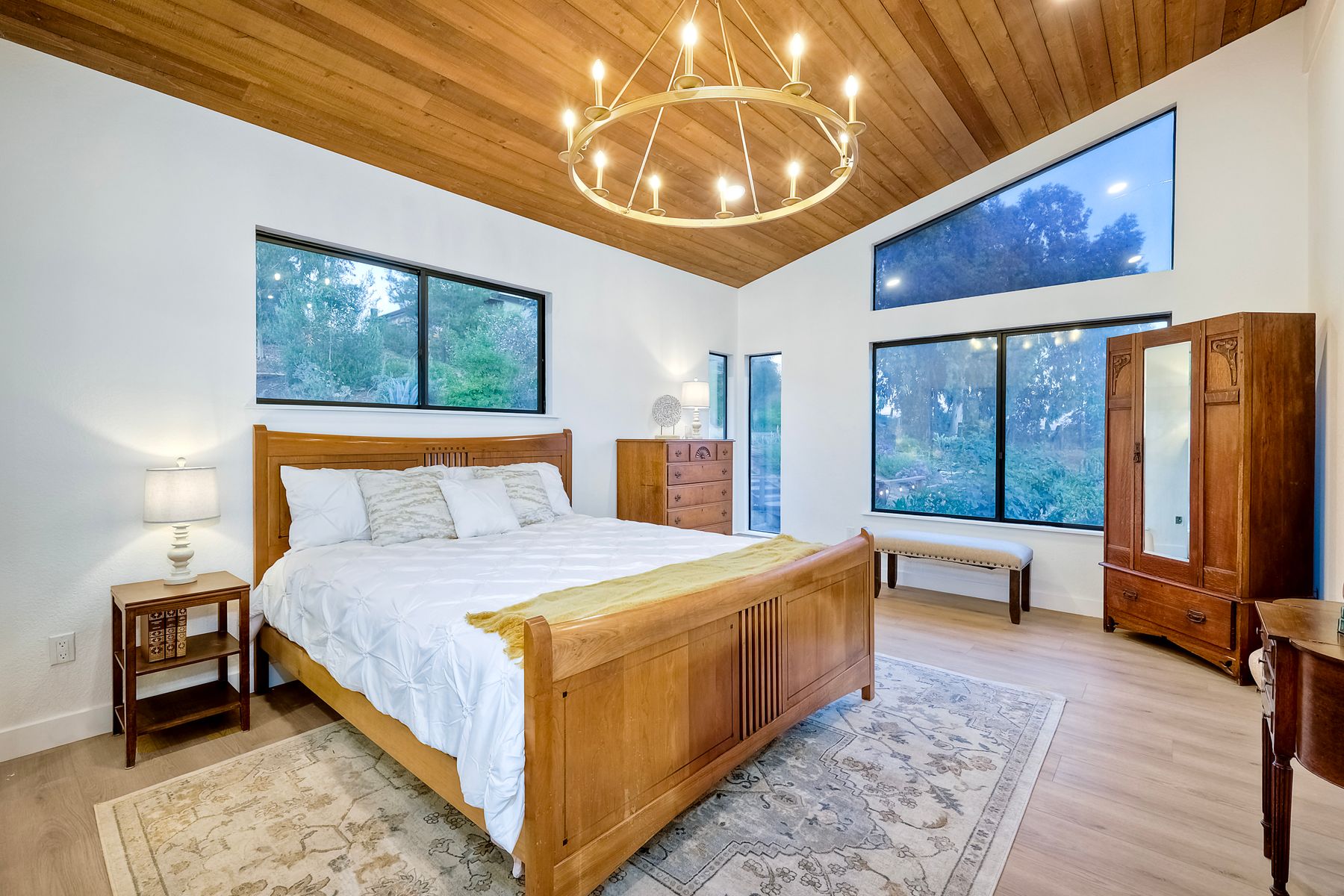 Welcome home to your own private paradise nestled in the hills of beautiful Alpine. Situated on over 2 sprawling acres with views abounding, this custom home has recently had a full makeover that will satisfy even the most critical buyer. As you walk in you'll be elated with the abundant space and all of the natural light that floods into the home. The entire home has brand new luxury vinyl plank flooring throughout, creating a warm and seamless space. As you walk down into the first living room, you'll notice the high ceilings with a brick feature wall that houses the fire place and gorgeous wood beamed vaulted ceilings, along with custom lighting. There are two large bonus rooms off of the living room to be used as you like. The upstairs one is currently used as a TV/media room and the downstairs space is an exercise room/dance studio complete with a mirrored wall and a ballet bar! Both come with gorgeous views of the outside landscape of mountains and valleys, as well as decks to enjoy the outdoors. The kitchen upgrades include new Quartzite countertops, custom backsplash and top of the line Gaggenau double ovens and Bosch cooktop. Off the kitchen, you'll find a large family room with a coffee/beverage bar to one side and a cozy fireplace seating/reading nook on the other. Perfect for those fall or winter nights! The generous master retreat is a space you may never want to leave! From the elevated sitting area with a tasteful paneled feature wall, to the stand alone soaker tub, to the enormous shower featuring four various shower heads--you can have a spa day without ever leaving your bedroom! Two other ample sized bedrooms are down the hall with their own Jack and Jill bathroom to share. That side of the house has it's own laundry room and there's also a Butlers pantry with it's own laundry located on the other side of the home. There is an attached ADU with TWO spacious bedrooms, both boasting wood beamed vaulted ceilings and custom lighting. Off the hallway is a brand new lovely full bathroom and finally there is a living area with it's own entrance. Great for multi-generational living or potential rental income?!? Once outside there is so much to see and enjoy! From the Trex decking that surrounds the back of the house to the salt water heated pool and spa to the fenced garden area that leads to the roughly quarter of a mile of trails surrounded by drought resistant landscaping--this is an entertainers DREAM! Stunning panoramic views all around this super private oasis! OWNED solar, including pool solar plus RV parking just sweetens this already gem of a house! Hurry and make this dream home yours today! **Potential for a rate buy down with the right price**