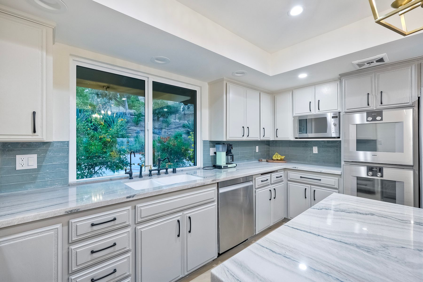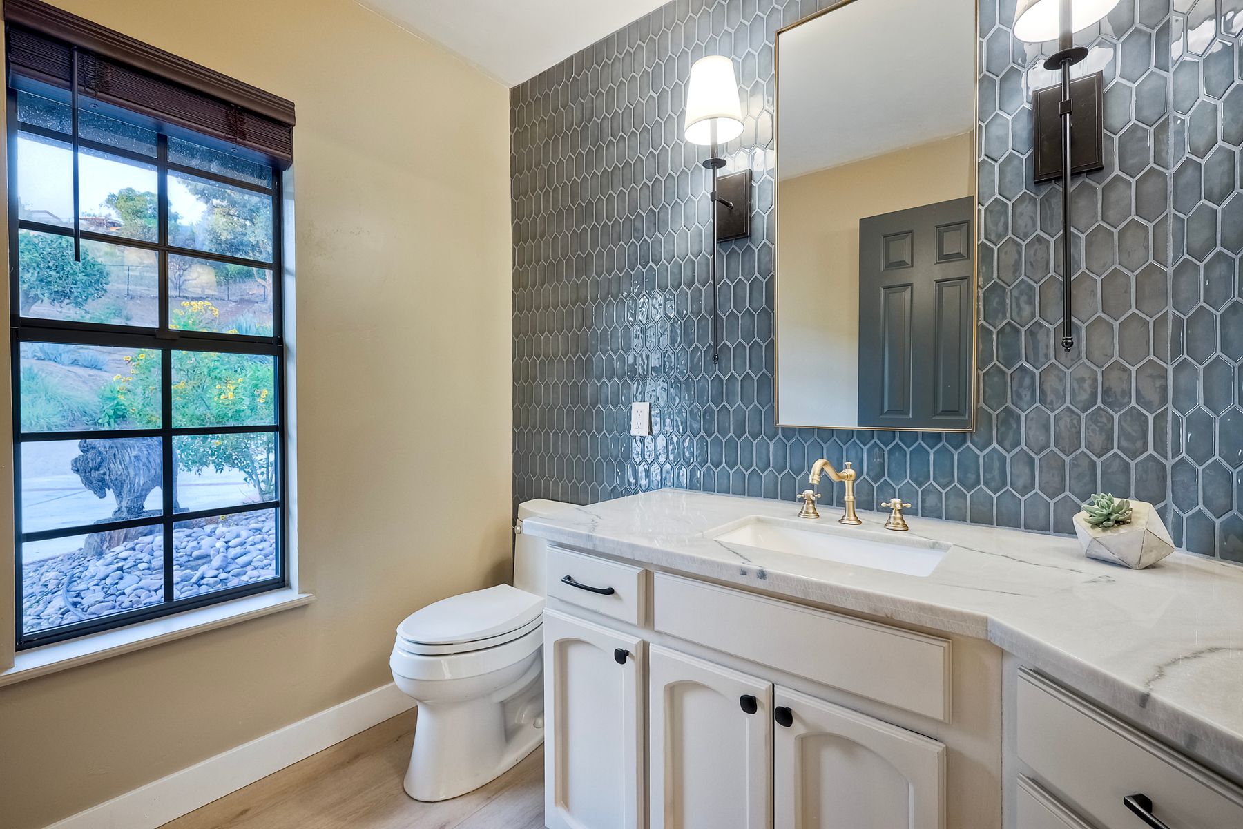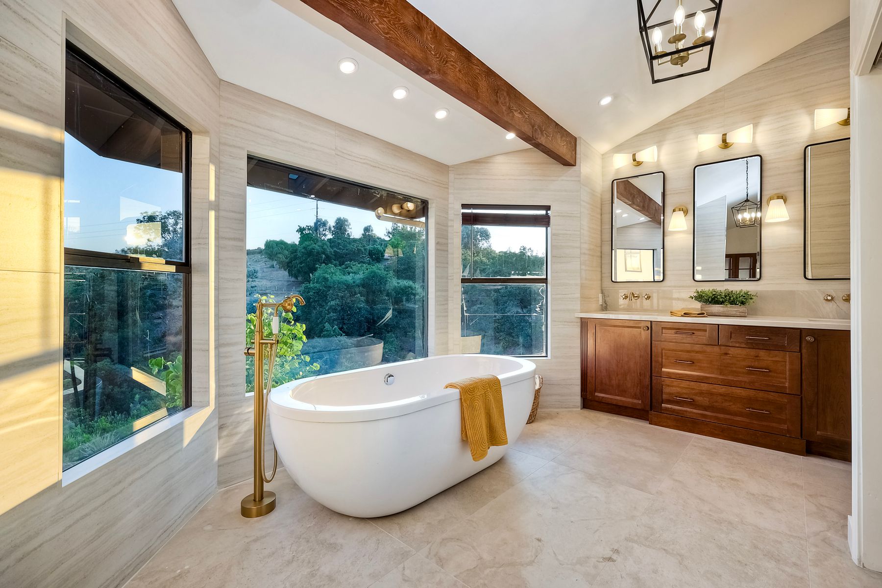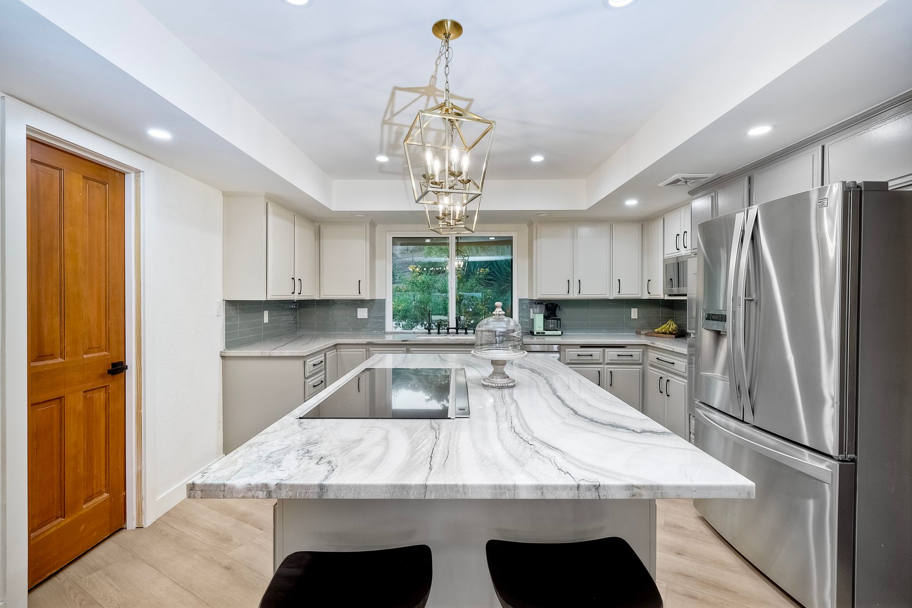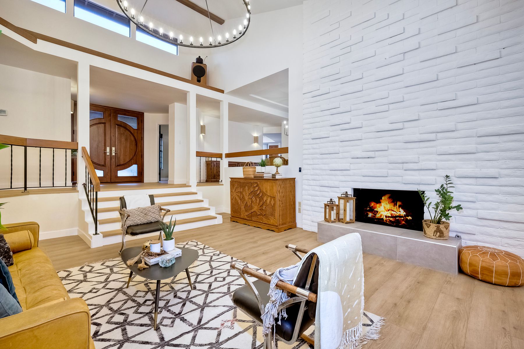 Welcome home to your own private paradise nestled in the hills of beautiful Alpine. Situated on over 2 sprawling acres with views abounding, this custom home has recently had a full makeover that will satisfy even the most critical buyer. As you walk in you'll be elated with the abundant space and all of the natural light that floods into the home. The entire home has brand new luxury vinyl plank flooring throughout, creating a warm and seamless space. As you walk down into the first living room, you'll notice the high ceilings with a brick feature wall that houses the fire place and gorgeous wood beamed vaulted ceilings, along with custom lighting. There are two large bonus rooms off of the living room to be used as you like. The upstairs one is currently used as a TV/media room and the downstairs space is an exercise room/dance studio complete with a mirrored wall and a ballet bar! Both come with gorgeous views of the outside landscape of mountains and valleys, as well as decks to enjoy the outdoors. The kitchen upgrades include new Quartzite countertops, custom backsplash and top of the line Gaggenau double ovens and Bosch cooktop. Off the kitchen, you'll find a large family room with a coffee/beverage bar to one side and a cozy fireplace seating/reading nook on the other. Perfect for those fall or winter nights! The generous master retreat is a space you may never want to leave! From the elevated sitting area with a tasteful paneled feature wall, to the stand alone soaker tub, to the enormous shower featuring four various shower heads--you can have a spa day without ever leaving your bedroom! Two other ample sized bedrooms are down the hall with their own Jack and Jill bathroom to share. That side of the house has it's own laundry room and there's also a Butlers pantry with it's own laundry located on the other side of the home. There is an attached ADU with TWO spacious bedrooms, both boasting wood beamed vaulted ceilings and custom lighting. Off the hallway is a brand new lovely full bathroom and finally there is a living area with it's own entrance. Great for multi-generational living or potential rental income?!? Once outside there is so much to see and enjoy! From the Trex decking that surrounds the back of the house to the salt water heated pool and spa to the fenced garden area that leads to the roughly quarter of a mile of trails surrounded by drought resistant landscaping--this is an entertainers DREAM! Stunning panoramic views all around this super private oasis! OWNED solar, including pool solar plus RV parking just sweetens this already gem of a house! Hurry and make this dream home yours today! **Potential for a rate buy down with the right price**