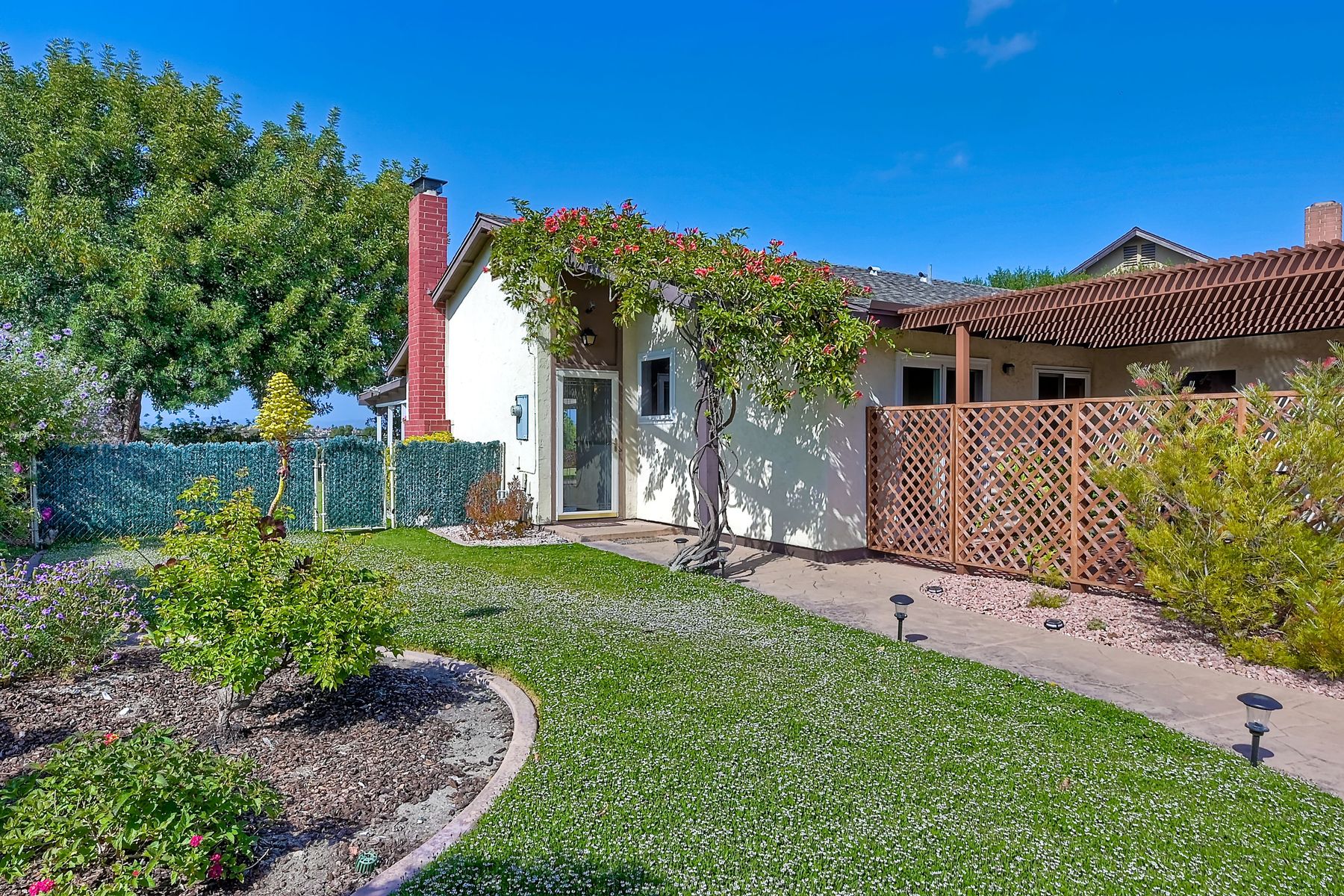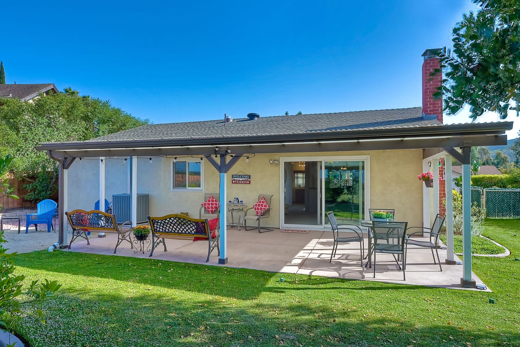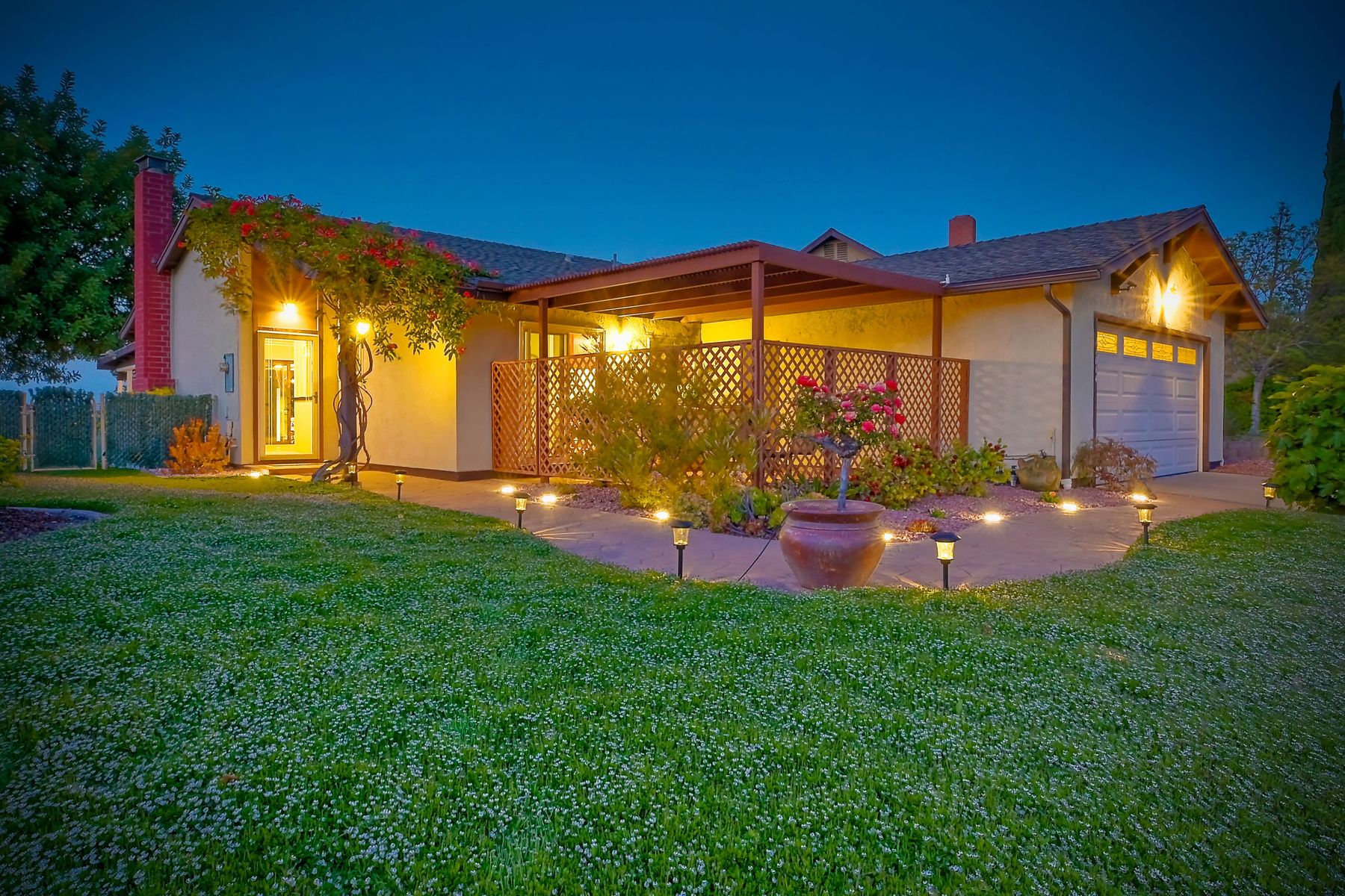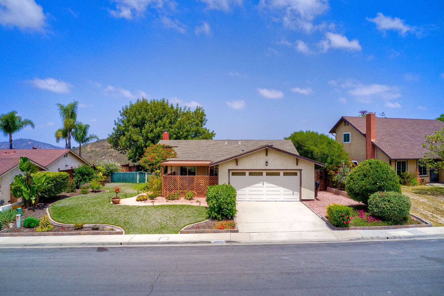 AMAZING PANORAMIC VIEW LOCATION!! Fantastic SINGLE STORY home in a great PRIVATE location with a SPECTACULAR VIEW. Very large covered back patio which extends to the beautiful large back yard. Large front patio with easy access to the kitchen. This well maintained single level home with a view & two car attached garage is rarely available. Three blocks from the Award Winning Poway Unified Rolling Hills Elementary School & recently renovated Rolling Hills Neighborhood Park. No Mello Roos or HOA fees. Amenities include professionally updated bathrooms, newer HVAC system & duct work, newer dual pane windows & patio sliders, stunning professionally landscaped grounds with many drought tolerant & low maintenance plants & fruit tree upgrades. Move in at COE. Welcome to a rarely available SINGLE STORY home with Panoramic VIEWS in the award winning Poway Unified School District. This property is located in the Penasquitos Glens area of North Rancho Penasquitos. The home is only three blocks from the Award Winning Rolling Hills Elementary School and the recently renovated 4 acre Rolling Hills Neighborhood Park. Access to the Very Large, completely covered back patio is possible from the living room. The VERY LARGE private patio and backyard with an AMAZING PANORAMIC VIEW is perfect for entertaining. Other features include many stainless steel appliances, newer dual pane sliding doors and windows, beautiful gas/wood fireplace in the living room, nice sized bedrooms, professionally updated bathrooms with newer tile flooring, newer sinks and much more. Other amenities include a newer top quality, energy efficient Heating and Central Air Conditioning system with newer duct work, a spacious two-car garage with built in storage shelves and professionally updated low maintenance drought tolerant landscaping with Orange, Lemon, Grapefruit and Fig trees. A great location for commuting, shopping and dining at several nearby Carmel Mountain Ranch shopping centers. Highway 56 and I-15 are also nearby with travel times of only 20 minutes to the ocean and 30 minutes to Downtown San Diego. All appliances convey and the home is available at close of escrow.