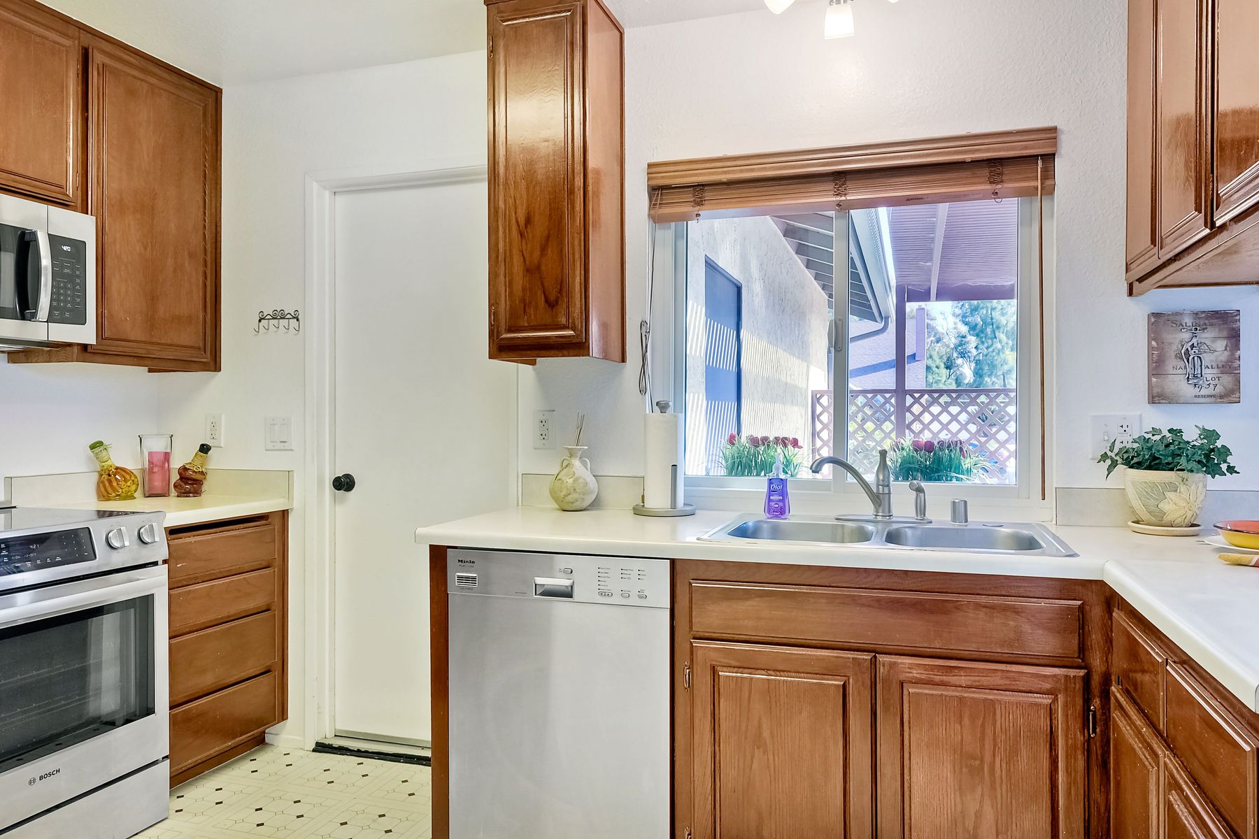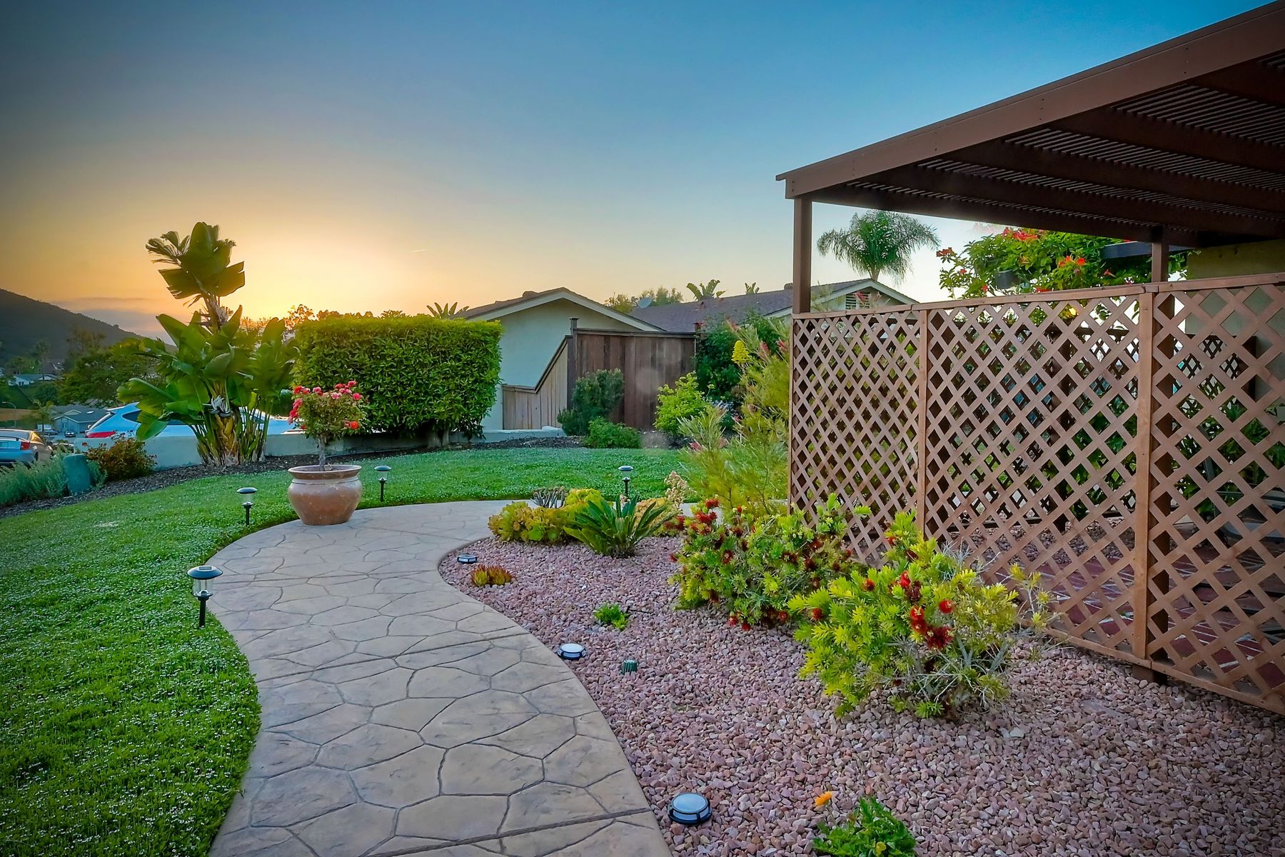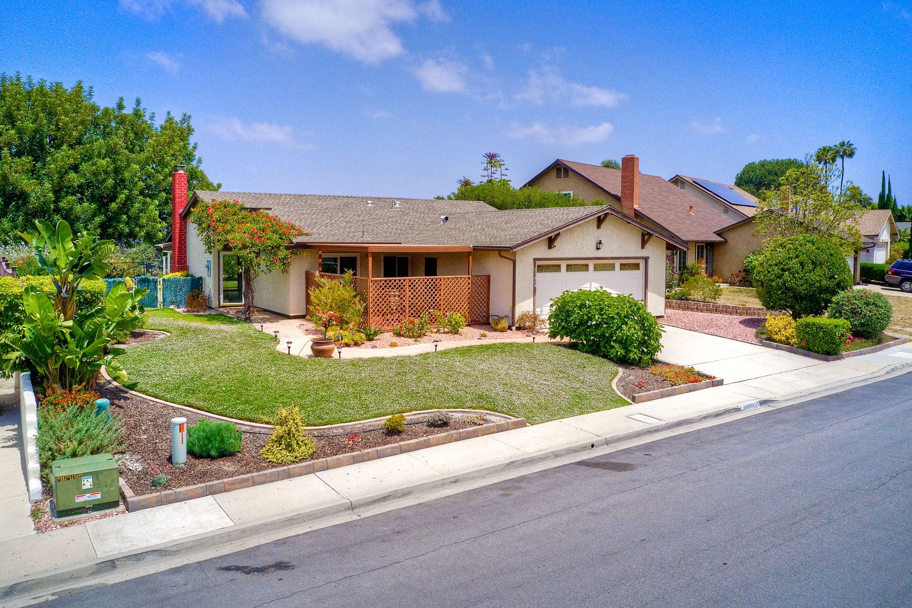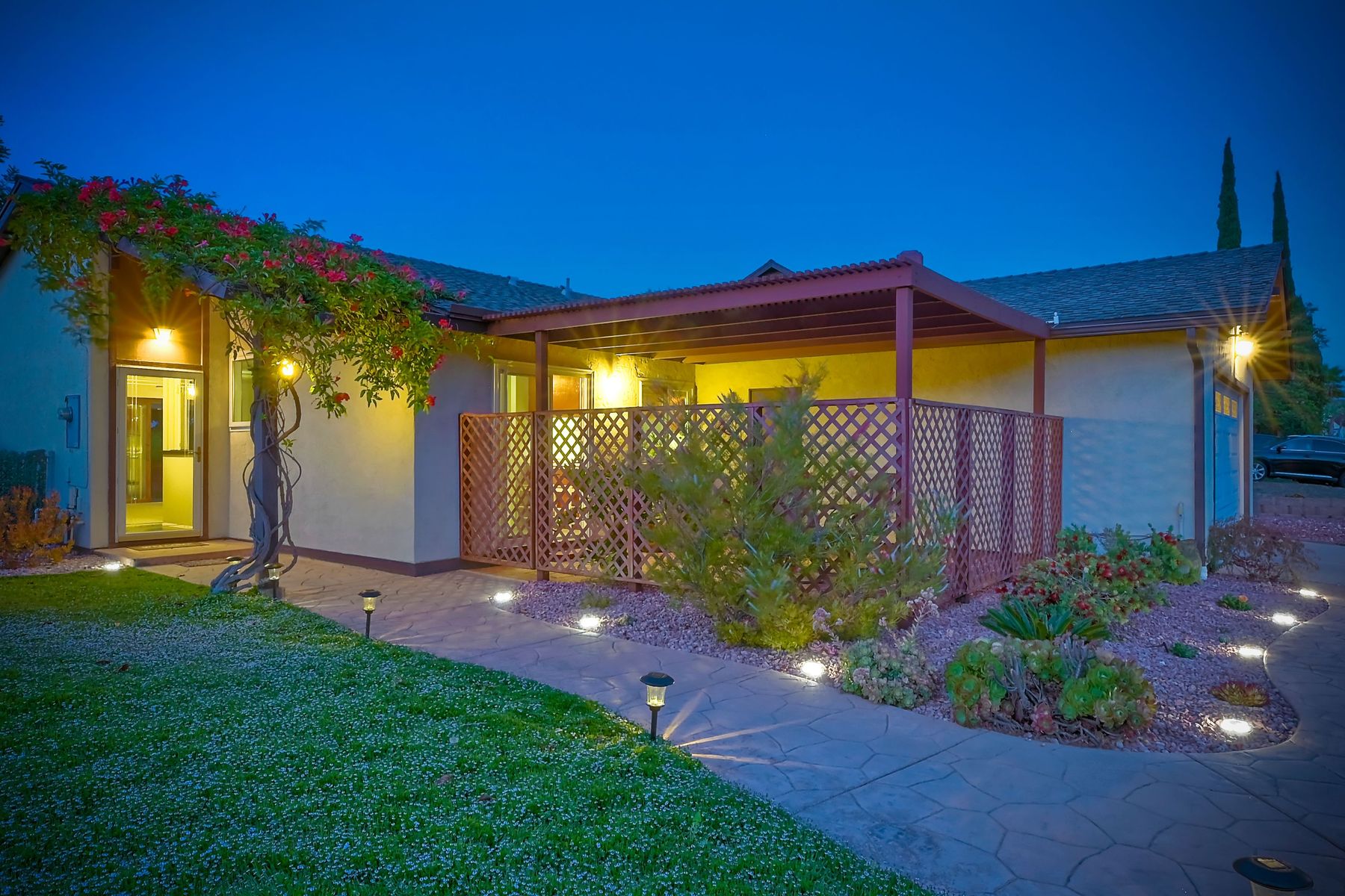 AMAZING PANORAMIC VIEW LOCATION!! Fantastic SINGLE STORY home in a great PRIVATE location with a SPECTACULAR VIEW. Very large covered back patio which extends to the beautiful large back yard. Large front patio with easy access to the kitchen. This well maintained single level home with a view & two car attached garage is rarely available. Three blocks from the Award Winning Poway Unified Rolling Hills Elementary School & recently renovated Rolling Hills Neighborhood Park. No Mello Roos or HOA fees. Amenities include professionally updated bathrooms, newer HVAC system & duct work, newer dual pane windows & patio sliders, stunning professionally landscaped grounds with many drought tolerant & low maintenance plants & fruit tree upgrades. Move in at COE. Welcome to a rarely available SINGLE STORY home with Panoramic VIEWS in the award winning Poway Unified School District. This property is located in the Penasquitos Glens area of North Rancho Penasquitos. The home is only three blocks from the Award Winning Rolling Hills Elementary School and the recently renovated 4 acre Rolling Hills Neighborhood Park. Access to the Very Large, completely covered back patio is possible from the living room. The VERY LARGE private patio and backyard with an AMAZING PANORAMIC VIEW is perfect for entertaining. Other features include many stainless steel appliances, newer dual pane sliding doors and windows, beautiful gas/wood fireplace in the living room, nice sized bedrooms, professionally updated bathrooms with newer tile flooring, newer sinks and much more. Other amenities include a newer top quality, energy efficient Heating and Central Air Conditioning system with newer duct work, a spacious two-car garage with built in storage shelves and professionally updated low maintenance drought tolerant landscaping with Orange, Lemon, Grapefruit and Fig trees. A great location for commuting, shopping and dining at several nearby Carmel Mountain Ranch shopping centers. Highway 56 and I-15 are also nearby with travel times of only 20 minutes to the ocean and 30 minutes to Downtown San Diego. All appliances convey and the home is available at close of escrow.