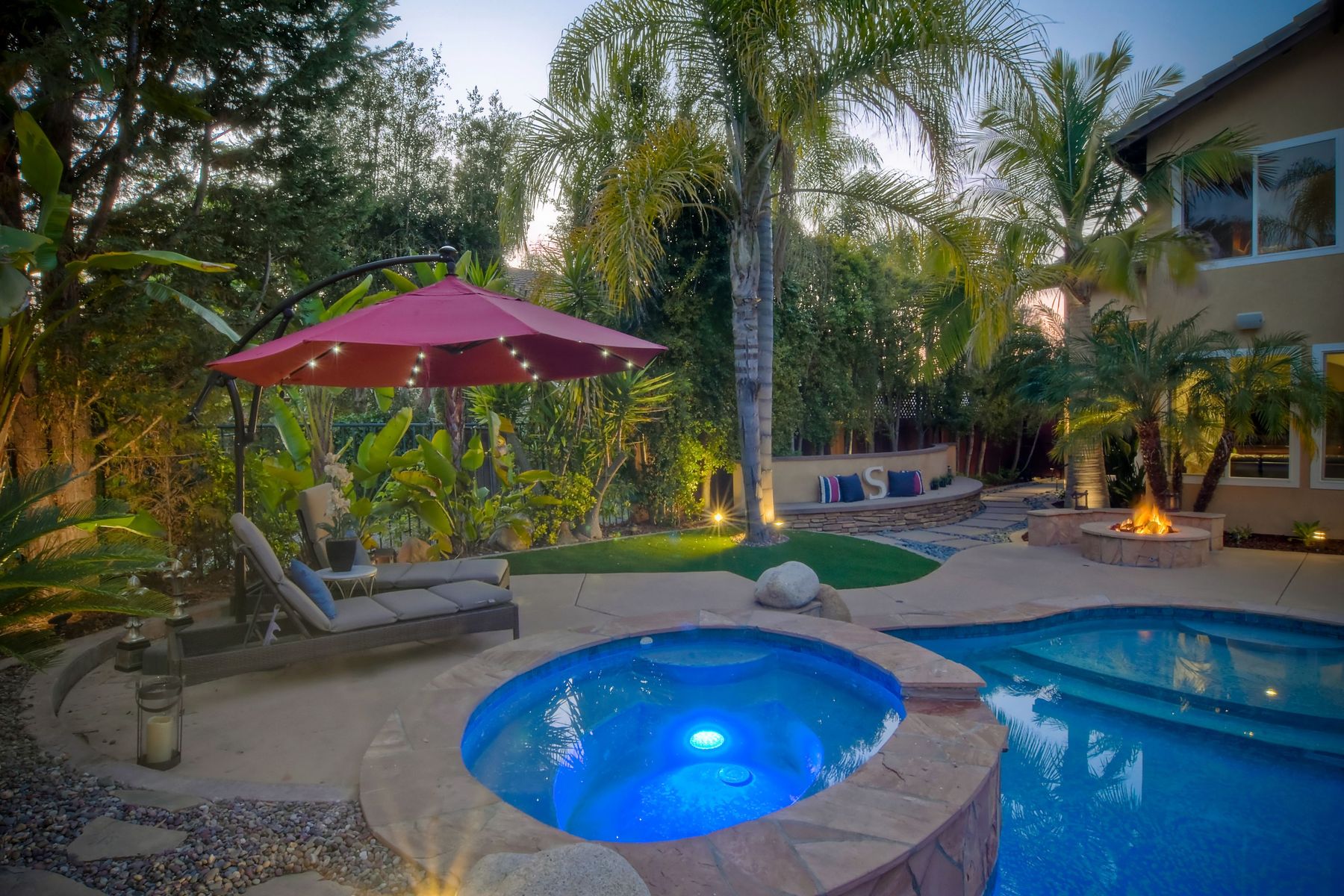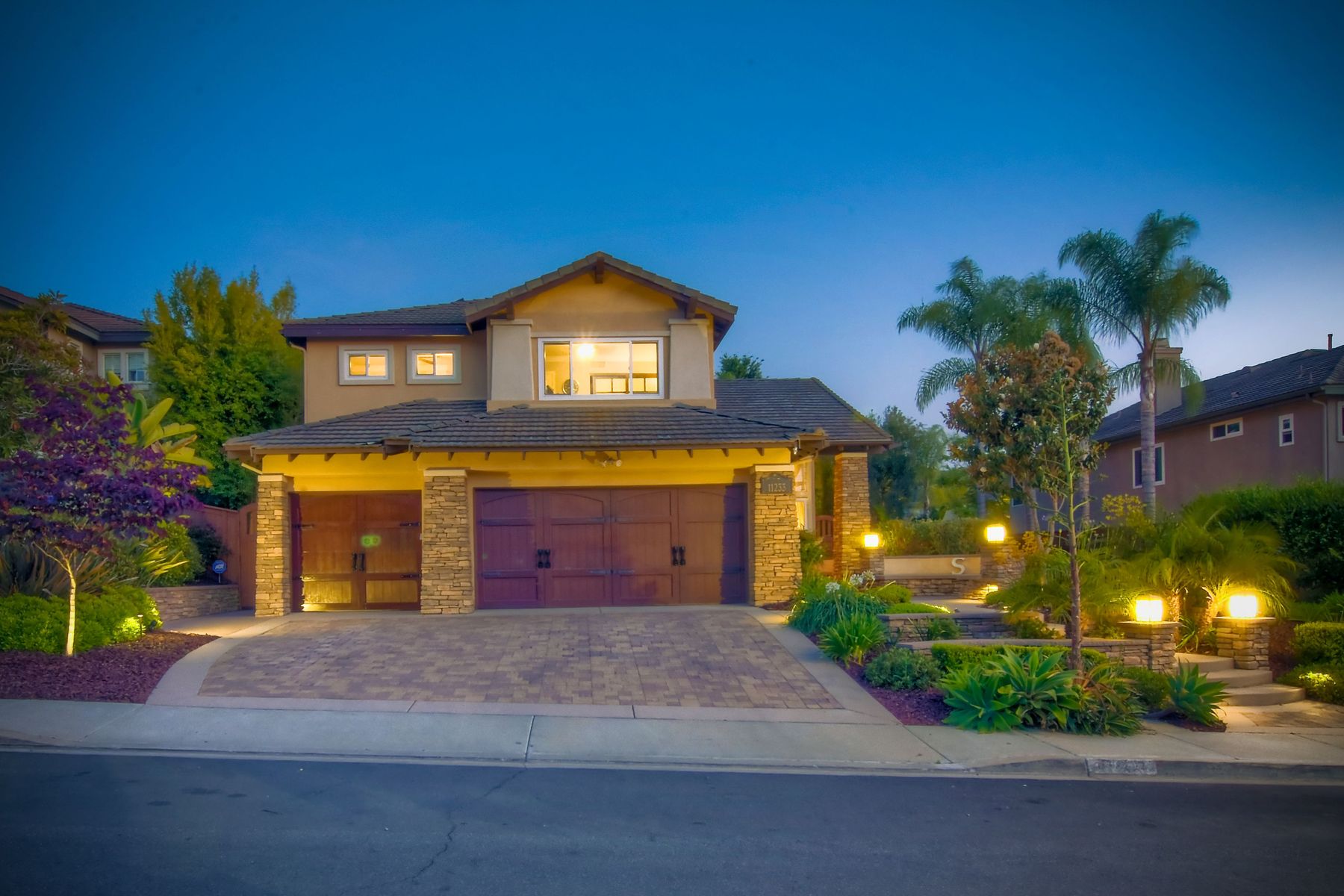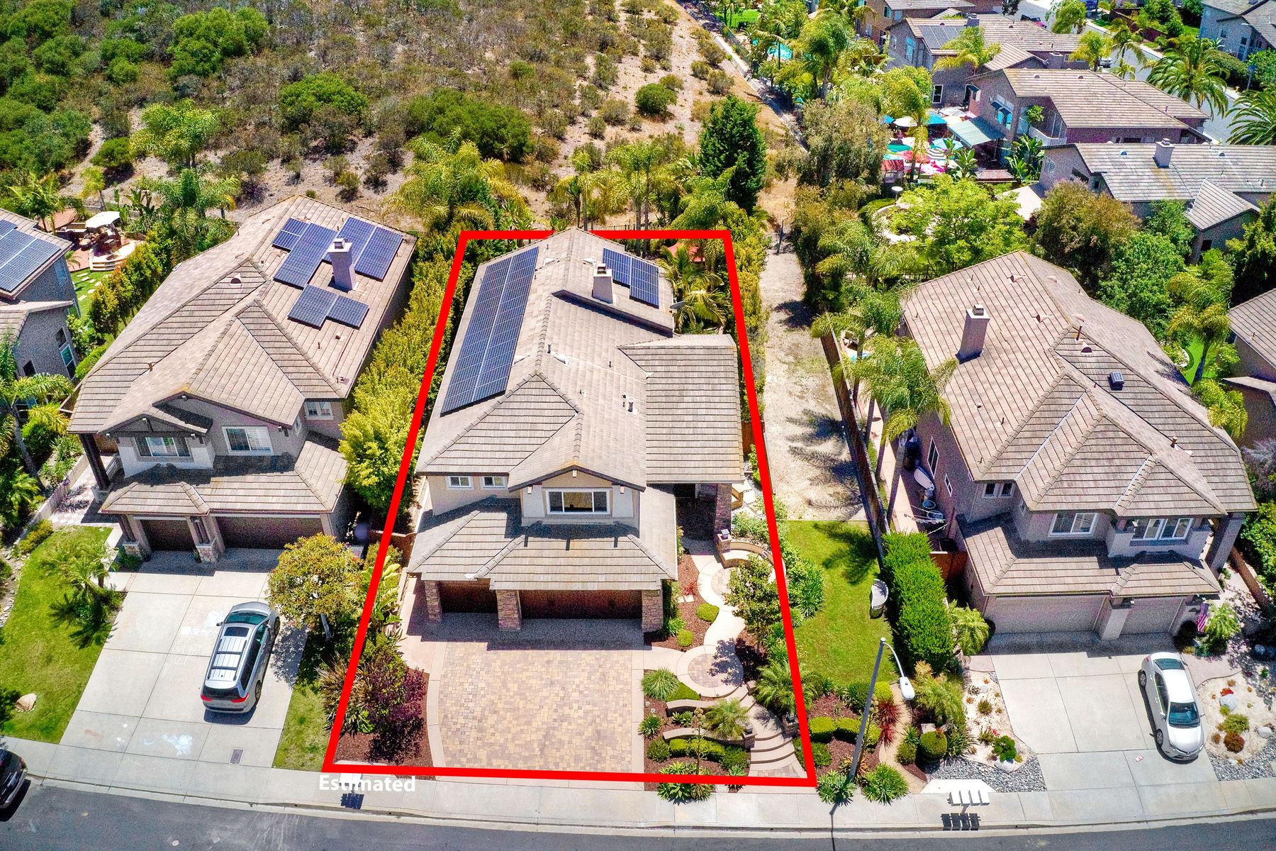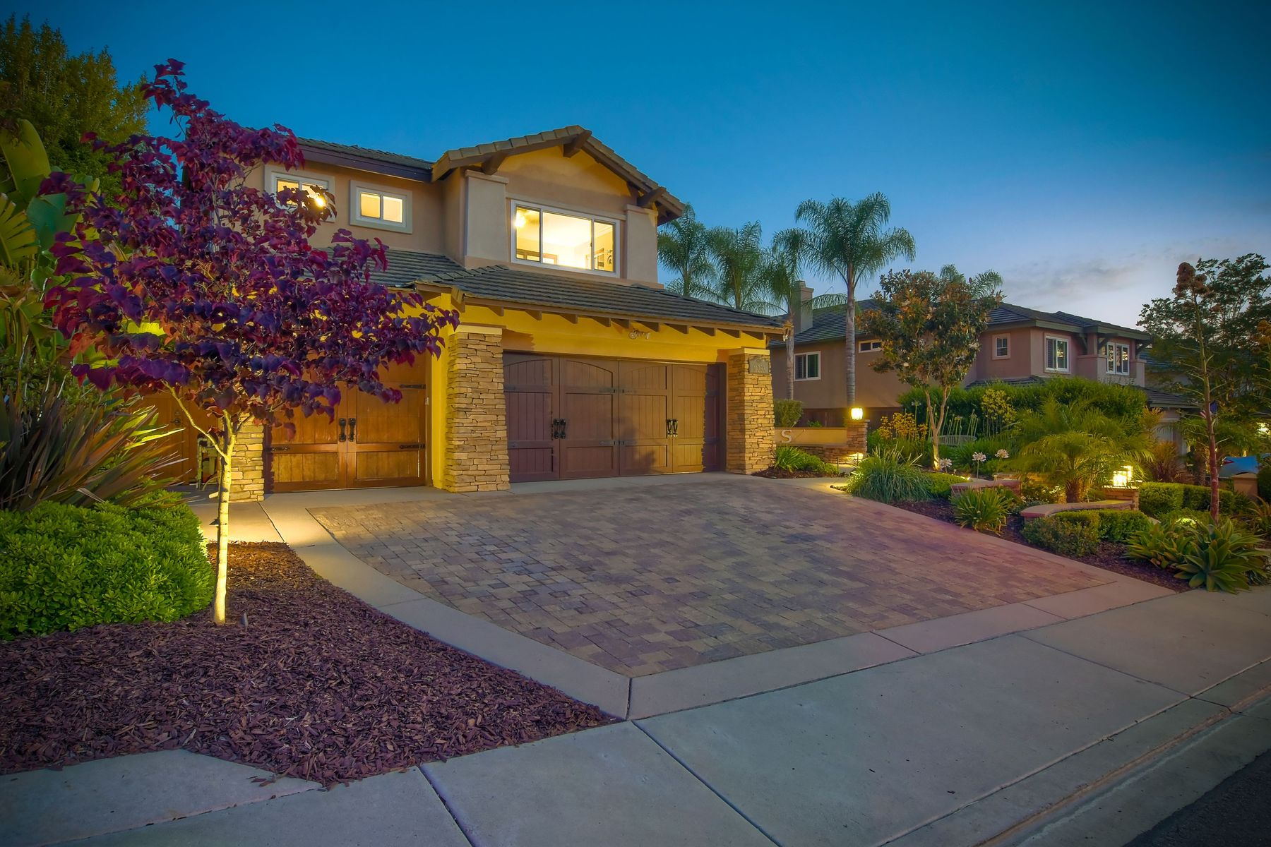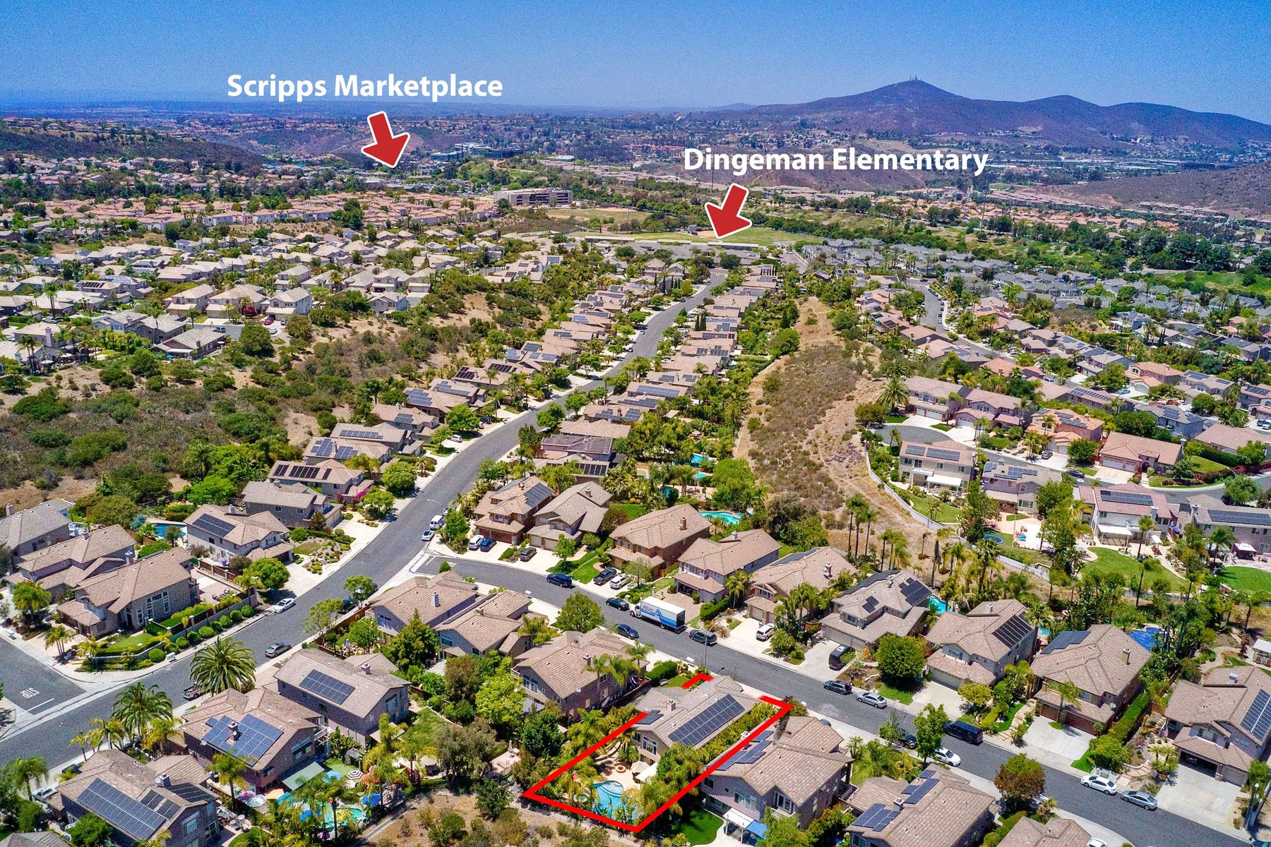 Outstanding location ... Wonderful Floor Plan ... Upgraded Throughout ... Smart home, meticulously maintained.  Located in a cul-de-sac, just the right distance from Dingeman Elem, and backing to open space, this home features a resort style back yard, a stunningly remodeled custom kitchen, an en-suite bedroom and full bathroom downstairs and quality upgrades everywhere.  Solar energy system is leased w/ favorable terms.  Close to parks, hiking trails, shopping, casual dining, and freeways.  Highly regarded Scripps Ranch Schools.  View photos w/ corresponding verbiage for details on all of the upgrades. If you have been waiting for THE home, then you want to come see this one. Let's start with the wonderful curb appeal w/ custom pavers at the driveway, custom garage doors and gorgeous landscaping w/ custom lighting, out front.  The custom wood door provides just a taste of what is to come.  Once inside, you will find custom slate flooring at the entryway which leads you to the porcelain plank tile flooring throughout downstairs.  Upgraded baseboards, crown molding, custom Lutron Smart lighting, leaded glass windows, custom paint, updated staircase, new dual pane windows, and custom window coverings, can all be appreciated immediately.  Yes .... CUSTOM is a term used often to describe the features found in this home.  The kitchen has been fully remodeled and customized to include a incredible slab granite counters, a huge main island space, a farmer's sink, custom cabinetry and stainless steel appliances.  The family room, complete w/custom floor to ceiling tile around the fireplace, custom lighting, and automated South Shade window coverings adjoins the breakfast nook and kitchen for GREAT MAIN LIVING SPACE.  Other features downstairs include an en-suite bedroom and upgraded bathroom, and a a customized laundry room.  The upgraded Nest thermostat can be controlled by an app allowing you to remotely control the temperature of the home.  Upstairs you will find gorgeous hardwood floors, custom paint, upgrades baseboards, crown molding, and custom lighting.  The large master bedroom features a walk-in closet, and remodeled master bathroom.  You will find 3 additional bedrooms PLUS an office upstairs.  The private back yard features a relaxing pool/spa and fire pit w/ multiple seating areas ... perfect for entertaining.  The main components of the pool equipment have all been recently updated.  The owner has installed multiple systems whereas you can use apps to remotely turn on lights, control the home temperature, raise or lower window coverings, turn on the spa, or open or close the garage door.  There are no neighbors directly behind you, and some open space (easement) to the west side of the home.  You will find easy access to walking trails at the end of the cul-de-sac, and you are withing walking distance to Dingeman Elementary School, Scripps Marketplace, and Scripps Ranch Community Center.  The owner has an SRSRC membership which may be transferred to the new owner.   Don't miss this one!