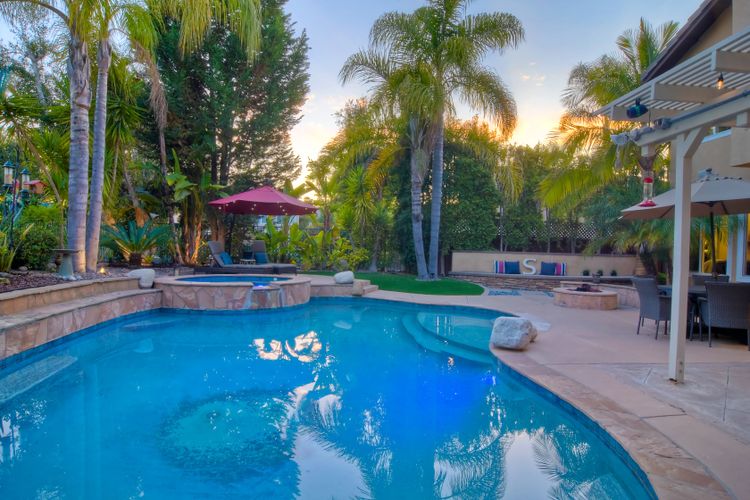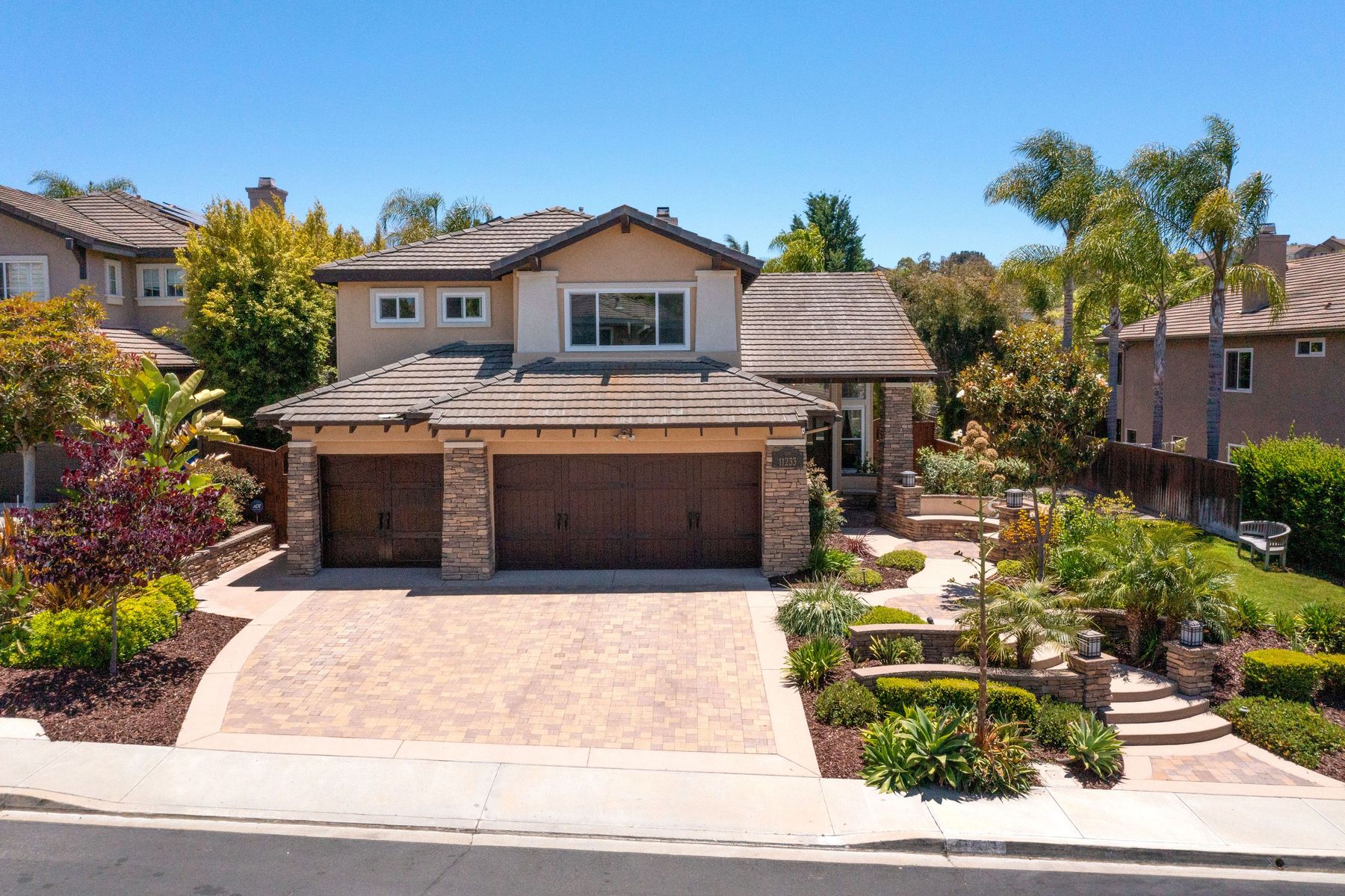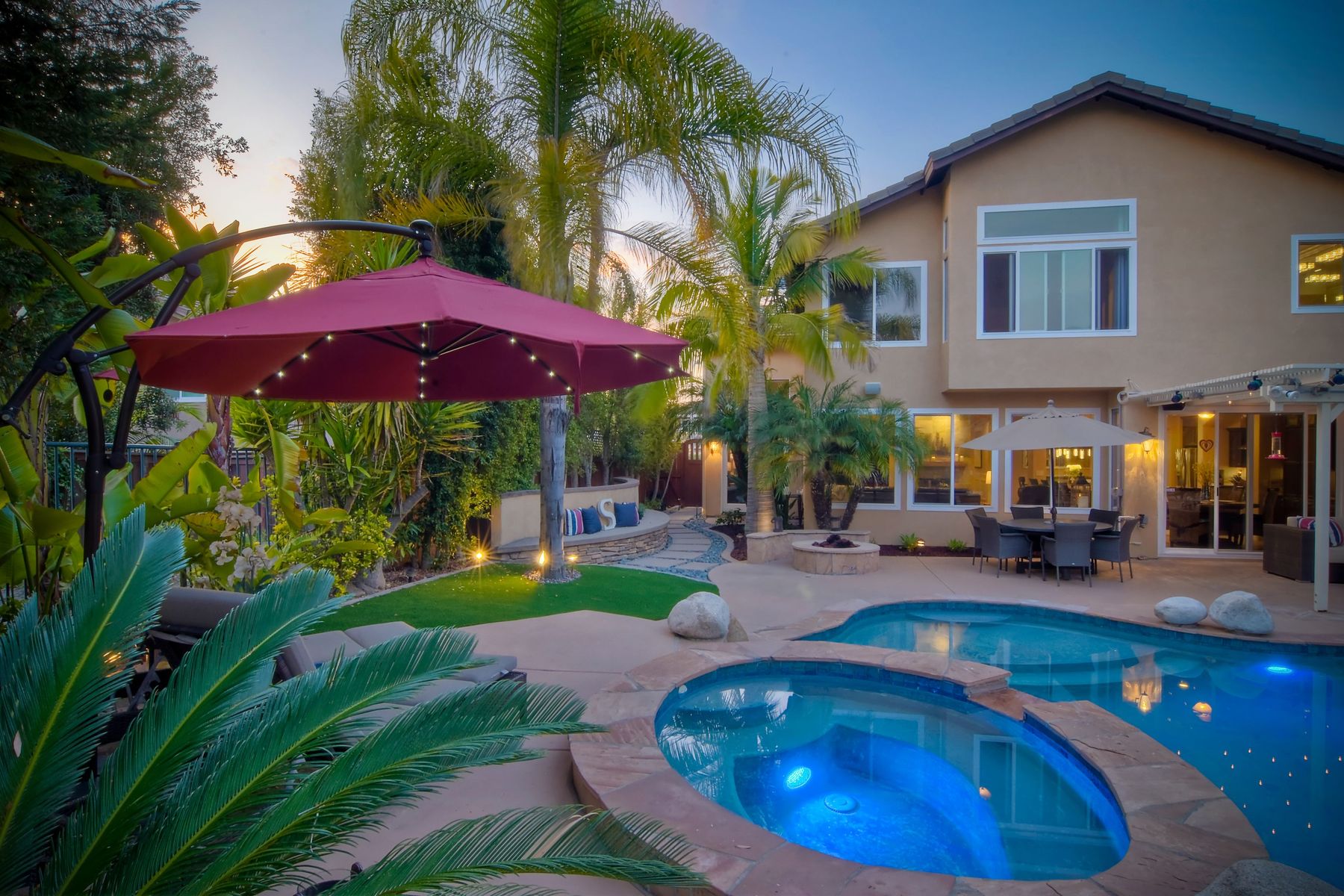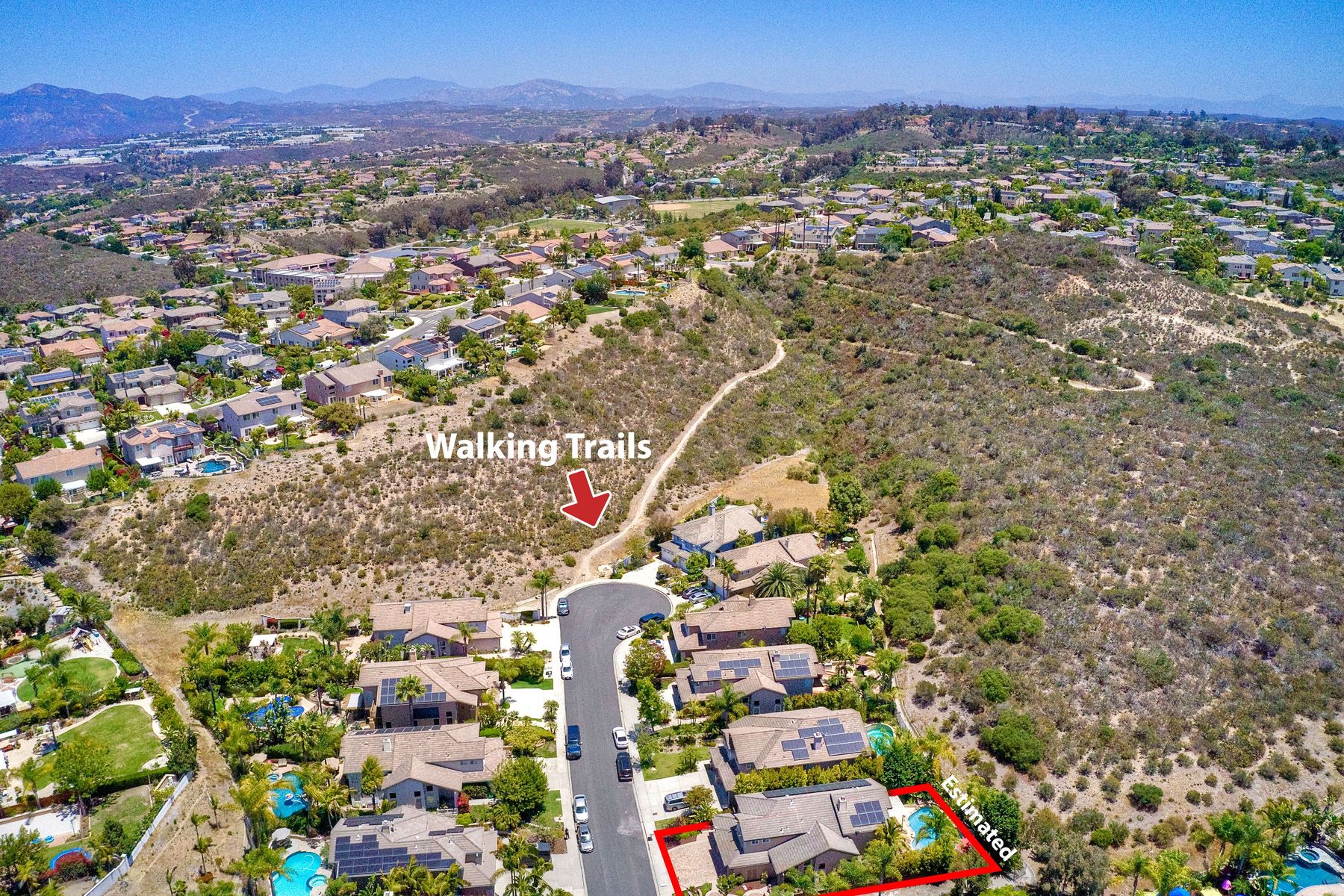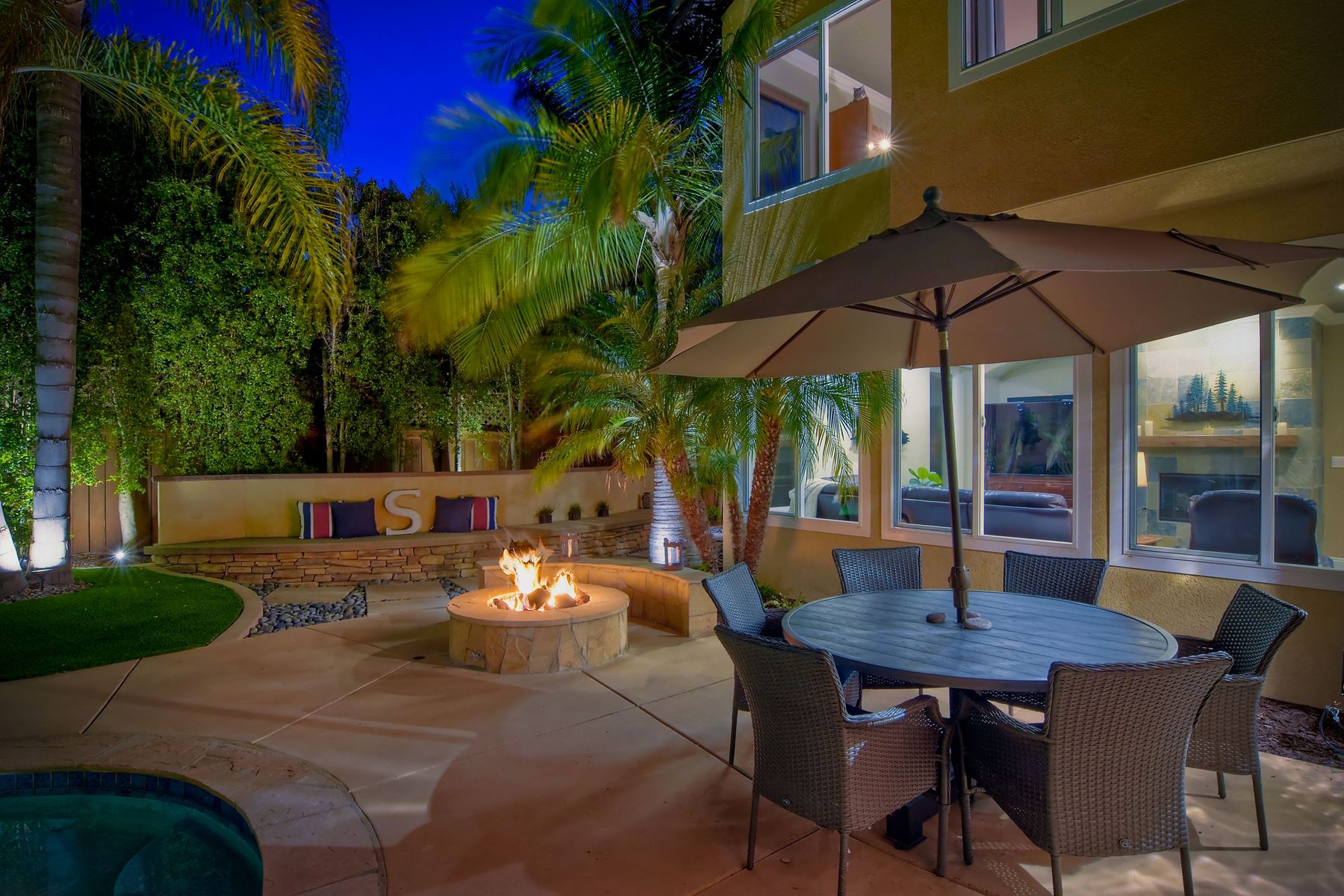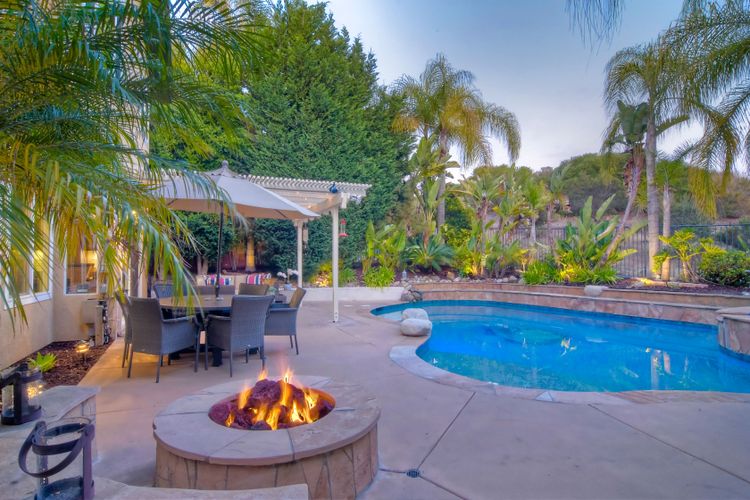 Outstanding location ... Wonderful Floor Plan ... Upgraded Throughout ... Smart home, meticulously maintained.  Located in a cul-de-sac, just the right distance from Dingeman Elem, and backing to open space, this home features a resort style back yard, a stunningly remodeled custom kitchen, an en-suite bedroom and full bathroom downstairs and quality upgrades everywhere.  Solar energy system is leased w/ favorable terms.  Close to parks, hiking trails, shopping, casual dining, and freeways.  Highly regarded Scripps Ranch Schools.  View photos w/ corresponding verbiage for details on all of the upgrades. If you have been waiting for THE home, then you want to come see this one. Let's start with the wonderful curb appeal w/ custom pavers at the driveway, custom garage doors and gorgeous landscaping w/ custom lighting, out front.  The custom wood door provides just a taste of what is to come.  Once inside, you will find custom slate flooring at the entryway which leads you to the porcelain plank tile flooring throughout downstairs.  Upgraded baseboards, crown molding, custom Lutron Smart lighting, leaded glass windows, custom paint, updated staircase, new dual pane windows, and custom window coverings, can all be appreciated immediately.  Yes .... CUSTOM is a term used often to describe the features found in this home.  The kitchen has been fully remodeled and customized to include a incredible slab granite counters, a huge main island space, a farmer's sink, custom cabinetry and stainless steel appliances.  The family room, complete w/custom floor to ceiling tile around the fireplace, custom lighting, and automated South Shade window coverings adjoins the breakfast nook and kitchen for GREAT MAIN LIVING SPACE.  Other features downstairs include an en-suite bedroom and upgraded bathroom, and a a customized laundry room.  The upgraded Nest thermostat can be controlled by an app allowing you to remotely control the temperature of the home.  Upstairs you will find gorgeous hardwood floors, custom paint, upgrades baseboards, crown molding, and custom lighting.  The large master bedroom features a walk-in closet, and remodeled master bathroom.  You will find 3 additional bedrooms PLUS an office upstairs.  The private back yard features a relaxing pool/spa and fire pit w/ multiple seating areas ... perfect for entertaining.  The main components of the pool equipment have all been recently updated.  The owner has installed multiple systems whereas you can use apps to remotely turn on lights, control the home temperature, raise or lower window coverings, turn on the spa, or open or close the garage door.  There are no neighbors directly behind you, and some open space (easement) to the west side of the home.  You will find easy access to walking trails at the end of the cul-de-sac, and you are withing walking distance to Dingeman Elementary School, Scripps Marketplace, and Scripps Ranch Community Center.  The owner has an SRSRC membership which may be transferred to the new owner.   Don't miss this one!