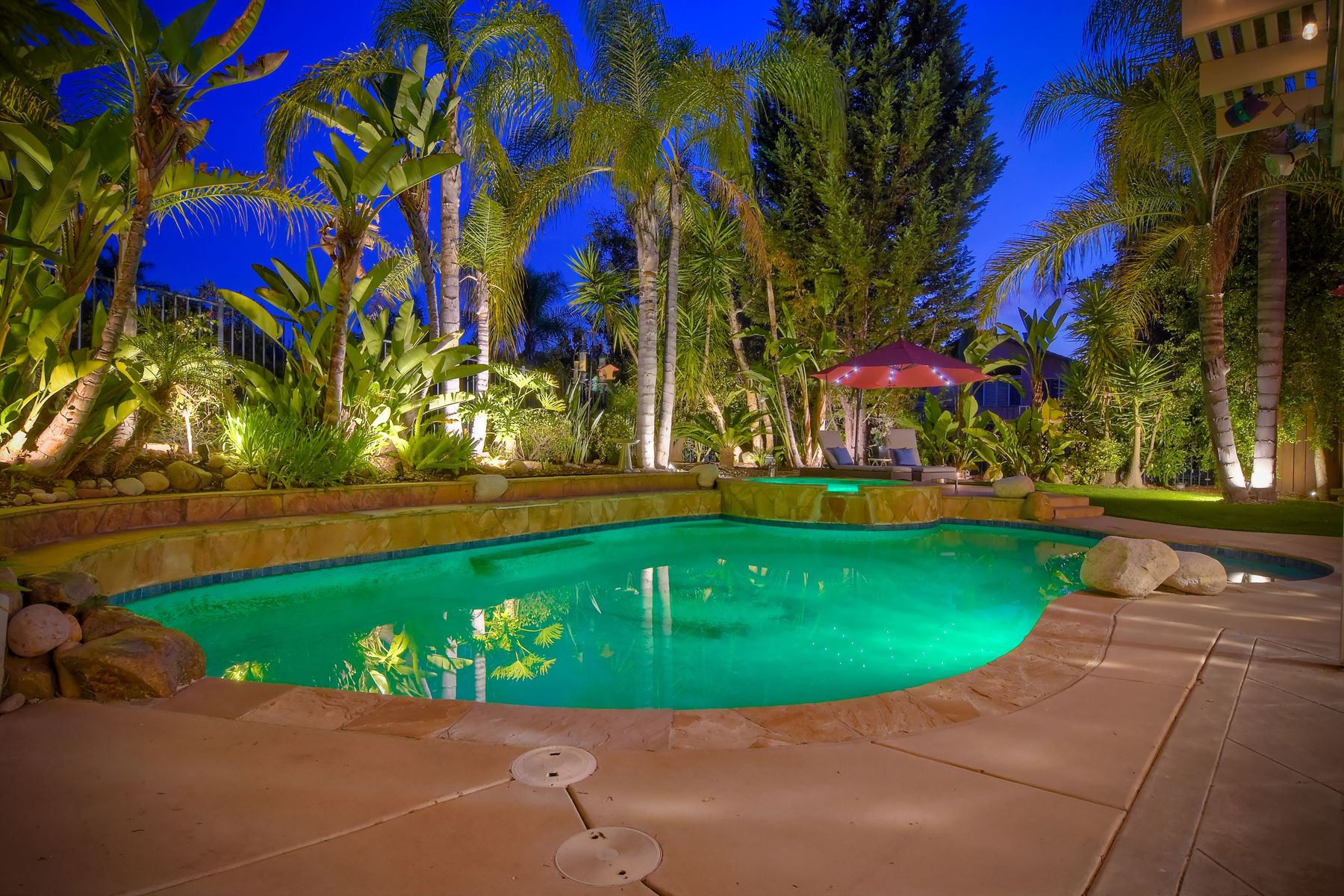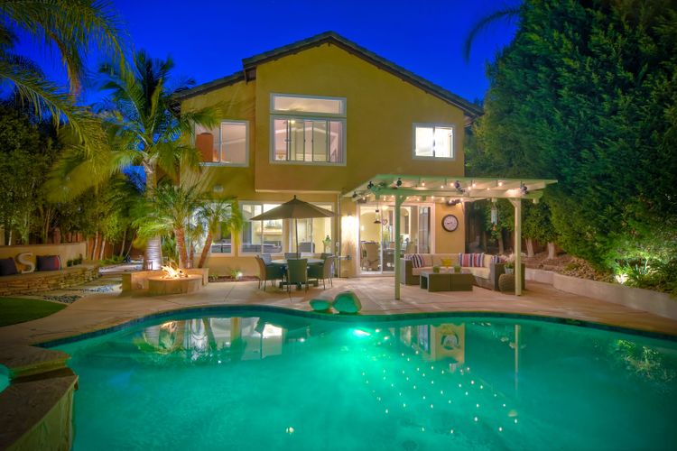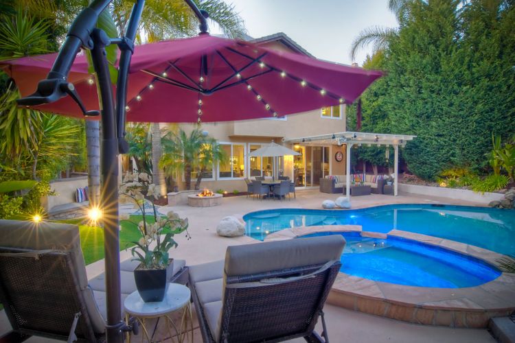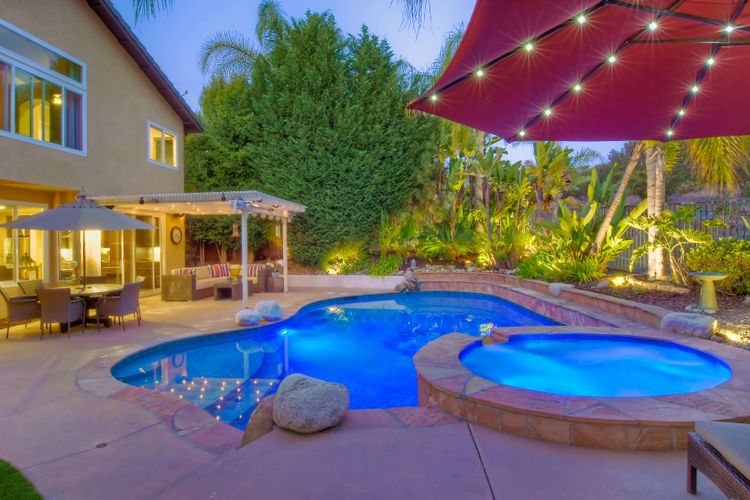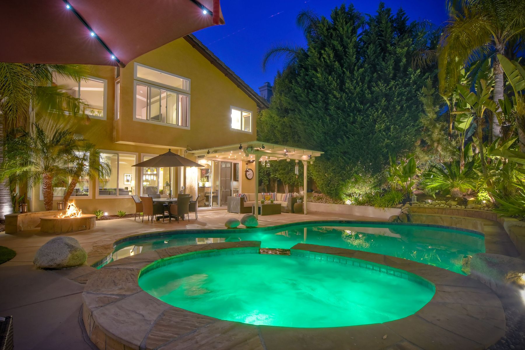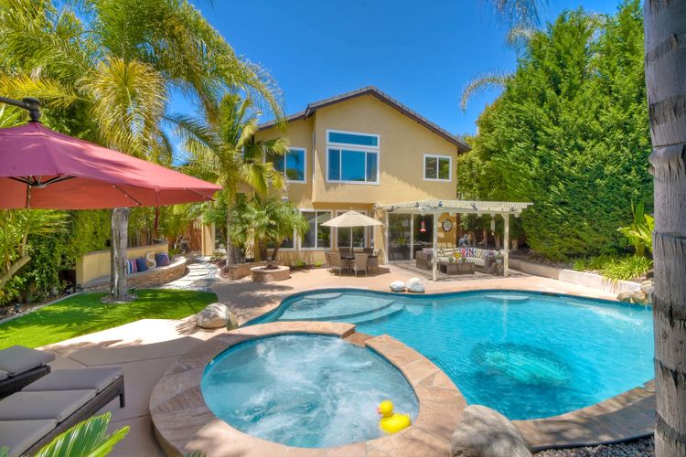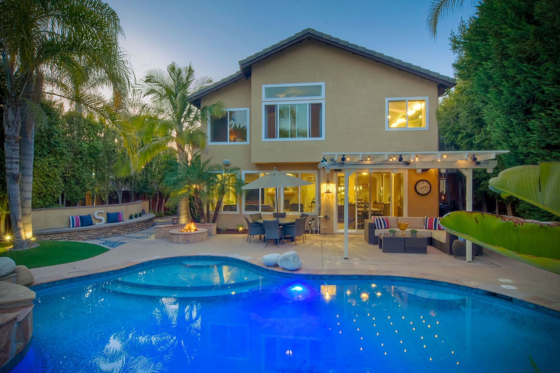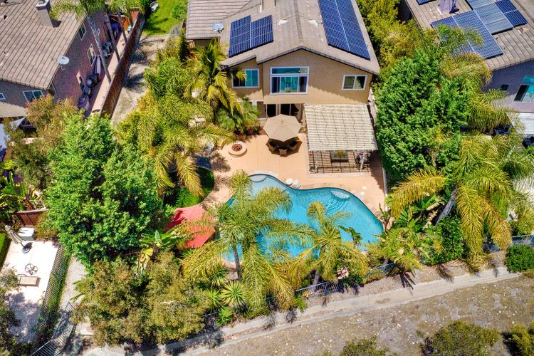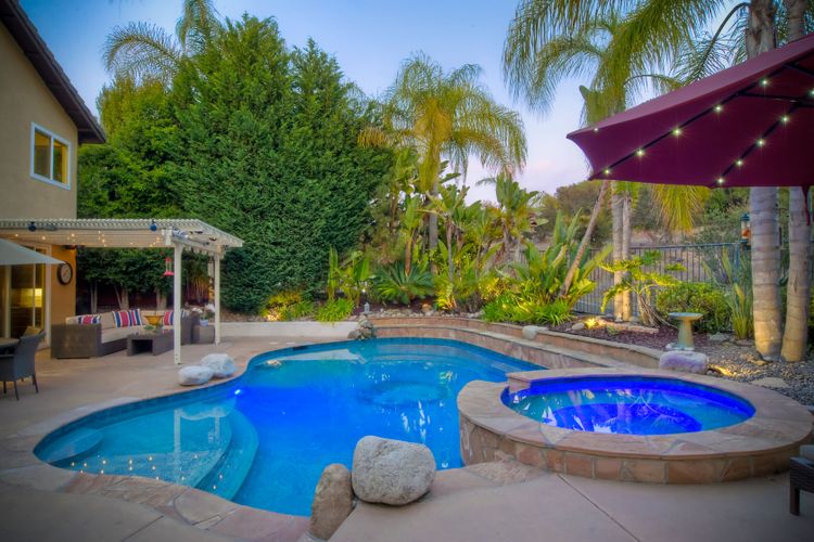 Outstanding location ... Wonderful Floor Plan ... Upgraded Throughout ... Smart home, meticulously maintained.  Located in a cul-de-sac, just the right distance from Dingeman Elem, and backing to open space, this home features a resort style back yard, a stunningly remodeled custom kitchen, an en-suite bedroom and full bathroom downstairs and quality upgrades everywhere.  Solar energy system is leased w/ favorable terms.  Close to parks, hiking trails, shopping, casual dining, and freeways.  Highly regarded Scripps Ranch Schools.  View photos w/ corresponding verbiage for details on all of the upgrades. If you have been waiting for THE home, then you want to come see this one. Let's start with the wonderful curb appeal w/ custom pavers at the driveway, custom garage doors and gorgeous landscaping w/ custom lighting, out front.  The custom wood door provides just a taste of what is to come.  Once inside, you will find custom slate flooring at the entryway which leads you to the porcelain plank tile flooring throughout downstairs.  Upgraded baseboards, crown molding, custom Lutron Smart lighting, leaded glass windows, custom paint, updated staircase, new dual pane windows, and custom window coverings, can all be appreciated immediately.  Yes .... CUSTOM is a term used often to describe the features found in this home.  The kitchen has been fully remodeled and customized to include a incredible slab granite counters, a huge main island space, a farmer's sink, custom cabinetry and stainless steel appliances.  The family room, complete w/custom floor to ceiling tile around the fireplace, custom lighting, and automated South Shade window coverings adjoins the breakfast nook and kitchen for GREAT MAIN LIVING SPACE.  Other features downstairs include an en-suite bedroom and upgraded bathroom, and a a customized laundry room.  The upgraded Nest thermostat can be controlled by an app allowing you to remotely control the temperature of the home.  Upstairs you will find gorgeous hardwood floors, custom paint, upgrades baseboards, crown molding, and custom lighting.  The large master bedroom features a walk-in closet, and remodeled master bathroom.  You will find 3 additional bedrooms PLUS an office upstairs.  The private back yard features a relaxing pool/spa and fire pit w/ multiple seating areas ... perfect for entertaining.  The main components of the pool equipment have all been recently updated.  The owner has installed multiple systems whereas you can use apps to remotely turn on lights, control the home temperature, raise or lower window coverings, turn on the spa, or open or close the garage door.  There are no neighbors directly behind you, and some open space (easement) to the west side of the home.  You will find easy access to walking trails at the end of the cul-de-sac, and you are withing walking distance to Dingeman Elementary School, Scripps Marketplace, and Scripps Ranch Community Center.  The owner has an SRSRC membership which may be transferred to the new owner.   Don't miss this one!