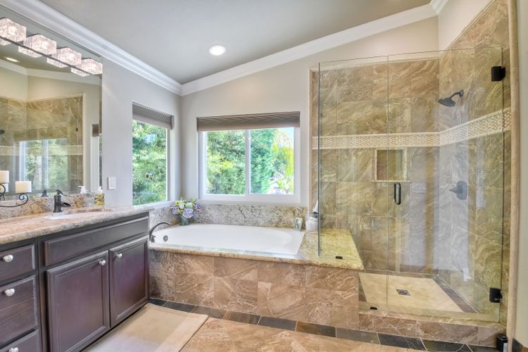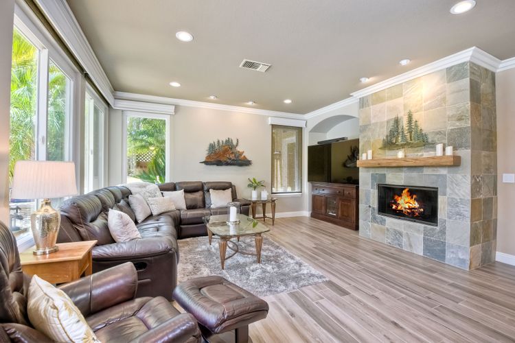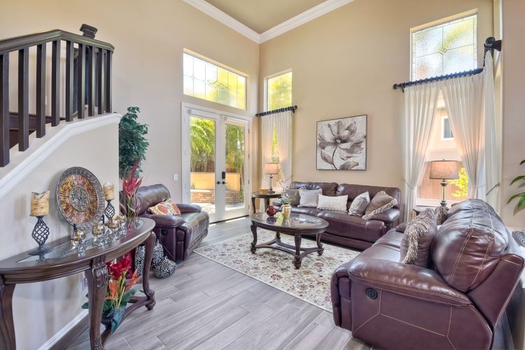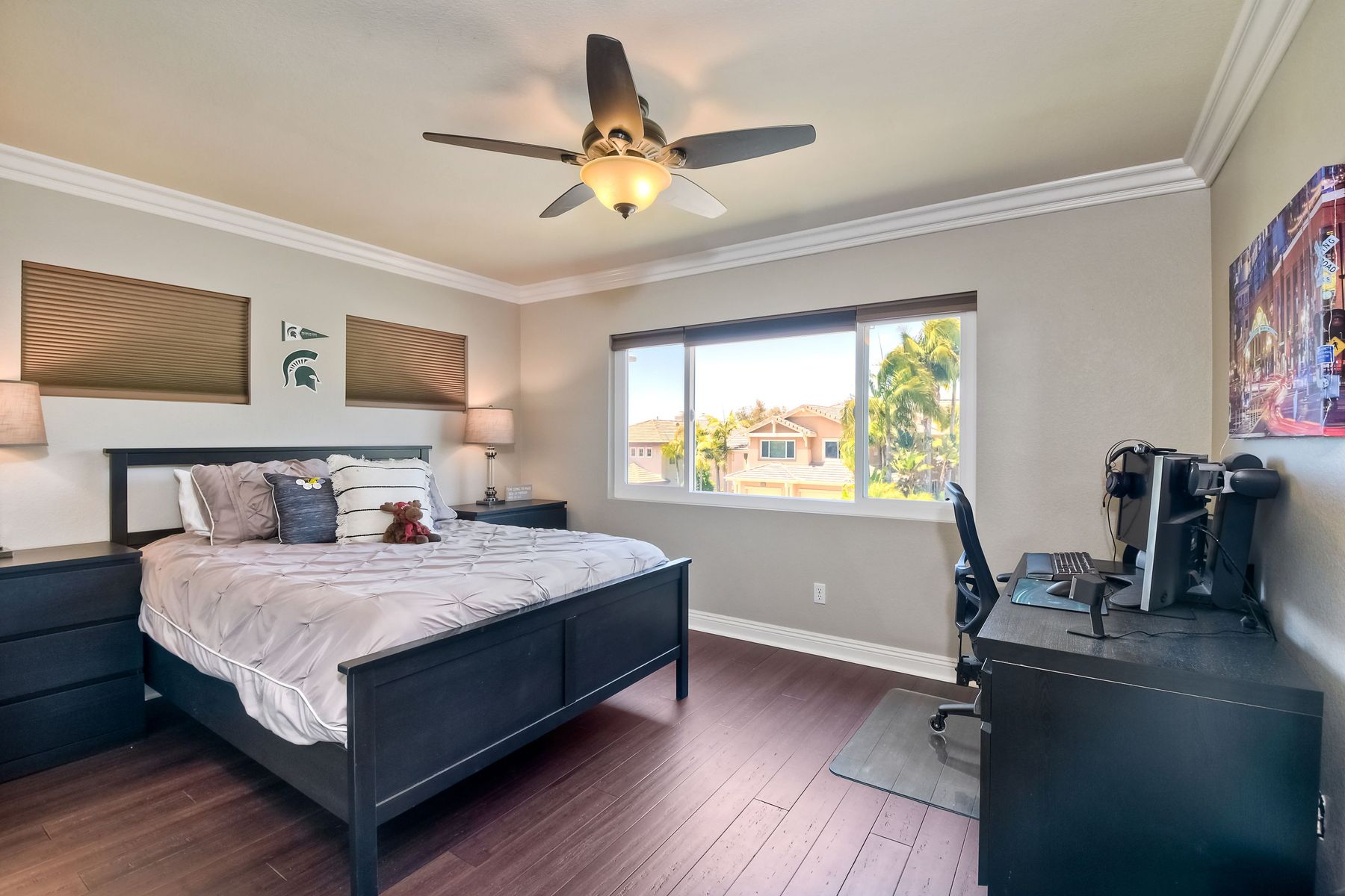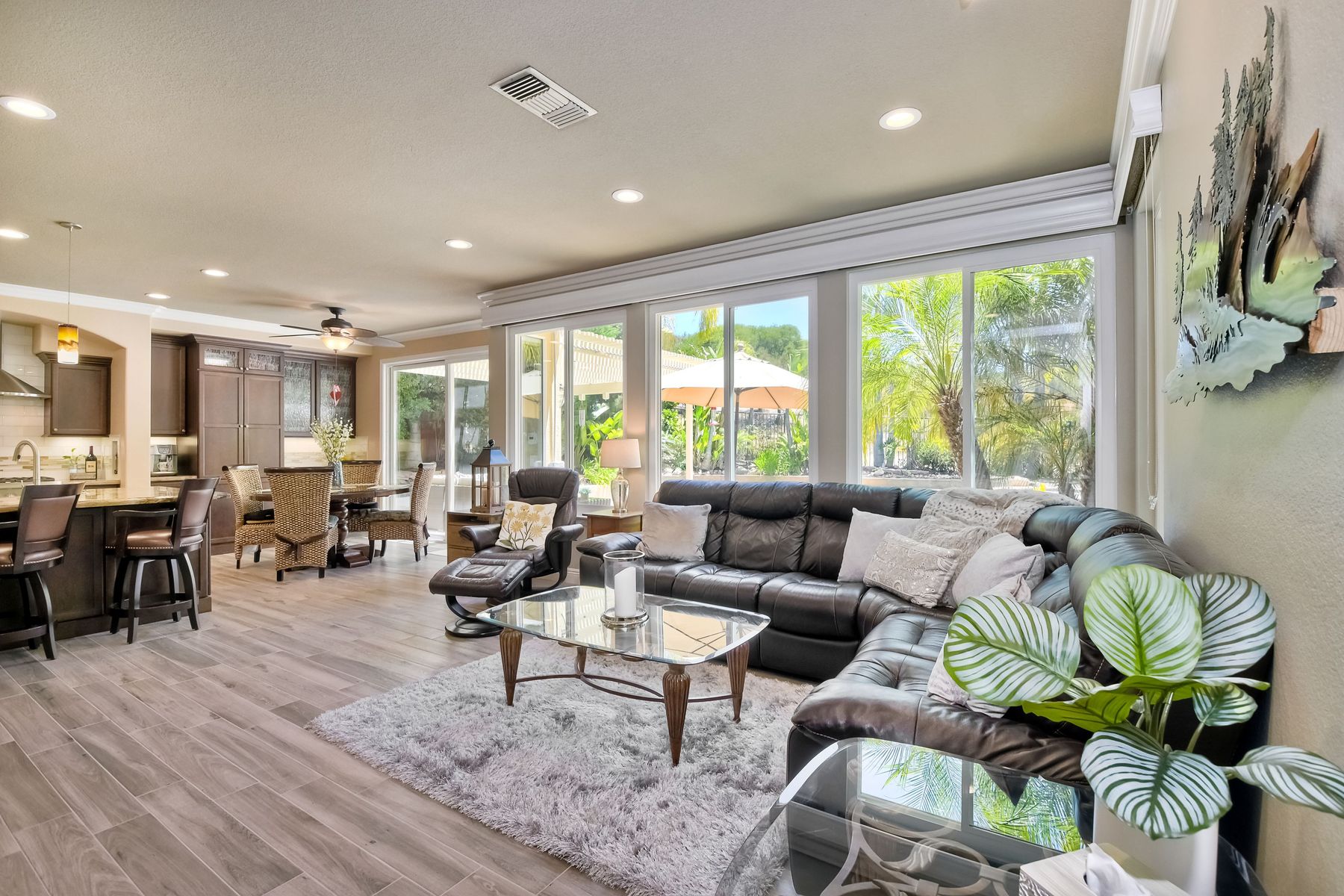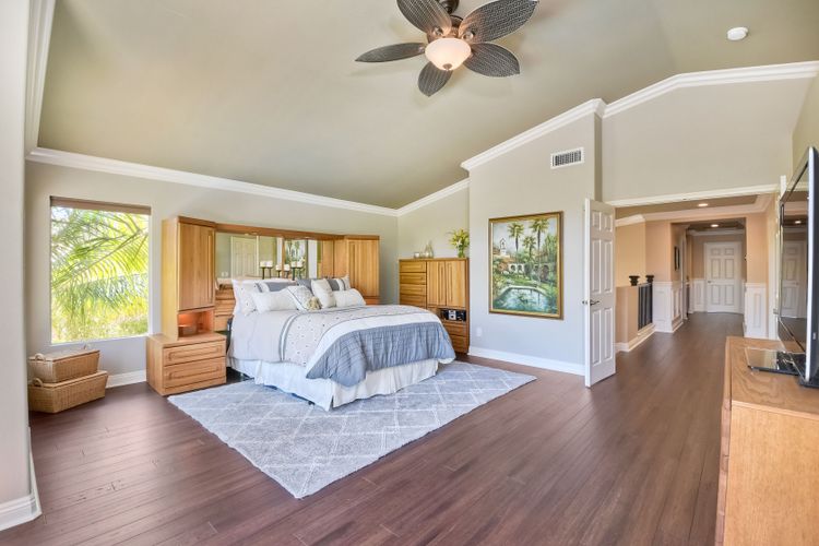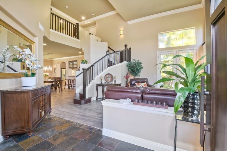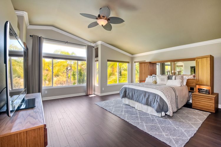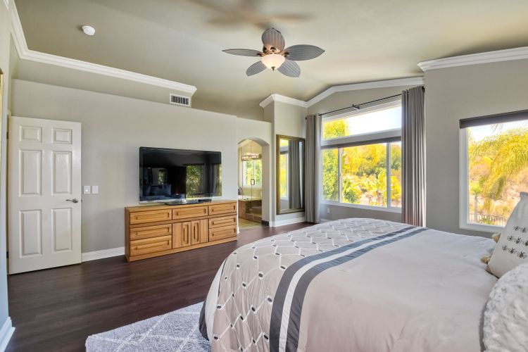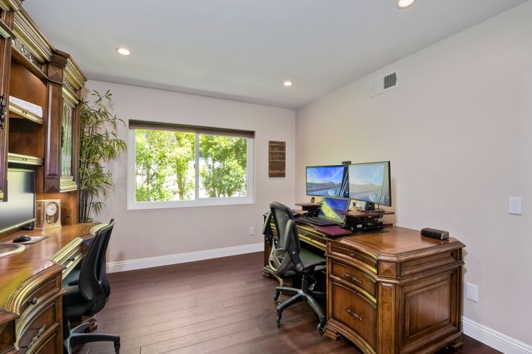 Outstanding location ... Wonderful Floor Plan ... Upgraded Throughout ... Smart home, meticulously maintained.  Located in a cul-de-sac, just the right distance from Dingeman Elem, and backing to open space, this home features a resort style back yard, a stunningly remodeled custom kitchen, an en-suite bedroom and full bathroom downstairs and quality upgrades everywhere.  Solar energy system is leased w/ favorable terms.  Close to parks, hiking trails, shopping, casual dining, and freeways.  Highly regarded Scripps Ranch Schools.  View photos w/ corresponding verbiage for details on all of the upgrades. If you have been waiting for THE home, then you want to come see this one. Let's start with the wonderful curb appeal w/ custom pavers at the driveway, custom garage doors and gorgeous landscaping w/ custom lighting, out front.  The custom wood door provides just a taste of what is to come.  Once inside, you will find custom slate flooring at the entryway which leads you to the porcelain plank tile flooring throughout downstairs.  Upgraded baseboards, crown molding, custom Lutron Smart lighting, leaded glass windows, custom paint, updated staircase, new dual pane windows, and custom window coverings, can all be appreciated immediately.  Yes .... CUSTOM is a term used often to describe the features found in this home.  The kitchen has been fully remodeled and customized to include a incredible slab granite counters, a huge main island space, a farmer's sink, custom cabinetry and stainless steel appliances.  The family room, complete w/custom floor to ceiling tile around the fireplace, custom lighting, and automated South Shade window coverings adjoins the breakfast nook and kitchen for GREAT MAIN LIVING SPACE.  Other features downstairs include an en-suite bedroom and upgraded bathroom, and a a customized laundry room.  The upgraded Nest thermostat can be controlled by an app allowing you to remotely control the temperature of the home.  Upstairs you will find gorgeous hardwood floors, custom paint, upgrades baseboards, crown molding, and custom lighting.  The large master bedroom features a walk-in closet, and remodeled master bathroom.  You will find 3 additional bedrooms PLUS an office upstairs.  The private back yard features a relaxing pool/spa and fire pit w/ multiple seating areas ... perfect for entertaining.  The main components of the pool equipment have all been recently updated.  The owner has installed multiple systems whereas you can use apps to remotely turn on lights, control the home temperature, raise or lower window coverings, turn on the spa, or open or close the garage door.  There are no neighbors directly behind you, and some open space (easement) to the west side of the home.  You will find easy access to walking trails at the end of the cul-de-sac, and you are withing walking distance to Dingeman Elementary School, Scripps Marketplace, and Scripps Ranch Community Center.  The owner has an SRSRC membership which may be transferred to the new owner.   Don't miss this one!