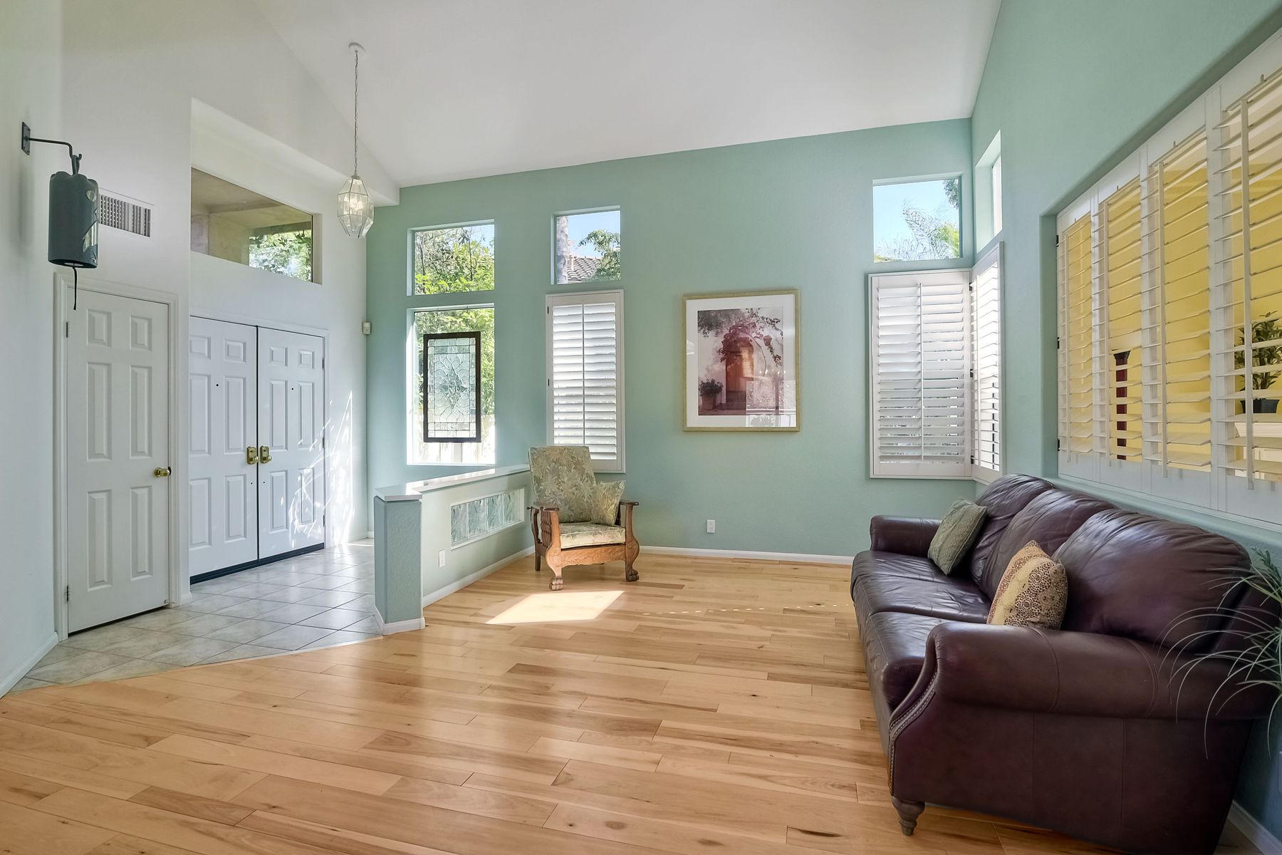 This gorgeous home has it all, from the cul-de-sac location to the dramatic sunlit vaulted ceiling. Privacy abounds with open space in back and on the side. Offering a sizable yard for entertaining. Rich easy care wood like flooring throughout the first floor. The updated kitchen cabinets boast of lustrous wood and gorgeous view to the back. upstairs the loft offers tons of potential, spacious bedrooms. The master suite has soaring ceilings, plantation shutters, beams with sunlight and spacious walk in closet.