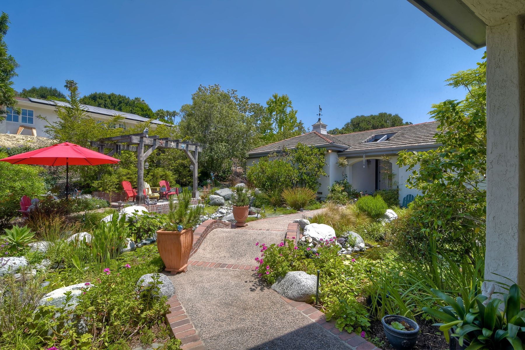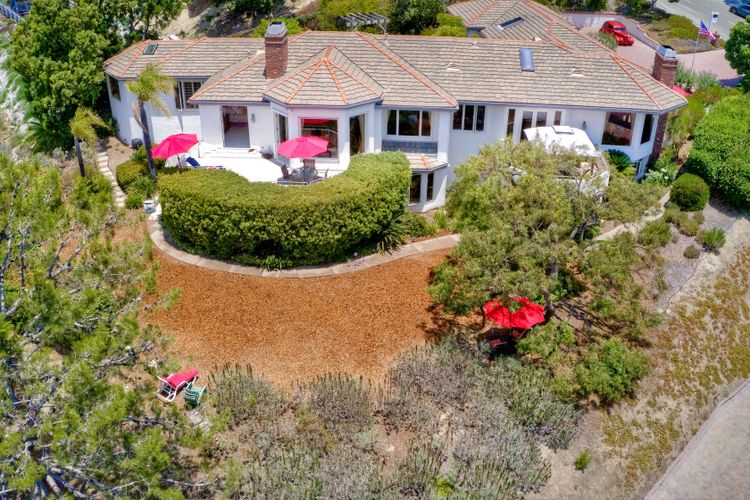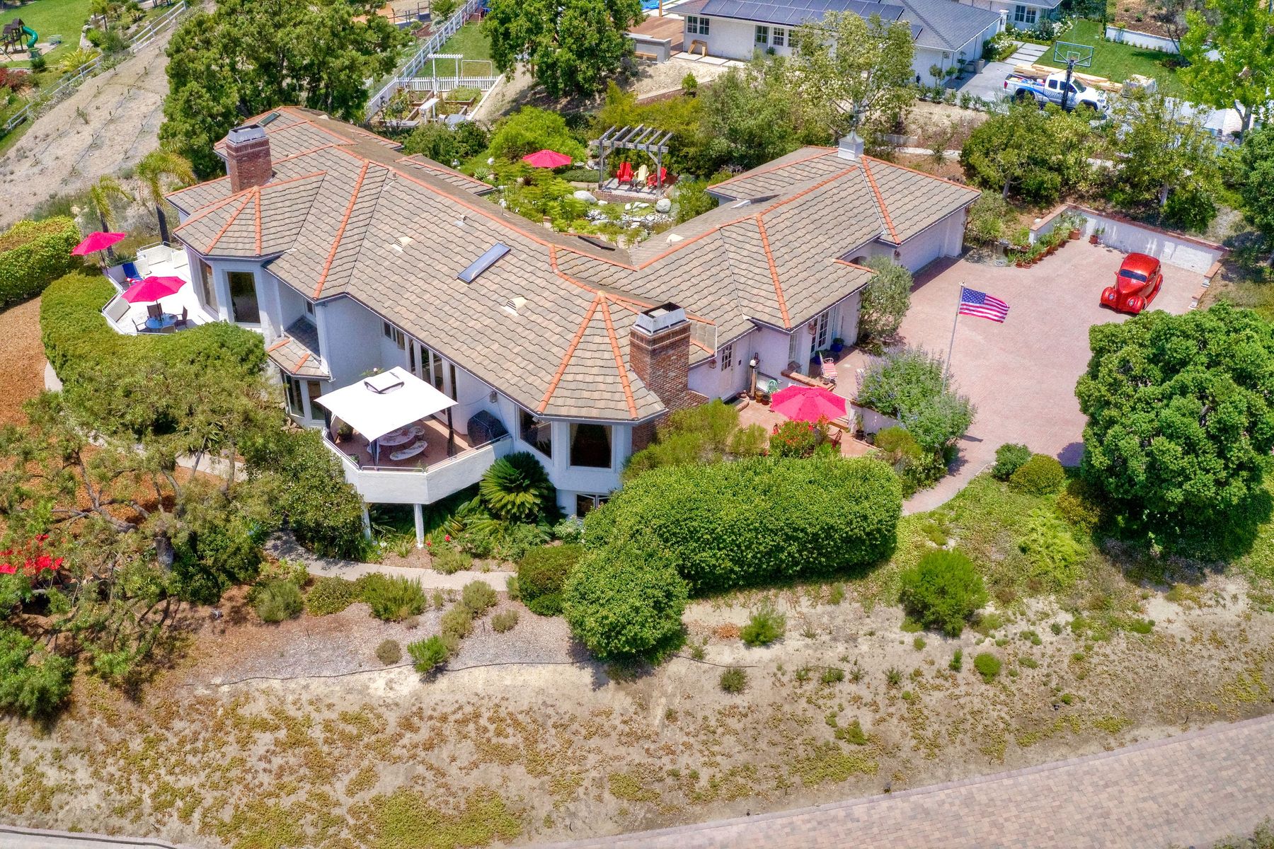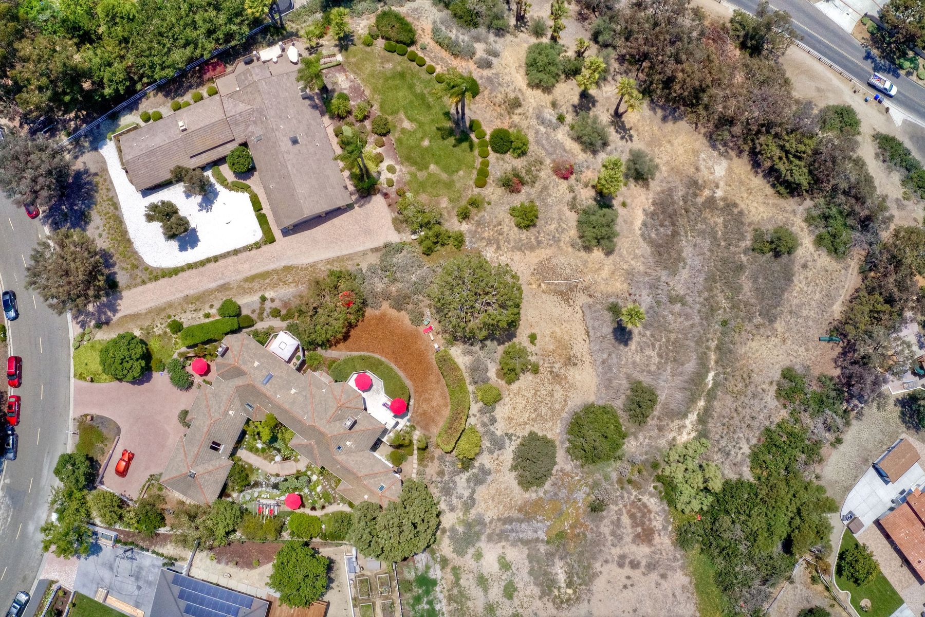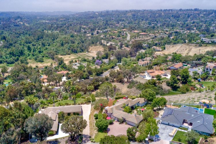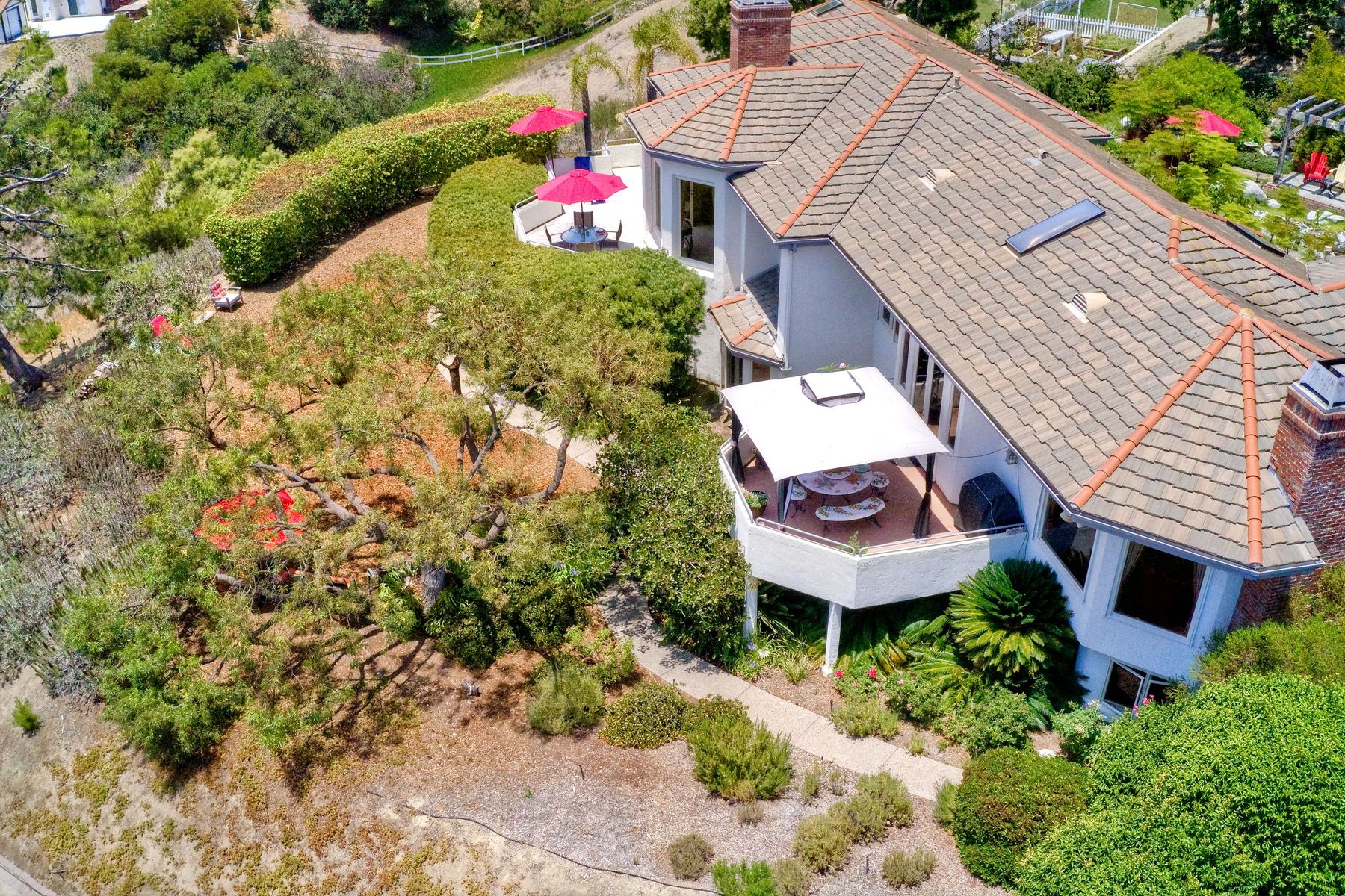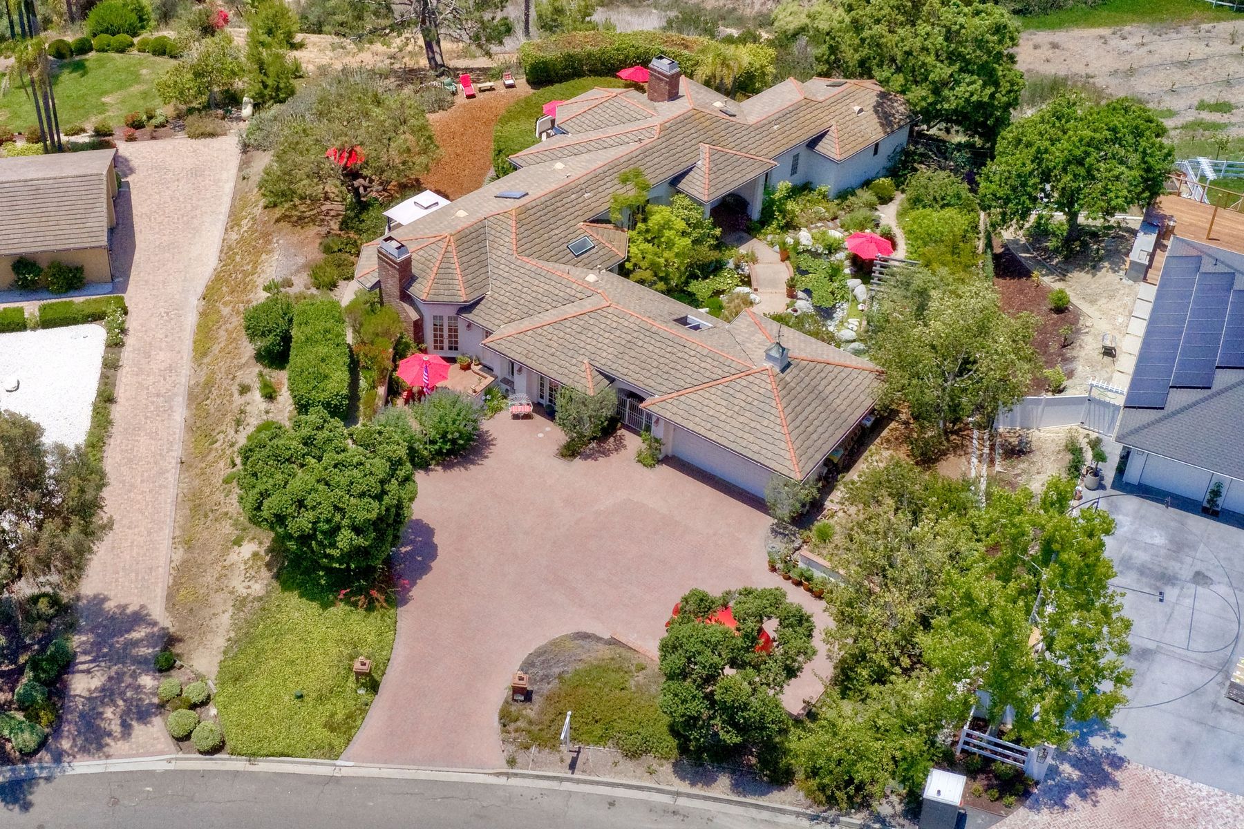 Cast your eyes on this beautiful home designed by Don Edson located in the highly coveted enclave of Rancho Encinitas, Olivenhain. The home features generous ceilings on both levels, light filled rooms, window dressings and auto shades plus tastefully placed crown molding and a combo of hardwoods and tile floors. You will not mind washing a dish or two in this open concept, updated kitchen as the massive sink window looks out upon the tranquil courtyard garden. The kitchen is open to a spacious family room with fireplace and its own patio. The home lives like a single story with each room flowing seamlessly into the next, with all the main rooms on entry level with a plethora of private patios throughout. The main level master suite features a ceiling fan, dual sinks and walk-in closets, a luxurious, updated spa like bathroom with an elegant free-standing claw footed tub and separate walk-in shower to unwind in. The downstairs has a second master with walk-in closet, full bathroom, private patio and an enormous bonus room with wet bar. The entire lower level can be completely self-contained for guests, relatives or income. The 3rd single car garage attached to main house has been converted to a beautiful home office complete with built ins. It features an entrance off the driveway with tons of off-street parking for uber easy access for you and clients without disturbance to main house. If it better suits your needs, you could change it to a home gym or back to a 3rd garage. The generously sized, 2 car garage next to it, is lined with convenient, built in storage cabinets. This astonishing home has jaw-dropping, panoramic nature and sunset views and 1.5 acres of mature landscaping with enough flat yard for a pool and property is zoned for horses. The walkway from front, to the main home entry is an experience that will be forever etched in your memory. As you meander your way from front gate through the courtyard, you'll be greeted and transformed as your cares are whisked away by the sight of your very own courtyard garden park, waterfalls and koi pond including a walk over bridge that leads you to your front door. This private slice of Eden can be viewed from many windows facing that side of the home or step outside and make your way to the elevated patio with pergola for Zen time, any time. This historic part of Olivenhain offers that country feel with spacious yet private lots. Short walking distance to numerous running, biking, hiking and horse trails and close proximity to several top equine facilities yet minutes to shopping and North County beaches. Schools, HOA and Mello Roos, you ask? Olivenhain Pioneer Elementary, Diegueno JHS and La Costa Canyon HS and NO HOA, Homeowners fees or MELLO ROOS! It doesn't get much better than this.