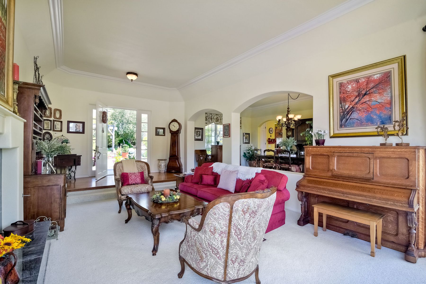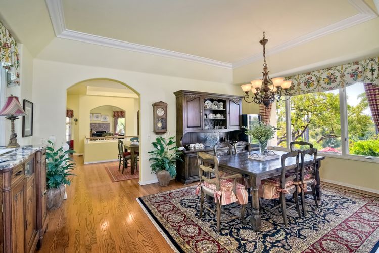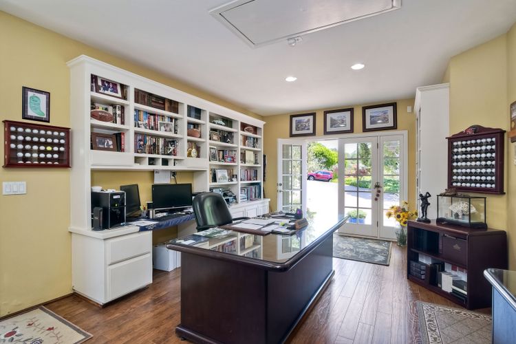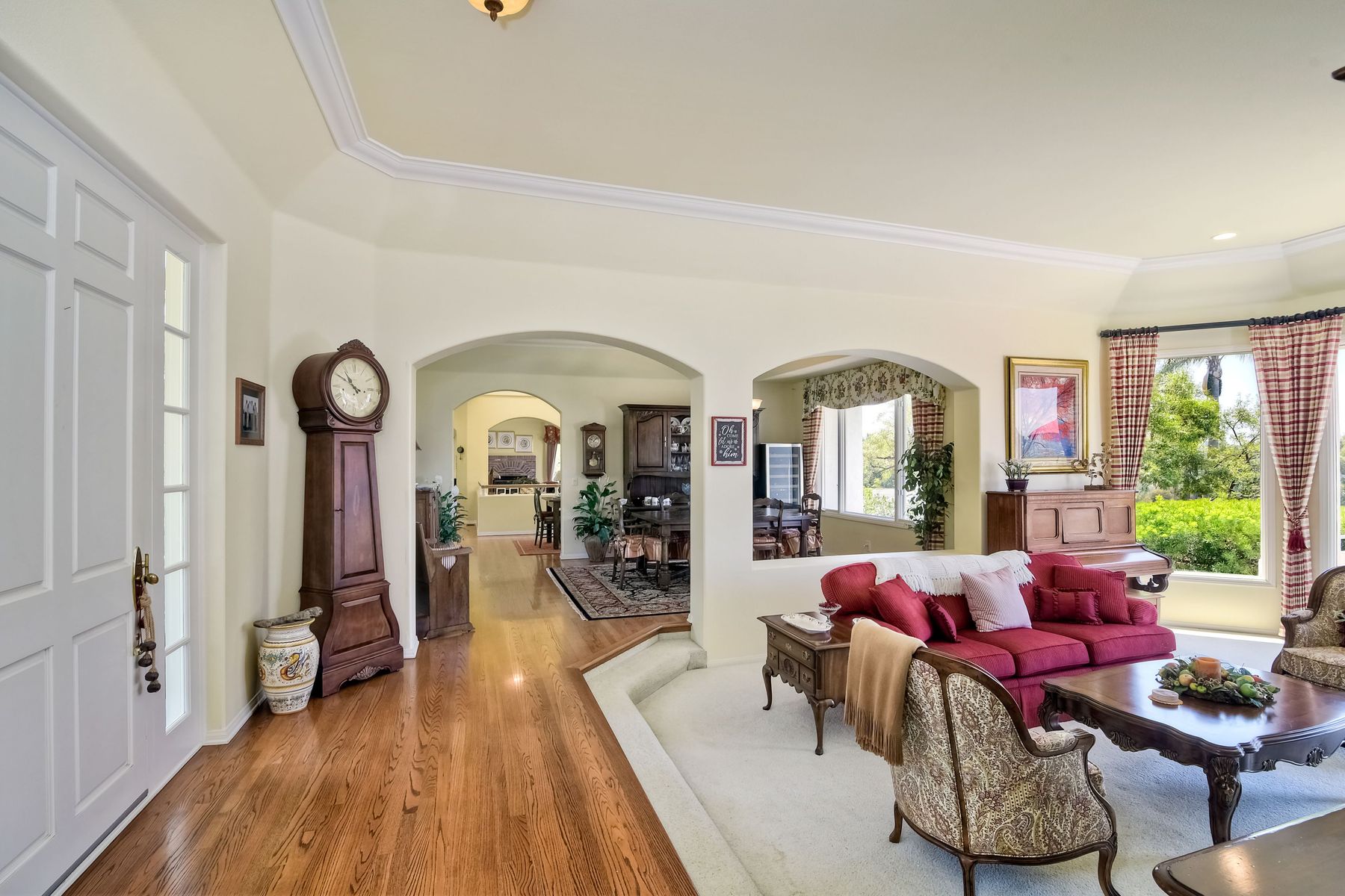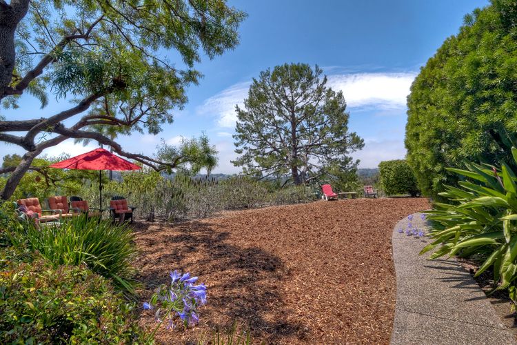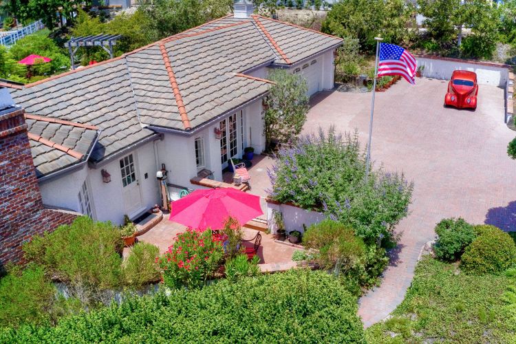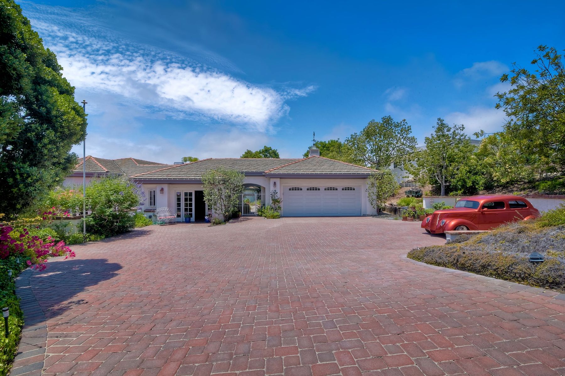 Cast your eyes on this beautiful home designed by Don Edson located in the highly coveted enclave of Rancho Encinitas, Olivenhain. The home features generous ceilings on both levels, light filled rooms, window dressings and auto shades plus tastefully placed crown molding and a combo of hardwoods and tile floors. You will not mind washing a dish or two in this open concept, updated kitchen as the massive sink window looks out upon the tranquil courtyard garden. The kitchen is open to a spacious family room with fireplace and its own patio. The home lives like a single story with each room flowing seamlessly into the next, with all the main rooms on entry level with a plethora of private patios throughout. The main level master suite features a ceiling fan, dual sinks and walk-in closets, a luxurious, updated spa like bathroom with an elegant free-standing claw footed tub and separate walk-in shower to unwind in. The downstairs has a second master with walk-in closet, full bathroom, private patio and an enormous bonus room with wet bar. The entire lower level can be completely self-contained for guests, relatives or income. The 3rd single car garage attached to main house has been converted to a beautiful home office complete with built ins. It features an entrance off the driveway with tons of off-street parking for uber easy access for you and clients without disturbance to main house. If it better suits your needs, you could change it to a home gym or back to a 3rd garage. The generously sized, 2 car garage next to it, is lined with convenient, built in storage cabinets. This astonishing home has jaw-dropping, panoramic nature and sunset views and 1.5 acres of mature landscaping with enough flat yard for a pool and property is zoned for horses. The walkway from front, to the main home entry is an experience that will be forever etched in your memory. As you meander your way from front gate through the courtyard, you'll be greeted and transformed as your cares are whisked away by the sight of your very own courtyard garden park, waterfalls and koi pond including a walk over bridge that leads you to your front door. This private slice of Eden can be viewed from many windows facing that side of the home or step outside and make your way to the elevated patio with pergola for Zen time, any time. This historic part of Olivenhain offers that country feel with spacious yet private lots. Short walking distance to numerous running, biking, hiking and horse trails and close proximity to several top equine facilities yet minutes to shopping and North County beaches. Schools, HOA and Mello Roos, you ask? Olivenhain Pioneer Elementary, Diegueno JHS and La Costa Canyon HS and NO HOA, Homeowners fees or MELLO ROOS! It doesn't get much better than this.