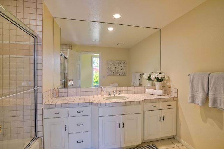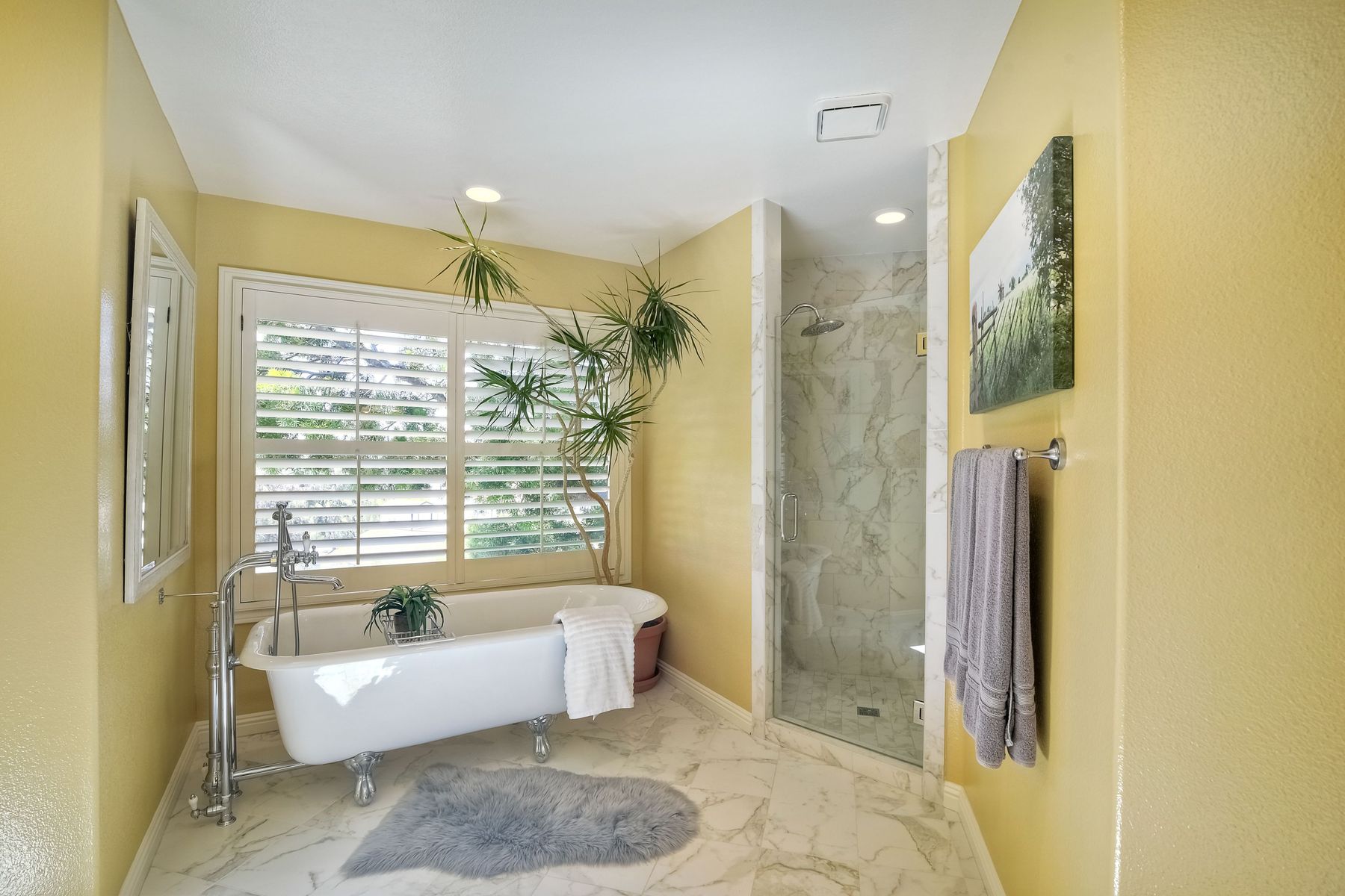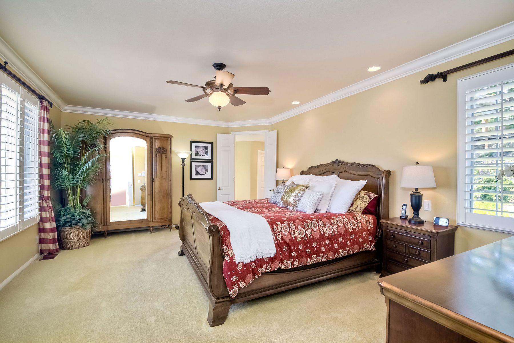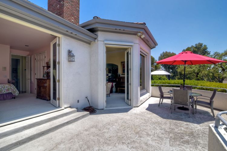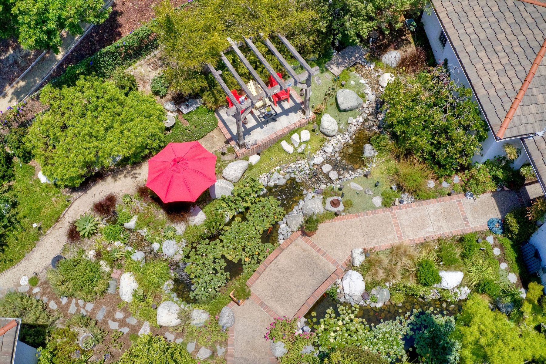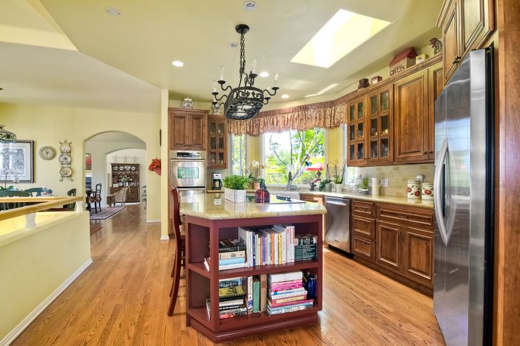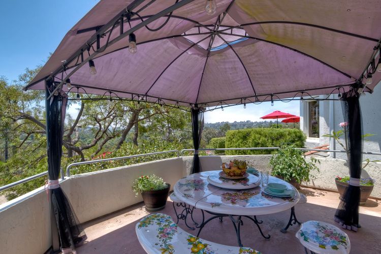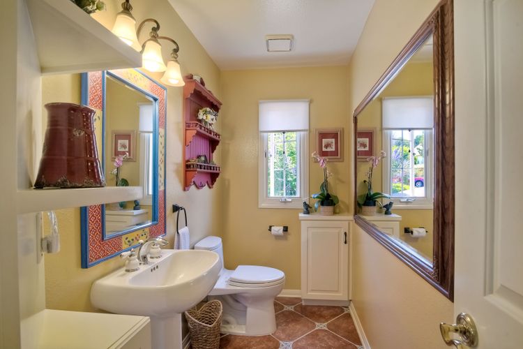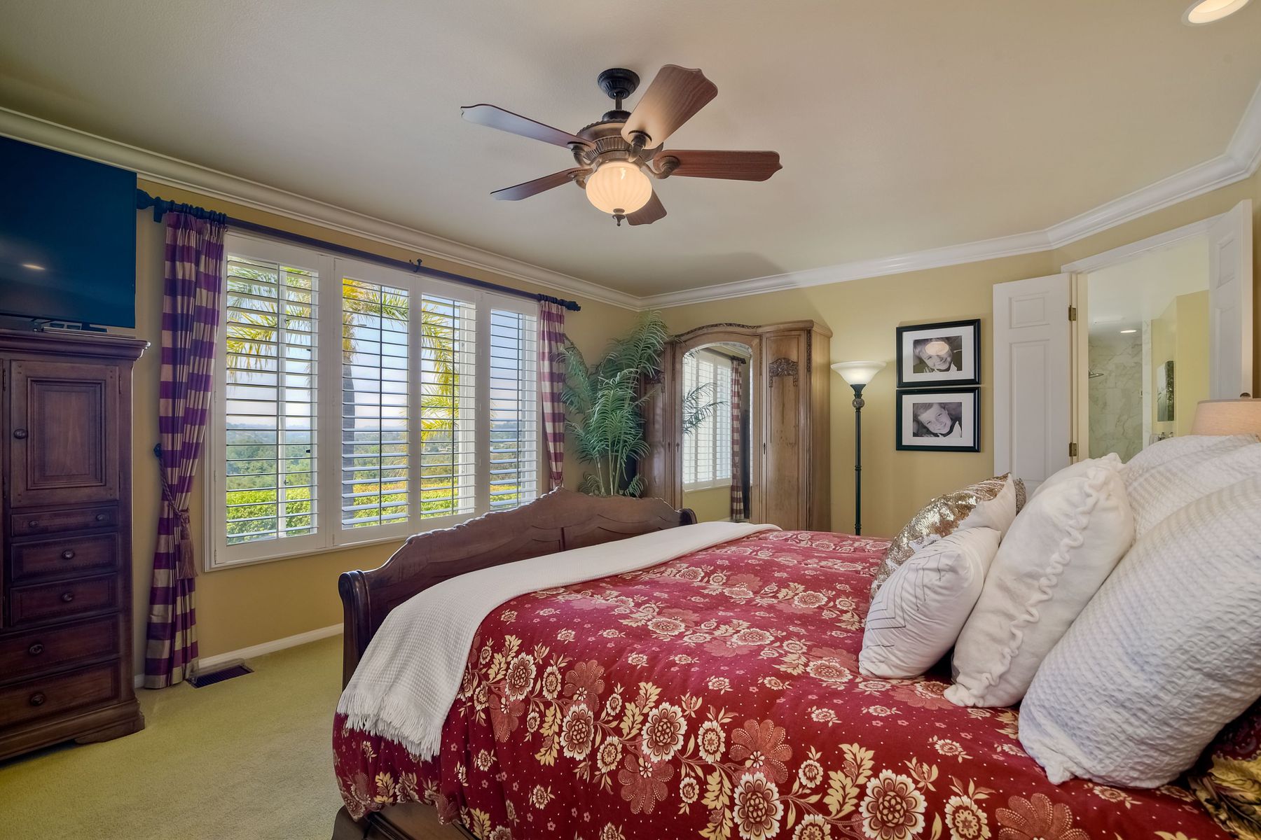 Cast your eyes on this beautiful home designed by Don Edson located in the highly coveted enclave of Rancho Encinitas, Olivenhain. The home features generous ceilings on both levels, light filled rooms, window dressings and auto shades plus tastefully placed crown molding and a combo of hardwoods and tile floors. You will not mind washing a dish or two in this open concept, updated kitchen as the massive sink window looks out upon the tranquil courtyard garden. The kitchen is open to a spacious family room with fireplace and its own patio. The home lives like a single story with each room flowing seamlessly into the next, with all the main rooms on entry level with a plethora of private patios throughout. The main level master suite features a ceiling fan, dual sinks and walk-in closets, a luxurious, updated spa like bathroom with an elegant free-standing claw footed tub and separate walk-in shower to unwind in. The downstairs has a second master with walk-in closet, full bathroom, private patio and an enormous bonus room with wet bar. The entire lower level can be completely self-contained for guests, relatives or income. The 3rd single car garage attached to main house has been converted to a beautiful home office complete with built ins. It features an entrance off the driveway with tons of off-street parking for uber easy access for you and clients without disturbance to main house. If it better suits your needs, you could change it to a home gym or back to a 3rd garage. The generously sized, 2 car garage next to it, is lined with convenient, built in storage cabinets. This astonishing home has jaw-dropping, panoramic nature and sunset views and 1.5 acres of mature landscaping with enough flat yard for a pool and property is zoned for horses. The walkway from front, to the main home entry is an experience that will be forever etched in your memory. As you meander your way from front gate through the courtyard, you'll be greeted and transformed as your cares are whisked away by the sight of your very own courtyard garden park, waterfalls and koi pond including a walk over bridge that leads you to your front door. This private slice of Eden can be viewed from many windows facing that side of the home or step outside and make your way to the elevated patio with pergola for Zen time, any time. This historic part of Olivenhain offers that country feel with spacious yet private lots. Short walking distance to numerous running, biking, hiking and horse trails and close proximity to several top equine facilities yet minutes to shopping and North County beaches. Schools, HOA and Mello Roos, you ask? Olivenhain Pioneer Elementary, Diegueno JHS and La Costa Canyon HS and NO HOA, Homeowners fees or MELLO ROOS! It doesn't get much better than this.