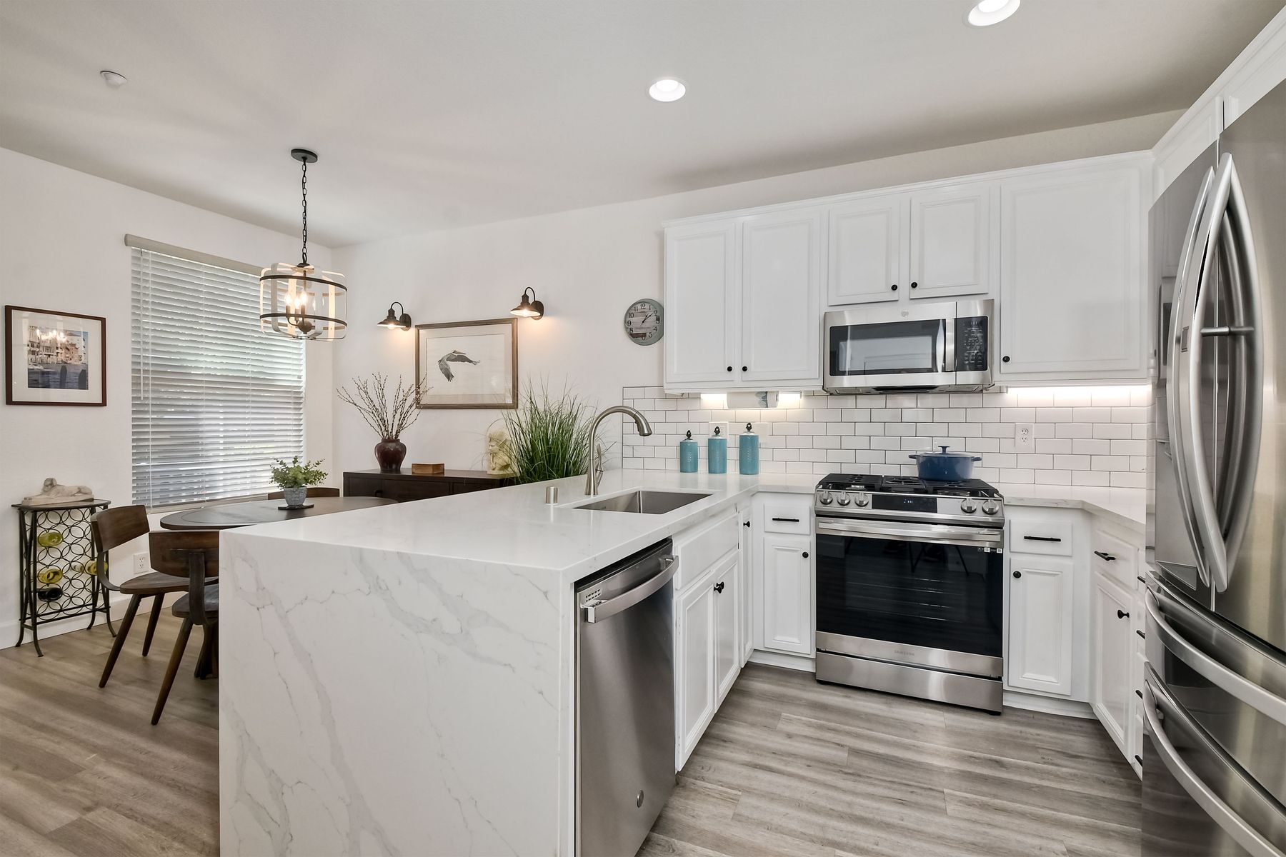 Welcome to San Elijo Hills in Beautiful San Diego California! This townhome is located in the highly desired community of Morgan's Corner and has been remodeled and is move in ready! This 3 bed, 4 bath home has a third floor bedroom with full bathroom! Owner just purchased a new oven, New AC/HVAC system with Nest thermometer, and New Washer & Dryer. All other appliances are less than 2 years old. Kitchen is gorgeous with a Calcutta Classico Quartz Waterfall counter top, tile backsplash, custom lighting, huge stainless steel sink and Luxury vinyl plank flooring. Seller put in custom shelving for additional storage and an additional shelf above the indoor washer and dryer. All Bathrooms have been renovated, and the primary bathroom has a large step in shower. Custom blinds throughout home. One of the nicest townhomes in Morgan's Corner-Owner is meticulous! Great location.... minutes from the village, but quiet location set back with no road noise. 2 car attached garage, with plenty of room for additional storage. Community pool, guest parking, just steps away from 18 miles of hiking/biking and walking trails, restaurants, park, coffee shop and grocery stores. This townhome is located in one of the best and most sought after school districts in San Diego. Seller will entertain offers between $779,000.00-$829,000.00