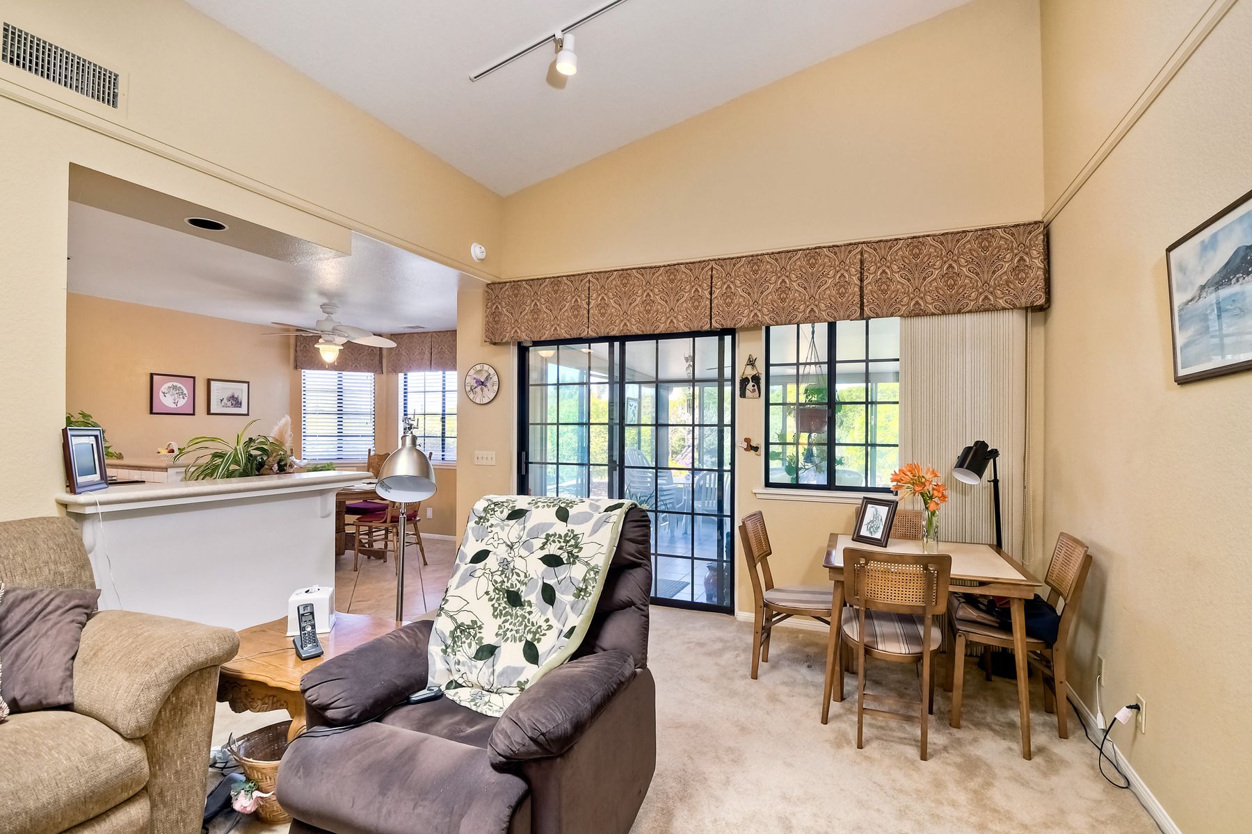 Lovely turn key single story 2 bedroom, 2 bath home in East Ridge, a 55+ gated community. This lovely home features vaulted ceilings, brick fireplace, wood flooring, den/office, enclosed patio plus lovely garden patio, fruit trees, attached 2 car garage and lots of storage. All of this on a large fenced lot in the very desirable neighborhood of East Ridge. This home offers over 2200 square feet of quality living. The clubhouse, pool, tennis courts, walking trails and RV storage complete the package.