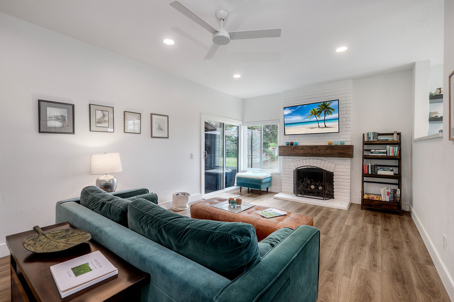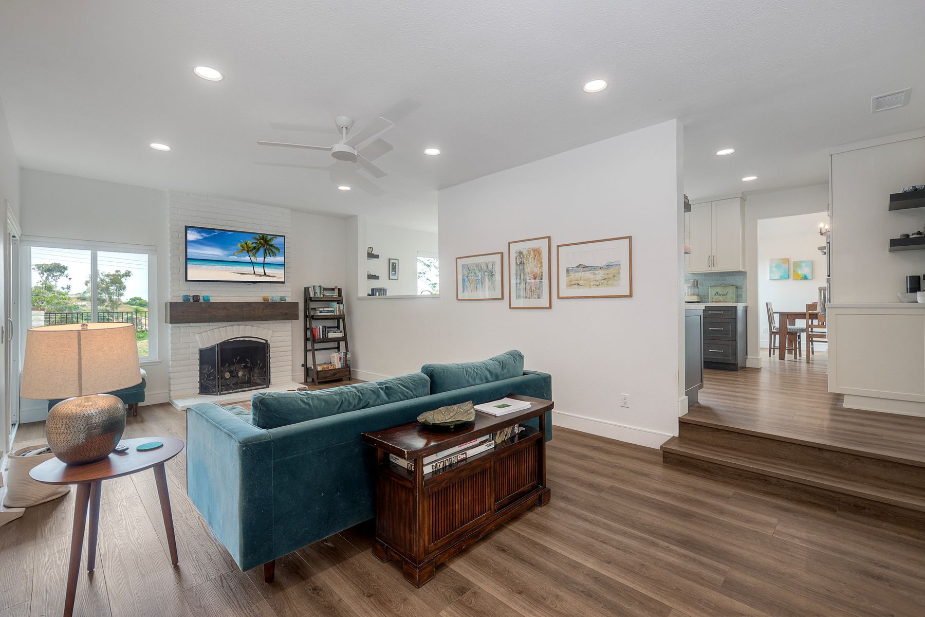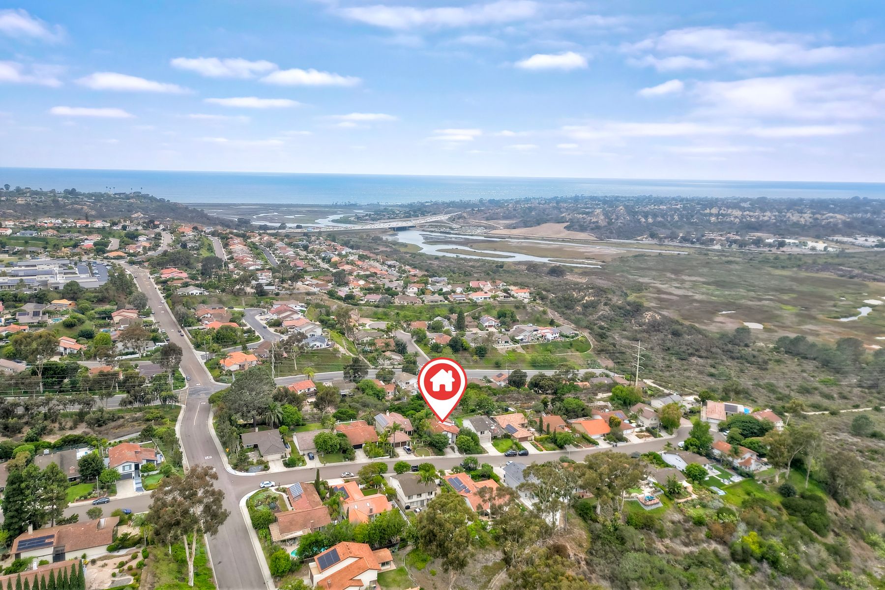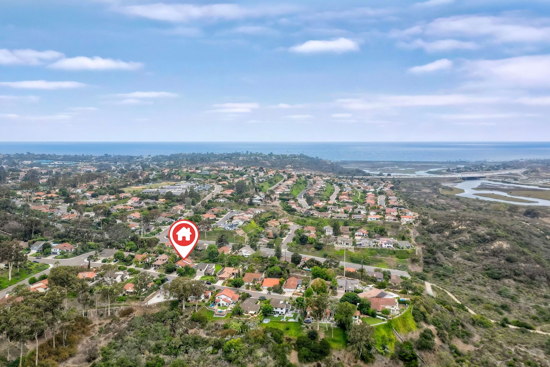 Embrace a coastal lifestyle in this vibrant yet relaxed and residential beach community! This beautiful home recently completed a full interior remodel. Fantastic floor plan consisting of three bedrooms upstairs including a spacious primary suite plus one bedroom or office and bathroom on the main level. Enjoy soaring vaulted ceilings, an extra wide staircase and wood flooring in this sunlit home. The main level consists of a living room, formal dining area and comfortable family room with a fireplace. Updated gourmet chef's kitchen, beverage fridge, induction stove cooktop, extra kitchen storage and a Zip hydro faucet for instant boiling, chilled & cold sparkling water. This light and bright home has energy efficient windows and sliding doors. Nature abounds in the sunny garden with eco-friendly landscaping, updated hardscape, a fenced backyard and a pet safe screen enclosed catio. West facing sunset views and ocean breezes delight! This home is located on a coveted "Santas" cul-de-sac street. Minutes to the Del Mar Racetrack, pristine beaches, dining, and shopping. Nearby San Dieguito Park, Lomas Santa Fe County Club, schools, walking/hiking trails, restaurants, Cedros Design District and Fletcher Cove. A rare opportunity to experience the Solana Beach lifestyle!!!