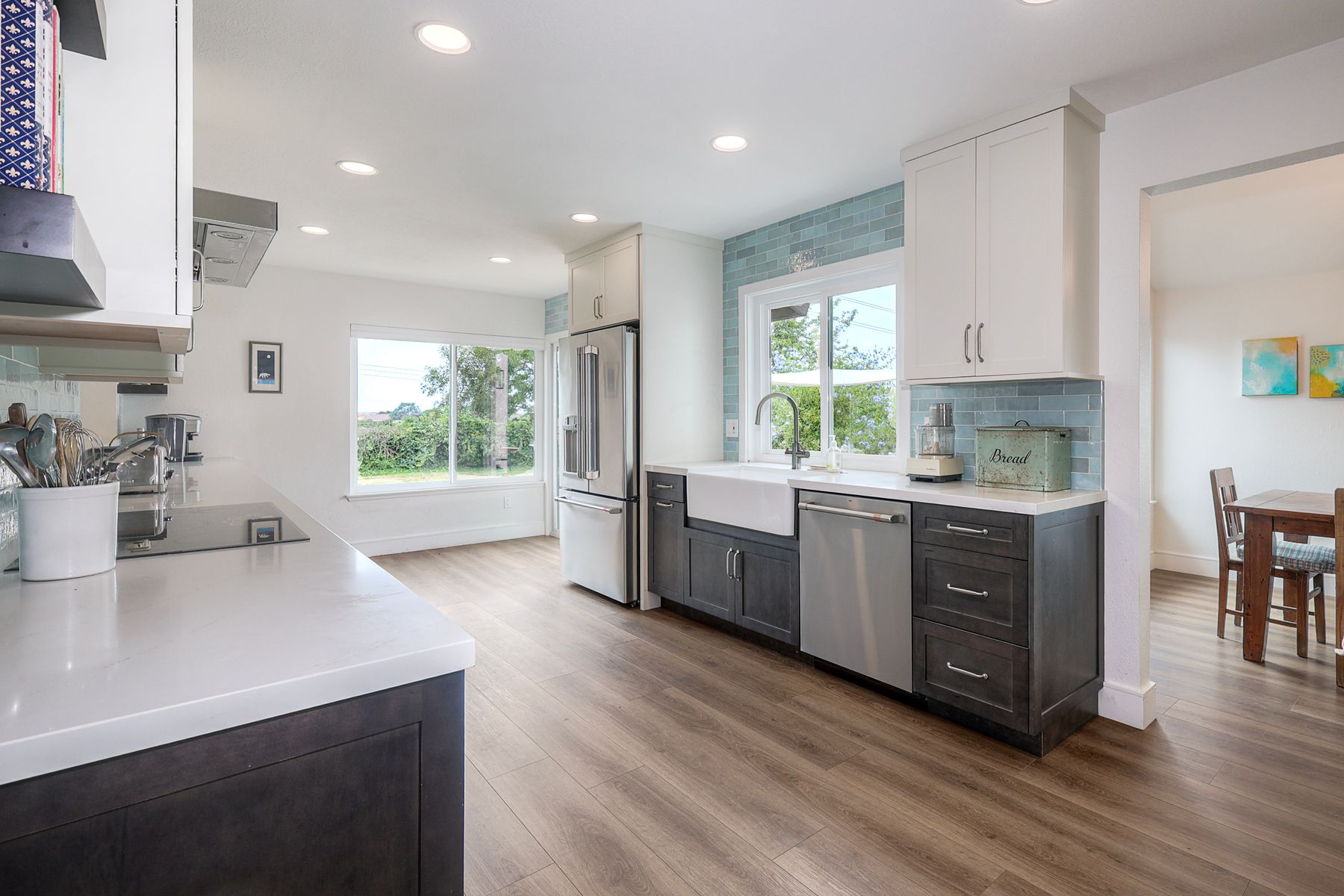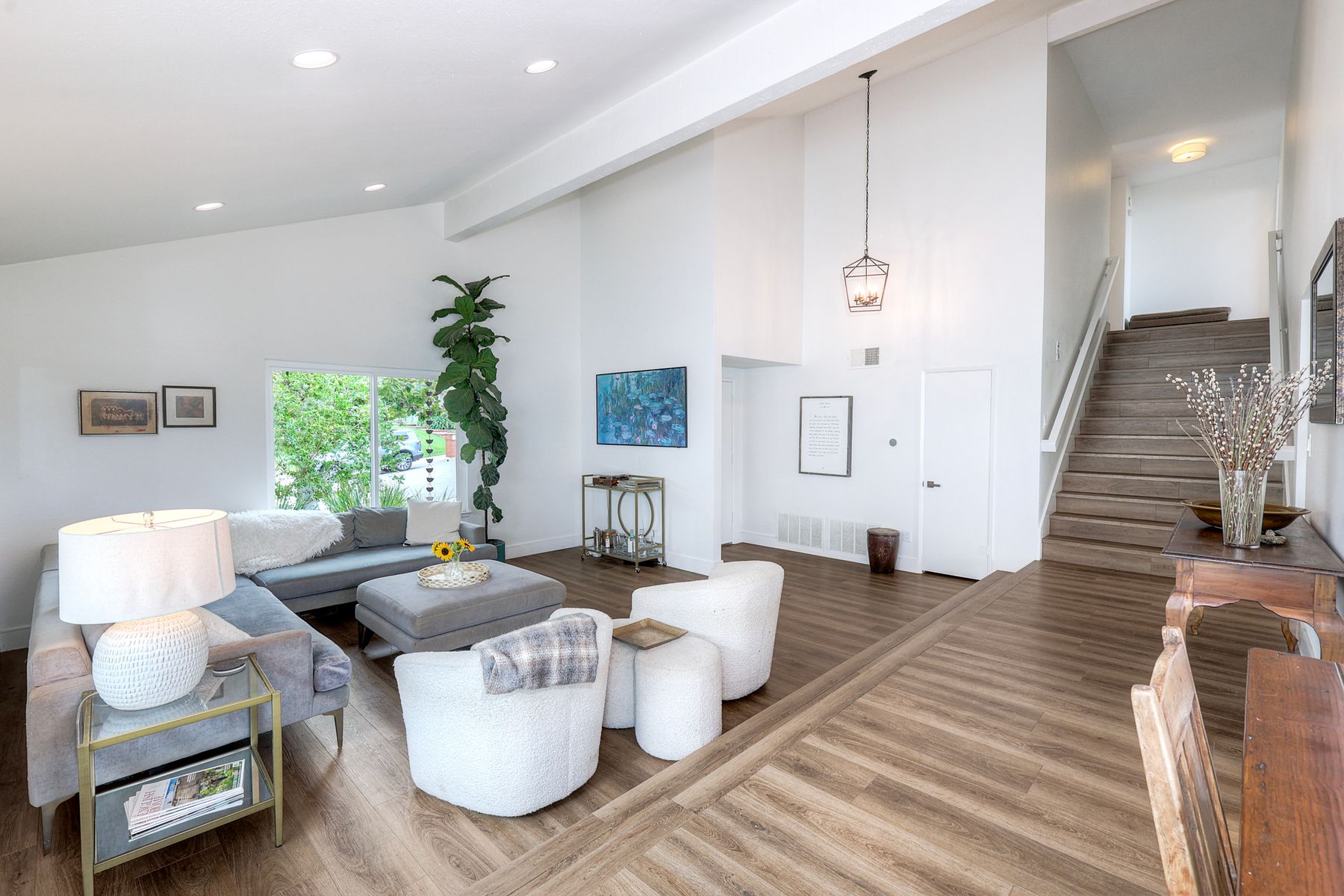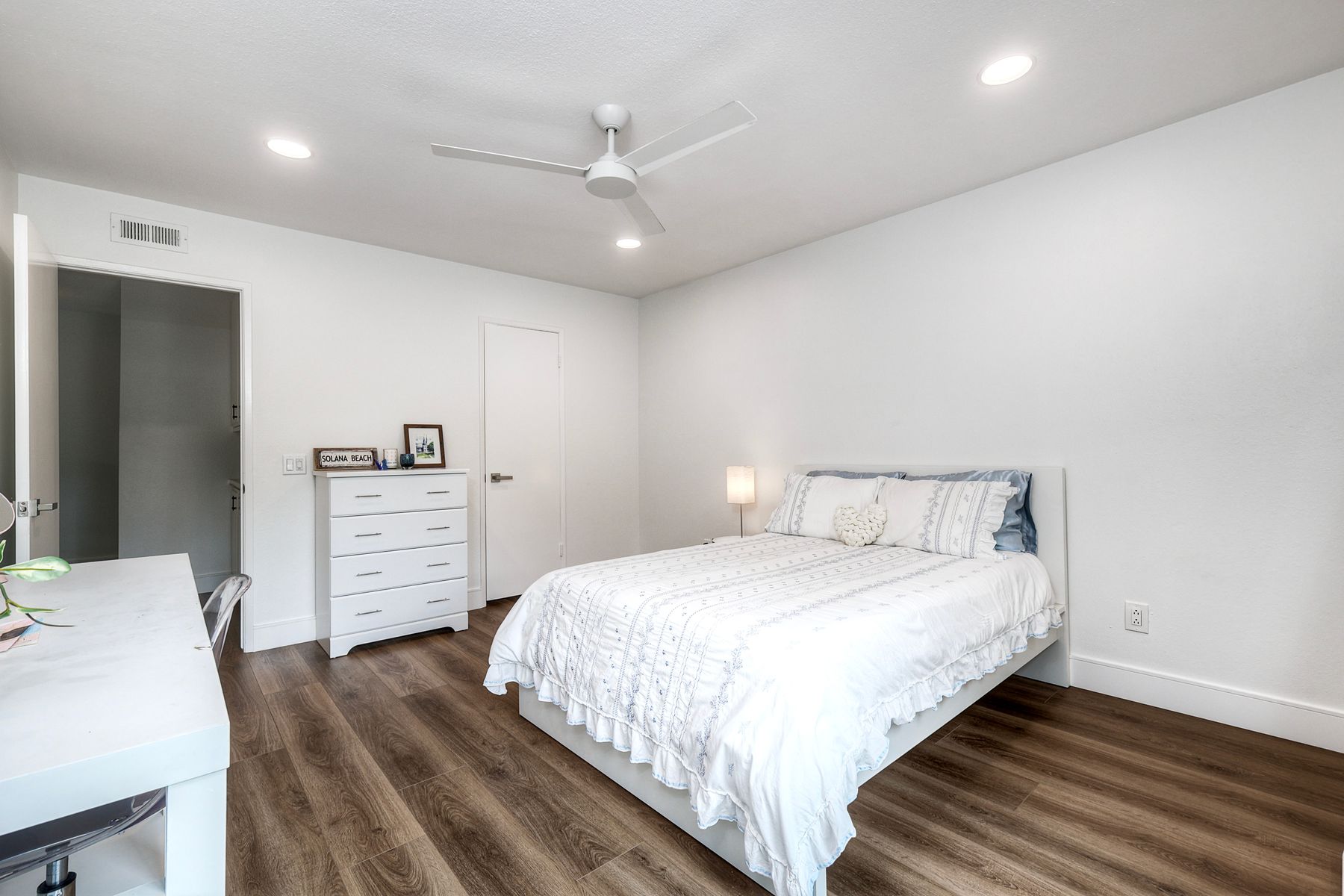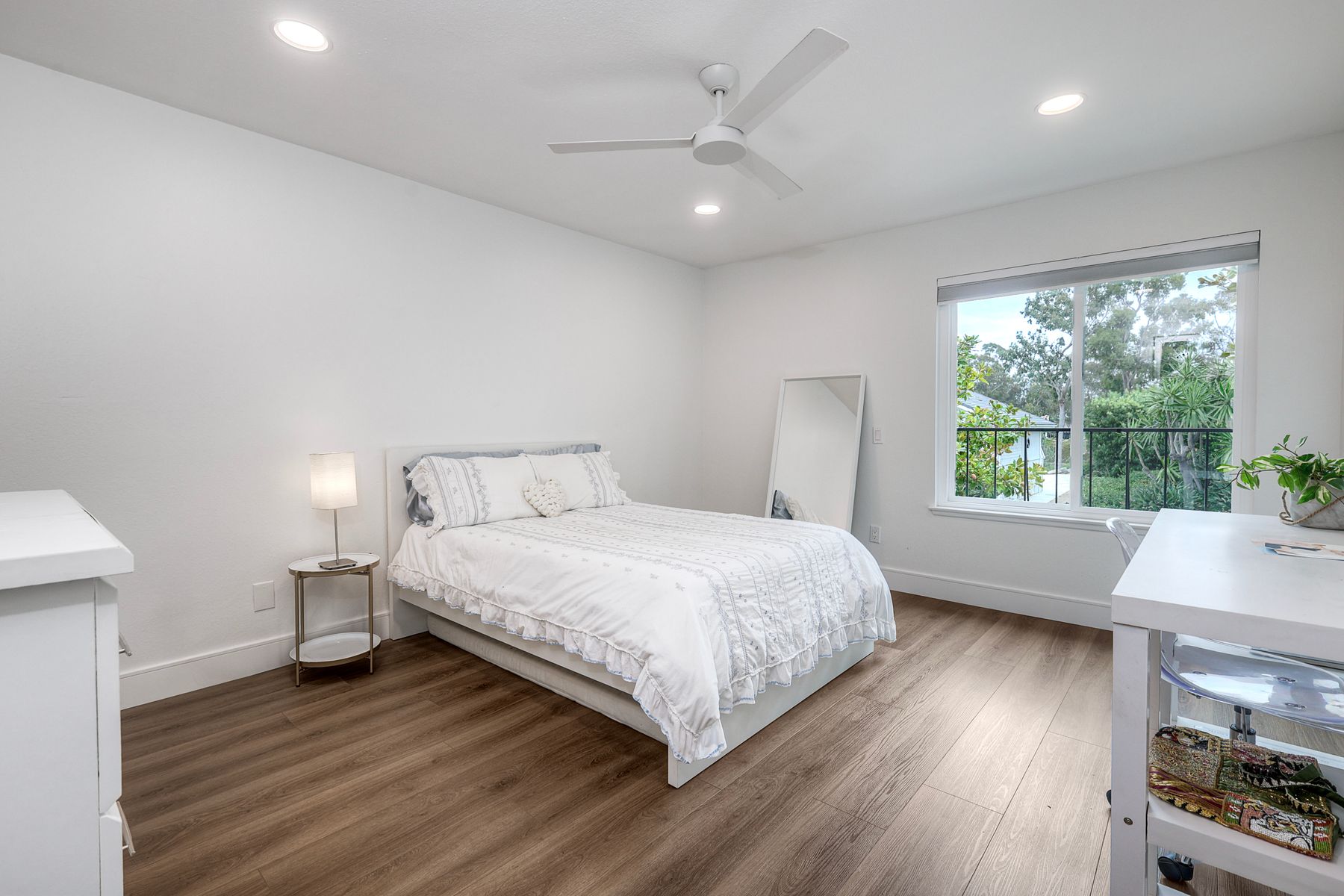 Embrace a coastal lifestyle in this vibrant yet relaxed and residential beach community! This beautiful home recently completed a full interior remodel. Fantastic floor plan consisting of three bedrooms upstairs including a spacious primary suite plus one bedroom or office and bathroom on the main level. Enjoy soaring vaulted ceilings, an extra wide staircase and wood flooring in this sunlit home. The main level consists of a living room, formal dining area and comfortable family room with a fireplace. Updated gourmet chef's kitchen, beverage fridge, induction stove cooktop, extra kitchen storage and a Zip hydro faucet for instant boiling, chilled & cold sparkling water. This light and bright home has energy efficient windows and sliding doors. Nature abounds in the sunny garden with eco-friendly landscaping, updated hardscape, a fenced backyard and a pet safe screen enclosed catio. West facing sunset views and ocean breezes delight! This home is located on a coveted "Santas" cul-de-sac street. Minutes to the Del Mar Racetrack, pristine beaches, dining, and shopping. Nearby San Dieguito Park, Lomas Santa Fe County Club, schools, walking/hiking trails, restaurants, Cedros Design District and Fletcher Cove. A rare opportunity to experience the Solana Beach lifestyle!!!