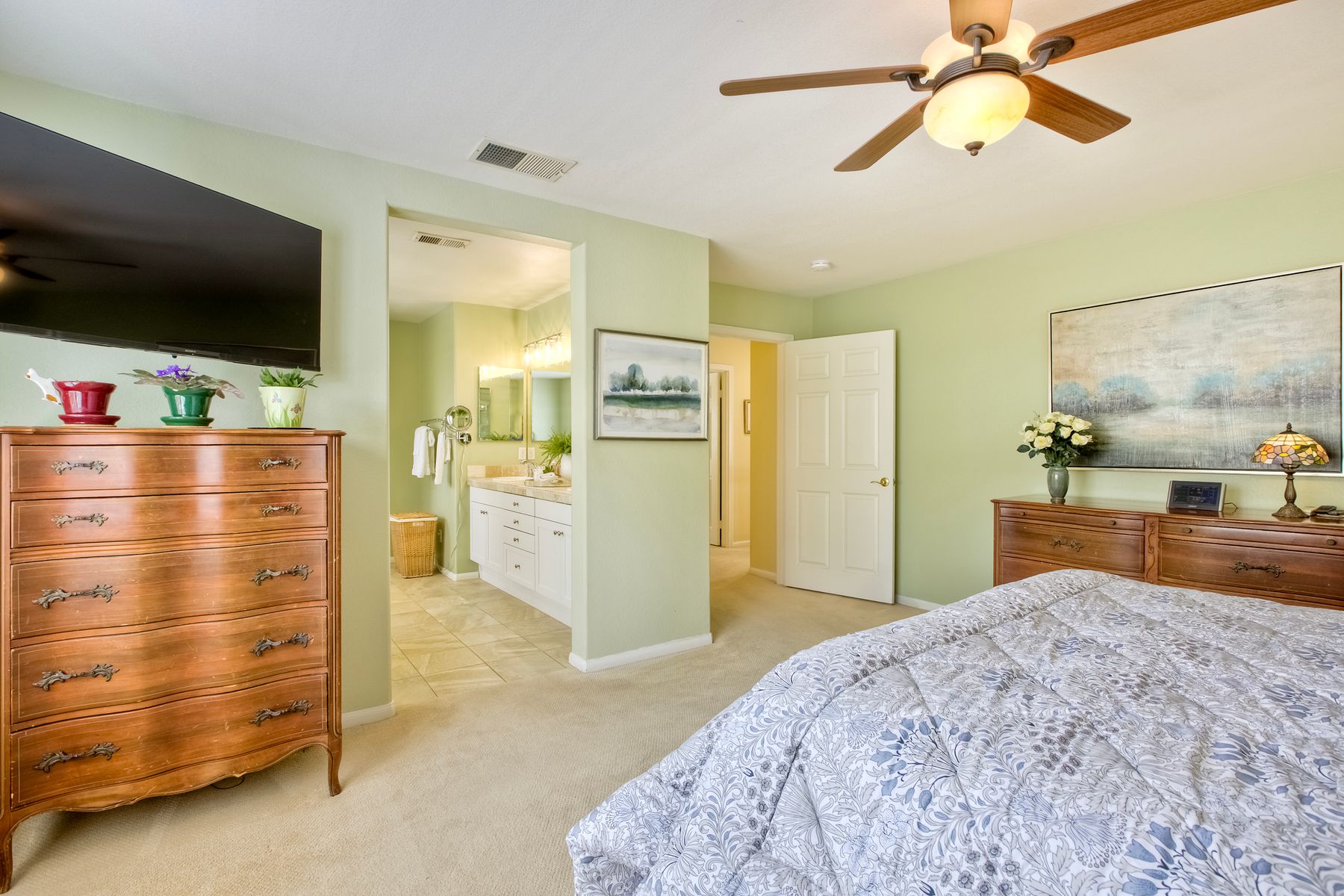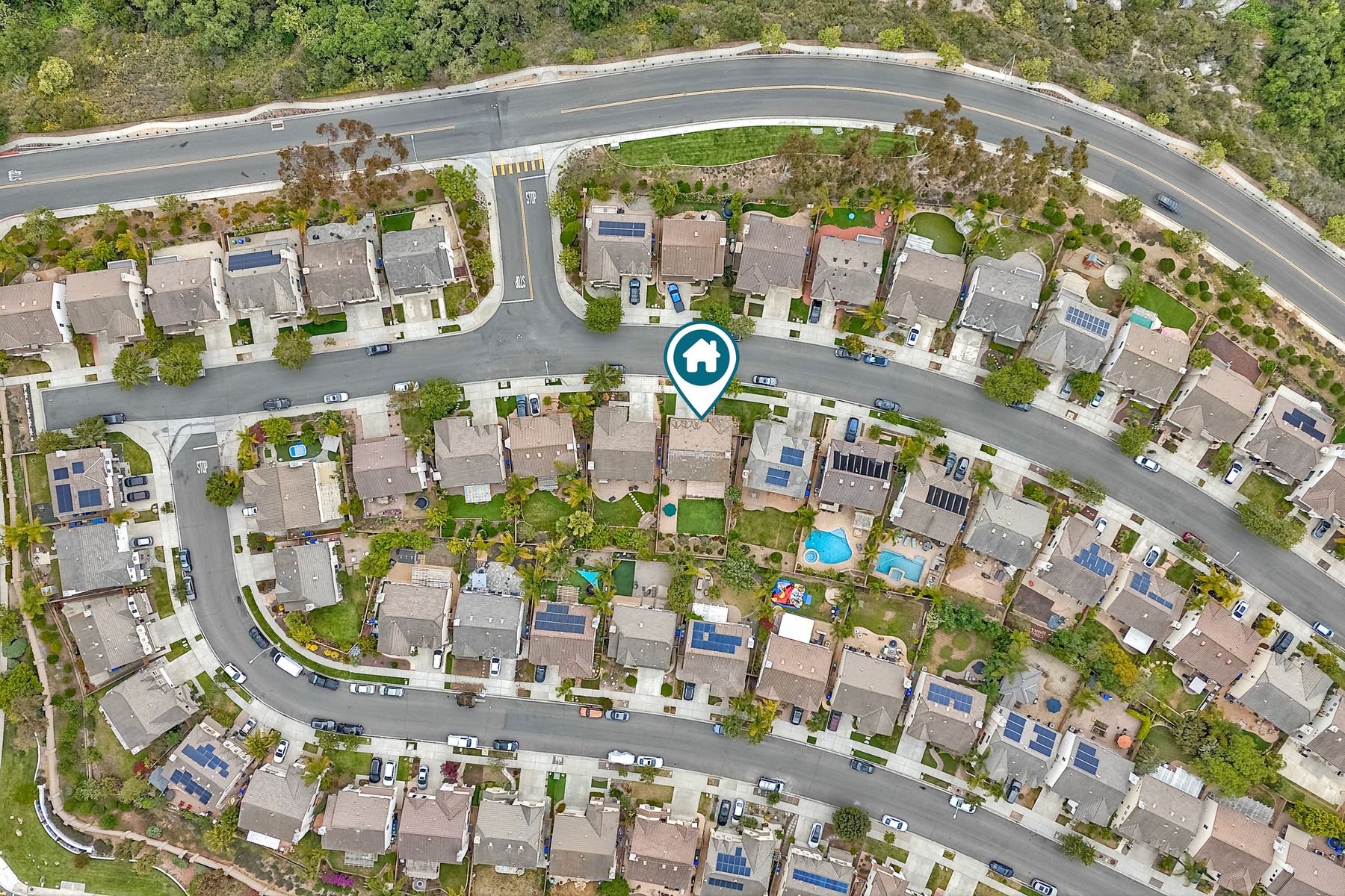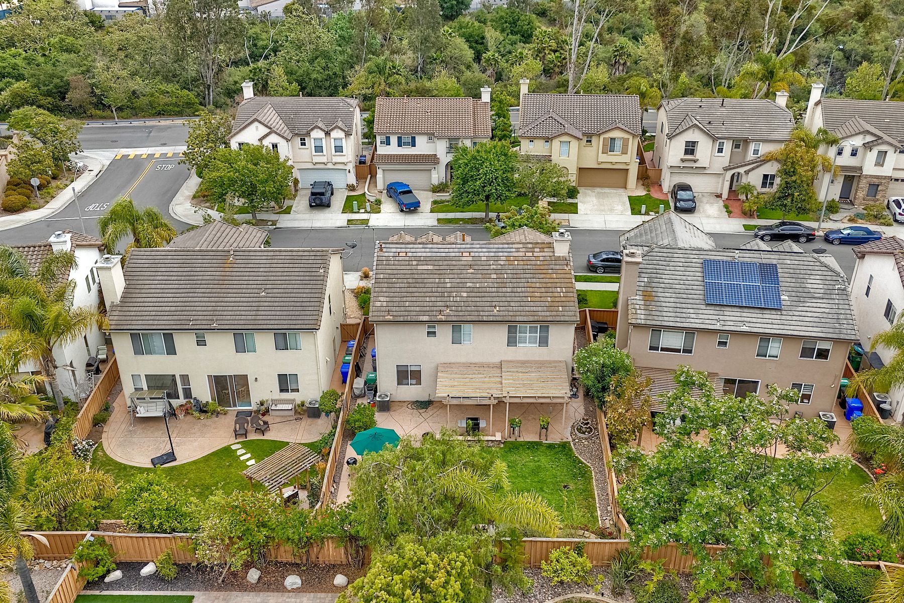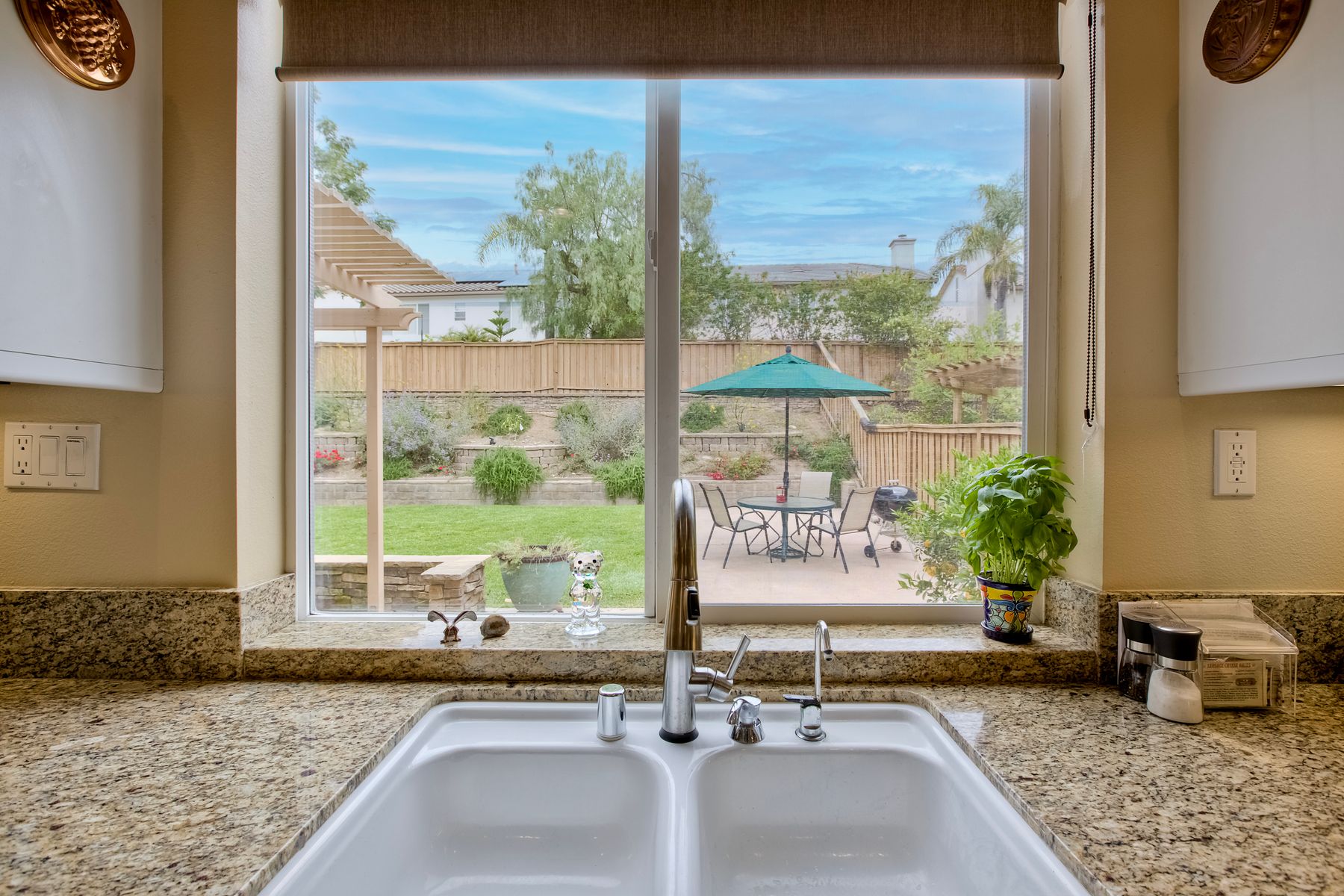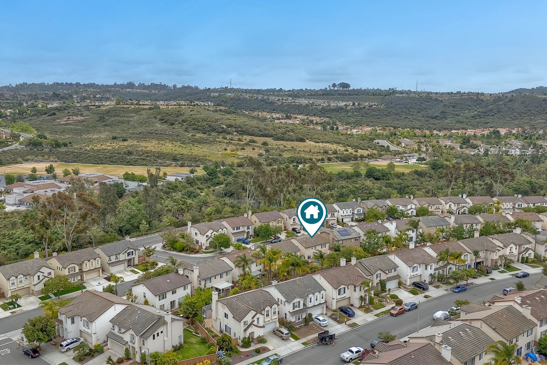 Welcome to the beautiful Morningside subdivision in Sabre Springs! Just a short walk to Creekside Elementary and close to scenic biking and hiking trails, this lovely home features a desirable layout with a downstairs bedroom and full bathroom, plus three additional bedrooms upstairs. A spacious loft provides flexibility for an additional living area, home office, or gym. The remodeled kitchen is a chef’s delight, boasting granite countertops, stainless steel appliances including a Wolf gas cooktop, JennAir convection oven, Bosch dishwasher, and a new GE microwave. The expansive primary suite includes a luxurious bathroom with a separate soaking tub, frameless glass shower with custom tile surround, dual vanity sinks, and a walk-in closet with custom organizers. Additional highlights include a whole-house fan, convenient upstairs laundry room, remodeled guest bathroom, plantation shutters, travertine tile flooring in a diamond pattern, and a cozy fireplace in the family room. This well-maintained home features $11,500 in roof repairs completed in 2023, a newer garage door, and a new water heater. You’ll love the interior lot location and beautiful curb appeal. The large backyard is perfect for gardening, relaxing, or entertaining, with multiple sitting areas featuring stamped concrete, two pergolas, a spacious lawn, and a tiered slope with stacked-stone planters.