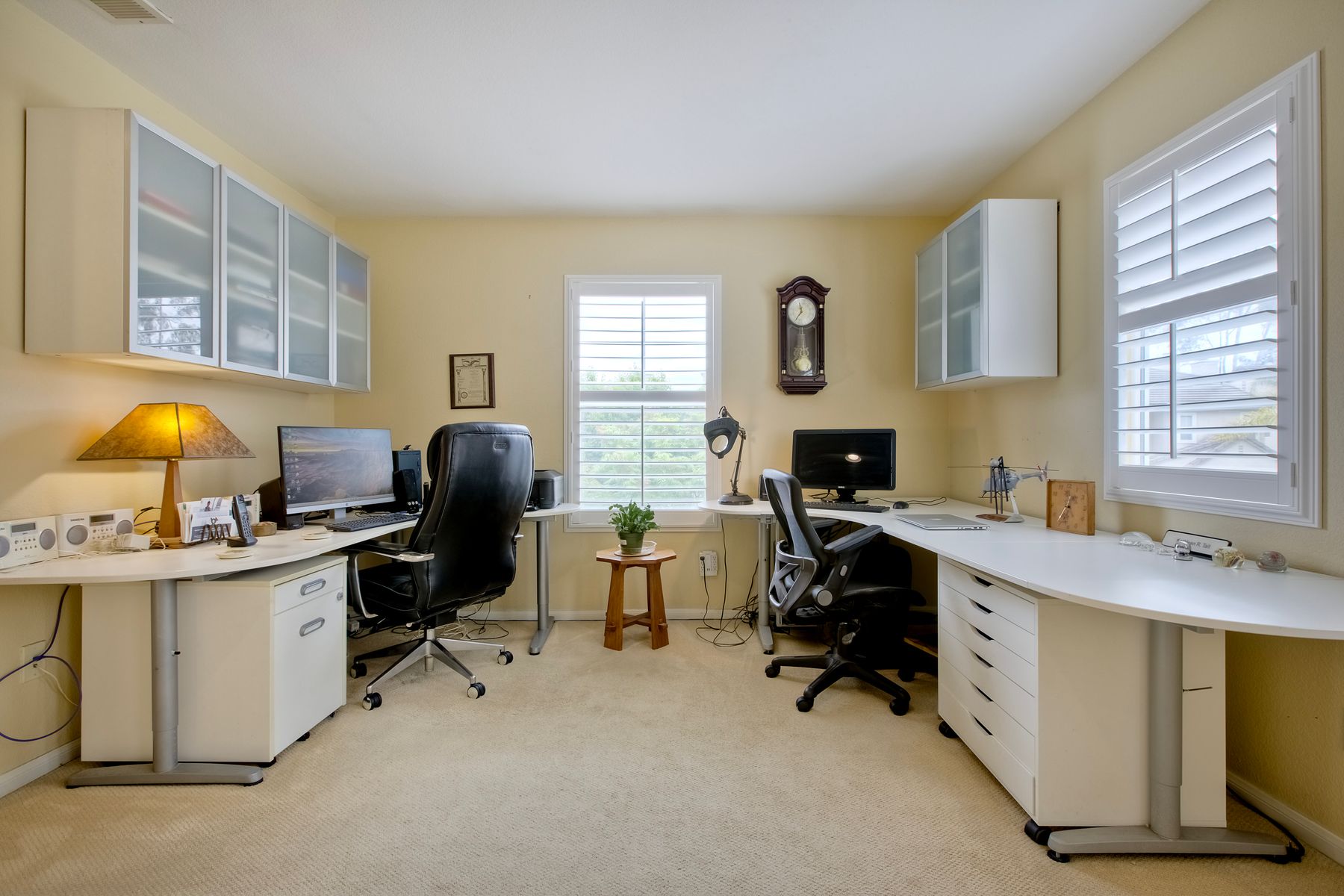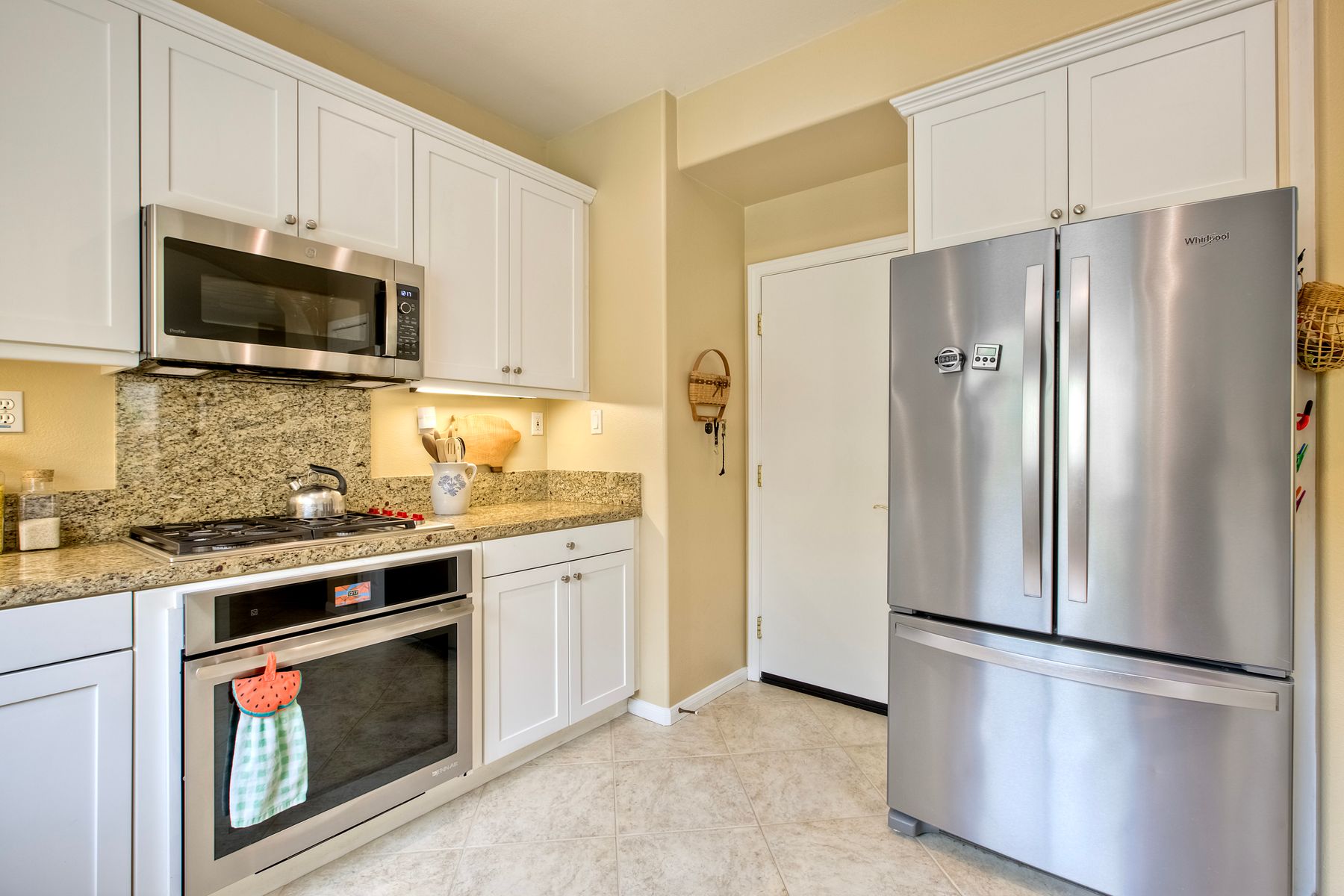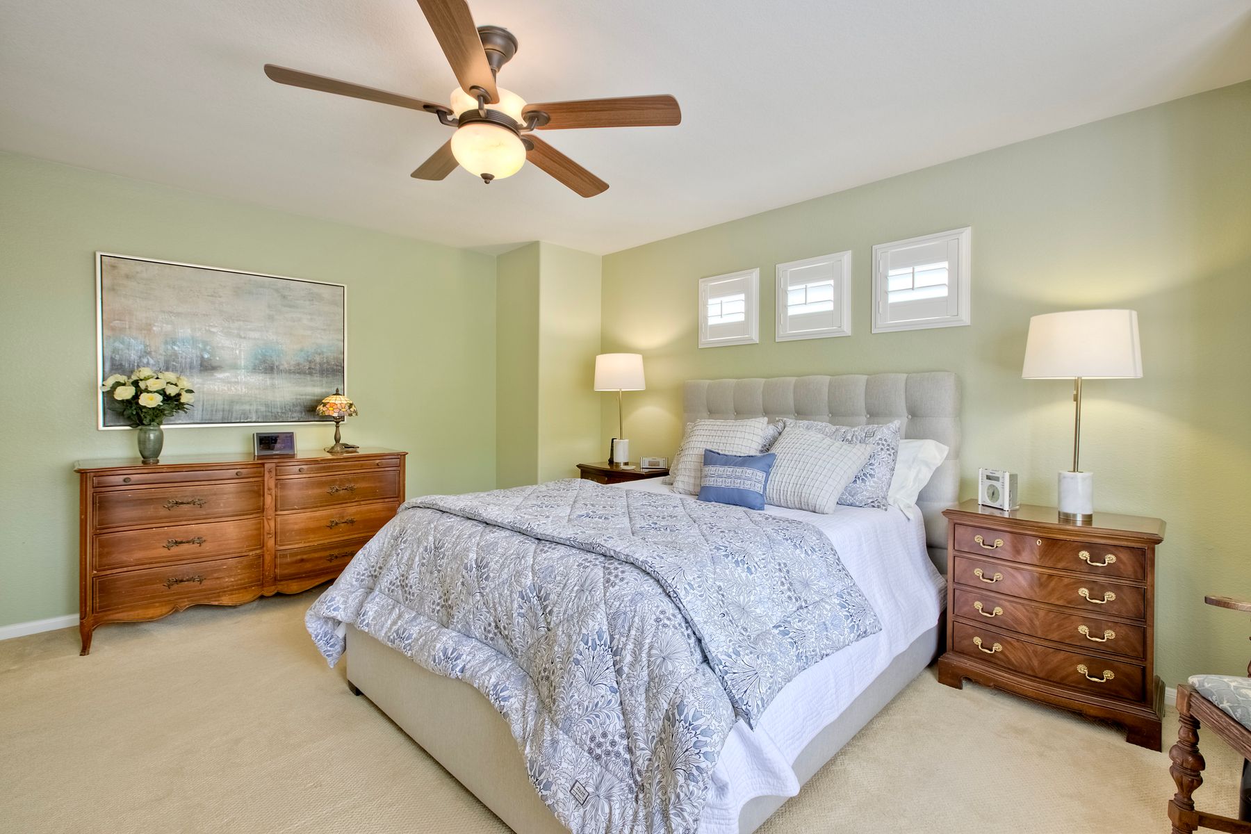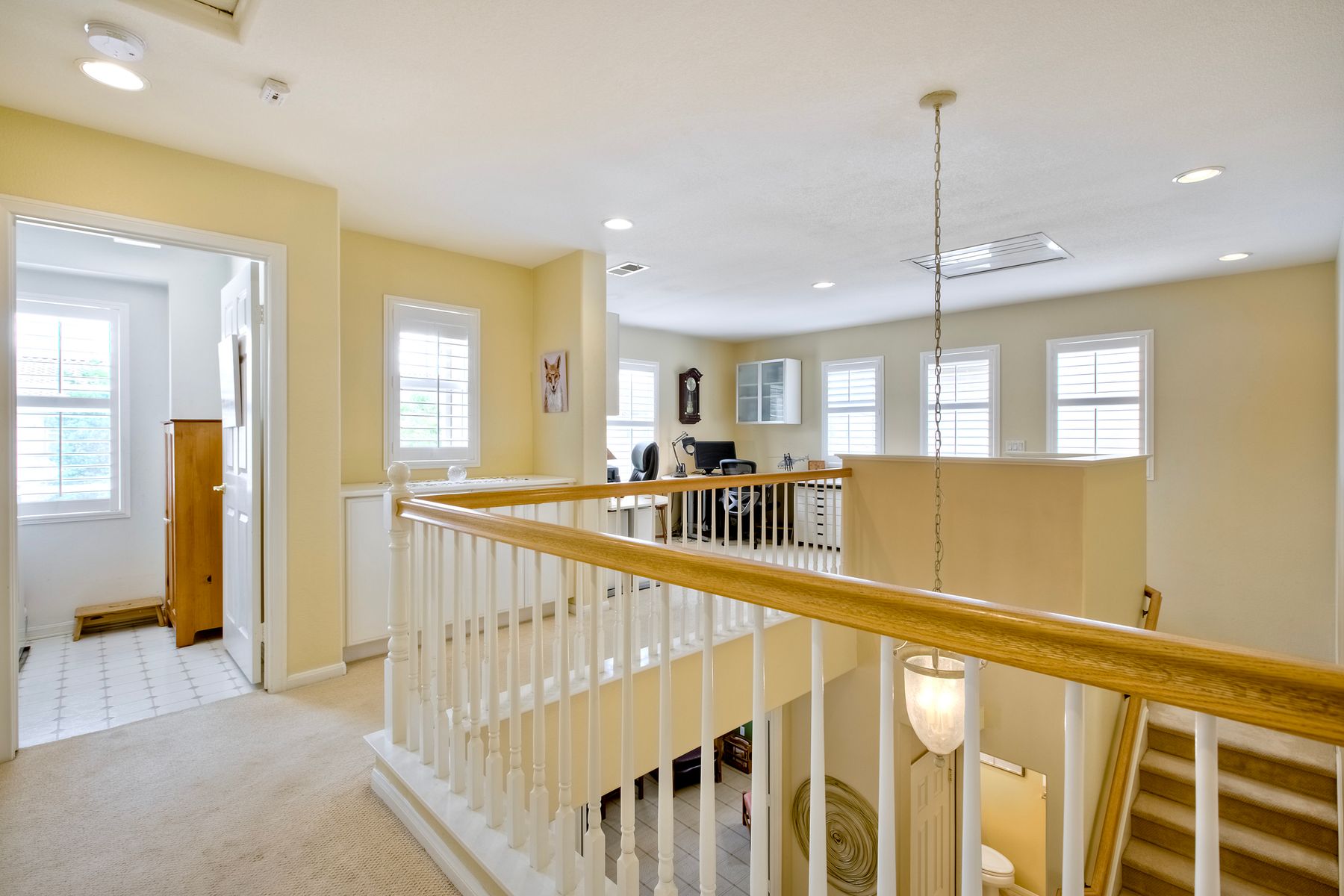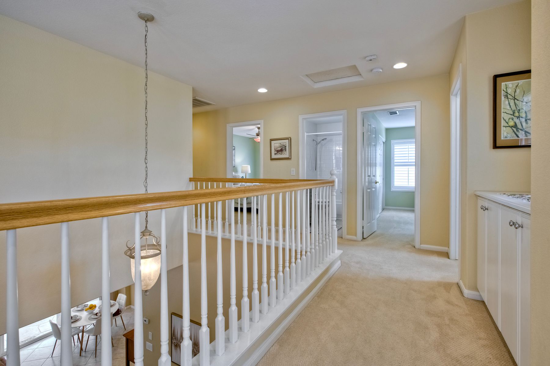 Welcome to the beautiful Morningside subdivision in Sabre Springs! Just a short walk to Creekside Elementary and close to scenic biking and hiking trails, this lovely home features a desirable layout with a downstairs bedroom and full bathroom, plus three additional bedrooms upstairs. A spacious loft provides flexibility for an additional living area, home office, or gym. The remodeled kitchen is a chef’s delight, boasting granite countertops, stainless steel appliances including a Wolf gas cooktop, JennAir convection oven, Bosch dishwasher, and a new GE microwave. The expansive primary suite includes a luxurious bathroom with a separate soaking tub, frameless glass shower with custom tile surround, dual vanity sinks, and a walk-in closet with custom organizers. Additional highlights include a whole-house fan, convenient upstairs laundry room, remodeled guest bathroom, plantation shutters, travertine tile flooring in a diamond pattern, and a cozy fireplace in the family room. This well-maintained home features $11,500 in roof repairs completed in 2023, a newer garage door, and a new water heater. You’ll love the interior lot location and beautiful curb appeal. The large backyard is perfect for gardening, relaxing, or entertaining, with multiple sitting areas featuring stamped concrete, two pergolas, a spacious lawn, and a tiered slope with stacked-stone planters.
