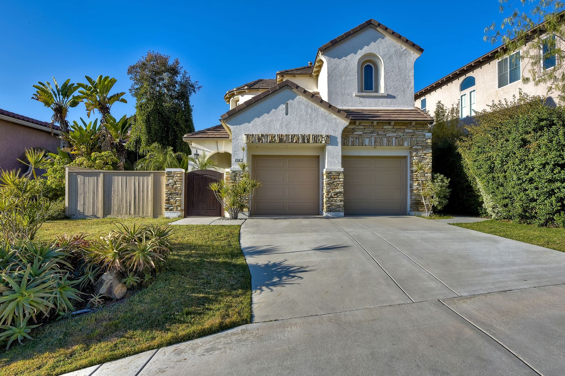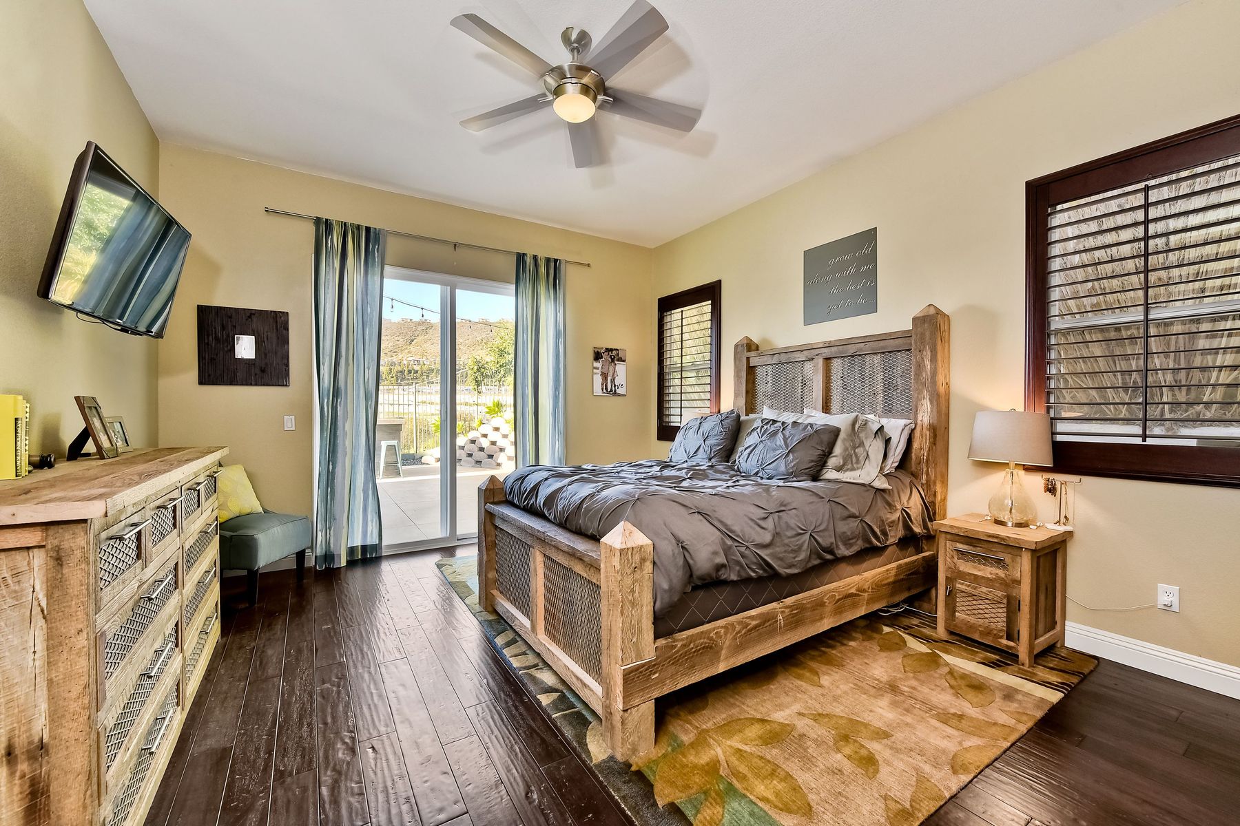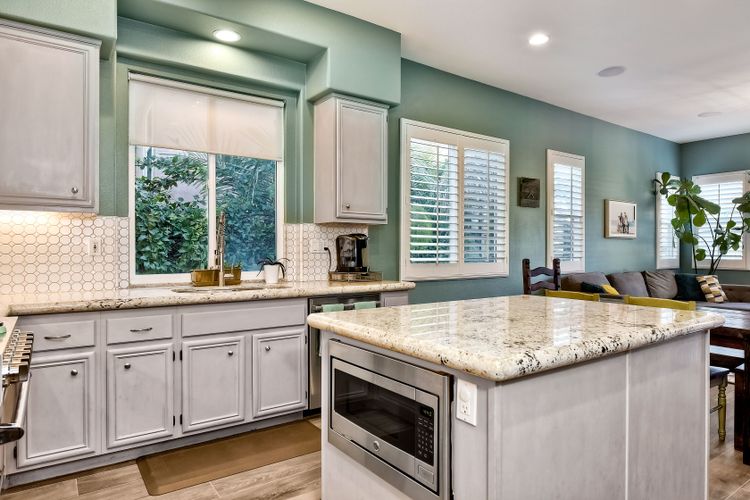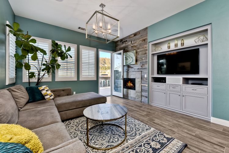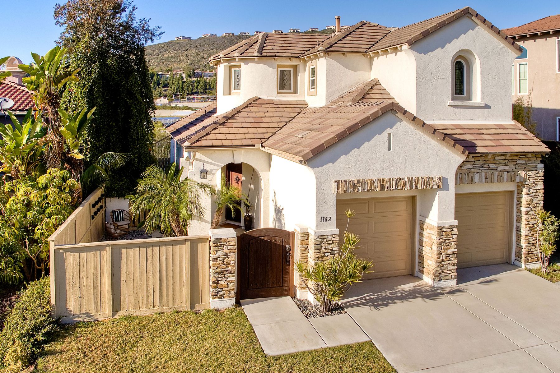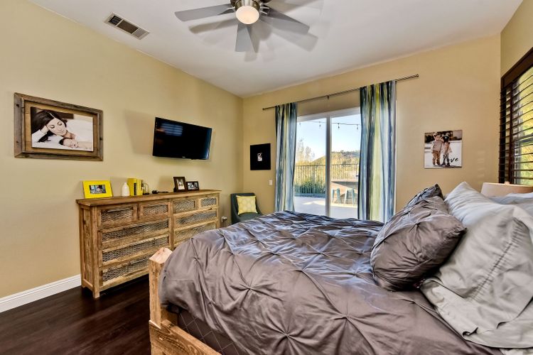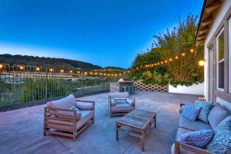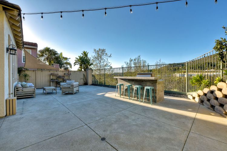 Desirable neighborhood of Calistoga within blocks of downtown San Elijo Hills. Enjoy San Elijo's parks, shopping, restaurants and schools and never get in your car. This home has been beautifully upgraded (over $110,000 of designer extras). Master bedroom on first level which opens to large patio, built-in BBQ and views. Great-room concept with spacious kitchen, lighting, fireplace and flooring. Plantation shutters throughout. Large laundry room w soaking tub. Enjoy front courtyard with sitting area. Air conditioner - Nest thermostat - Built-in cabinets in great room - wood grain tile floors - hardwood floors - Wood wall. The street dead ends so low traffic. The lot maximizes out door living with private court yard at the front of house and large patio with BBQ at the back of the home which overlooks open space.....creating great privacy. San Elijo Hills.....what an enriching community to enjoy the Southern California lifestyle .....perfect combination of convenience and community. There are so many amenities.....18 miles of hiking trails, large parks, award winning schools, and recreational areas with open spaces and views.