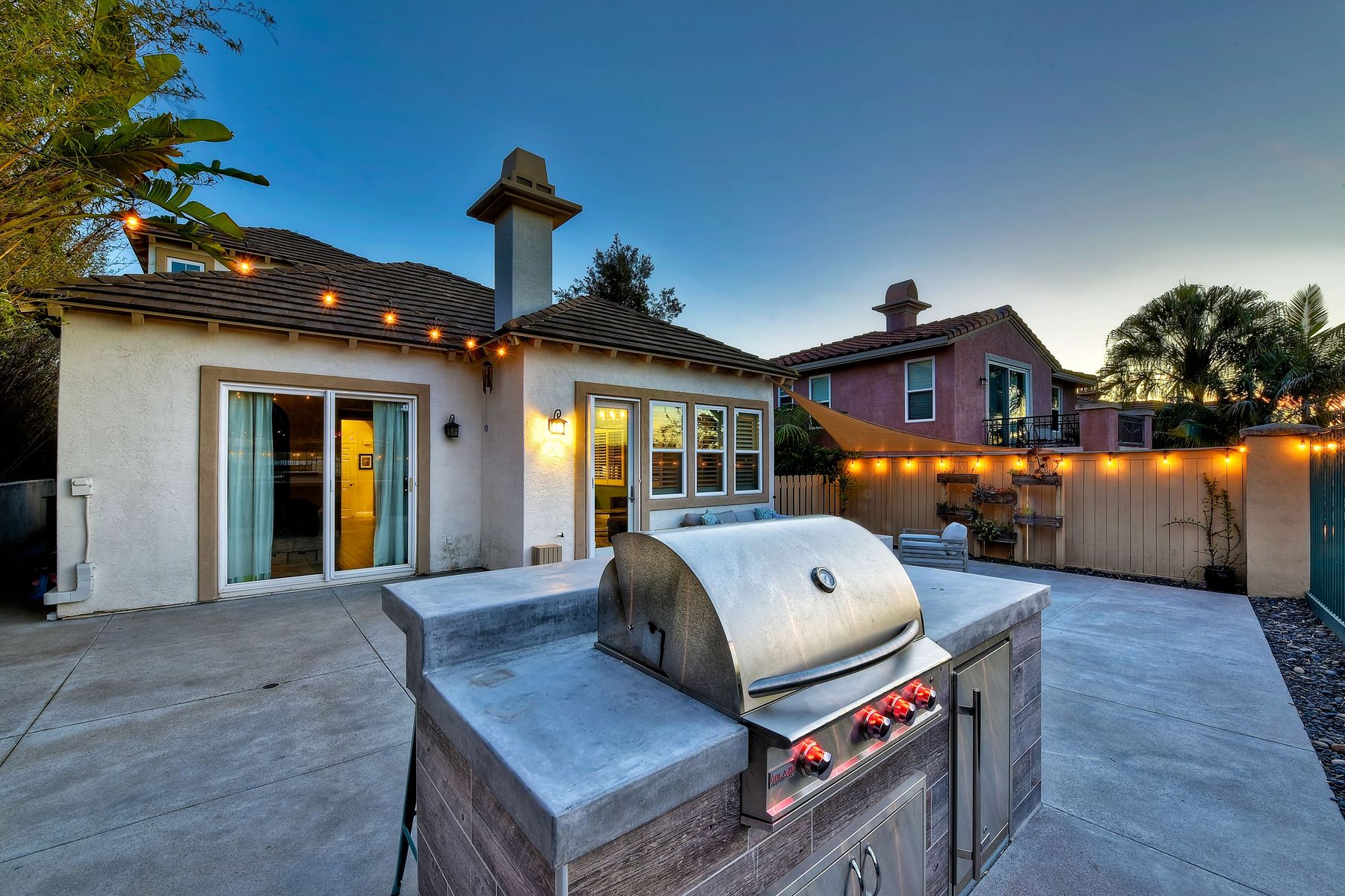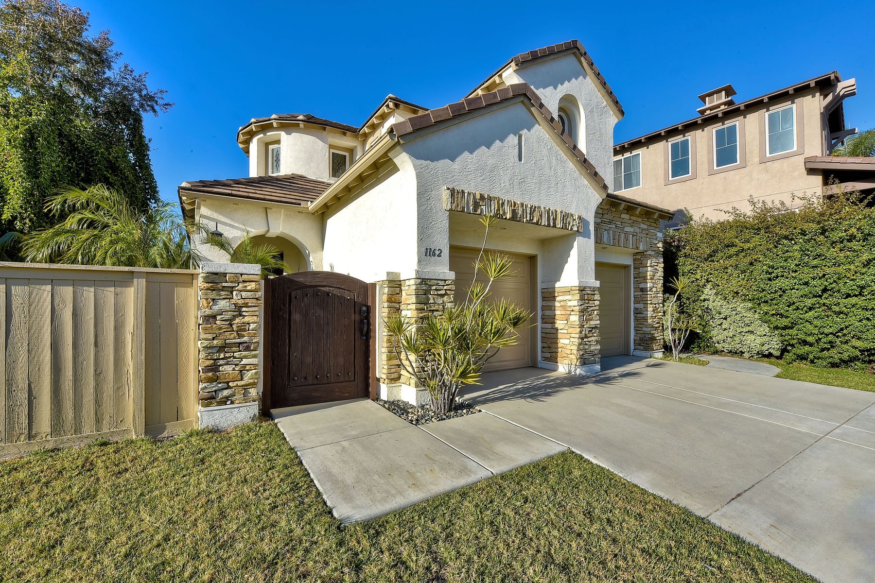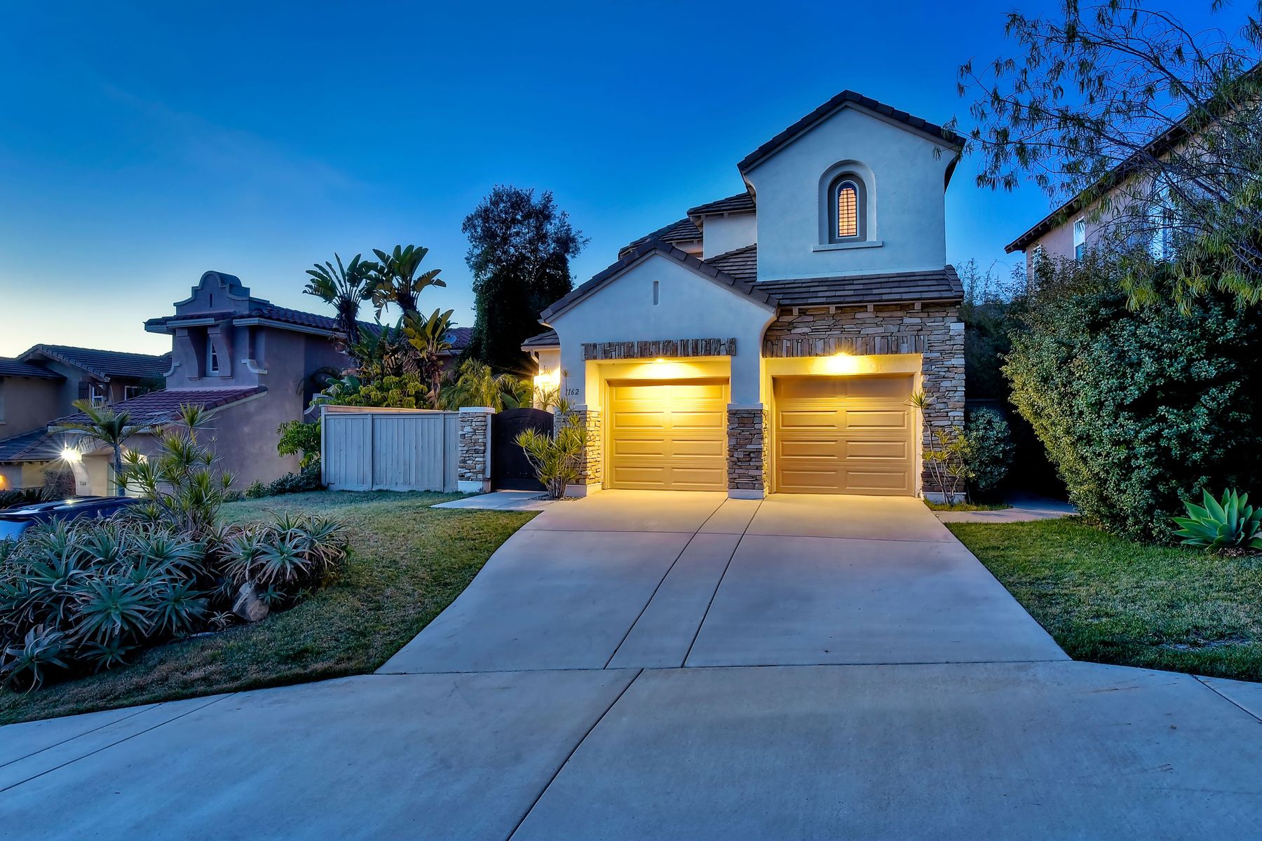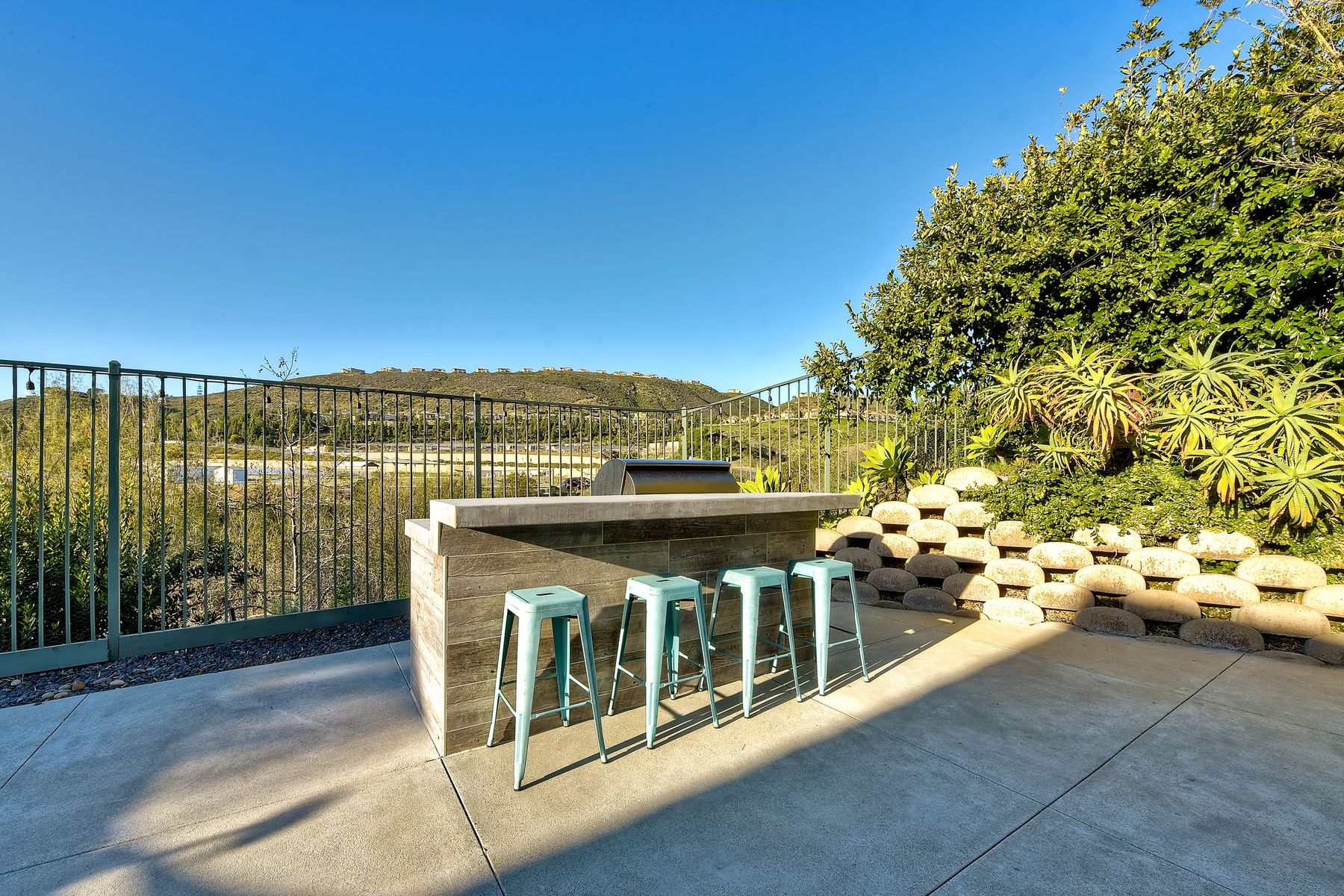 Desirable neighborhood of Calistoga within blocks of downtown San Elijo Hills. Enjoy San Elijo's parks, shopping, restaurants and schools and never get in your car. This home has been beautifully upgraded (over $110,000 of designer extras). Master bedroom on first level which opens to large patio, built-in BBQ and views. Great-room concept with spacious kitchen, lighting, fireplace and flooring. Plantation shutters throughout. Large laundry room w soaking tub. Enjoy front courtyard with sitting area. Air conditioner - Nest thermostat - Built-in cabinets in great room - wood grain tile floors - hardwood floors - Wood wall. The street dead ends so low traffic. The lot maximizes out door living with private court yard at the front of house and large patio with BBQ at the back of the home which overlooks open space.....creating great privacy. San Elijo Hills.....what an enriching community to enjoy the Southern California lifestyle .....perfect combination of convenience and community. There are so many amenities.....18 miles of hiking trails, large parks, award winning schools, and recreational areas with open spaces and views.