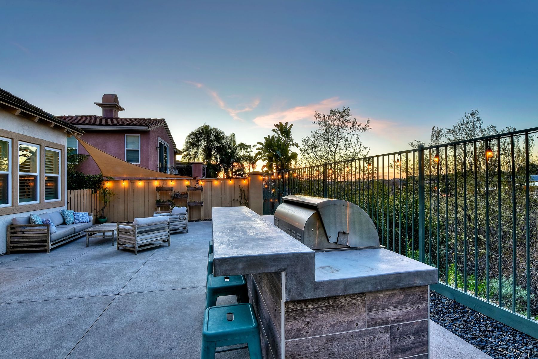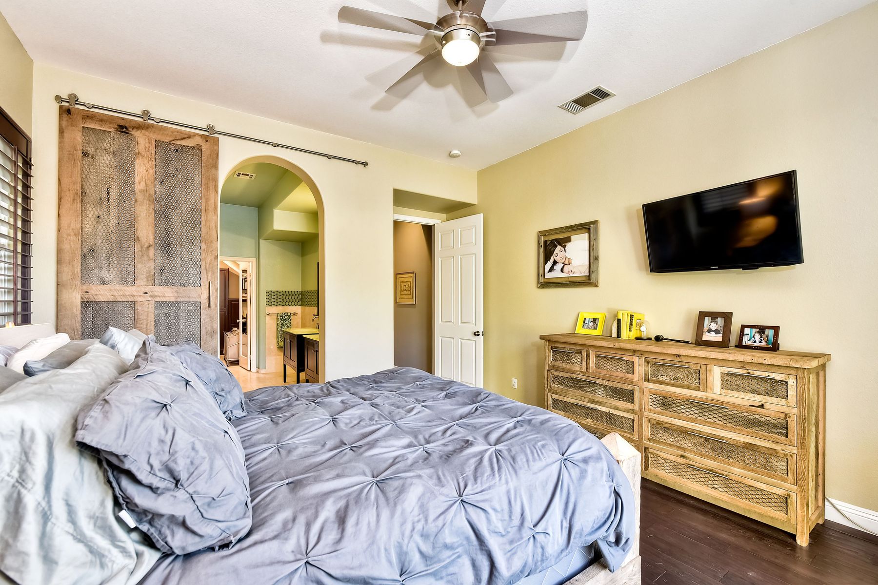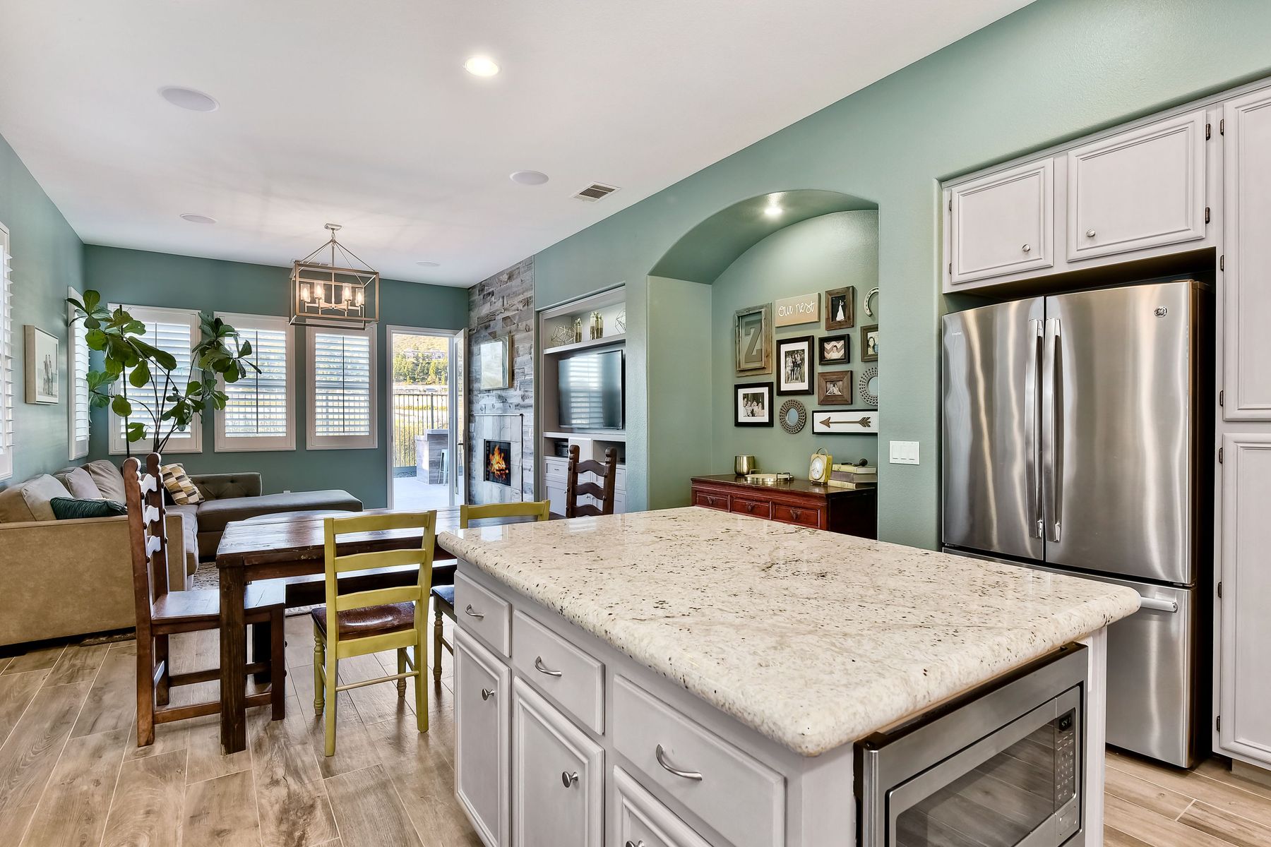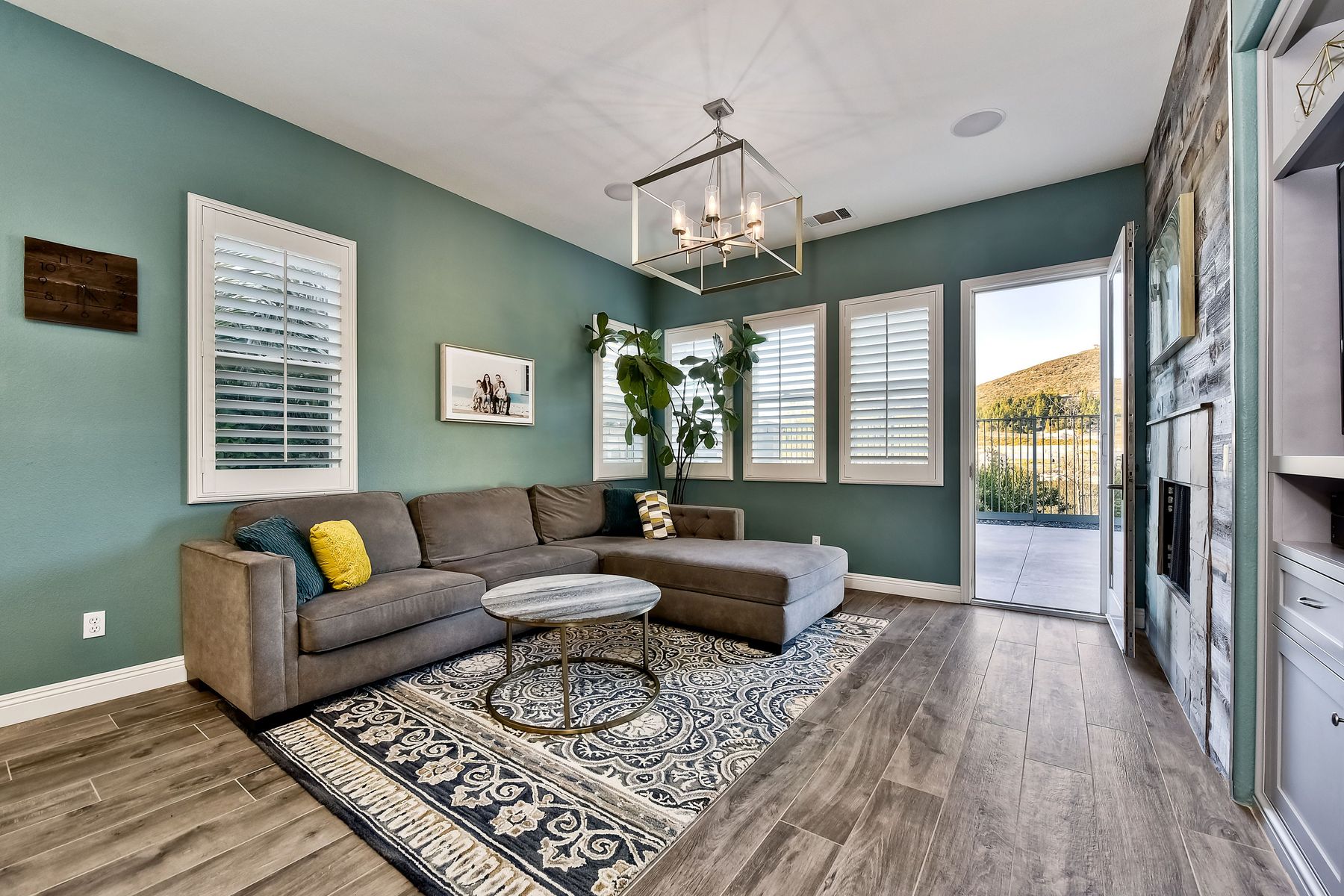 Desirable neighborhood of Calistoga within blocks of downtown San Elijo Hills. Enjoy San Elijo's parks, shopping, restaurants and schools and never get in your car. This home has been beautifully upgraded (over $110,000 of designer extras). Master bedroom on first level which opens to large patio, built-in BBQ and views. Great-room concept with spacious kitchen, lighting, fireplace and flooring. Plantation shutters throughout. Large laundry room w soaking tub. Enjoy front courtyard with sitting area. Air conditioner - Nest thermostat - Built-in cabinets in great room - wood grain tile floors - hardwood floors - Wood wall. The street dead ends so low traffic. The lot maximizes out door living with private court yard at the front of house and large patio with BBQ at the back of the home which overlooks open space.....creating great privacy. San Elijo Hills.....what an enriching community to enjoy the Southern California lifestyle .....perfect combination of convenience and community. There are so many amenities.....18 miles of hiking trails, large parks, award winning schools, and recreational areas with open spaces and views.
