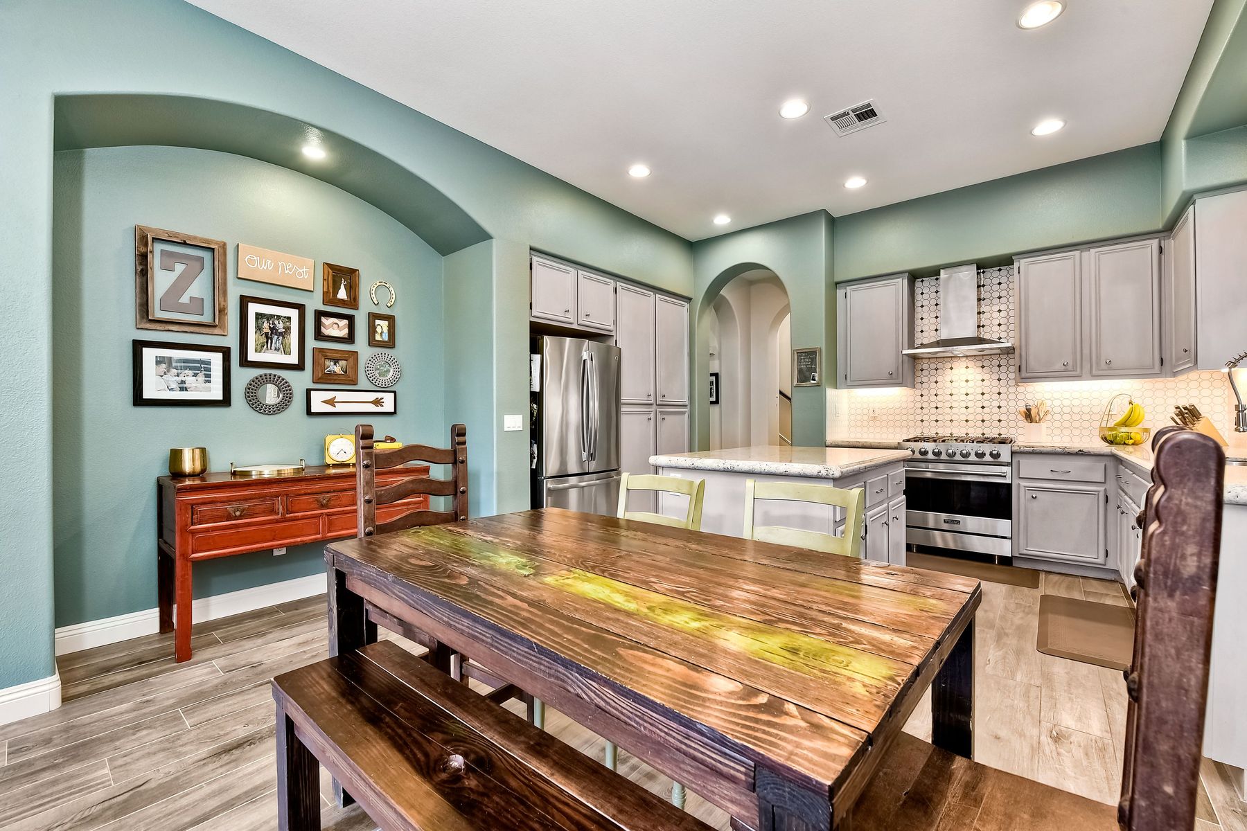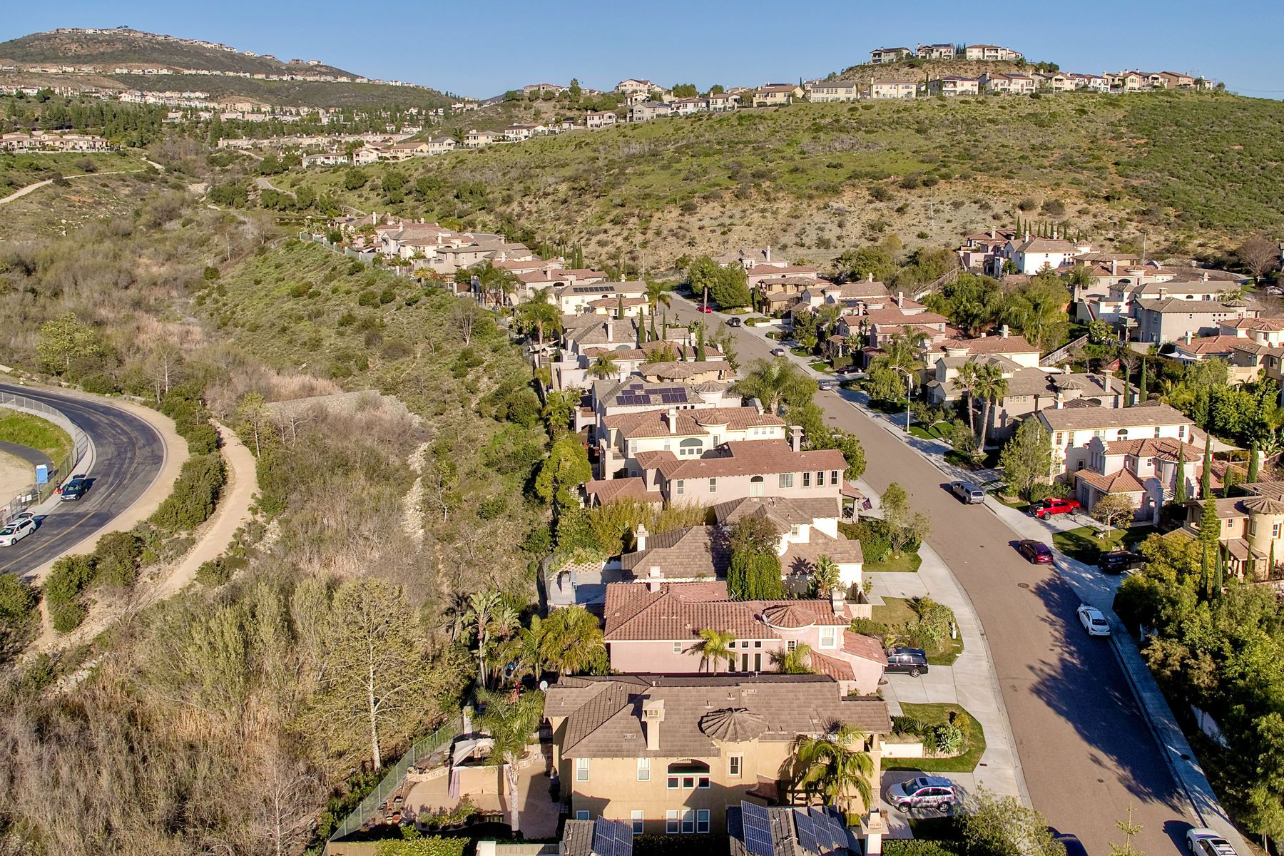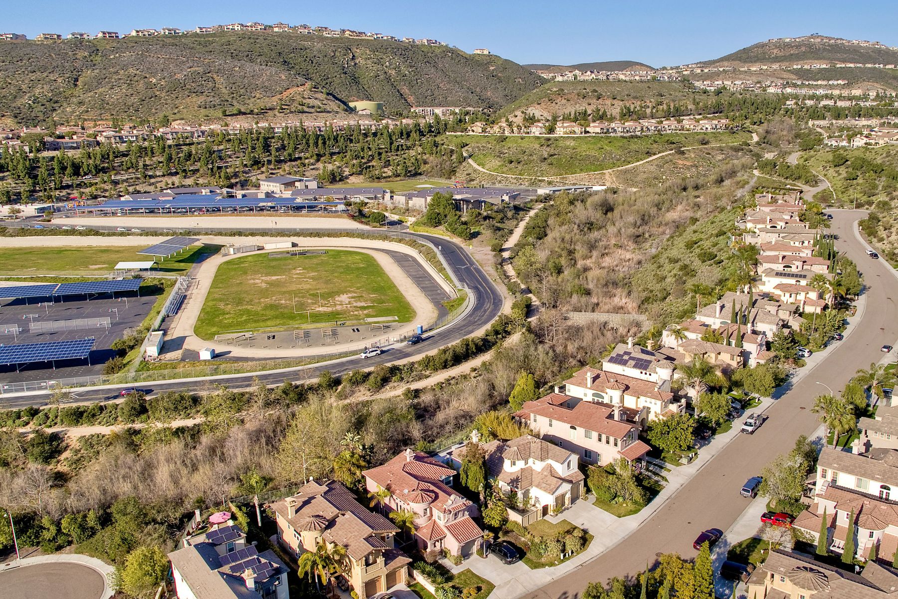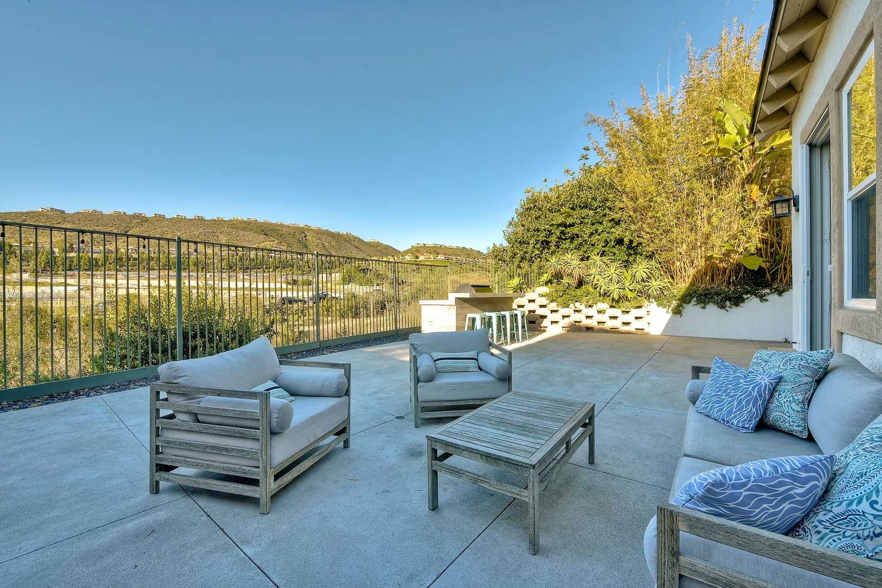 Desirable neighborhood of Calistoga within blocks of downtown San Elijo Hills. Enjoy San Elijo's parks, shopping, restaurants and schools and never get in your car. This home has been beautifully upgraded (over $110,000 of designer extras). Master bedroom on first level which opens to large patio, built-in BBQ and views. Great-room concept with spacious kitchen, lighting, fireplace and flooring. Plantation shutters throughout. Large laundry room w soaking tub. Enjoy front courtyard with sitting area. Air conditioner - Nest thermostat - Built-in cabinets in great room - wood grain tile floors - hardwood floors - Wood wall. The street dead ends so low traffic. The lot maximizes out door living with private court yard at the front of house and large patio with BBQ at the back of the home which overlooks open space.....creating great privacy. San Elijo Hills.....what an enriching community to enjoy the Southern California lifestyle .....perfect combination of convenience and community. There are so many amenities.....18 miles of hiking trails, large parks, award winning schools, and recreational areas with open spaces and views.