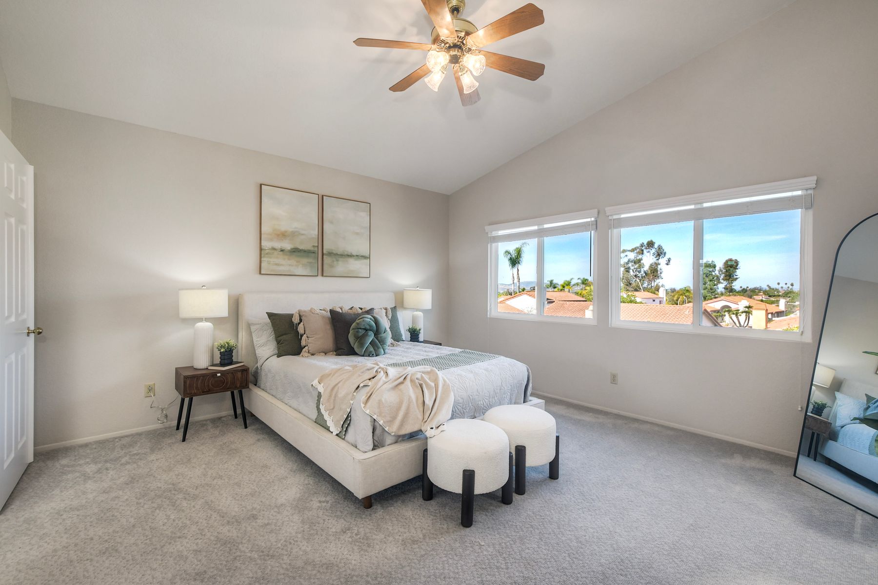 Welcome home to this beautiful Rancho Bernardo gem, located in the highly desirable Bernardo Vistas neighborhood of Bernardo Heights. Tucked away at the end of a quiet cul-de-sac, this home offers privacy, comfort, and abundant natural light throughout. Featuring 4 bedrooms and 3 full bathrooms, the thoughtfully designed floor plan includes a convenient first-floor bedroom and full bath, ideal for guests or multigenerational living. Meticulously taken care of by original owners. . Soaring windows fill the home with sunlight, creating a bright and welcoming atmosphere. Step outside to a peaceful, low-maintenance backyard adorned with mature citrus trees—perfect for relaxing or entertaining. Just around the corner from Carmel Mountain Ranch, you’ll enjoy easy access to shopping, dining, and everyday conveniences, all while coming home to a serene residential setting. This is Rancho Bernardo living at its best.