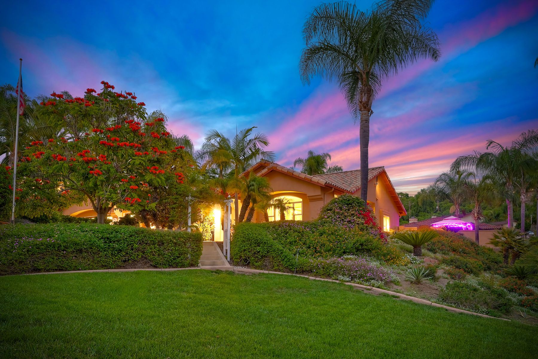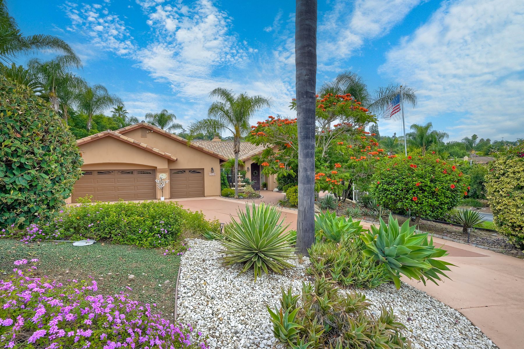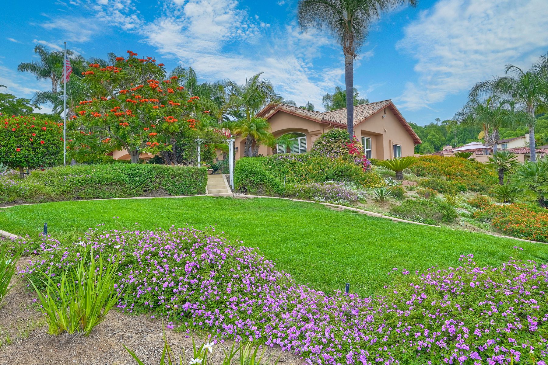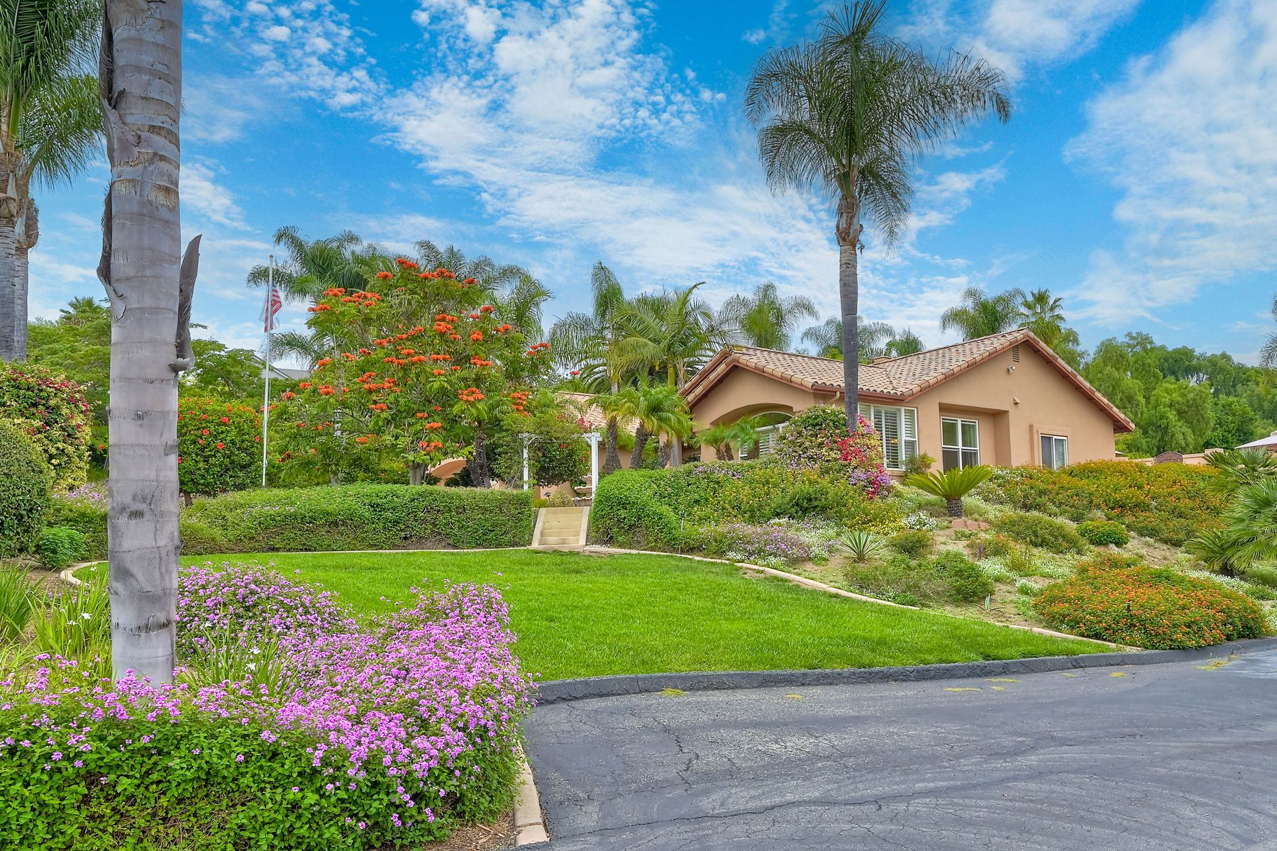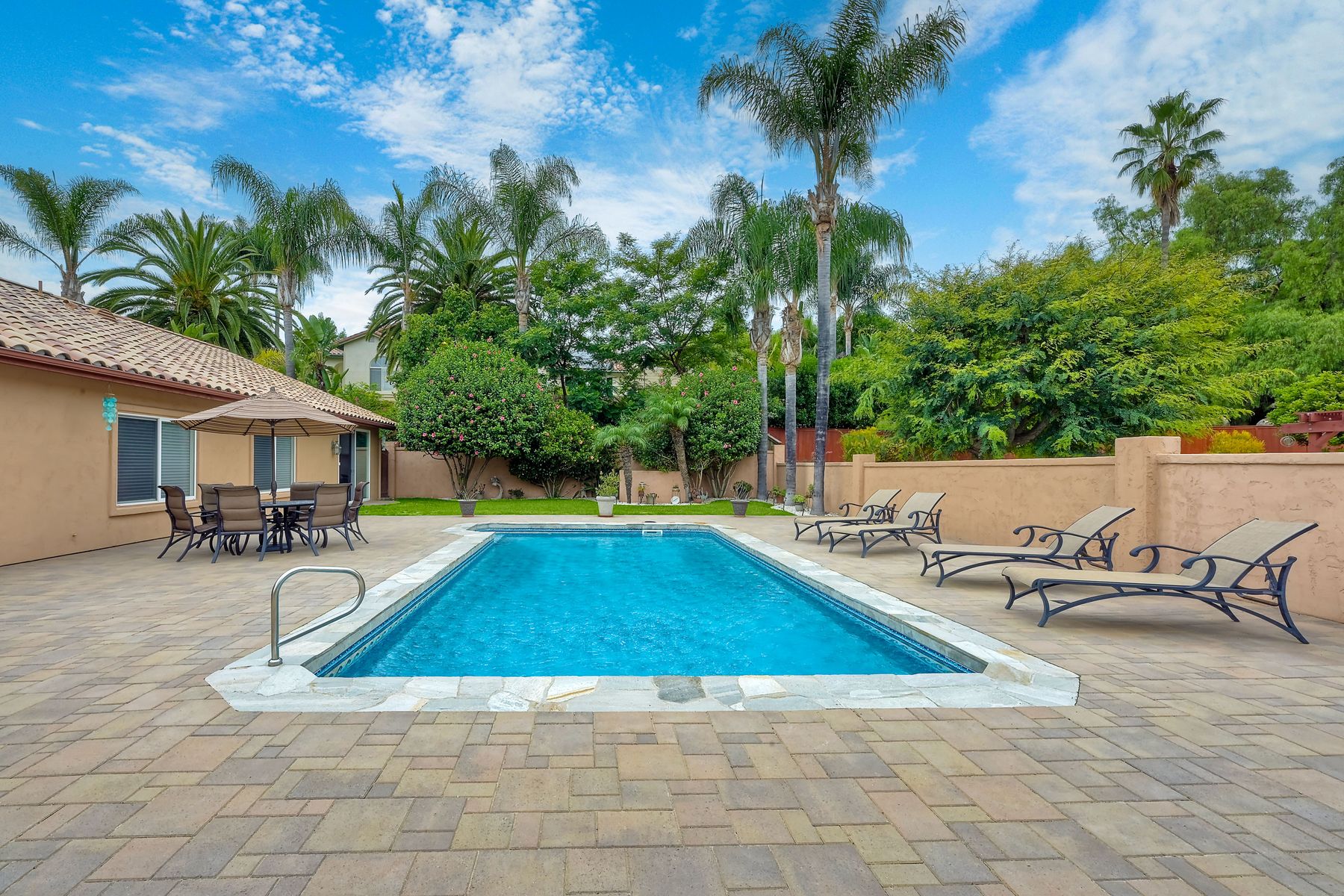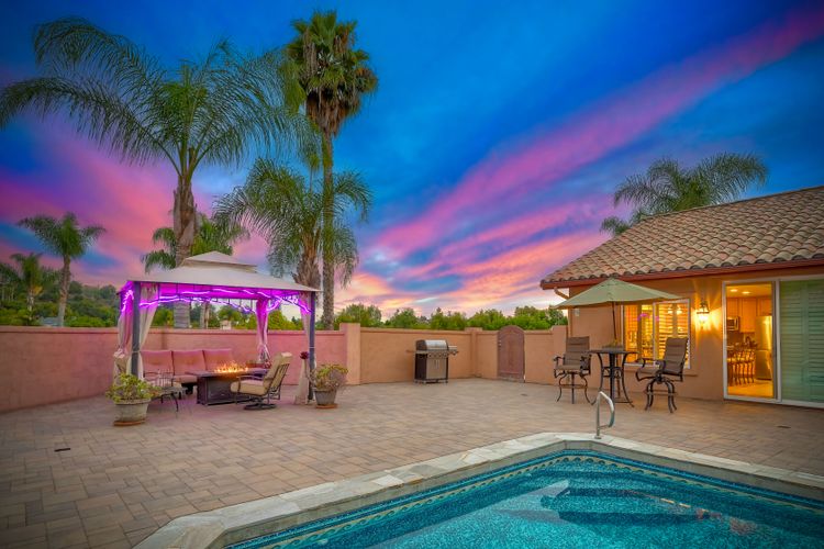 Perched on a thoughtfully landscaped 3/4 acre lot with Southwest views - this lovely single story home invites brilliant sun rises from your backyard and serene sunsets from your kitchen, dining room and living room. A turnkey 4 BR, 3 full bath, 2487 sf home nestled into a quiet neighborhood of just 14 families. Expansive backyard area w/ in-ground pool are perfect for all of the family to enjoy OR for those who love to entertain! In this neighborhood - you feel like you are in the country, yet you are moments from access to Frazier Farms, Sprouts, Cinepolis theater, Moonlight Amphitheater and all of the new shops and restaurants in downtown Vista. Just a ten-minute jaunt to the 78 and less than 9 miles from the coast and all of the amazing downtown Carlsbad shoppes and restaurants. A plethora of revisions over the last 19 years to include a 40k Tuscan Paver patio (2019) in the backyard, new 18' ceramic tile in all main living areas(2019), new carpet in BR's(2022) and all new Samsung stainless steels appliances (2022). In addition, driveway has been sealed with Sundek coating and exterior has been painted (2023). Entertainers kitchen w/ an abundance of storage! Merillat maple cabinetry, granite counters and center island open to family room and easy access to your backyard haven. Plantation shutters and silhouette blinds enable you to create a subdued ambiance or invite as much of the outdoors in as you would like. 3-car garage with abundant storage, 5-yrs old water heater, access to park an RV and the possibilities of a small ADU in the front yard area.