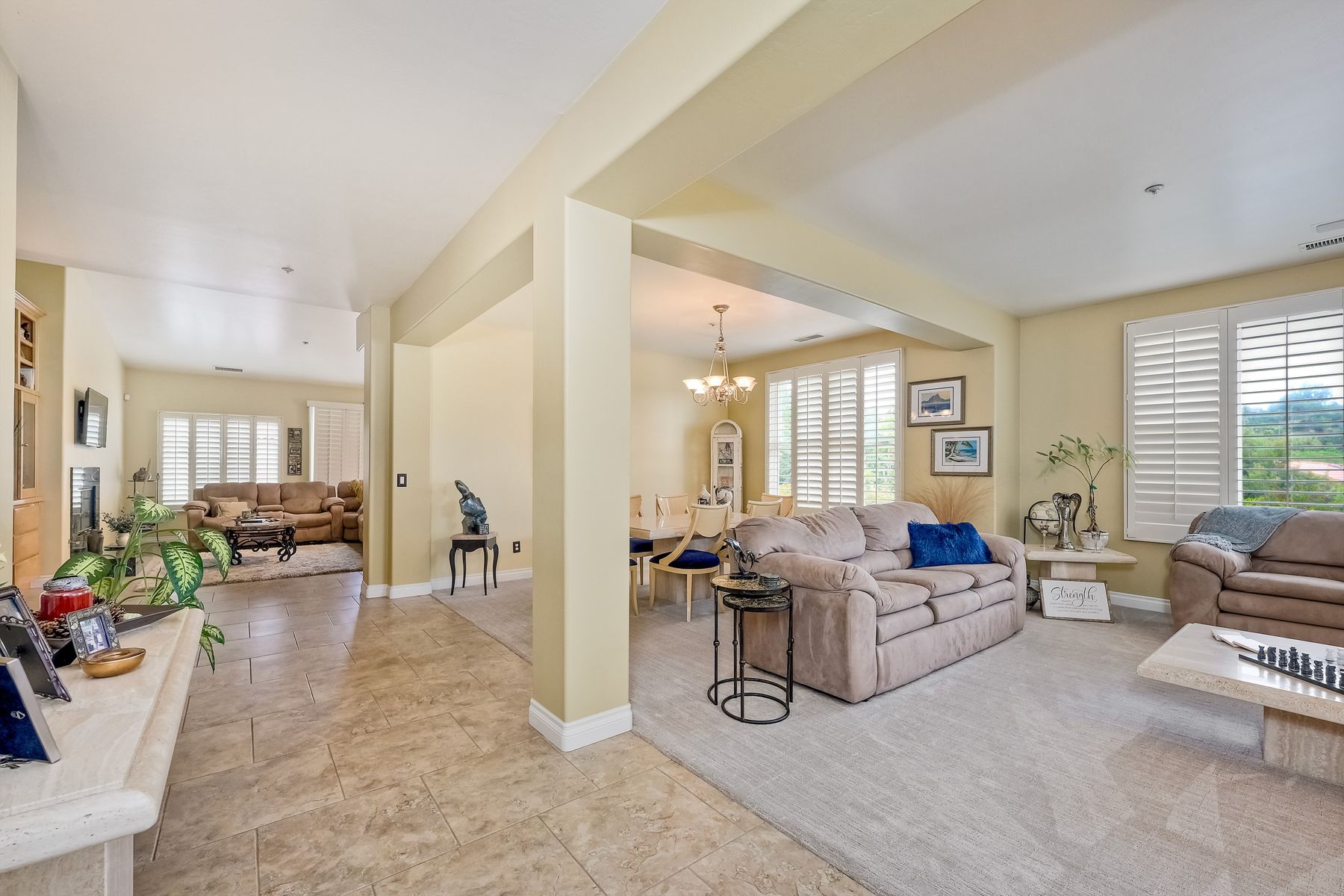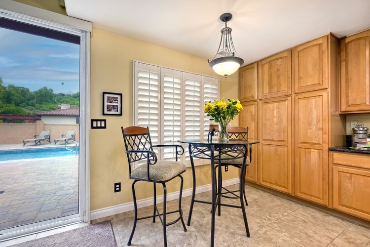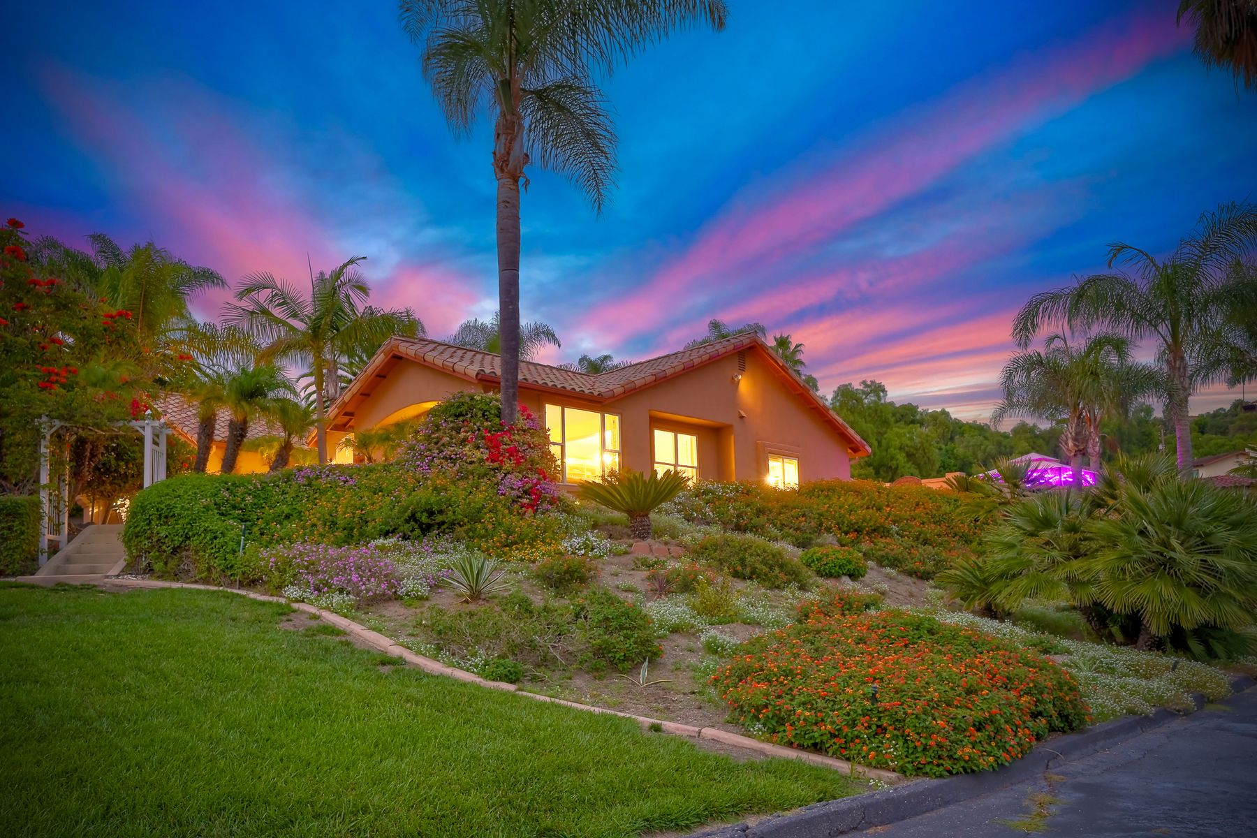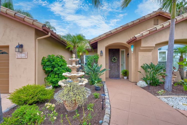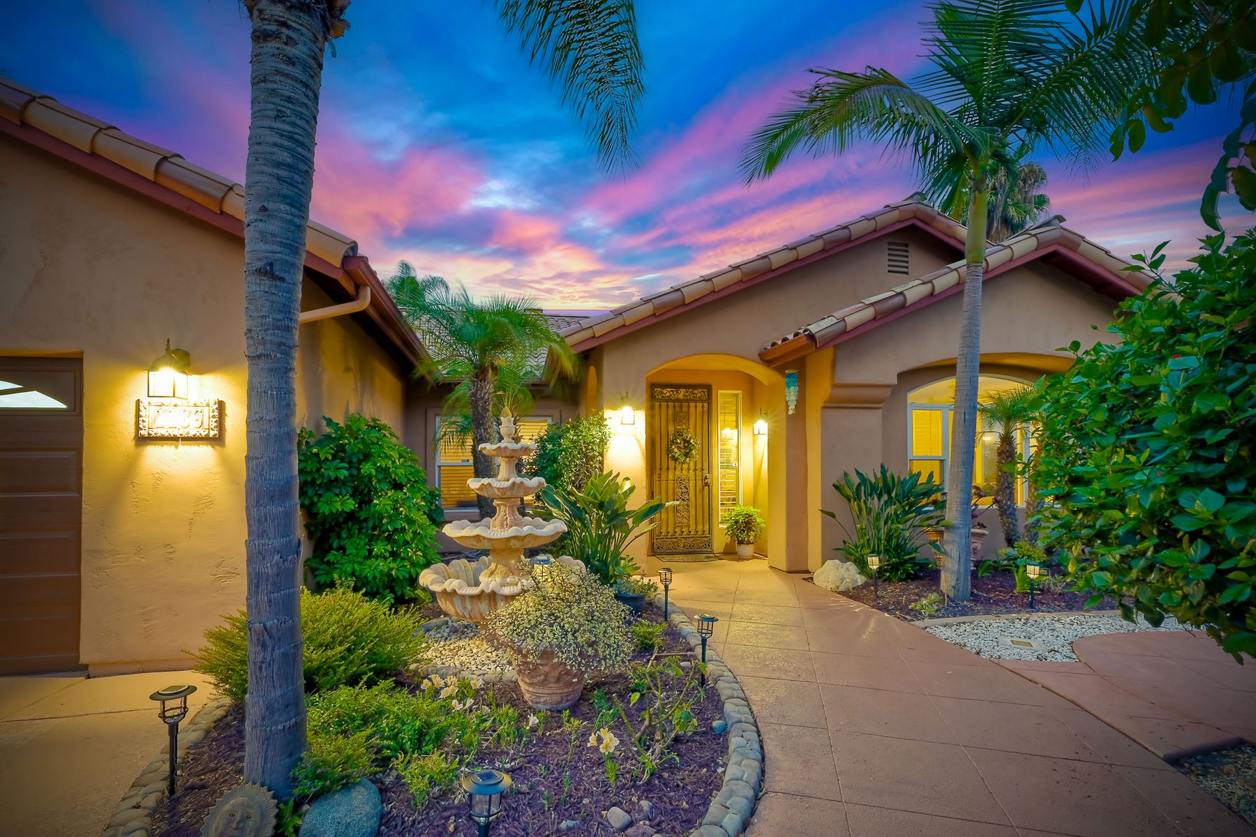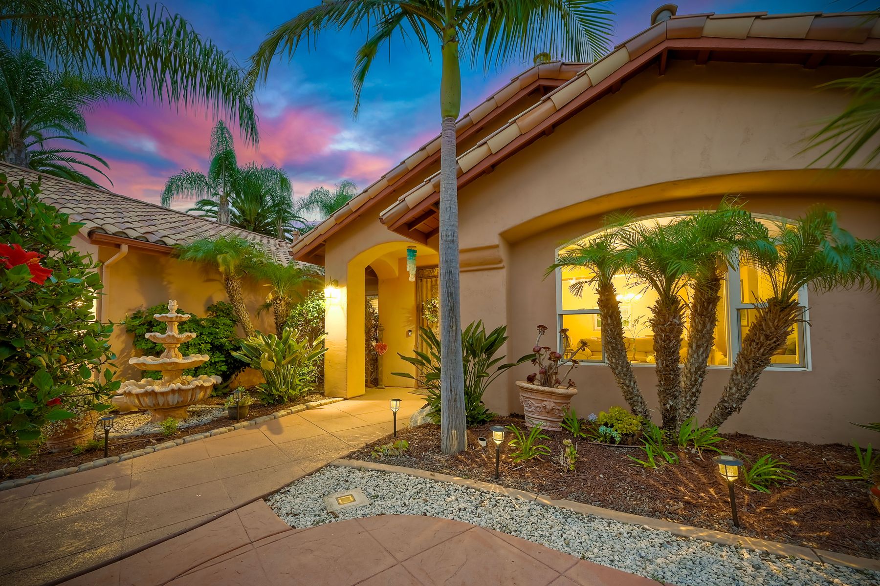 Perched on a thoughtfully landscaped 3/4 acre lot with Southwest views - this lovely single story home invites brilliant sun rises from your backyard and serene sunsets from your kitchen, dining room and living room. A turnkey 4 BR, 3 full bath, 2487 sf home nestled into a quiet neighborhood of just 14 families. Expansive backyard area w/ in-ground pool are perfect for all of the family to enjoy OR for those who love to entertain! In this neighborhood - you feel like you are in the country, yet you are moments from access to Frazier Farms, Sprouts, Cinepolis theater, Moonlight Amphitheater and all of the new shops and restaurants in downtown Vista. Just a ten-minute jaunt to the 78 and less than 9 miles from the coast and all of the amazing downtown Carlsbad shoppes and restaurants. A plethora of revisions over the last 19 years to include a 40k Tuscan Paver patio (2019) in the backyard, new 18' ceramic tile in all main living areas(2019), new carpet in BR's(2022) and all new Samsung stainless steels appliances (2022). In addition, driveway has been sealed with Sundek coating and exterior has been painted (2023). Entertainers kitchen w/ an abundance of storage! Merillat maple cabinetry, granite counters and center island open to family room and easy access to your backyard haven. Plantation shutters and silhouette blinds enable you to create a subdued ambiance or invite as much of the outdoors in as you would like. 3-car garage with abundant storage, 5-yrs old water heater, access to park an RV and the possibilities of a small ADU in the front yard area.