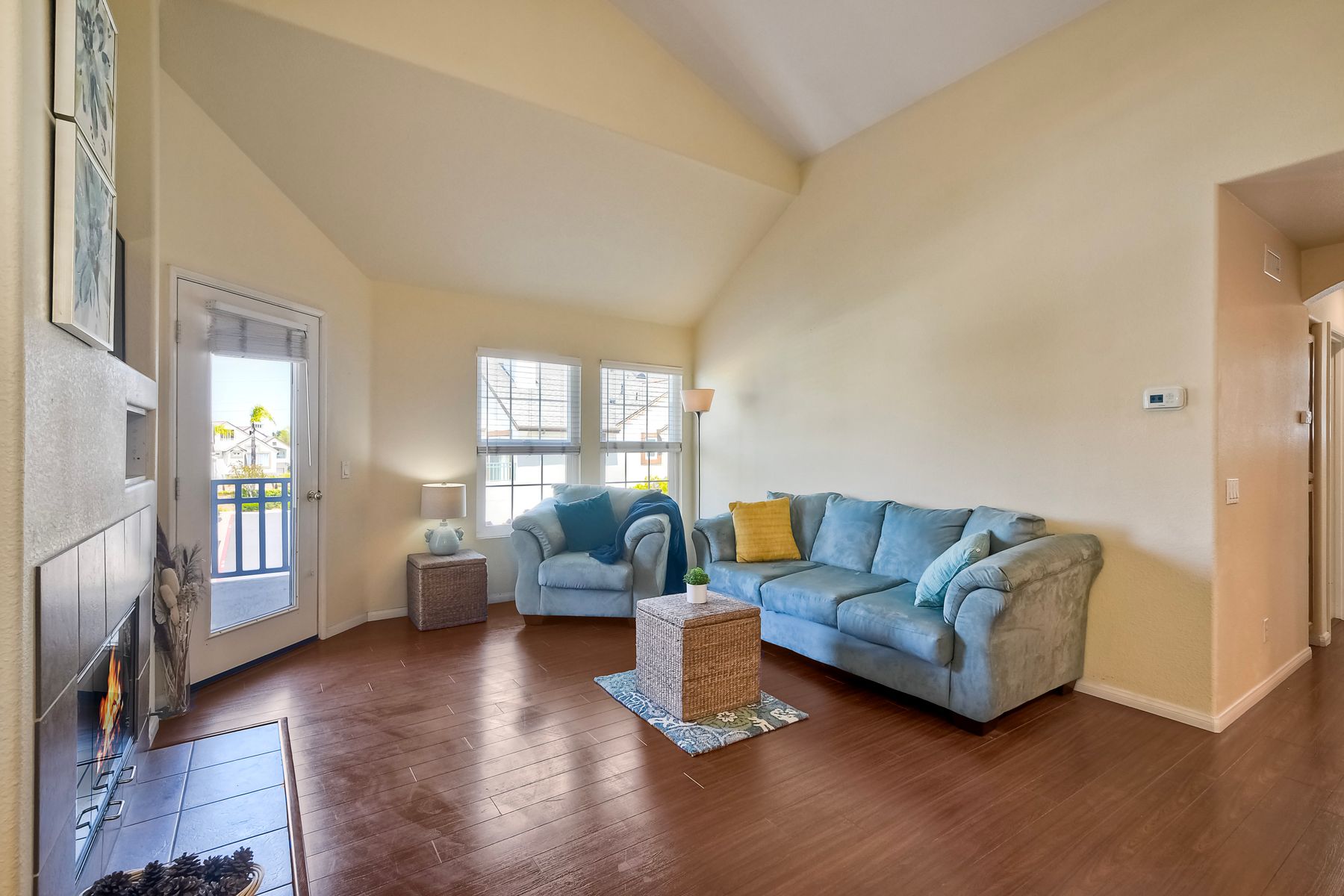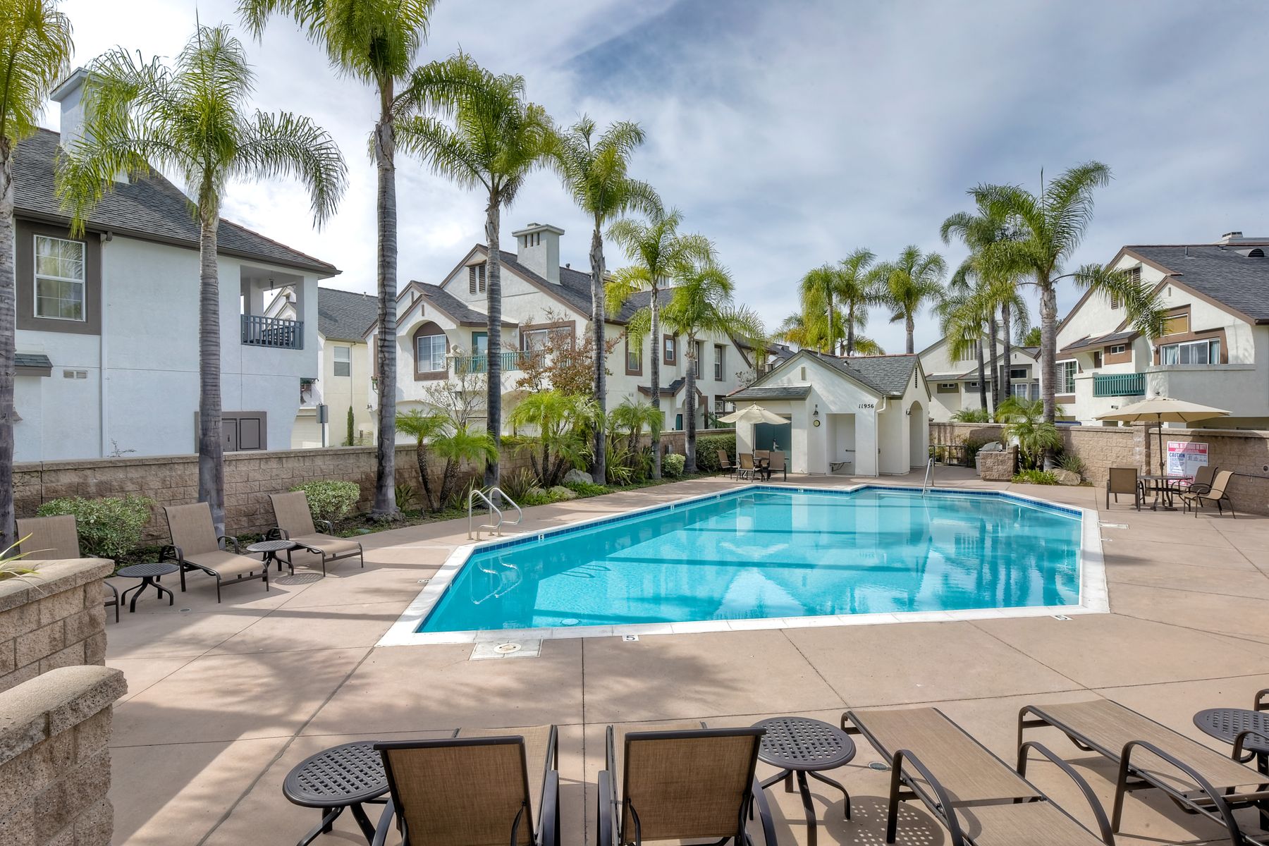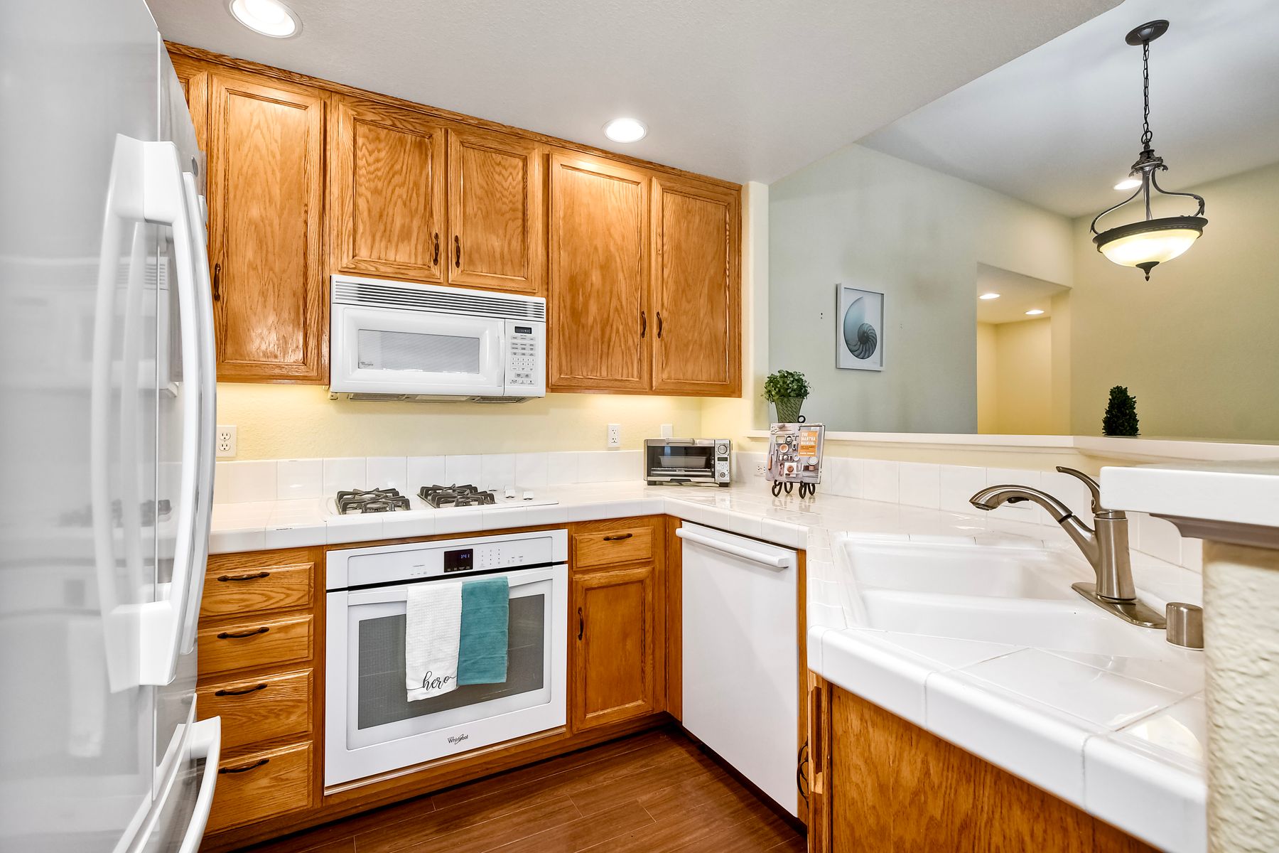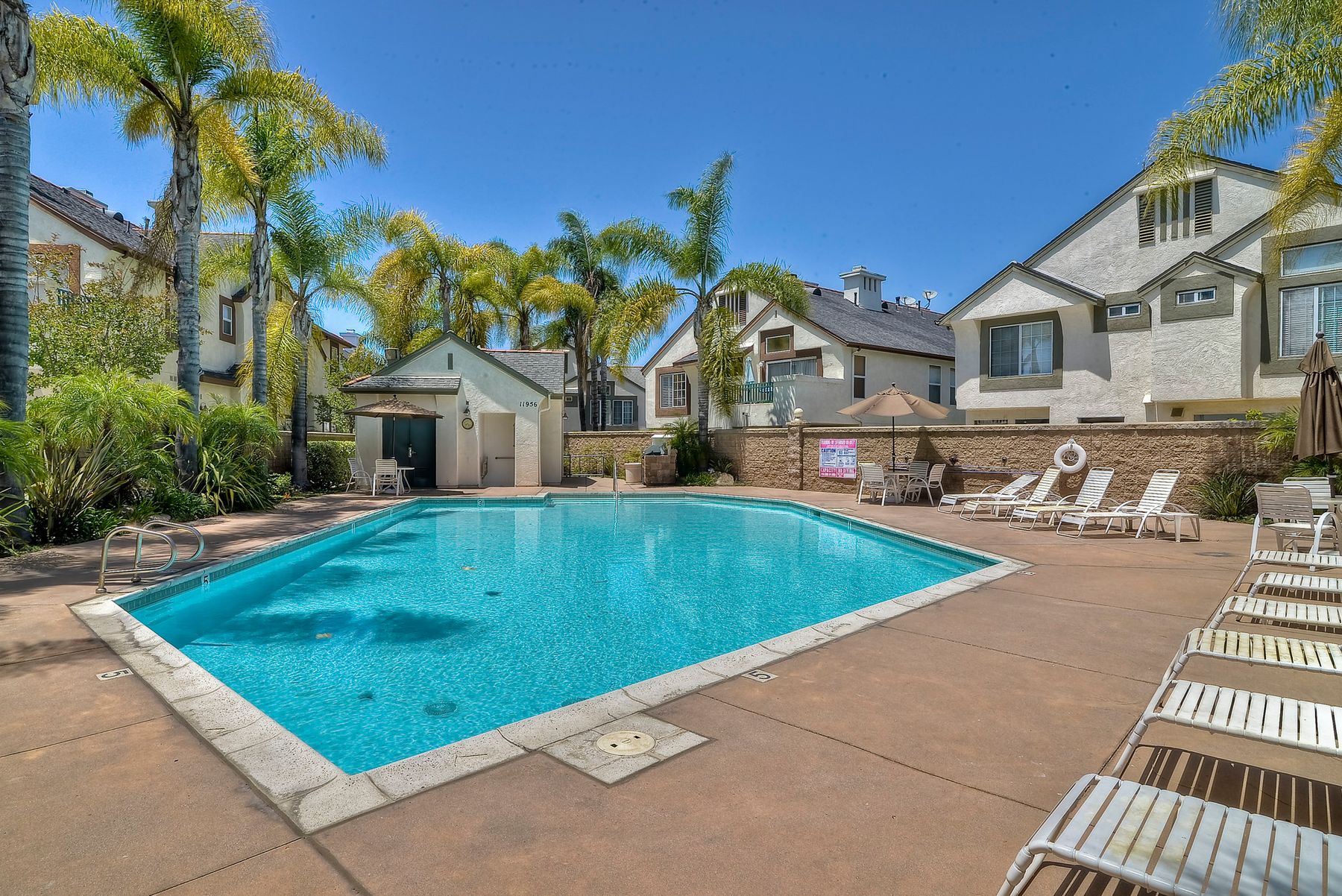 Turnkey and perfect 2-bedroom, 2-bathroom townhome provides combination of beauty, style and convenience in an amazing location. Beautifully maintained! Upgraded bathrooms. Quiet location away from traffic, entry and Pool, but still super easy access. Vaulted ceilings greet you in both the Living Room and Primary Bedroom. Living Room features a French door out to a sunny balcony, and a cozy fireplace with a gas starter. The kitchen features a suite of Whirlpool appliances, clean tile countertops and is open to the living spaces. Tons of cupboard space, plus a gas range. The spacious primary suite features a vaulted ceiling with ceiling light and fan, plus access to the balcony through a slider. Ideal for a garden of plants and a relaxation area. The secondary bedroom has a great closet, bright windows and adjoins a full, renovated bathroom. The attached, super-practical one-car garage has extra shelving and storage, a full-size stacked washer and dryer, and an additional assigned parking space (# 28). Ample guest parking is also available. Amenities included in the low HOA fee include a sparkling spa, pool, and BBQ area plus exterior and grounds maintenance. Located within walking distance to parks, shopping, and top-rated schools, this home combines convenience and lifestyle perfectly. With low HOA fees, no Mello-Roos, and a well-maintained complex, this townhome is an ideal choice for first-time buyers, investors, or a 1031 exchanges. High Walkability score for excellent schools, parks, trails and retail, restaurants and coffee shops. Walking distance to award-winning Ellen Browning Scripps Elementary. Super covenient to all shopping, to restaurants, Starbucks and your commute on the 15. Miramar Lake is moments away! You'll love living in Scripps Ranch for its community feel! Welcome home!