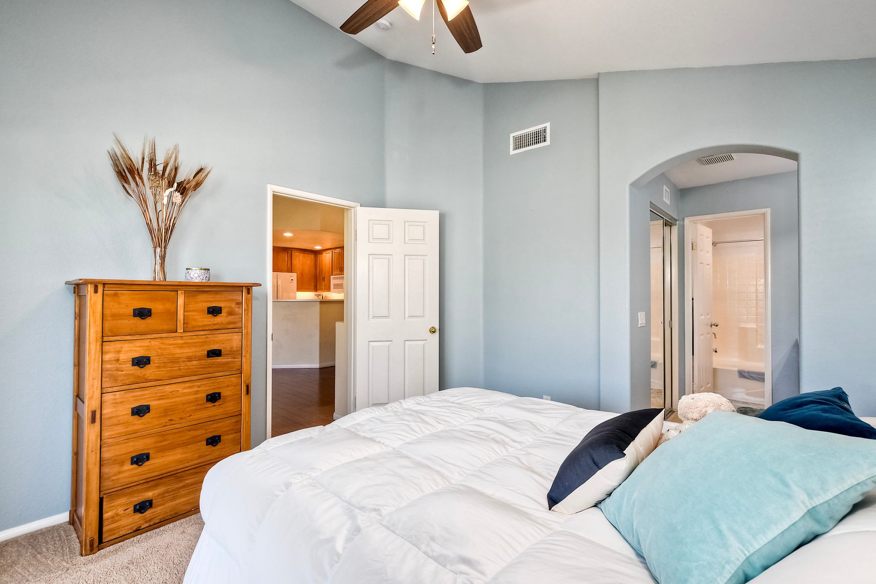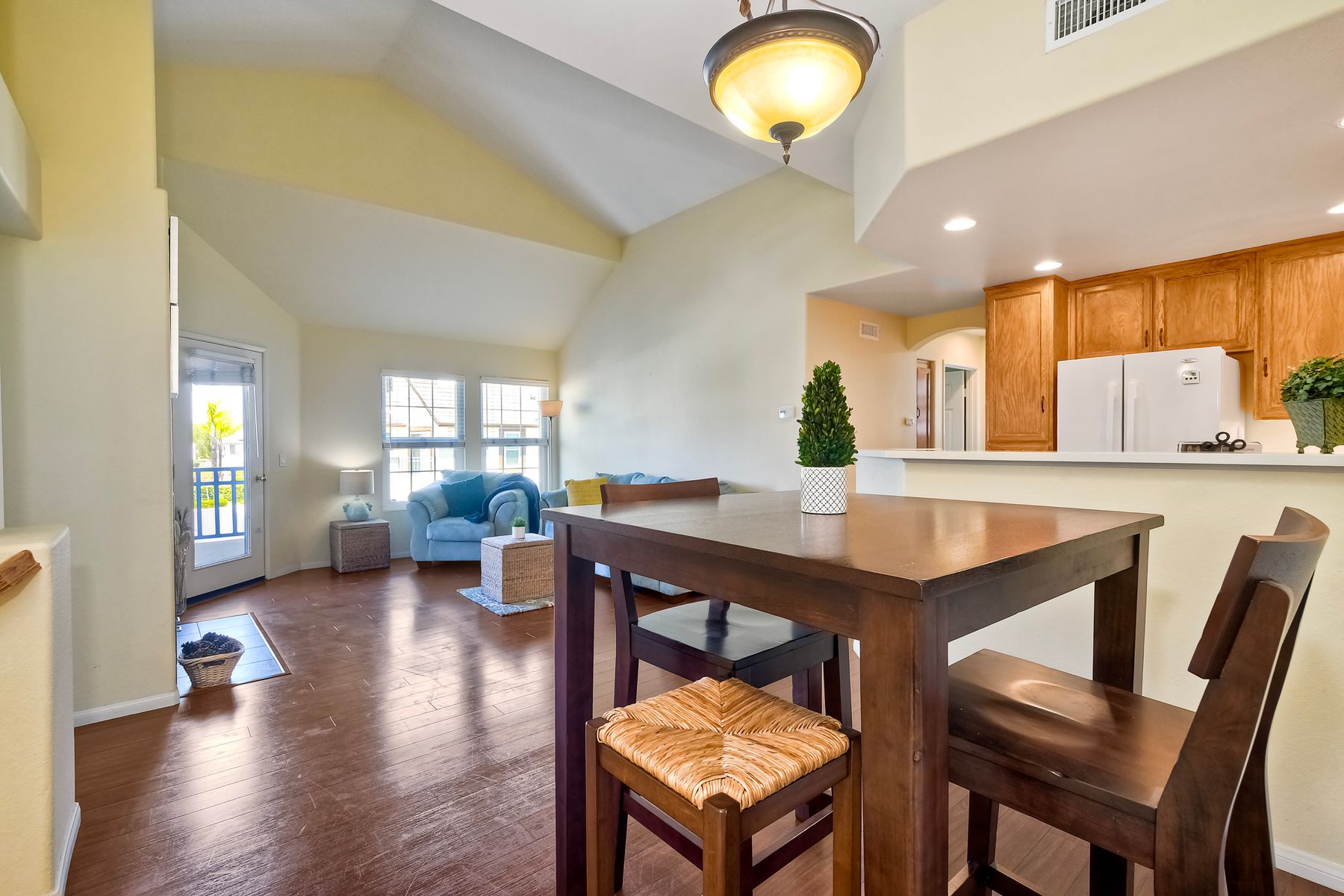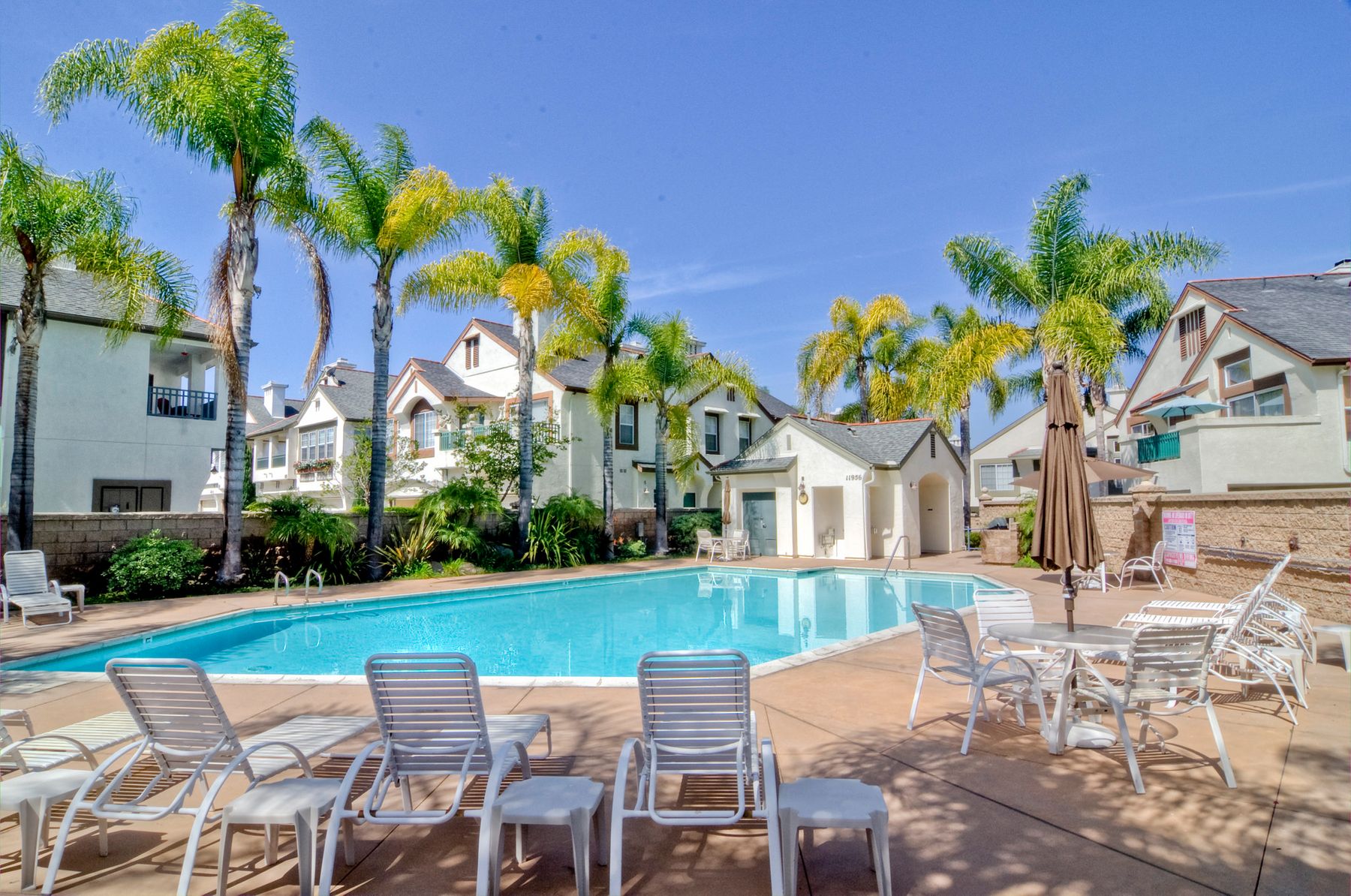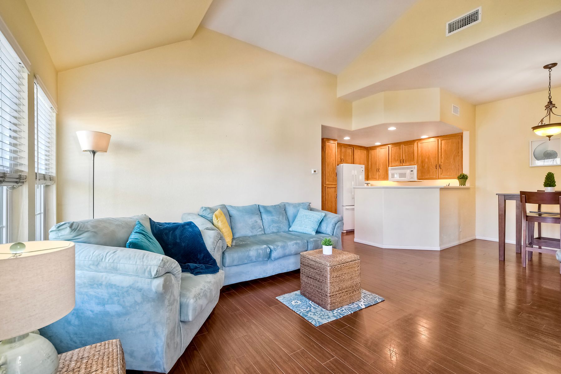 Turnkey and perfect 2-bedroom, 2-bathroom townhome provides combination of beauty, style and convenience in an amazing location. Beautifully maintained! Upgraded bathrooms. Quiet location away from traffic, entry and Pool, but still super easy access. Vaulted ceilings greet you in both the Living Room and Primary Bedroom. Living Room features a French door out to a sunny balcony, and a cozy fireplace with a gas starter. The kitchen features a suite of Whirlpool appliances, clean tile countertops and is open to the living spaces. Tons of cupboard space, plus a gas range. The spacious primary suite features a vaulted ceiling with ceiling light and fan, plus access to the balcony through a slider. Ideal for a garden of plants and a relaxation area. The secondary bedroom has a great closet, bright windows and adjoins a full, renovated bathroom. The attached, super-practical one-car garage has extra shelving and storage, a full-size stacked washer and dryer, and an additional assigned parking space (# 28). Ample guest parking is also available. Amenities included in the low HOA fee include a sparkling spa, pool, and BBQ area plus exterior and grounds maintenance. Located within walking distance to parks, shopping, and top-rated schools, this home combines convenience and lifestyle perfectly. With low HOA fees, no Mello-Roos, and a well-maintained complex, this townhome is an ideal choice for first-time buyers, investors, or a 1031 exchanges. High Walkability score for excellent schools, parks, trails and retail, restaurants and coffee shops. Walking distance to award-winning Ellen Browning Scripps Elementary. Super covenient to all shopping, to restaurants, Starbucks and your commute on the 15. Miramar Lake is moments away! You'll love living in Scripps Ranch for its community feel! Welcome home!