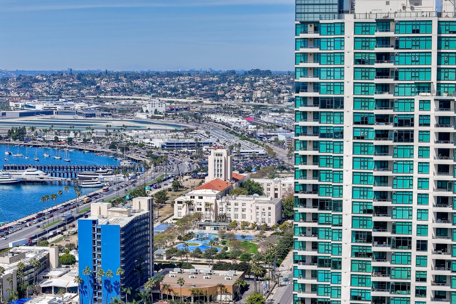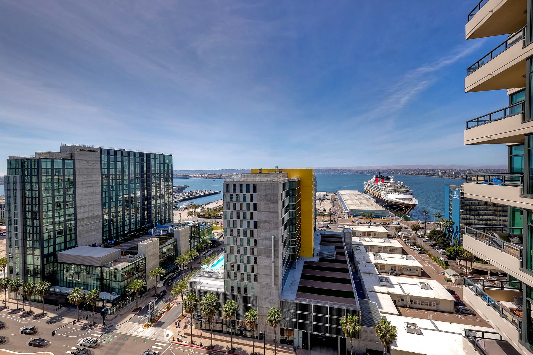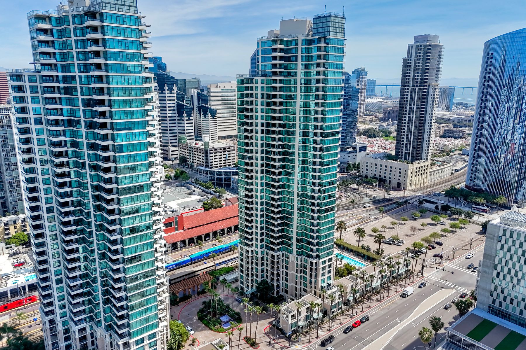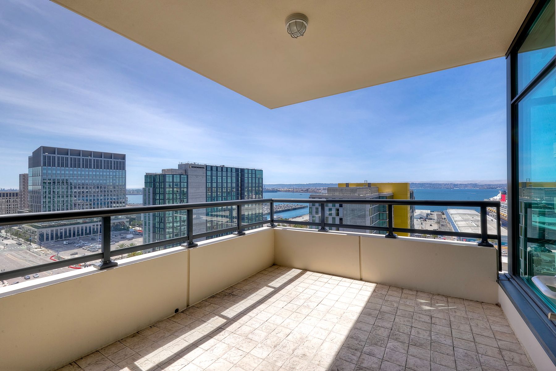Elegant ocean and bay view residence in Grande South featuring the most desirable floorplan with two bedrooms plus a bonus room. Situated on the 18th floor, the home offers unobstructed southwest-facing views of San Diego Bay, the Pacific Ocean, and the city skyline. Refined interiors include a spacious primary suite, hardwood floors throughout, a cozy fireplace, Nest thermostats, battery-operated window shades, and a gourmet kitchen with a new GE Monogram refrigerator. The expansive balcony extends the living space and provides the perfect setting to enjoy panoramic views and sunsets. 2 side by side parking spaces. Grande South amenities include 24-hour concierge service, meeting room, party room and lounge with full kitchen and fireplace, visitor’s suite for guests, landscaped gardens, private tree-lined courtyards, individual storage lockers, bicycle storage, an 80-foot outdoor swimming pool, whirlpool spa, sauna and steam rooms, changing rooms with lockers, and a fully equipped exercise room. Floor plan is in associated documents. Seller will consider Seller Financing.