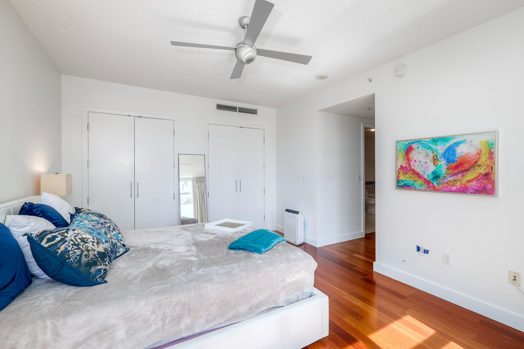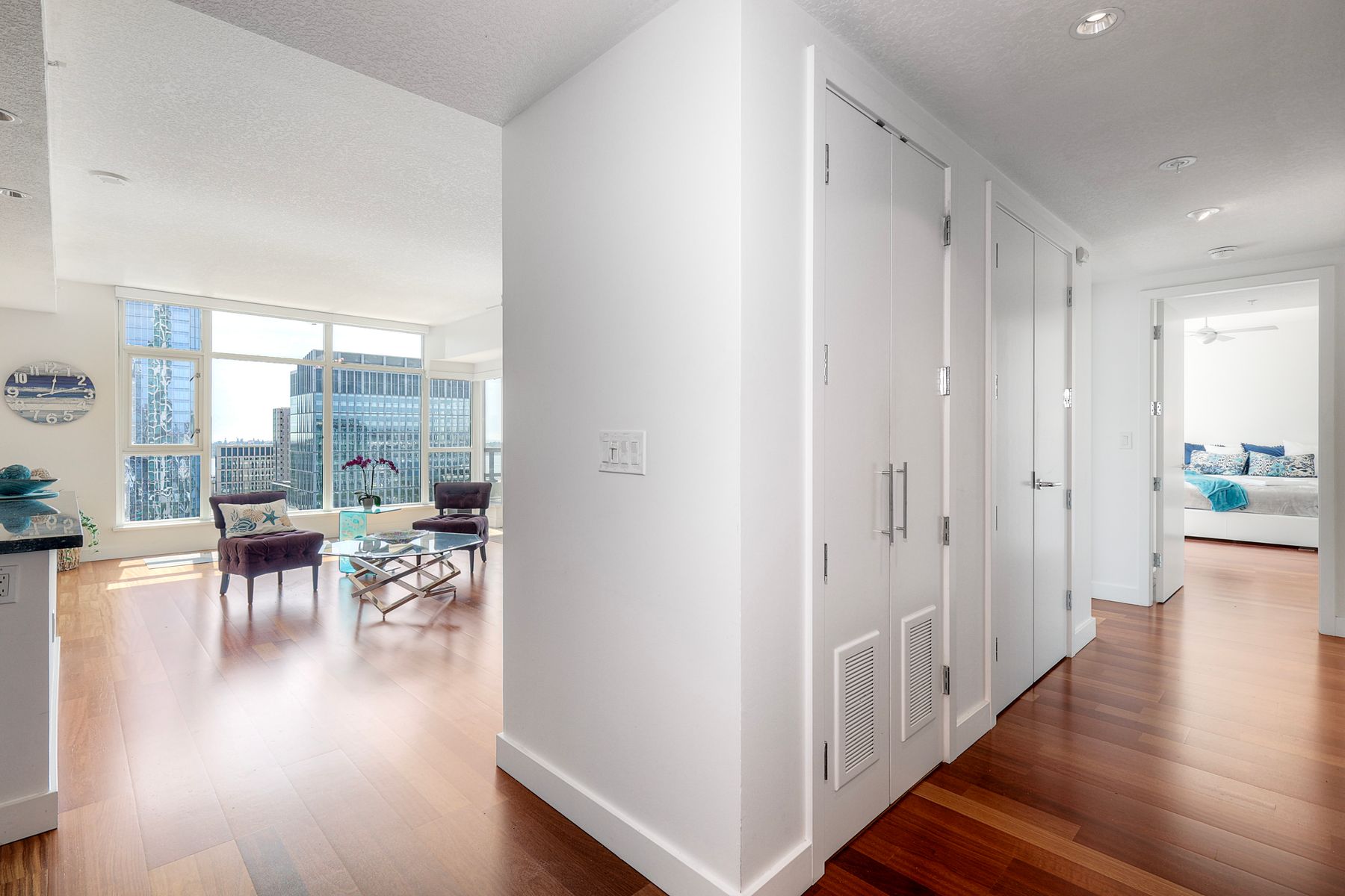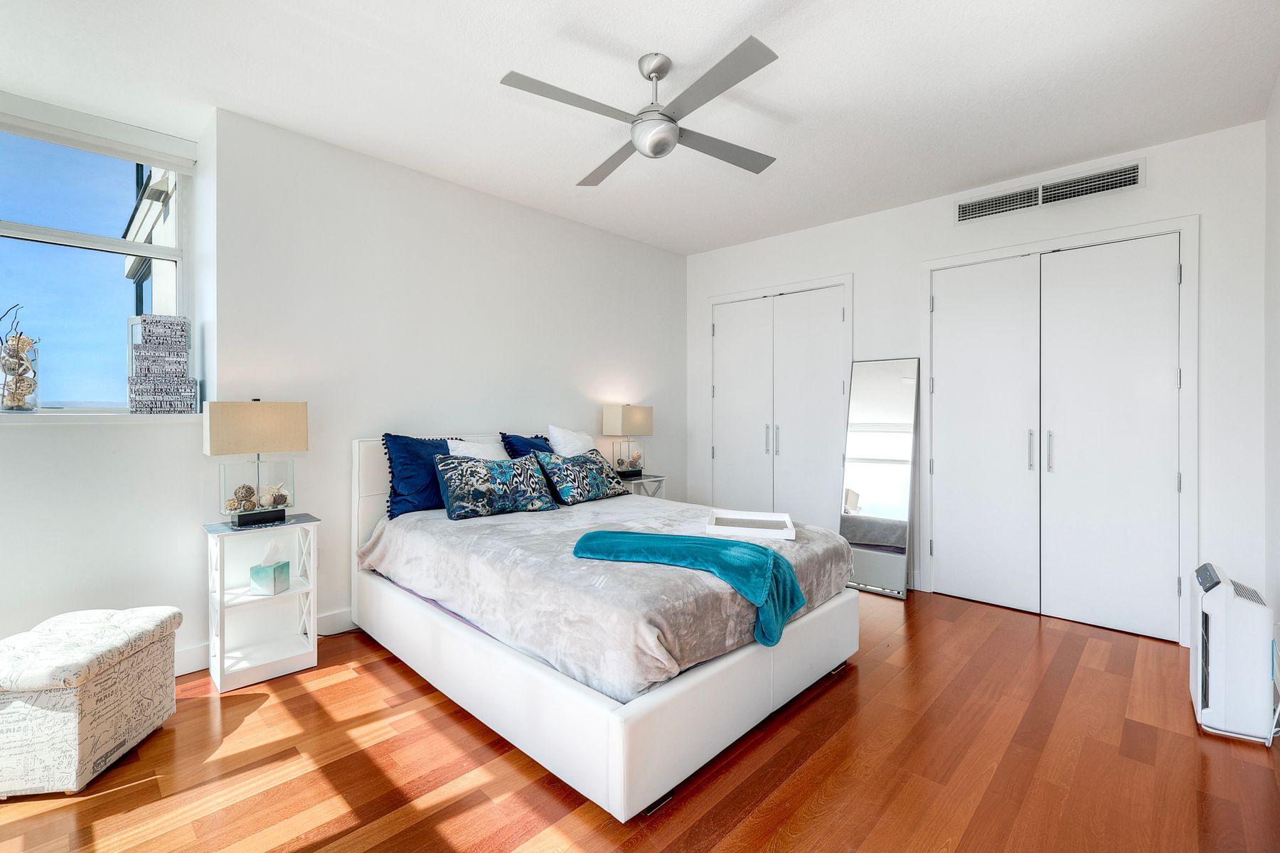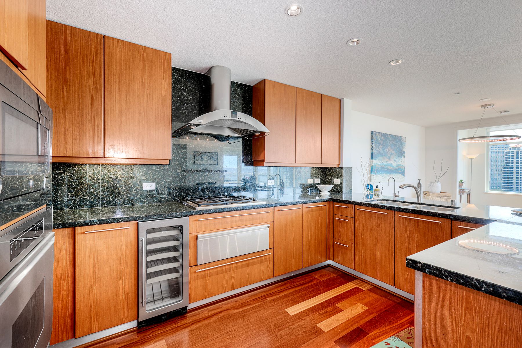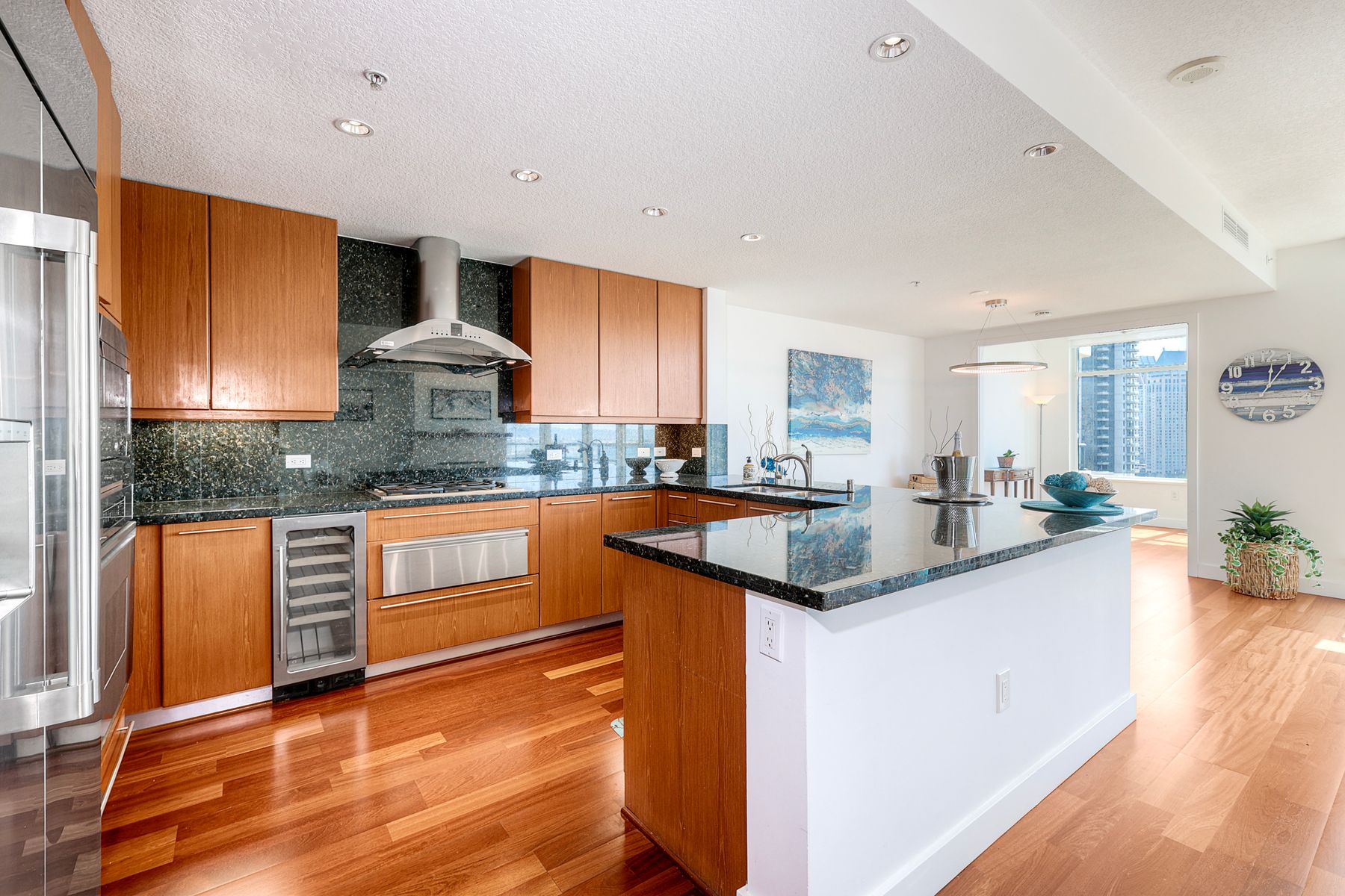 Elegant ocean and bay view residence in Grande South featuring the most desirable floorplan with two bedrooms plus a bonus room. Situated on the 18th floor, the home offers unobstructed southwest-facing views of San Diego Bay, the Pacific Ocean, and the city skyline. Refined interiors include a spacious primary suite, hardwood floors throughout, a cozy fireplace, Nest thermostats, battery-operated window shades, and a gourmet kitchen with a new GE Monogram refrigerator. The expansive balcony extends the living space and provides the perfect setting to enjoy panoramic views and sunsets. 2 side by side parking spaces. Grande South amenities include 24-hour concierge service, meeting room, party room and lounge with full kitchen and fireplace, visitor’s suite for guests, landscaped gardens, private tree-lined courtyards, individual storage lockers, bicycle storage, an 80-foot outdoor swimming pool, whirlpool spa, sauna and steam rooms, changing rooms with lockers, and a fully equipped exercise room. Floor plan is in associated documents. Seller will consider Seller Financing.