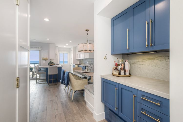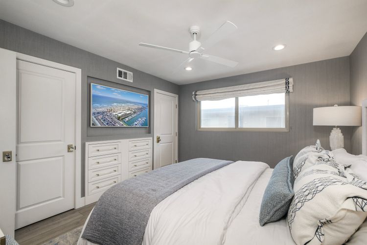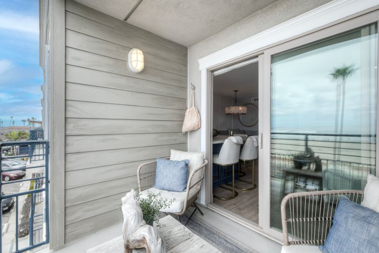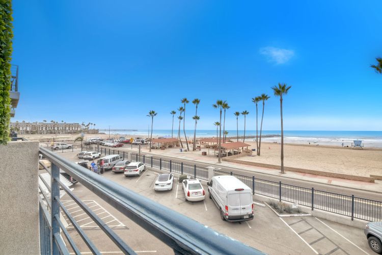 This extraordinary ocean-view home, fully renovated by renowned Beverly Hills designer Christopher Grubb, is nothing short of exquisite. Though just a one-bedroom, every inch of this residence has been thoughtfully curated with luxury and functionality in mind. With no one above you, the open-concept, sun-drenched layout showcases wood flooring, state-of-the-art appliances and custom built-ins including an integrated refrigerator and dishwasher and Picture Televisions in both the living room and bedroom. The spacious dining area easily accommodates family and guests, while the serene bedroom features generous closet space and a beautifully appointed en-suite bathroom with walk-in tiled shower and dual vanities. Step onto your private balcony to take in unobstructed, panoramic ocean views, the perfect spot to relax and unwind. The community offers resort-style amenities including a heated pool and spa, BBQ area, elevators, laundry on every floor, gated parking and guest access. Ideally located near the Harbor, beaches, restaurants, and shops, this property captures the very best of coastal Oceanside living. With HOA-approved short-term rentals, this is an ideal choice for a primary residence, vacation rental or investment property.
