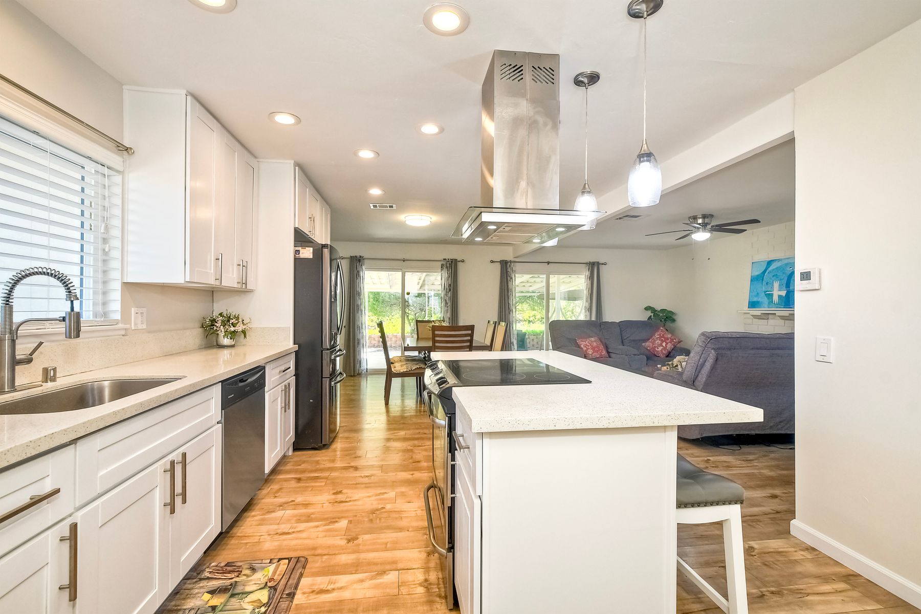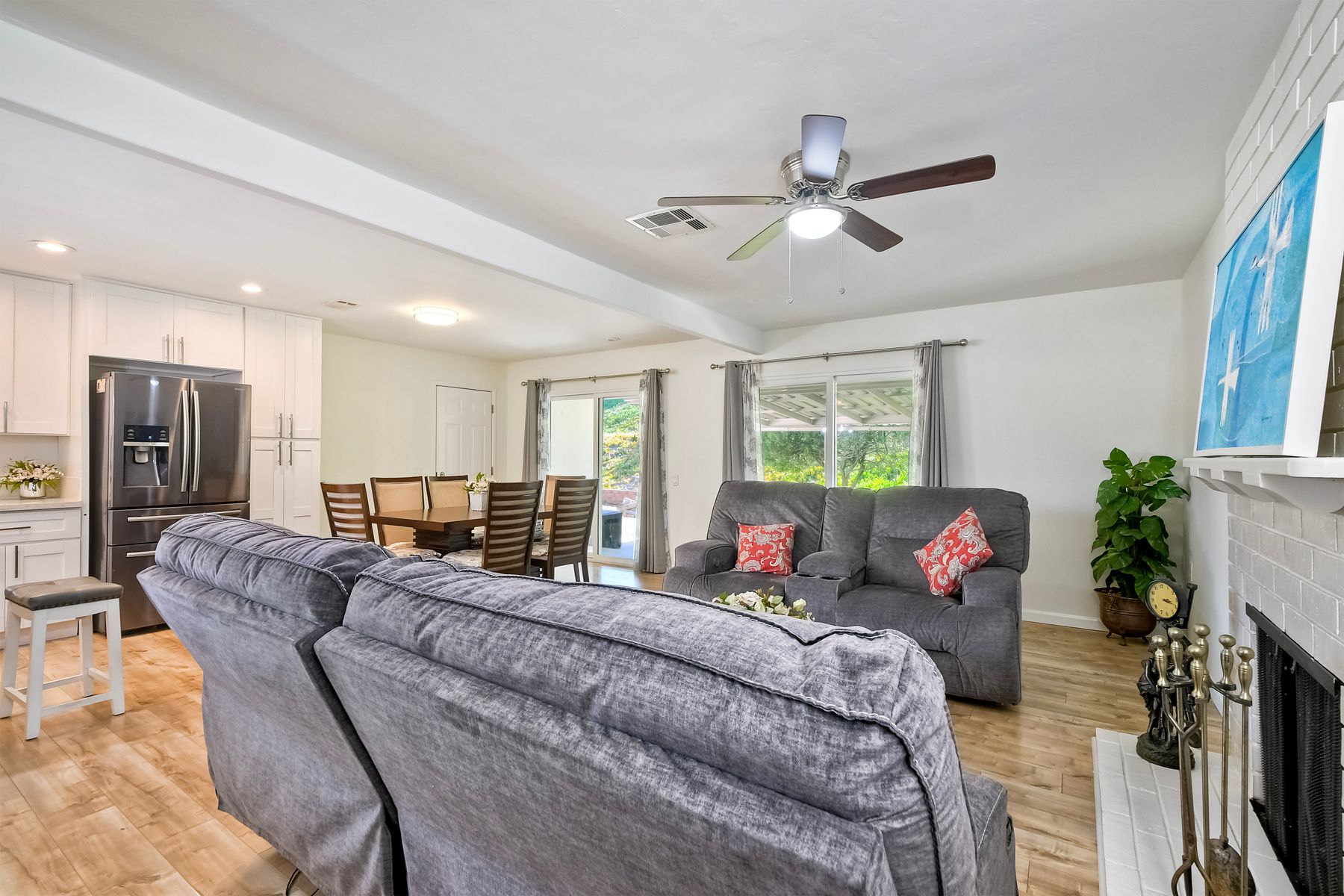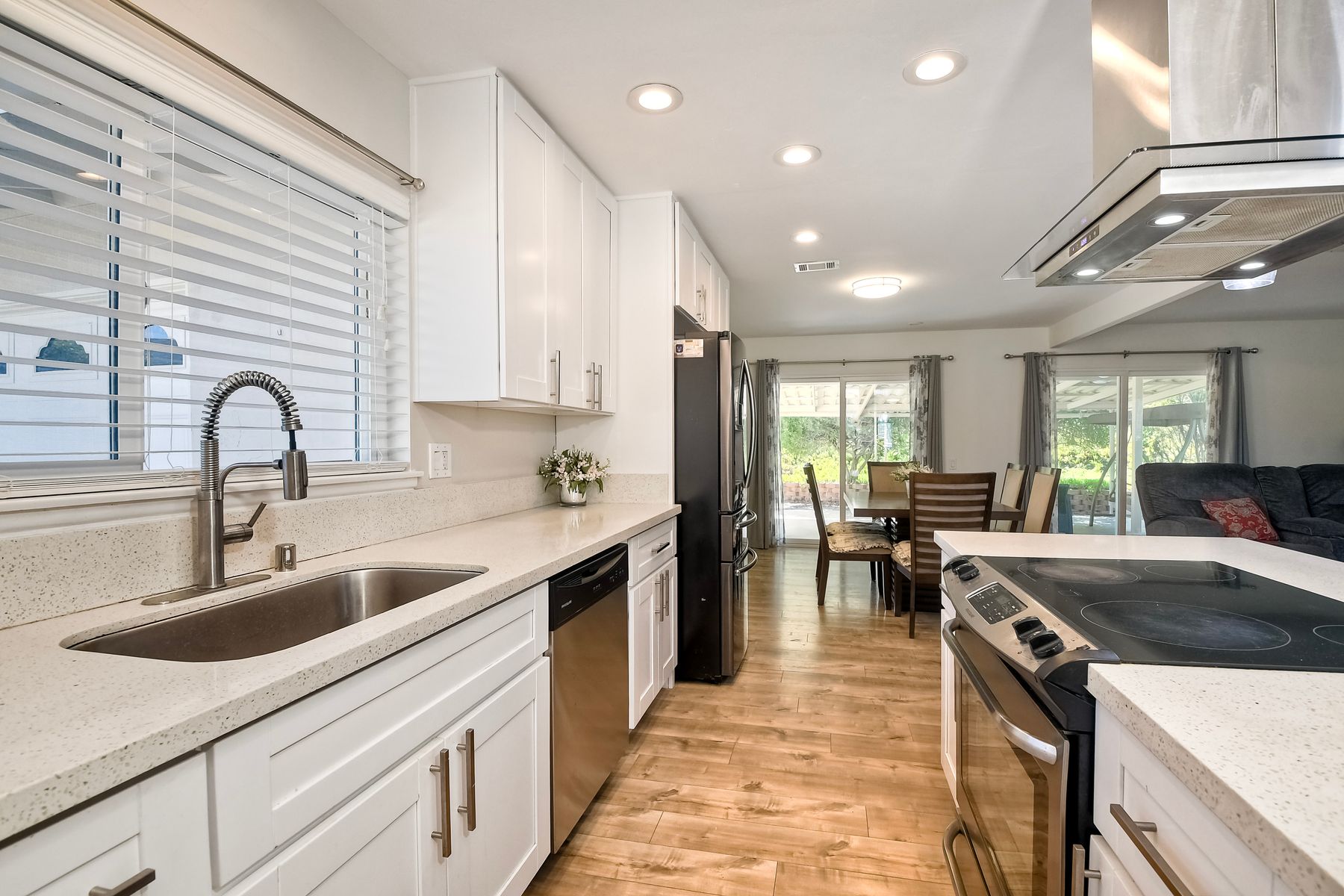 Welcome to 12093 Callado Rd, a stunning, remodeled home in the highly sought-after 55+ area in Seven Oaks neighborhood of Rancho Bernardo. Step into a brand-new kitchen featuring quartz countertops, elegant wood cabinetry, stainless steel appliances ; refrigerator, dishwasher, oven, microwave, and designer flooring, complemented by sleek porcelain tile throughout the home. Newer AC, New windows, New bathroom vanities, new shower enclosure, New lighting. Roof is 5 years old. Freshly painted inside and outside. The spacious living area seamlessly flows into a covered patio, perfect for relaxing or entertaining while enjoying the private, low-maintenance backyard. Generous 9,300 sq. ft. lot, this home has an attached 2-car garage and is within walking distance of shops and restaurants in Rancho Bernardo. Experience the peaceful and friendly Seven Oaks 55+ community, offering a prime location with fantastic amenities. Don’t miss this opportunity—schedule a showing today!