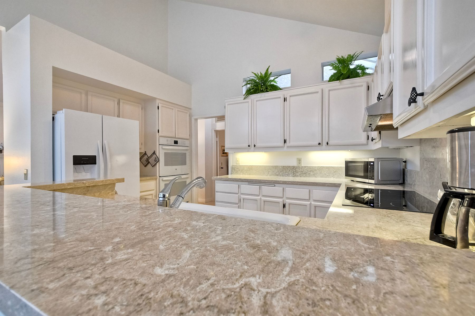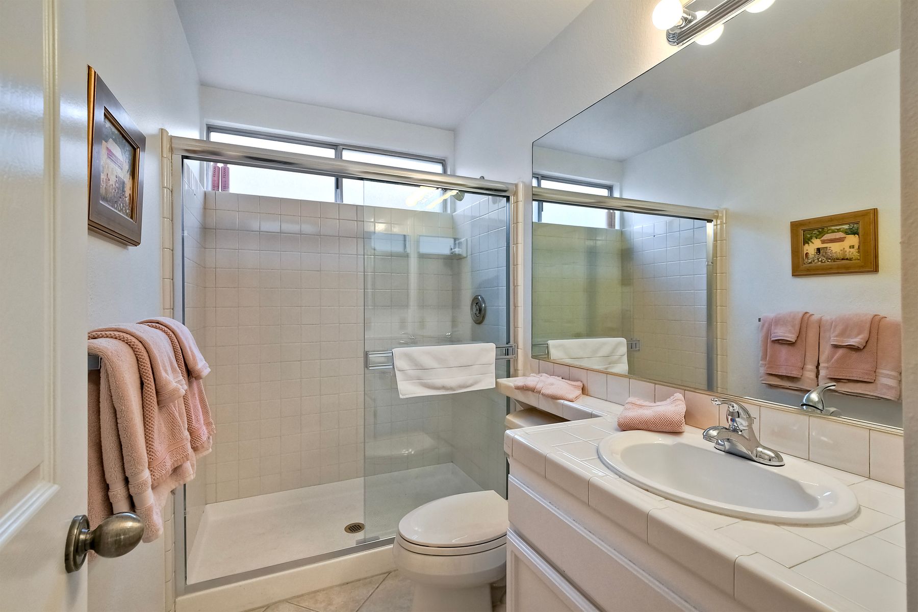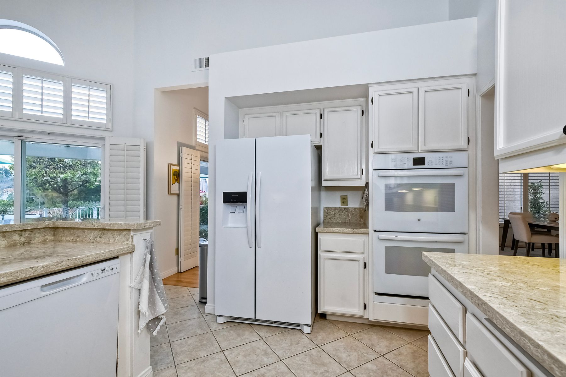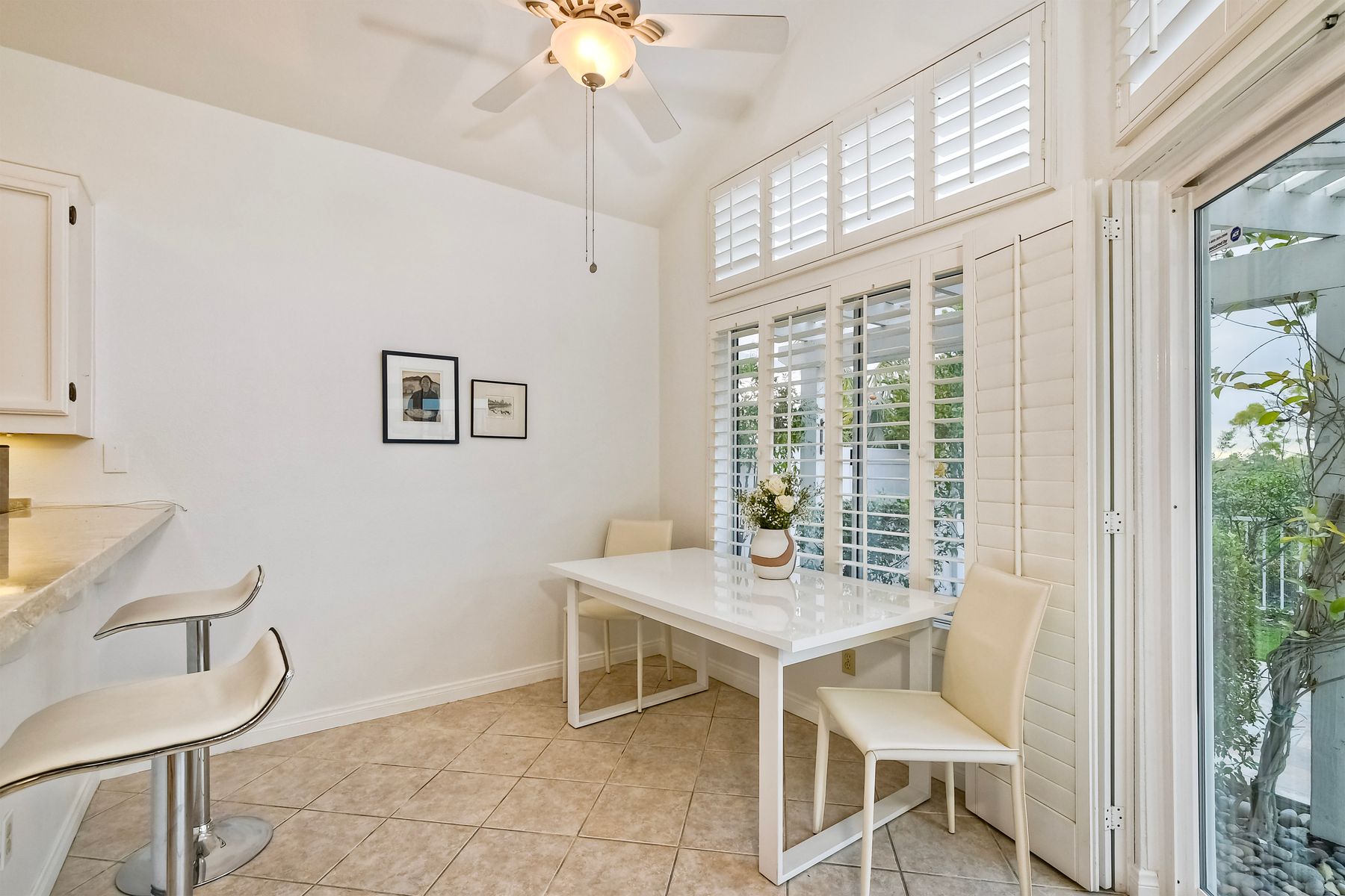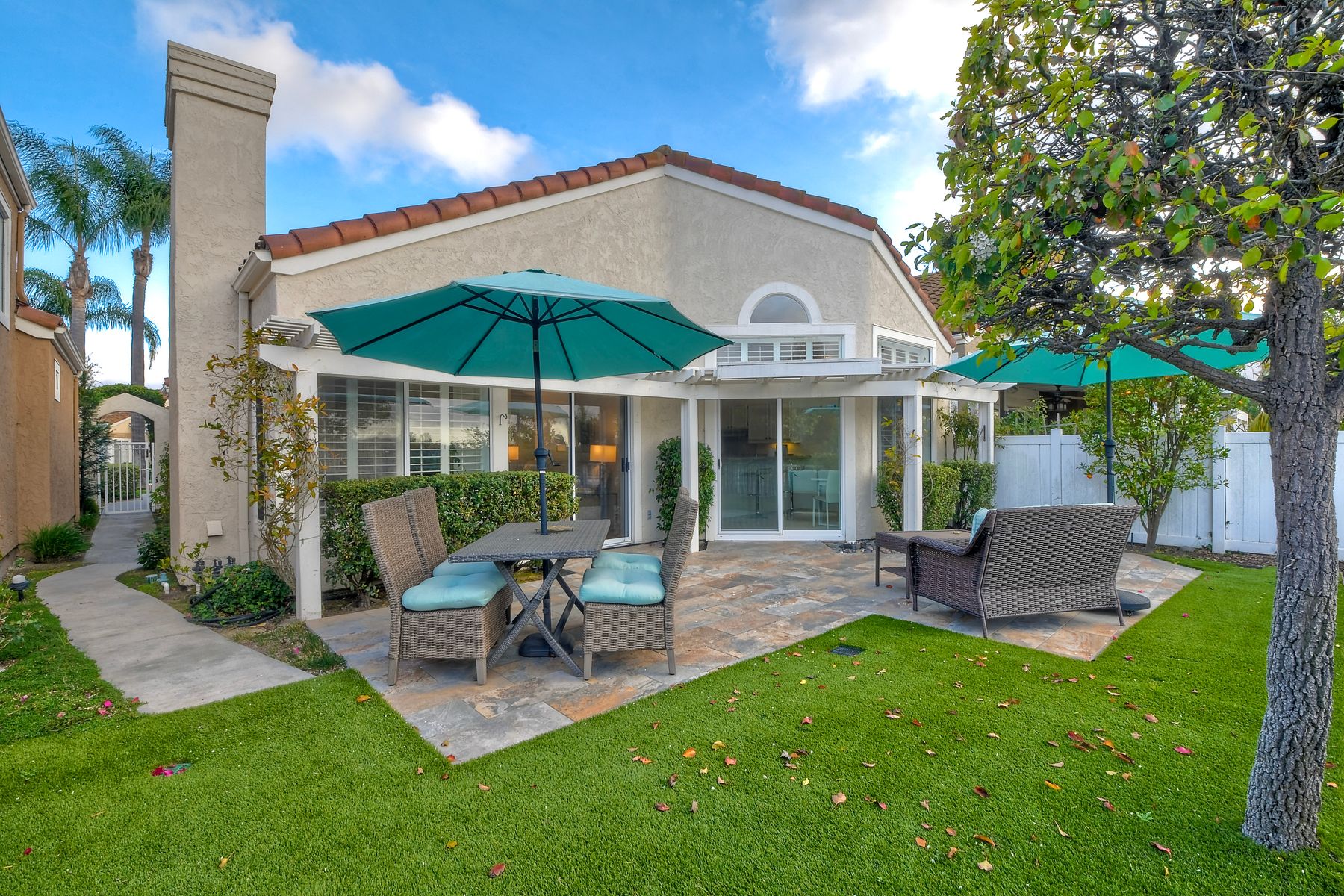 Welcome to the prestigious gated community of Masters Hill within Bernardo Heights. The private lot is nestled in a quiet cul-de-sac street within the community featuring plenty of guest parking. Upon entering the home, you are greeted by an open and bright living room space with vaulted ceilings, large windows, fireplace, and beautiful flooring throughout the main living areas. This single level model is rarely available. The 2-bedroom floorplan features a large primary suite, equipped with dual vanities, soaking tub, separate shower, and spacious walk-in closet. The gourmet kitchen is equipped with modern appliances, gas cooking, multi-level custom stone countertop, ample cabinet space, and an expansive eat-in nook to enjoy sunset views over the Golf Club. The low-maintenance backyard is an entertainer’s delight to enjoy views of the golf course, green belt, and surrounding hills. The outdoor space features custom tiles, covered patio area, lush landscaping, and peaceful surroundings of the community. Additional features include a two-car garage, a dedicated laundry room, plantation shutters, and access to resort like amenities such as playground, pools, spa, pickleball, tennis courts, and fitness center located at the Bernardo Heights Community Center. Walking distance to award winning schools, shopping, dining, parks and recreational areas, this home offers the perfect blend of luxury, comfort, and convenience. HOA Includes Internet, Cable TV, Pool/Spa, Tennis, Roof Maintenance, Exterior Building Maintenance, Gated Community, Landscaping, Trash, Bernardo Heights Center.