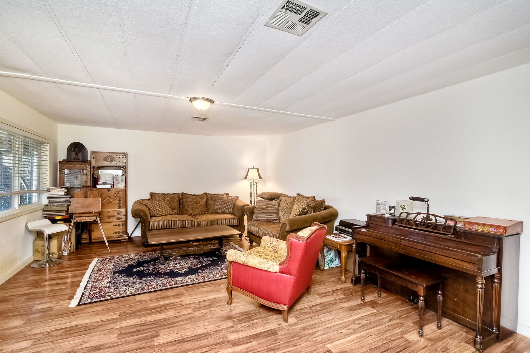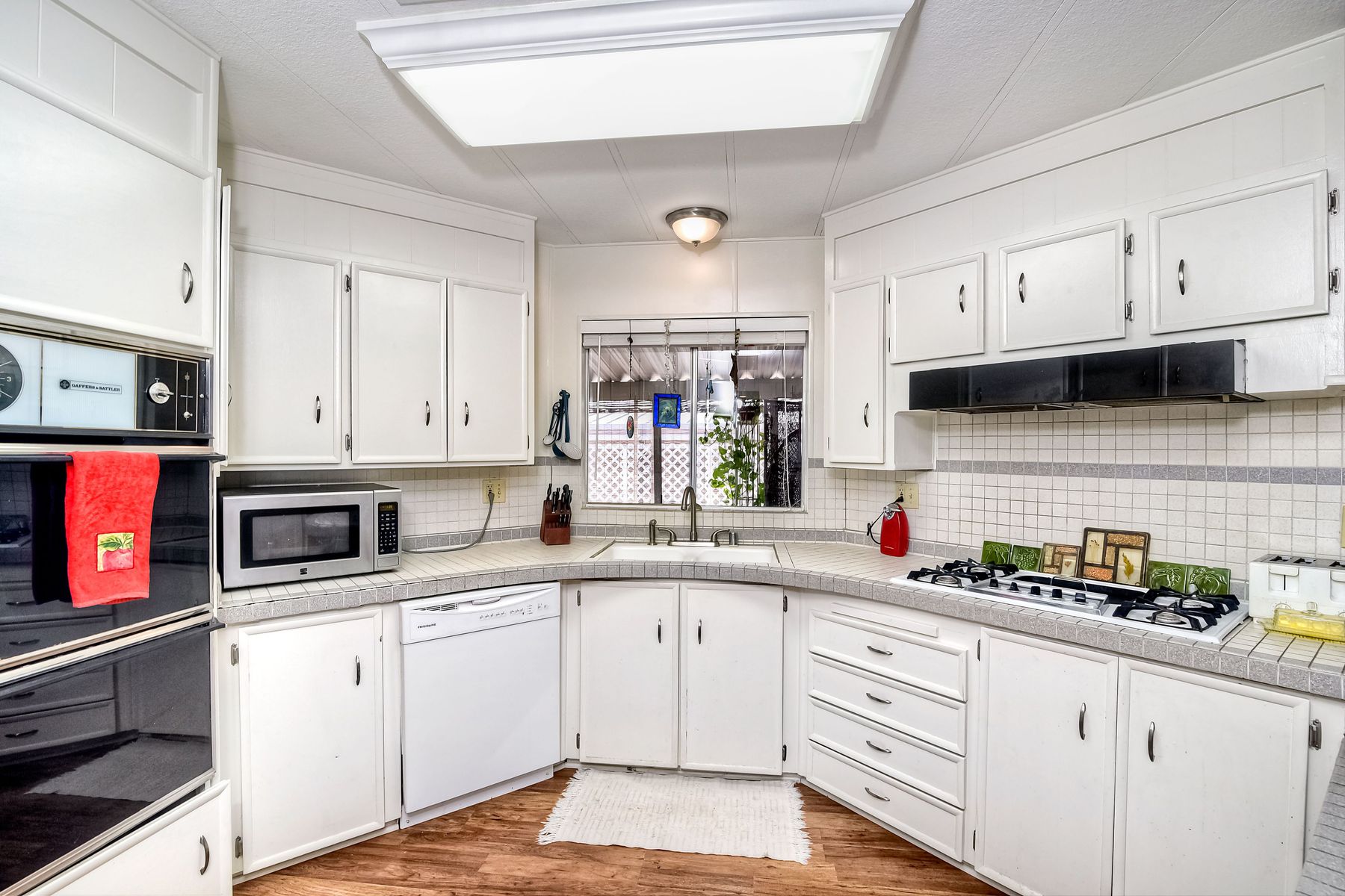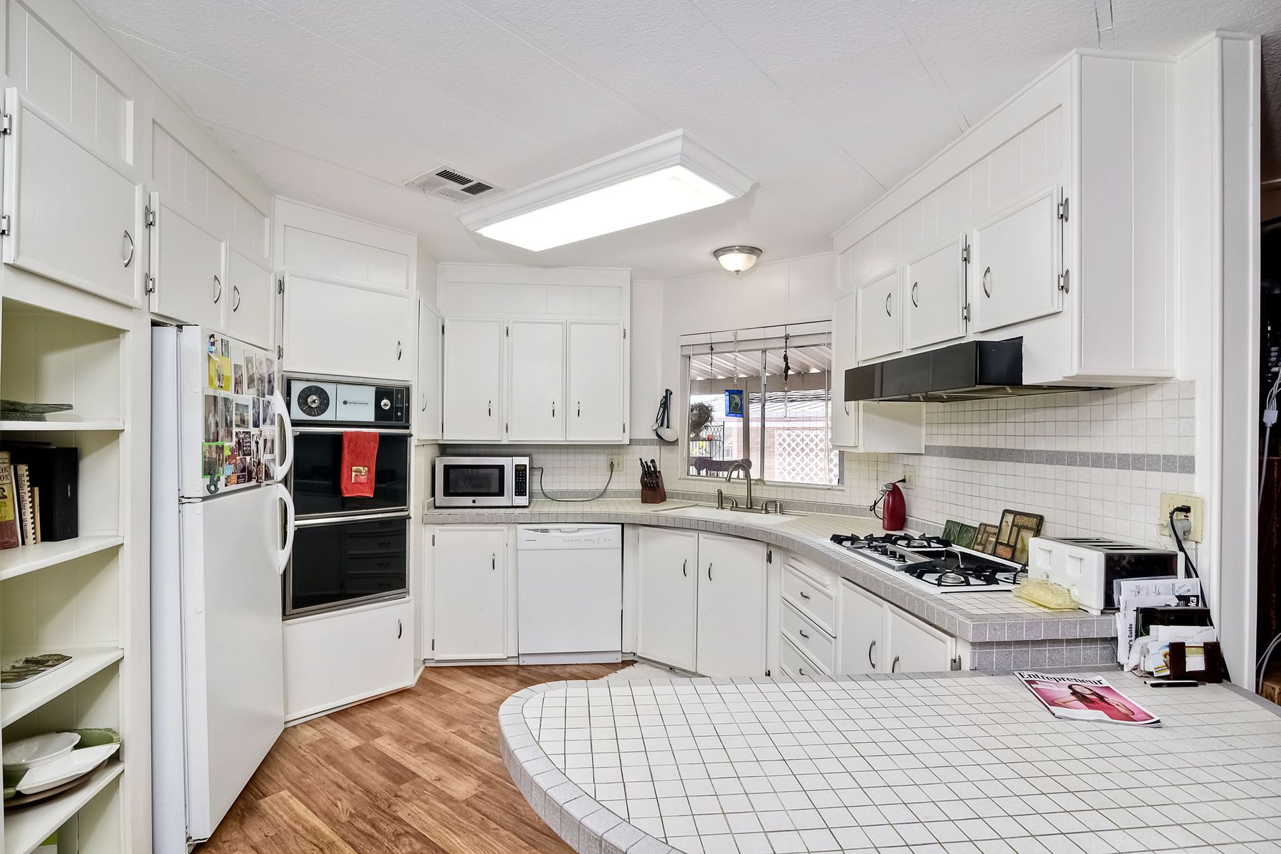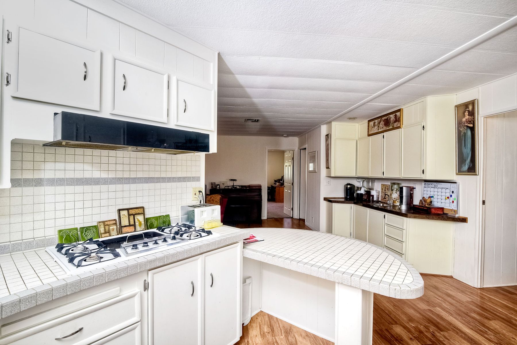 Spacious home, one of the larger homes in the estates. Large family room. Vaulted ceiling in living room and dining room. Built-in cabinets with counter space in dining room and family room. Kitchen bright and open with 4 burner stove and grill, double oven, and plenty of cabinets. Huge master bedroom with upgraded walk-in shower. Large laundry room with a lot of cabinets. Newer windows, carpet and laminate flooring. Enclosed patio and porch. Wood shed for storage. Covered carport with privacy lattice. Close to pool, spa, and clubhouse amenities. Near town and shopping. Beautifully maintained estates include pool, spa, sauna, billiard, dining room with daily activities.